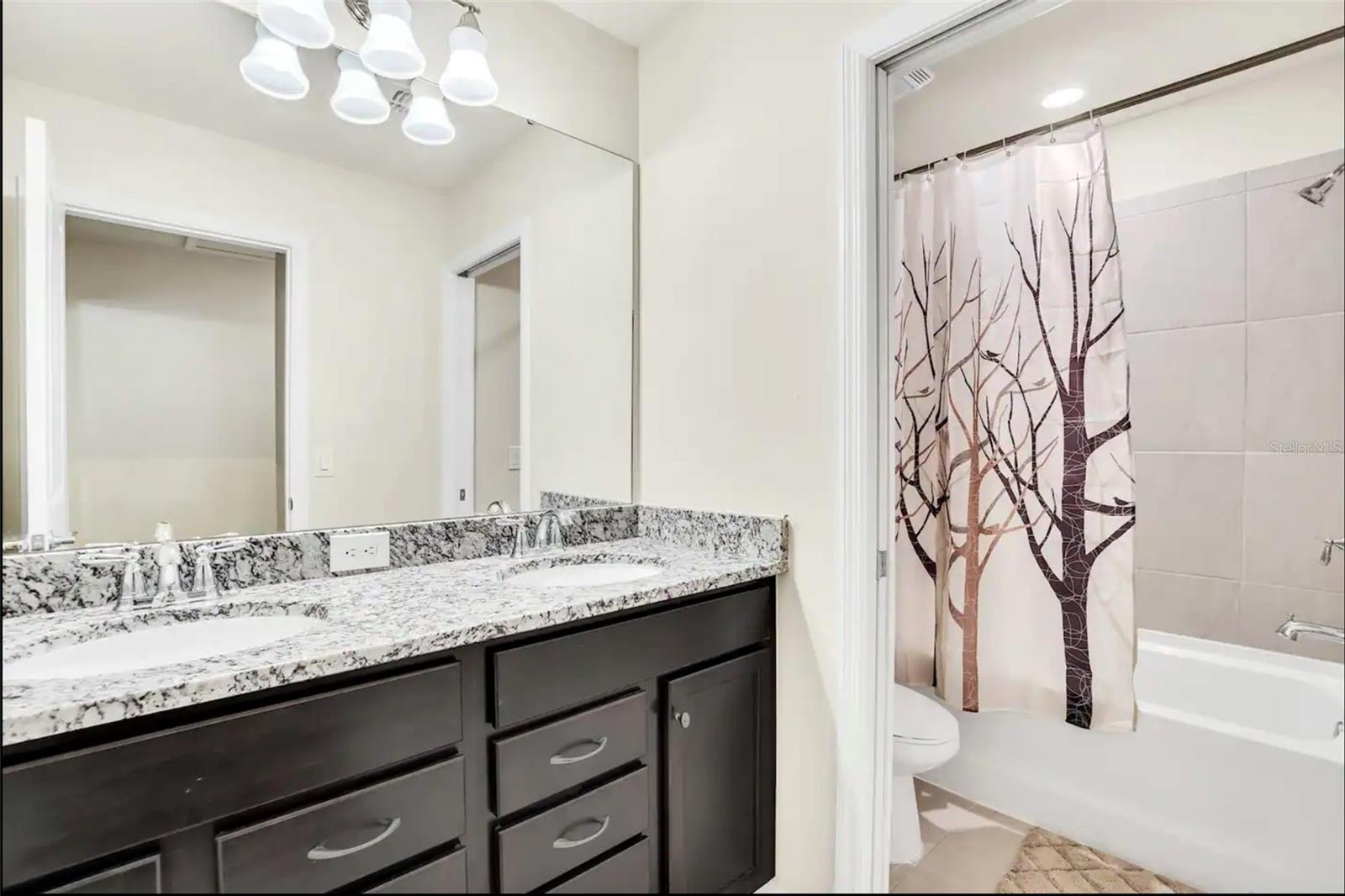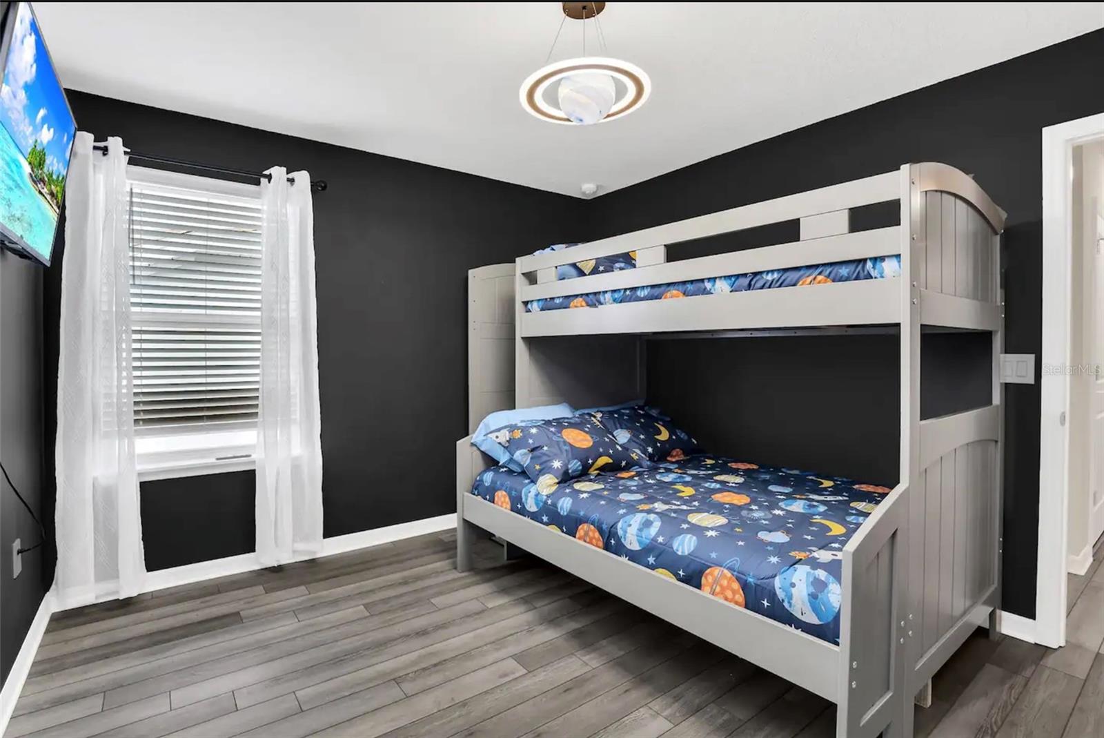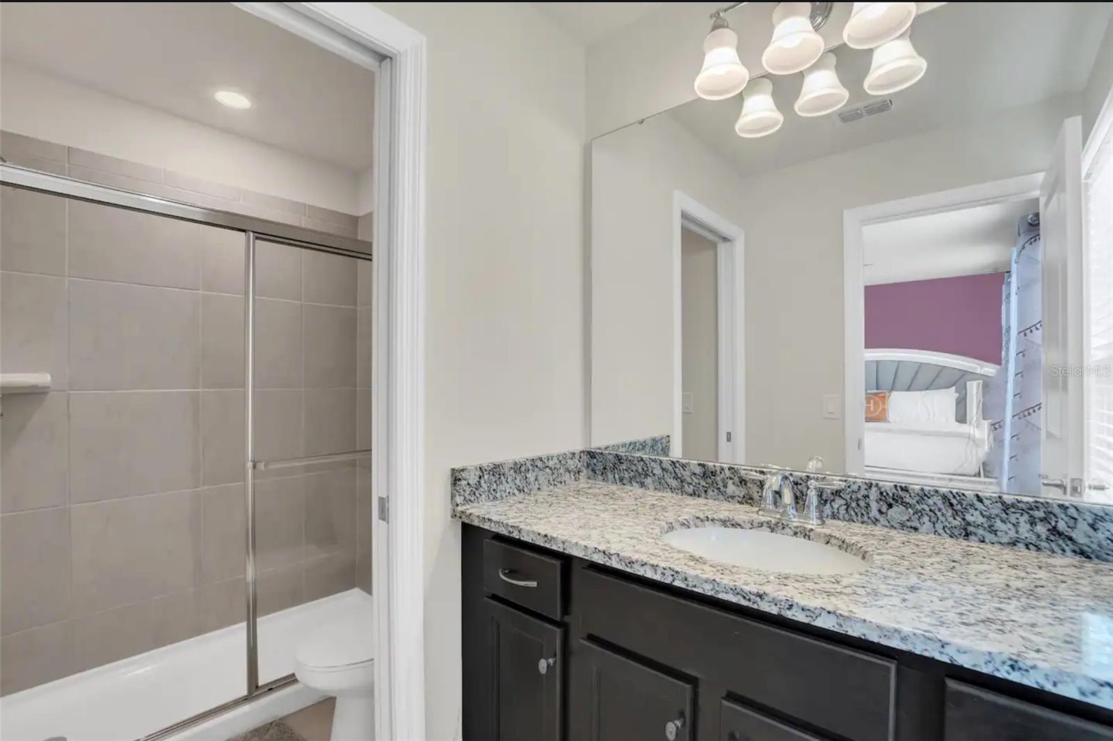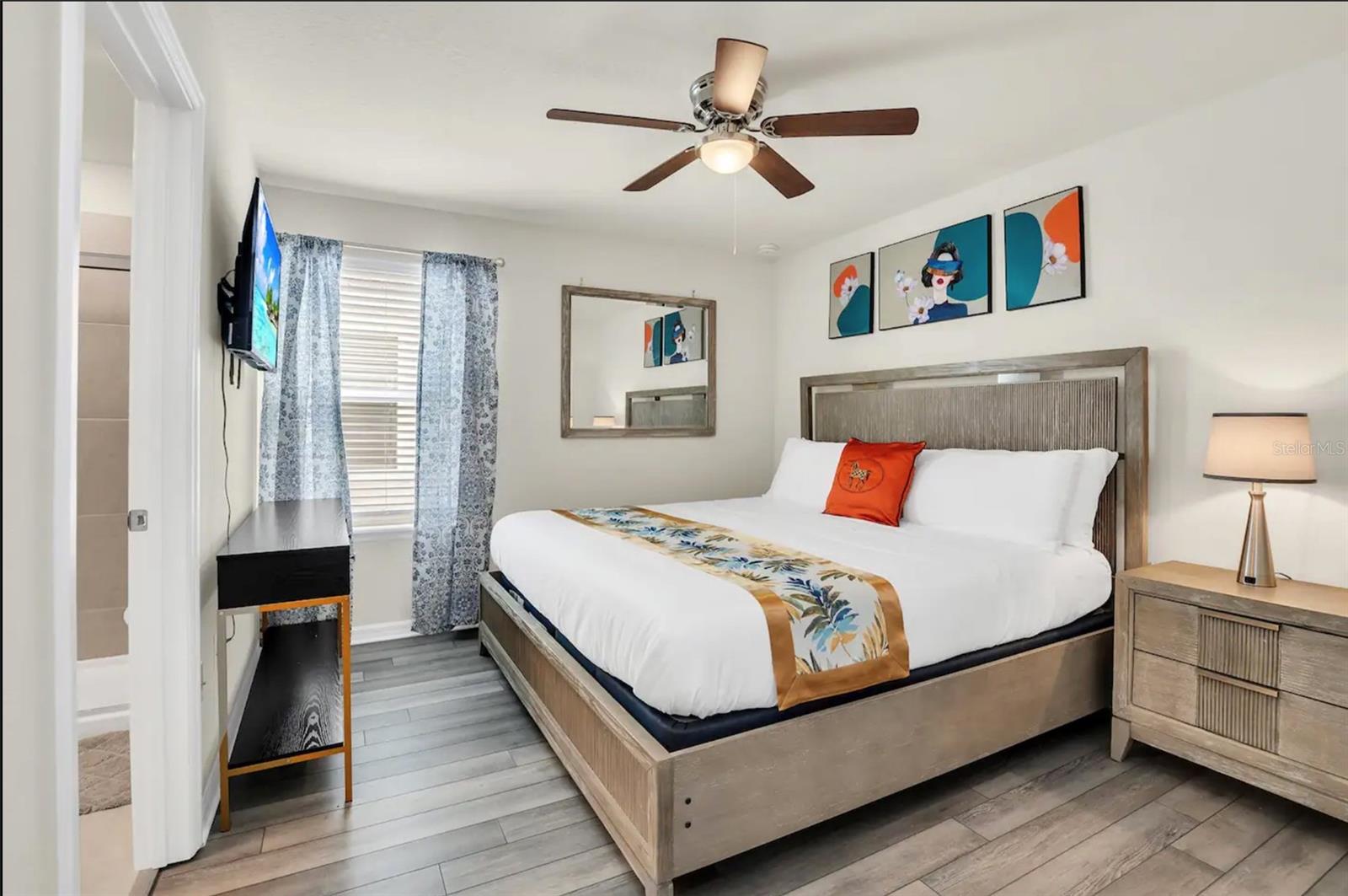 The Windsor Island Resort, a new and thrilling vacation home development, is ideally located near central Florida's major attractions, including Disney and Universal. This elegantly furnished home, sold complete with furniture, boasts 10 bedrooms and 8 bathrooms. It features a private, screened-in pool with a spa. Windsor Island's amenities rank among central Florida's finest, offering a zero-entry resort pool, a lazy river, water slides, a splash pad, a fitness center, a game room, mini-golf, a hammock garden, a sand volleyball court, a basketball court, private cabanas, a poolside bar, an ice-cream/snack bar, and a 24-hour guarded gate for enhanced security. The absence of neighbors behind the property provides additional privacy for residents.