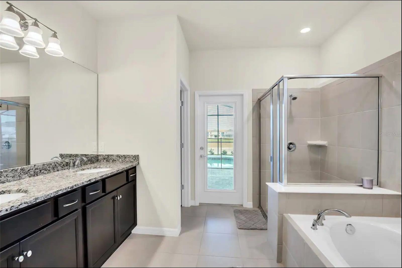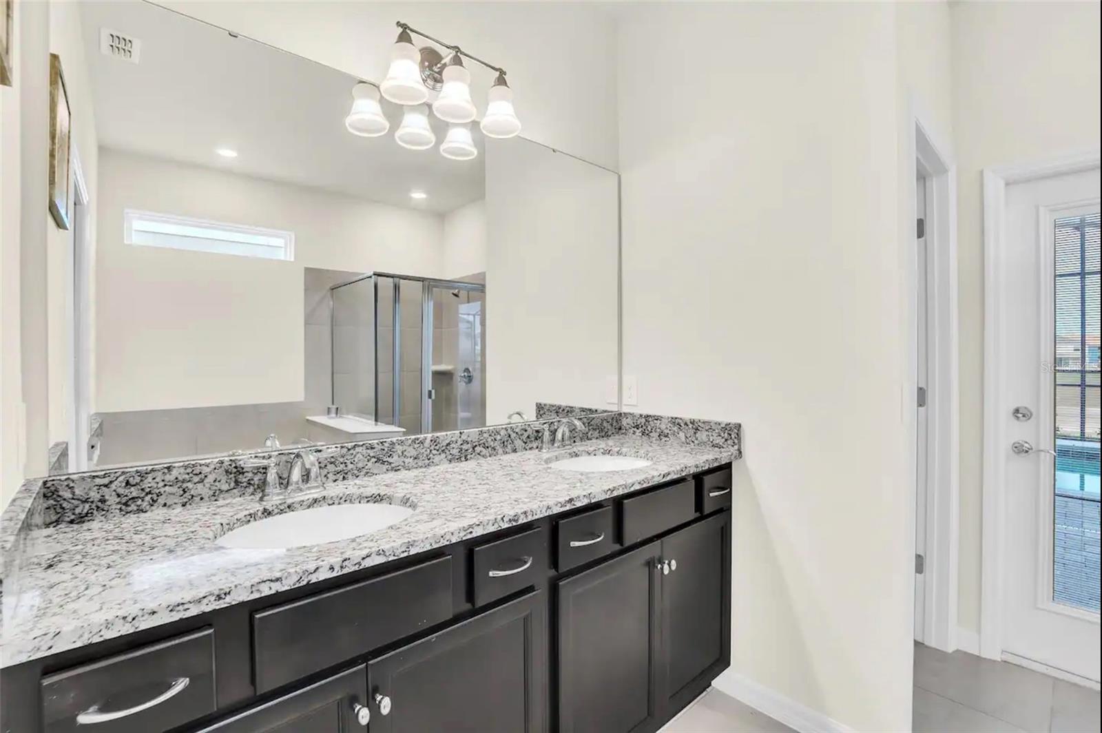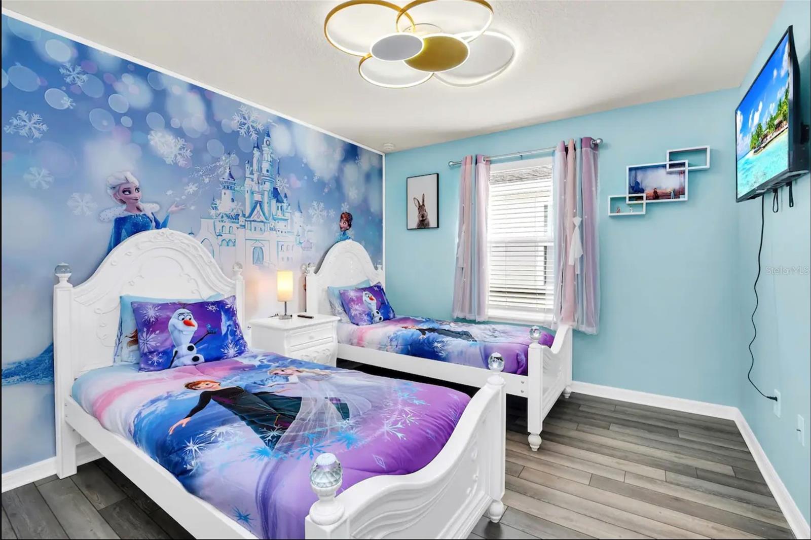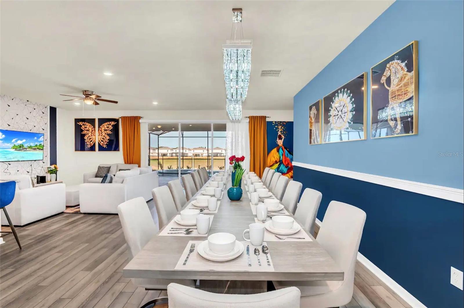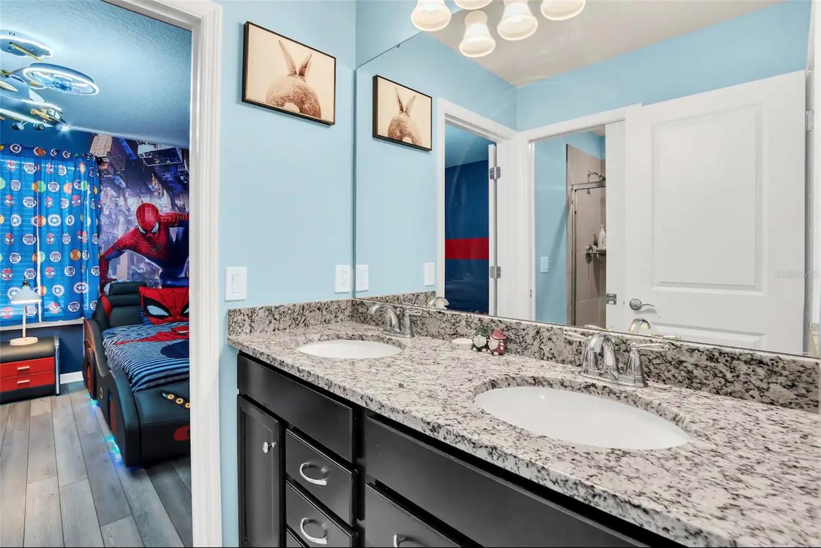 The Windsor Island Resort, a new and thrilling vacation home development, is ideally located near central Florida's major attractions, including Disney and Universal. This elegantly furnished home, sold complete with furniture, boasts 10 bedrooms and 8 bathrooms. It features a private, screened-in pool with a spa. Windsor Island's amenities rank among central Florida's finest, offering a zero-entry resort pool, a lazy river, water slides, a splash pad, a fitness center, a game room, mini-golf, a hammock garden, a sand volleyball court, a basketball court, private cabanas, a poolside bar, an ice-cream/snack bar, and a 24-hour guarded gate for enhanced security. The absence of neighbors behind the property provides additional privacy for residents.