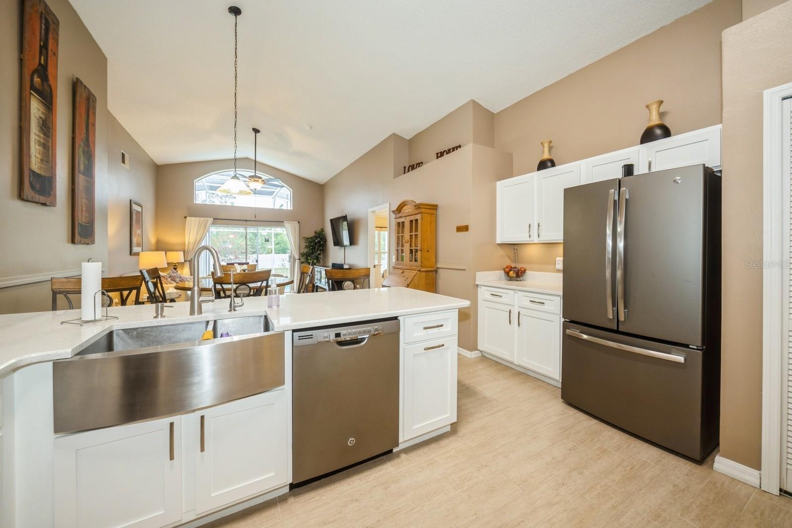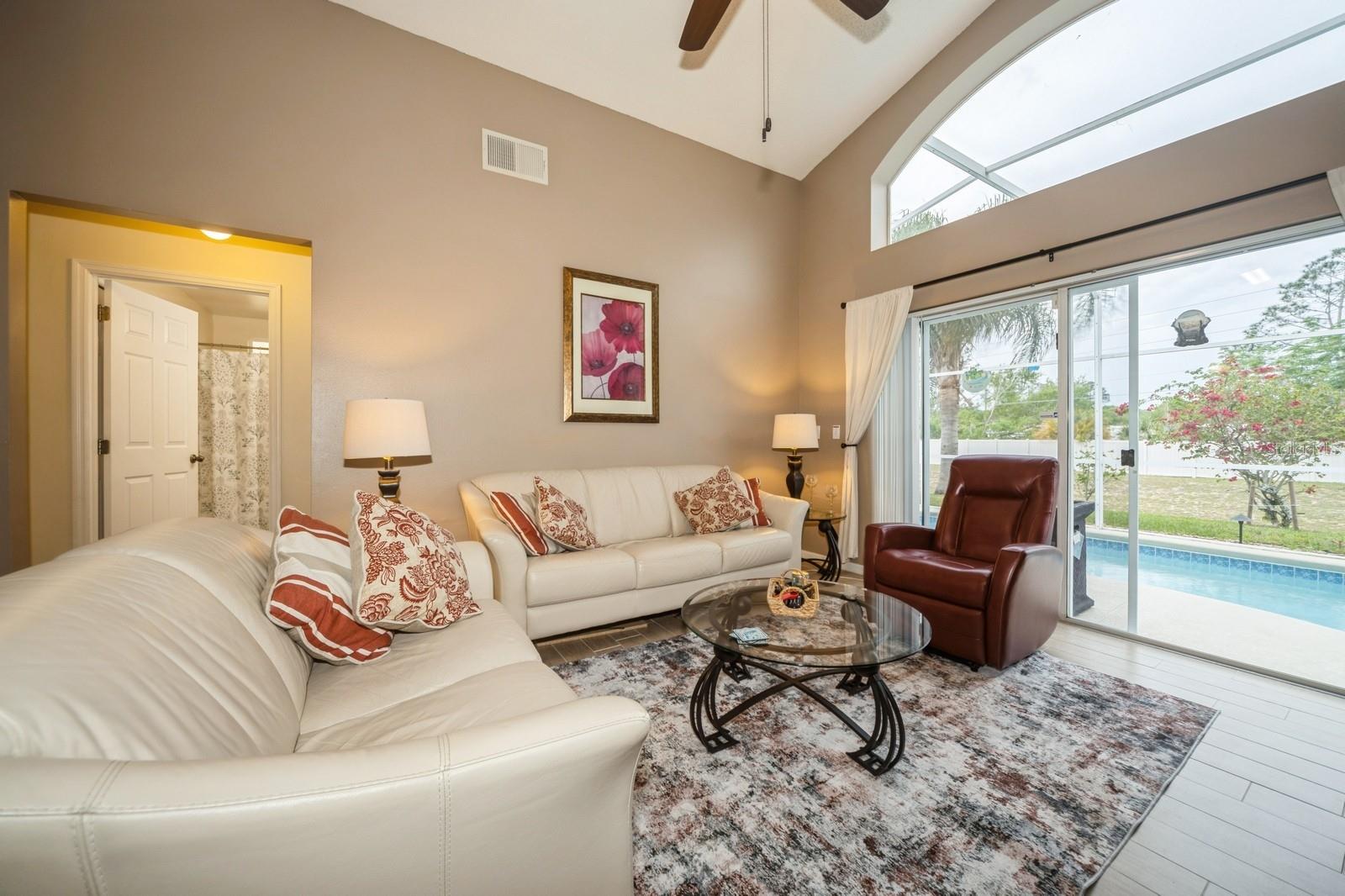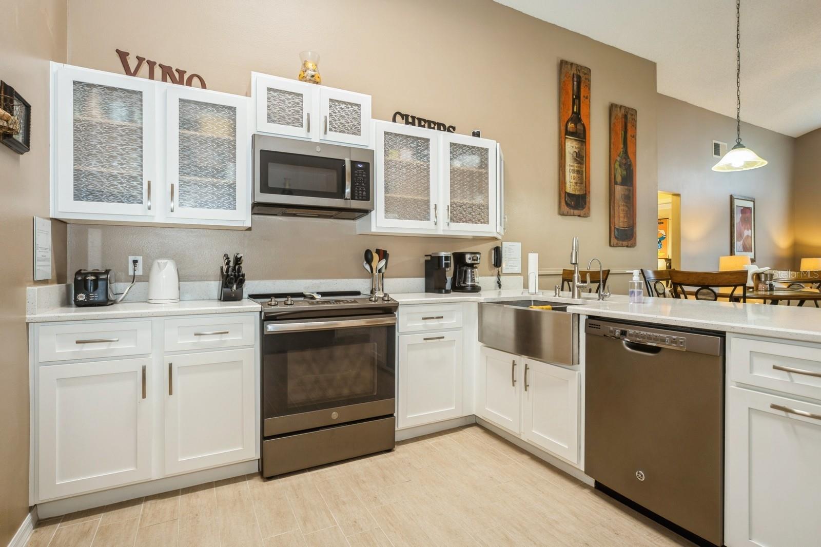 Single family home in gated community. 4 Bed, 2 Bath, 1940 sqft. Two car garage, private pool with screen enclosure. Recently remodeled to include all new floors, kitchen cabinets, quartz counters and appliances. Bathrooms updated with new floors, marble vanity tops. New roof 2017, new pool heater 2023, newer A/C. Zoned for short term rental , 20 minutes to Disney.