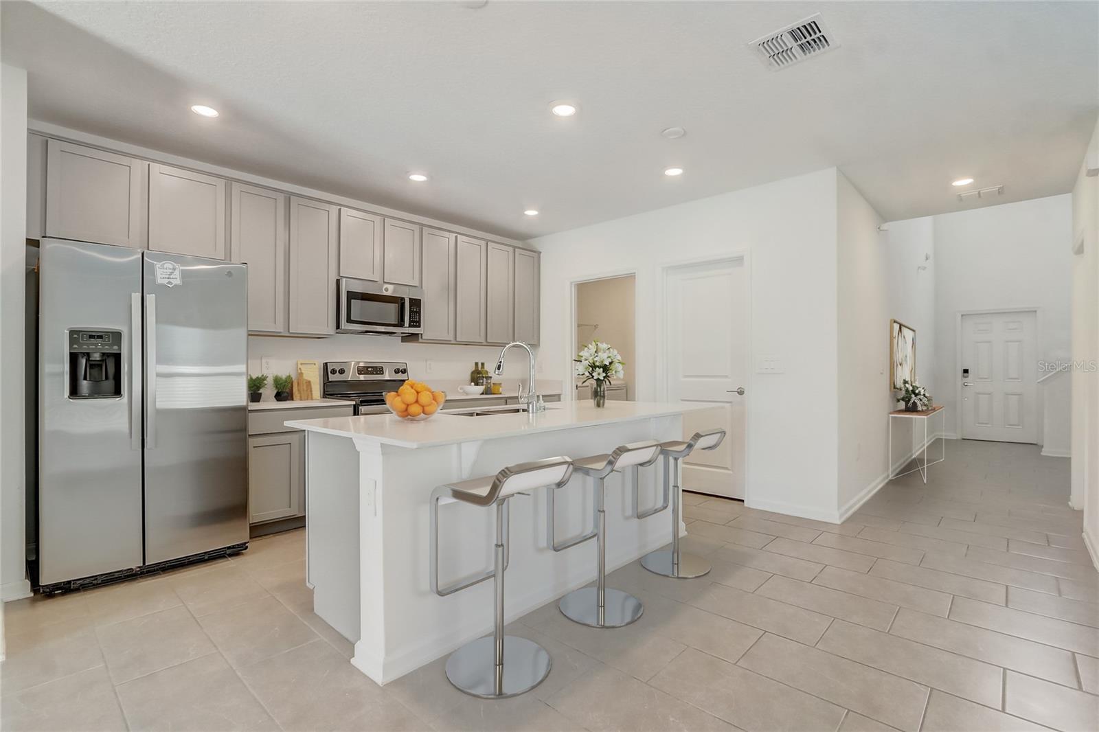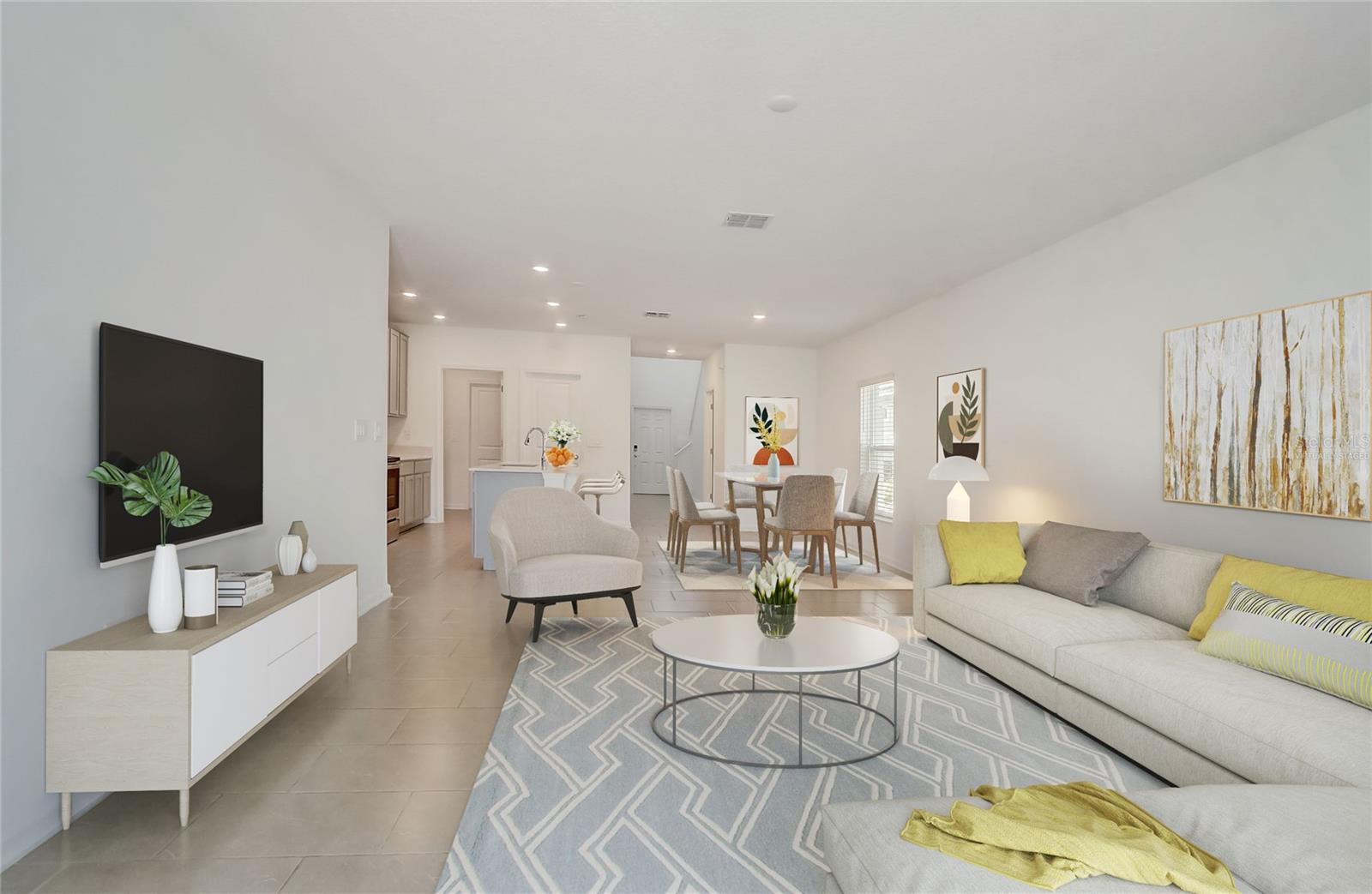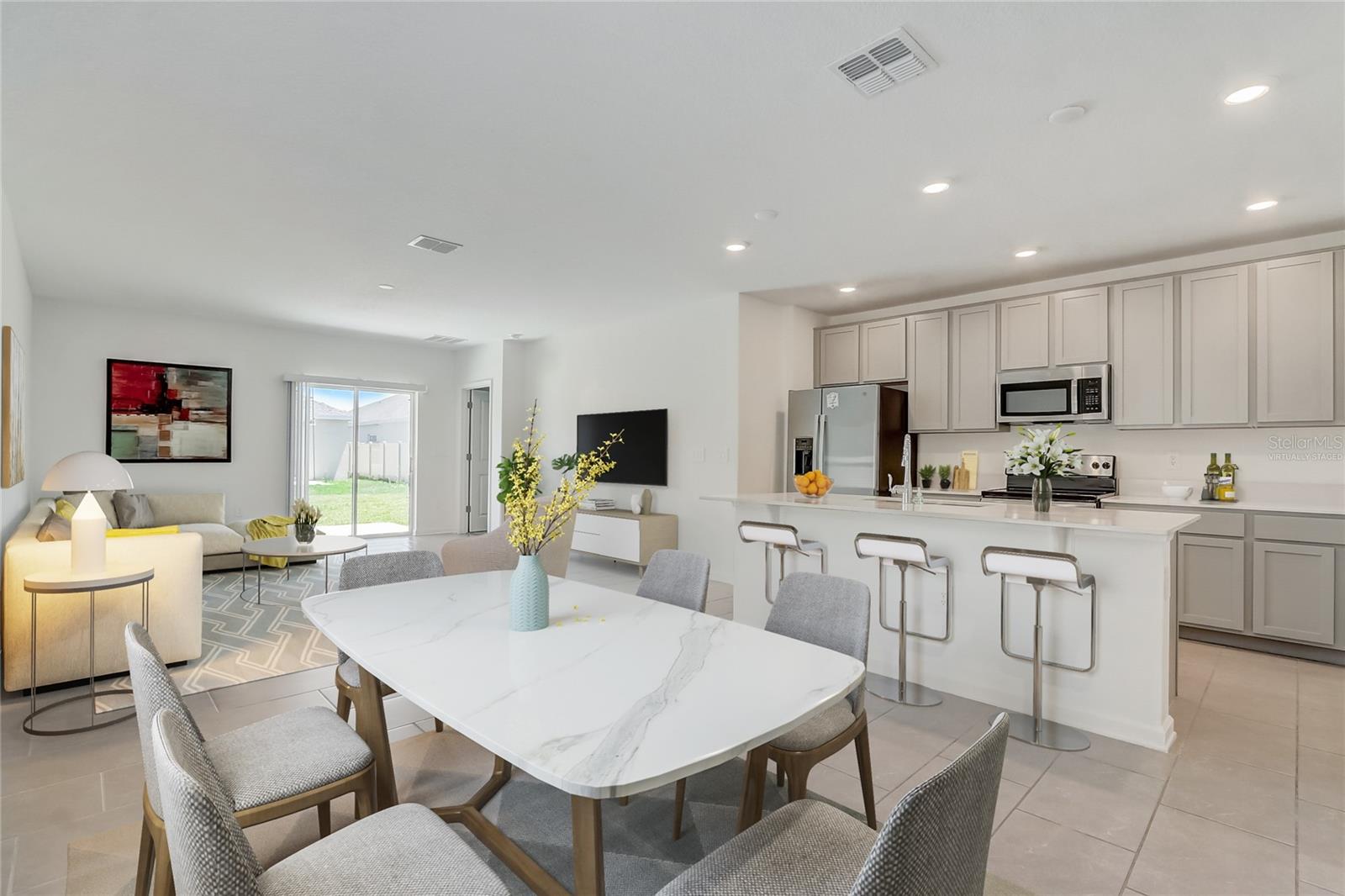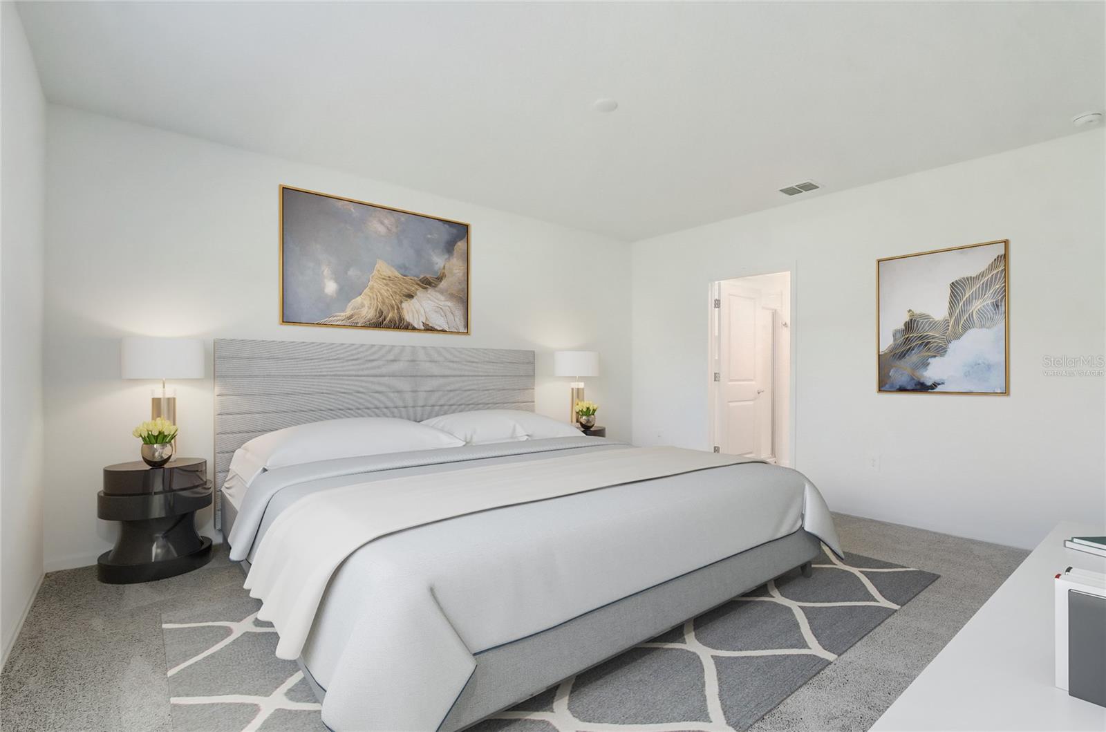 One or more photo(s) has been virtually staged. Step into luxury with this spacious 5 bedroom, 2.5 bathroom home designed for modern living. The primary bedroom conveniently located on the first floor, offers a retreat like space for relaxation and privacy. As you enter, you're greeted by an open-concept layout, perfect for entertaining guests or simply enjoying family time. The kitchen seamlessly flows into the living and dining areas, creating a welcoming atmosphere for gatherings. Upstairs, a big loft serves as a second living room, ideal for a play area or additional entertaining space. Four spacious bedrooms provide ample room for everyone to have their own comfortable space. One standout feature of this home is the leased solar panels, for efficiency and sustainability. Say goodbye to high electricity bills and hello to cost savings while reducing your environmental footprint. Outside the community amenities offers opportunity for recreation and socializing with loved ones. Take a leisurely stroll from your front porch and enjoy the nearby amenities, or simply relish a quiet day alone. Conveniently located near I4 and Posner Park, this home provides easy access to entertainment, shopping, and dining options. Whether you're seeking a night out or a day of relaxation, everything you need is within reach. Welcome home to a blend of comfort, style, and convenience.