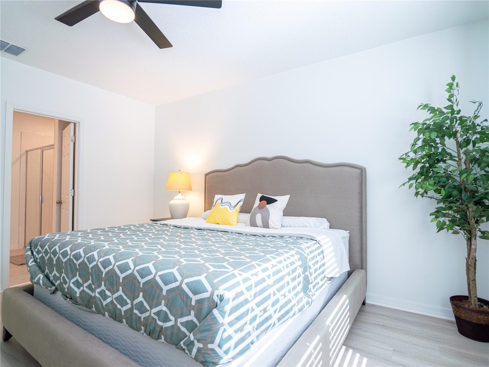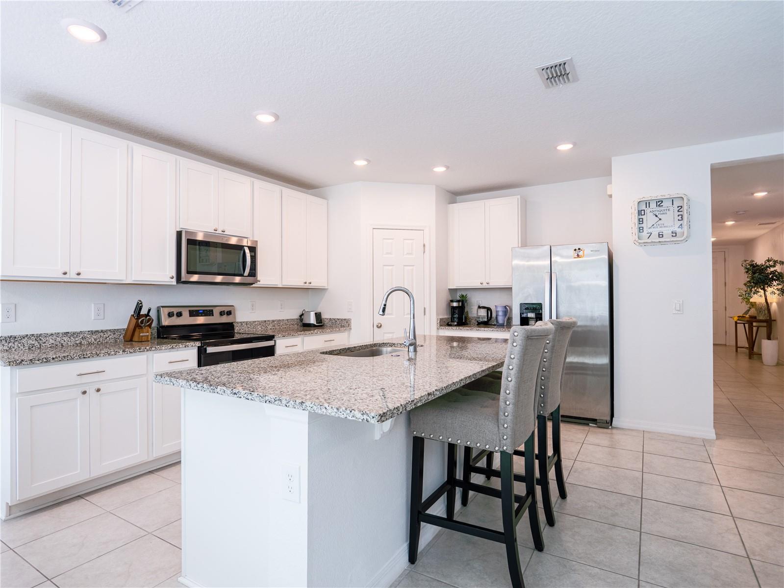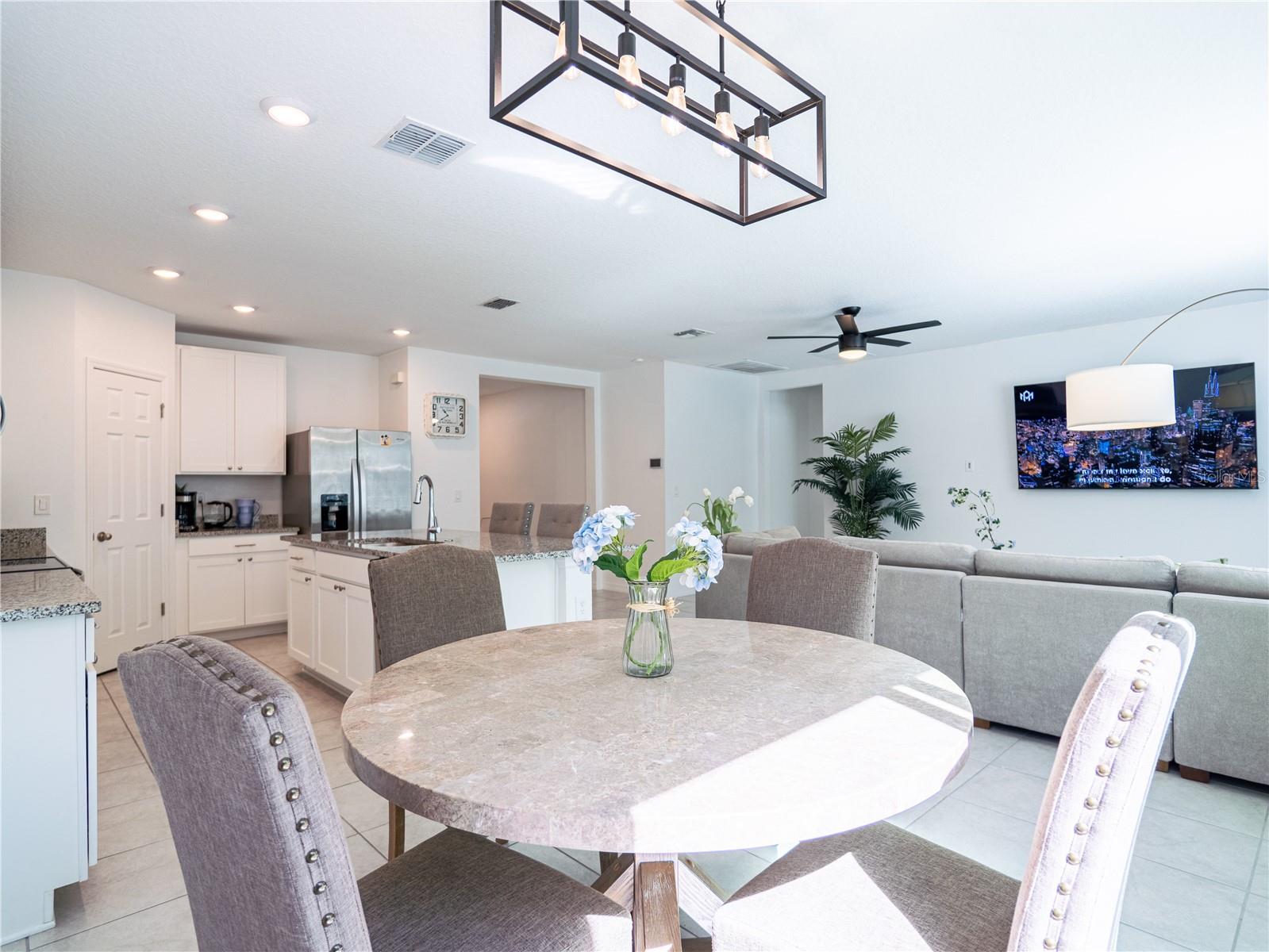 Explore this beautiful 4-bedroom, 3-bath home in Davenport, Florida, designed with an open concept that enhances the spacious feel and flow of the living areas. Enjoy stunning conservation views from the master suite and main living space, creating a serene backdrop for both relaxation and entertainment. This eco-friendly residence is equipped with solar panels, reducing your utility bills and supporting a sustainable lifestyle. The large gourmet kitchen opens seamlessly into the living areas, perfect for gatherings and everyday dining. Featuring a built-in fence for added privacy and security, this home is ideal for those seeking both tranquility and a safe environment. Its prime location offers convenient access to famous attractions like Walt Disney World and Universal Studios, with the Gulf Coast beaches just a short drive away. Ready to fall in love with this peaceful sanctuary? Schedule your private showing today and discover the perfect blend of comfort, style, and eco-conscious living.