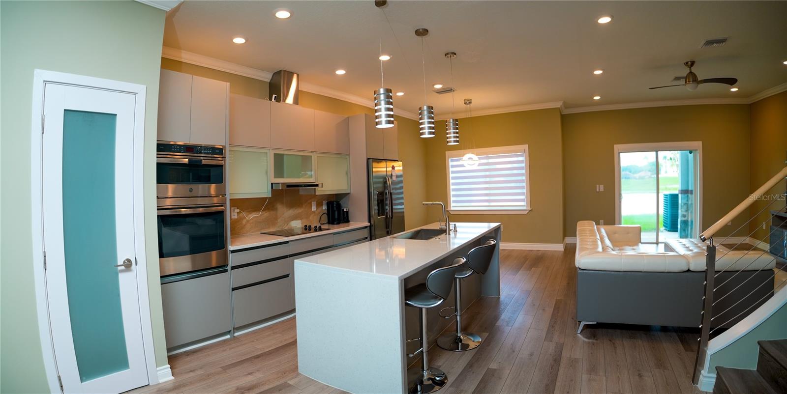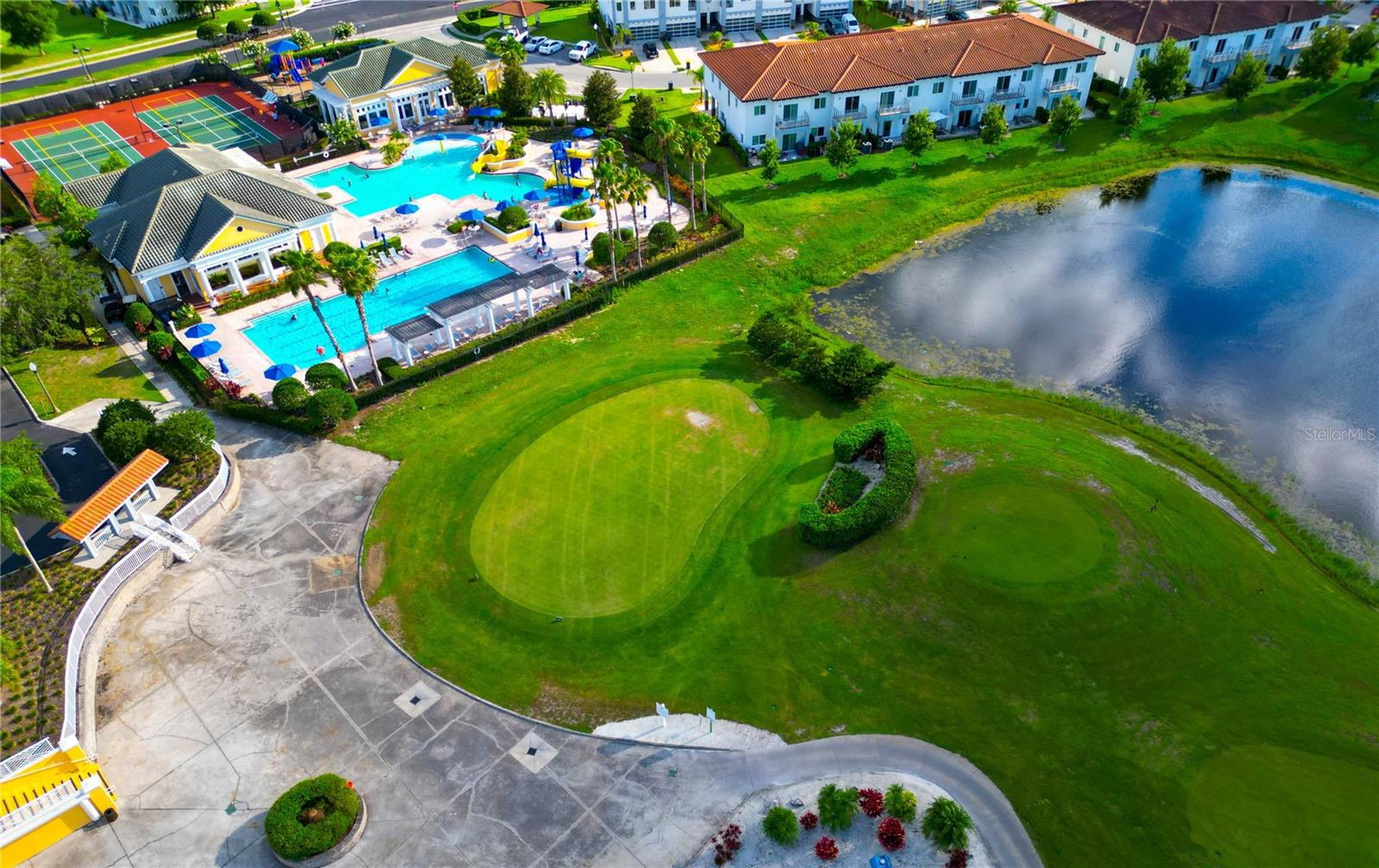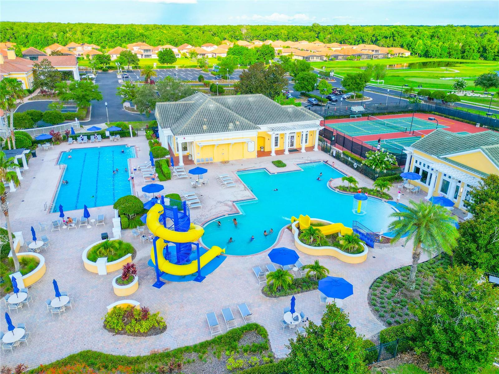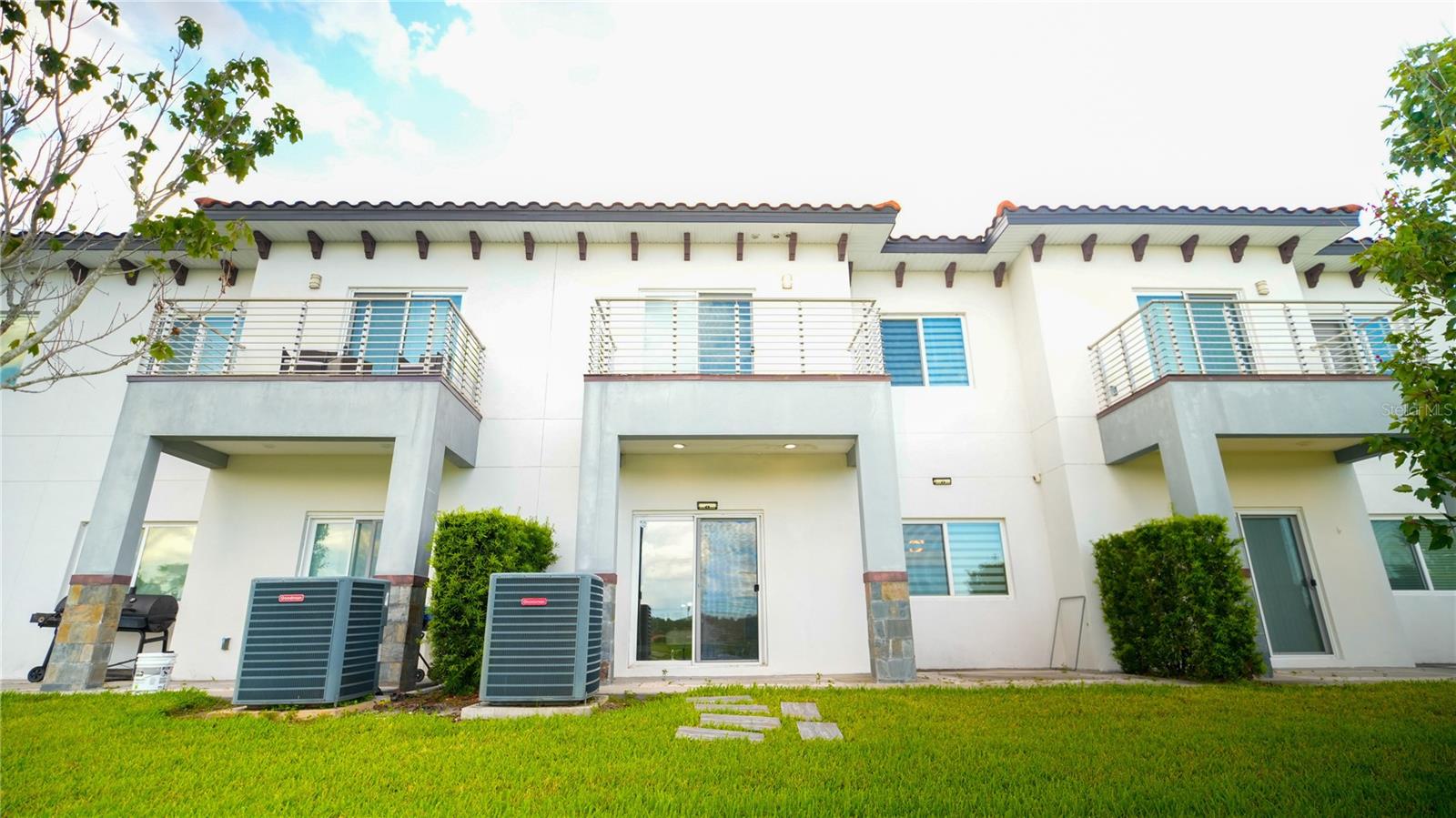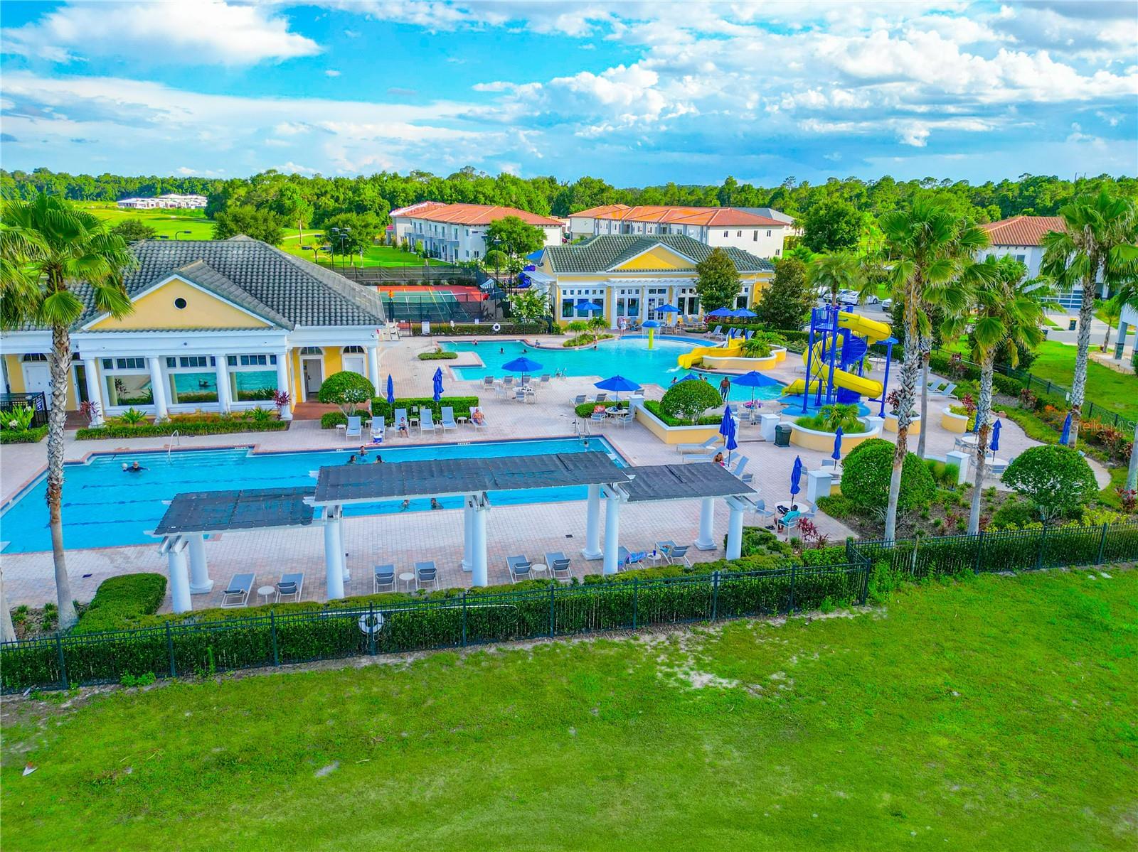 Excellent opportunity for buyer’s agent. Ask listing agent. Prime Location! Move-In Ready! Furniture can be negotiated. No CDD Fees - HOA $209! Nearly new, contemporary luxury home. Open floor plan. The stunning kitchen features waterfall-style countertops, a top-of-the-line built-in appliance package, elegant crown molding, baseboards throughout, marble backsplashes, and sleek Swedish design cabinets and vanities. This exquisite townhome, constructed with 2 stories of solid block, offers 3 bedrooms, 2.5 bathrooms, a laundry room, and a two-car garage. Thoughtfully designed for functionality and efficiency, the first floor comprises an open kitchen, dining area, and living space, while the second floor houses 3 bedrooms, a generous loft, 2 beautifully appointed full baths, and a separate laundry room with a utility sink and washer/dryer. The primary bedroom suite boasts a tray ceiling with recessed lighting, a walk-in closet, a freestanding Roman tub, a spacious walk-in frameless shower, and stylish under-lit sinks. Our community features an 18-hole designer golf course designed by Michael Dasher, just a 15-minute drive from Disney World. Enjoy the convenience of walking to community amenities and the clubhouse, with easy access to shopping and major highways. Experience the joy and reality of owning your dream home today!