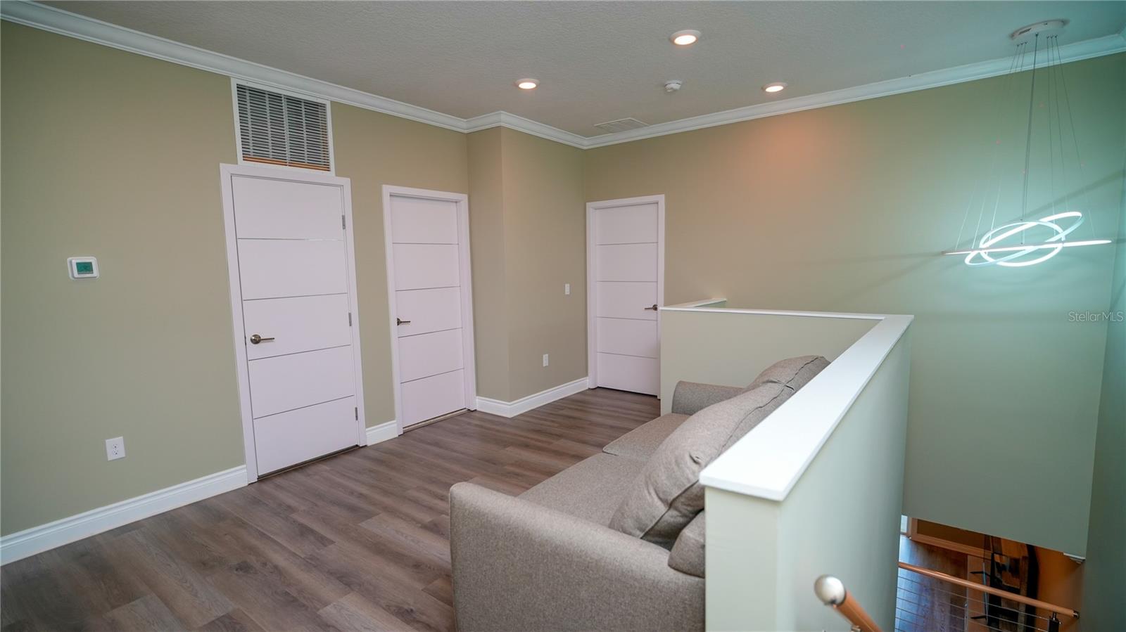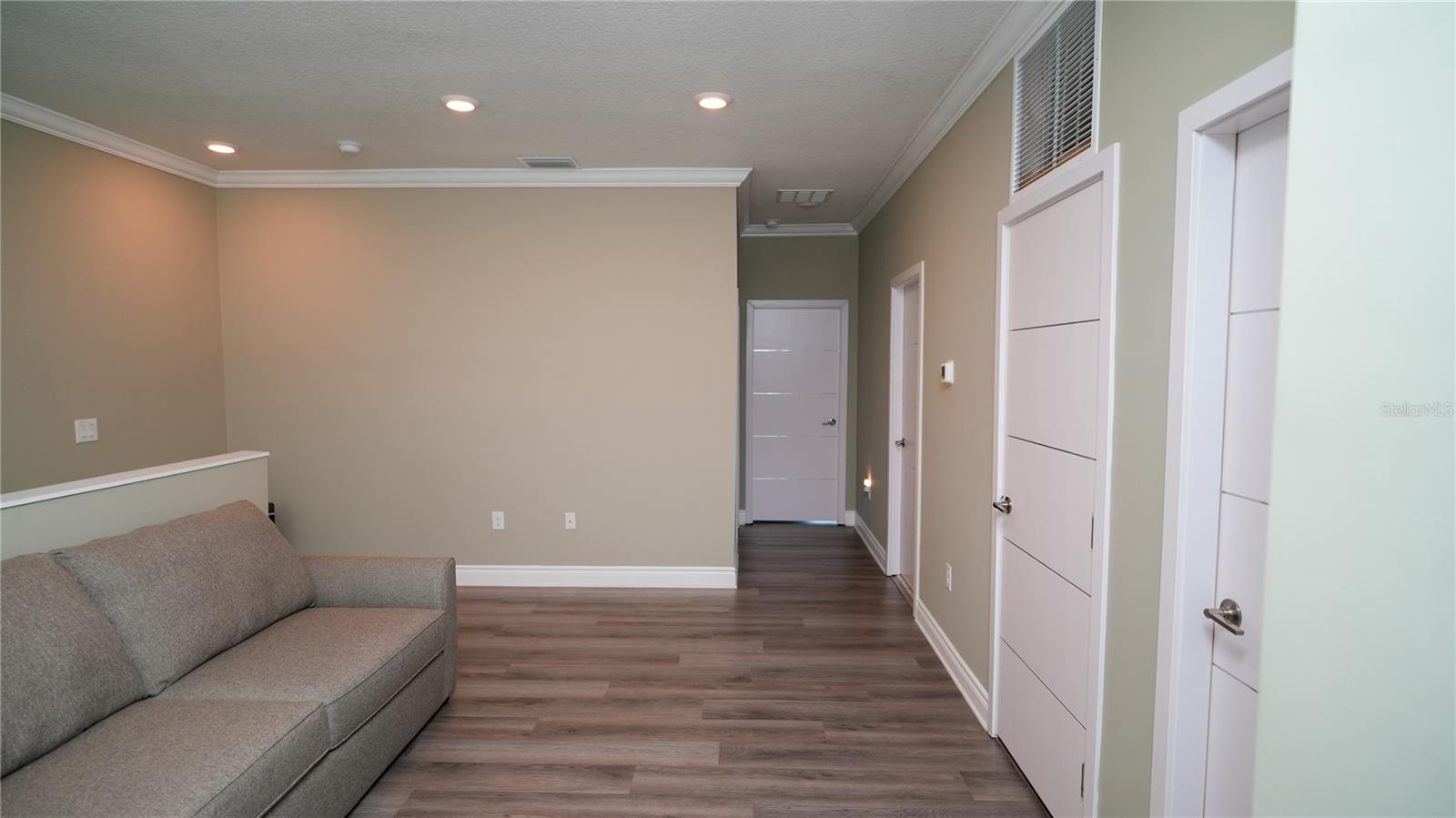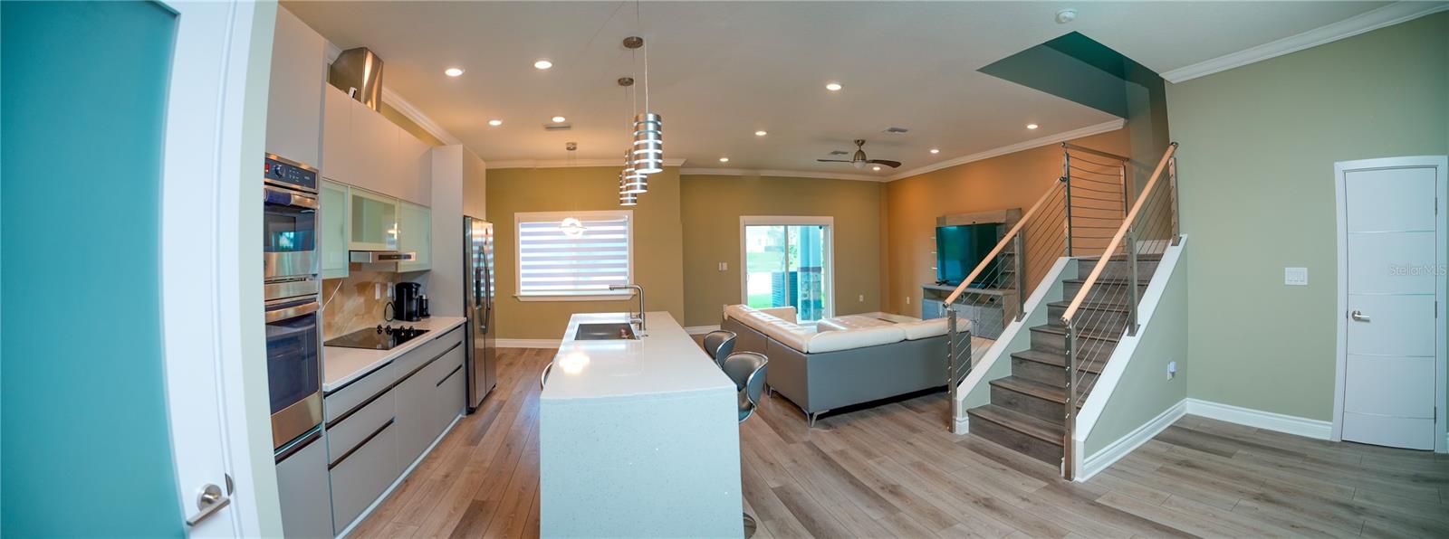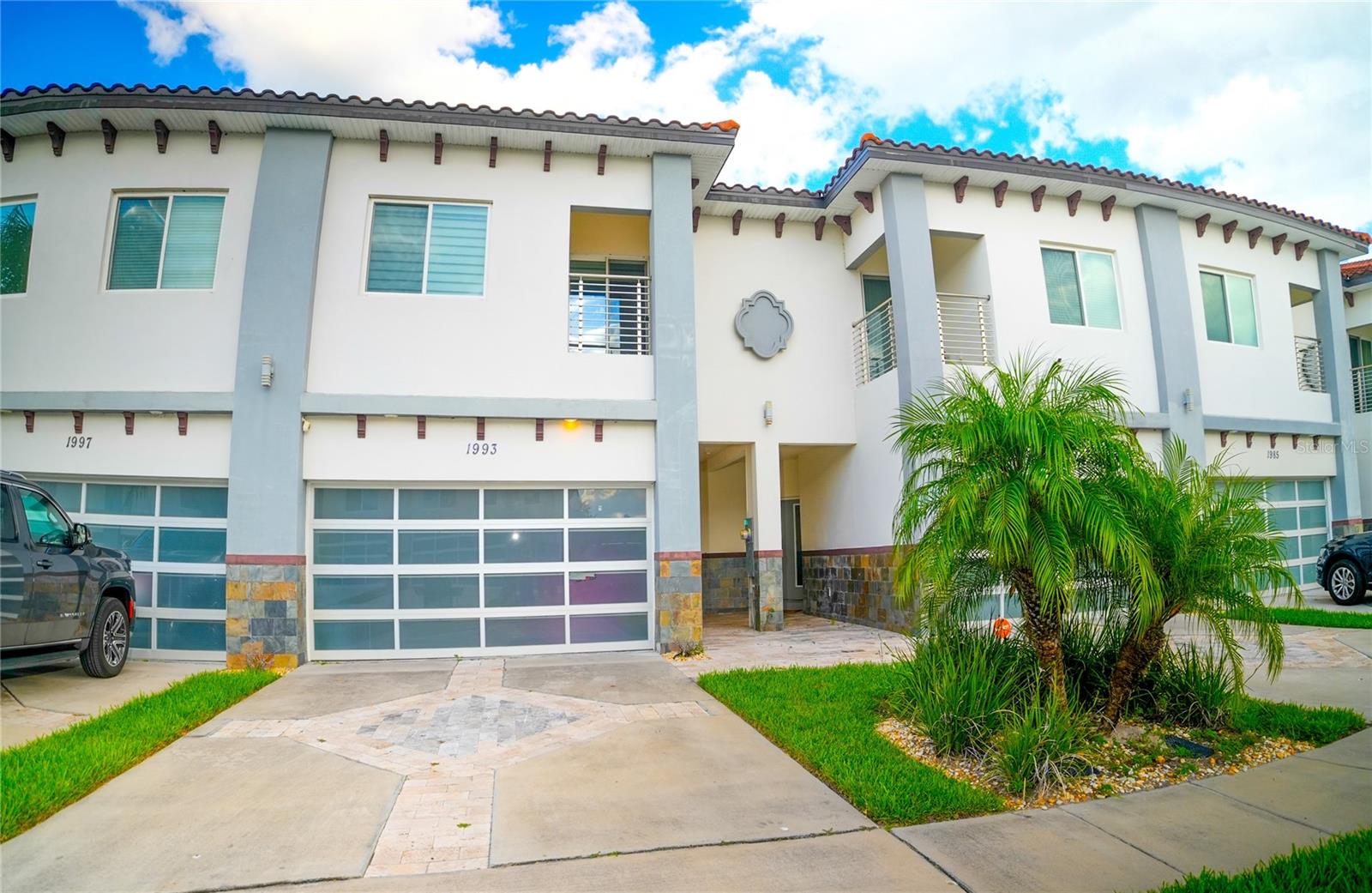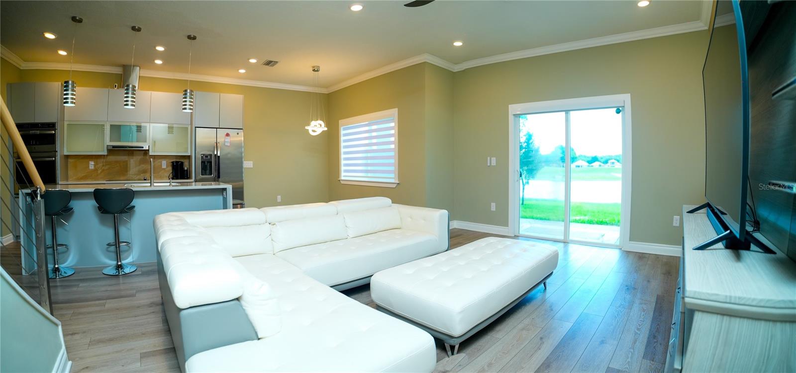 Excellent opportunity for buyer’s agent. Ask listing agent. Prime Location! Move-In Ready! Furniture can be negotiated. No CDD Fees - HOA $209! Nearly new, contemporary luxury home. Open floor plan. The stunning kitchen features waterfall-style countertops, a top-of-the-line built-in appliance package, elegant crown molding, baseboards throughout, marble backsplashes, and sleek Swedish design cabinets and vanities. This exquisite townhome, constructed with 2 stories of solid block, offers 3 bedrooms, 2.5 bathrooms, a laundry room, and a two-car garage. Thoughtfully designed for functionality and efficiency, the first floor comprises an open kitchen, dining area, and living space, while the second floor houses 3 bedrooms, a generous loft, 2 beautifully appointed full baths, and a separate laundry room with a utility sink and washer/dryer. The primary bedroom suite boasts a tray ceiling with recessed lighting, a walk-in closet, a freestanding Roman tub, a spacious walk-in frameless shower, and stylish under-lit sinks. Our community features an 18-hole designer golf course designed by Michael Dasher, just a 15-minute drive from Disney World. Enjoy the convenience of walking to community amenities and the clubhouse, with easy access to shopping and major highways. Experience the joy and reality of owning your dream home today!