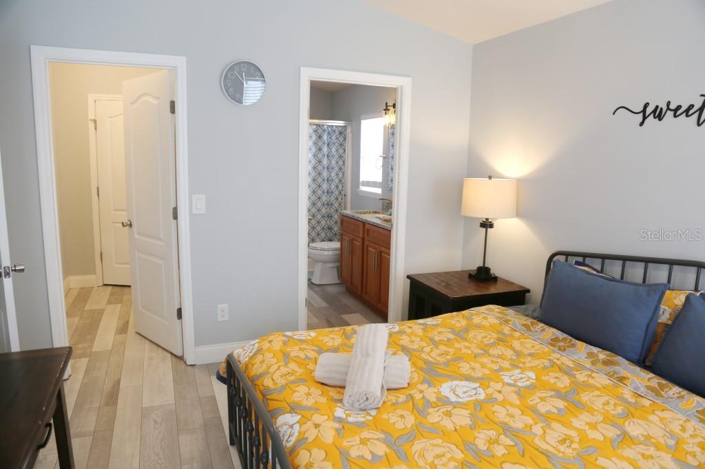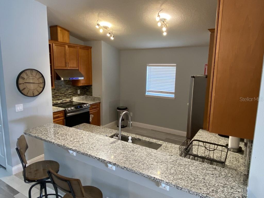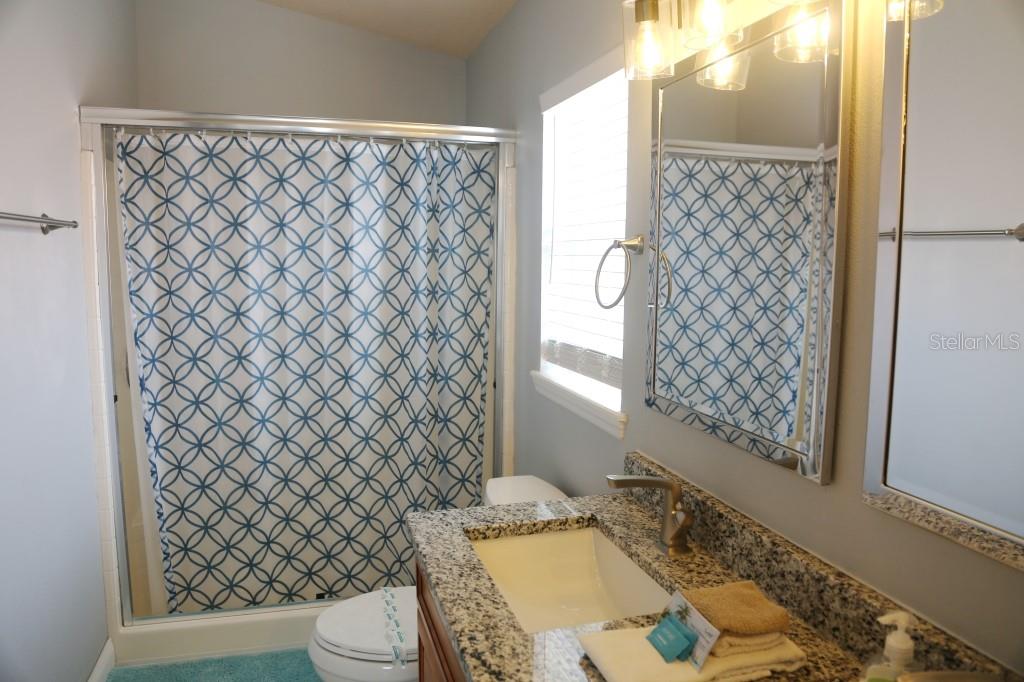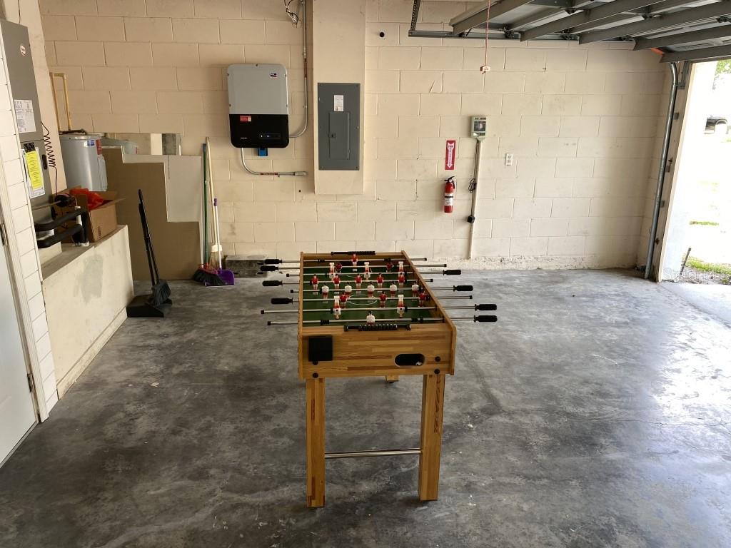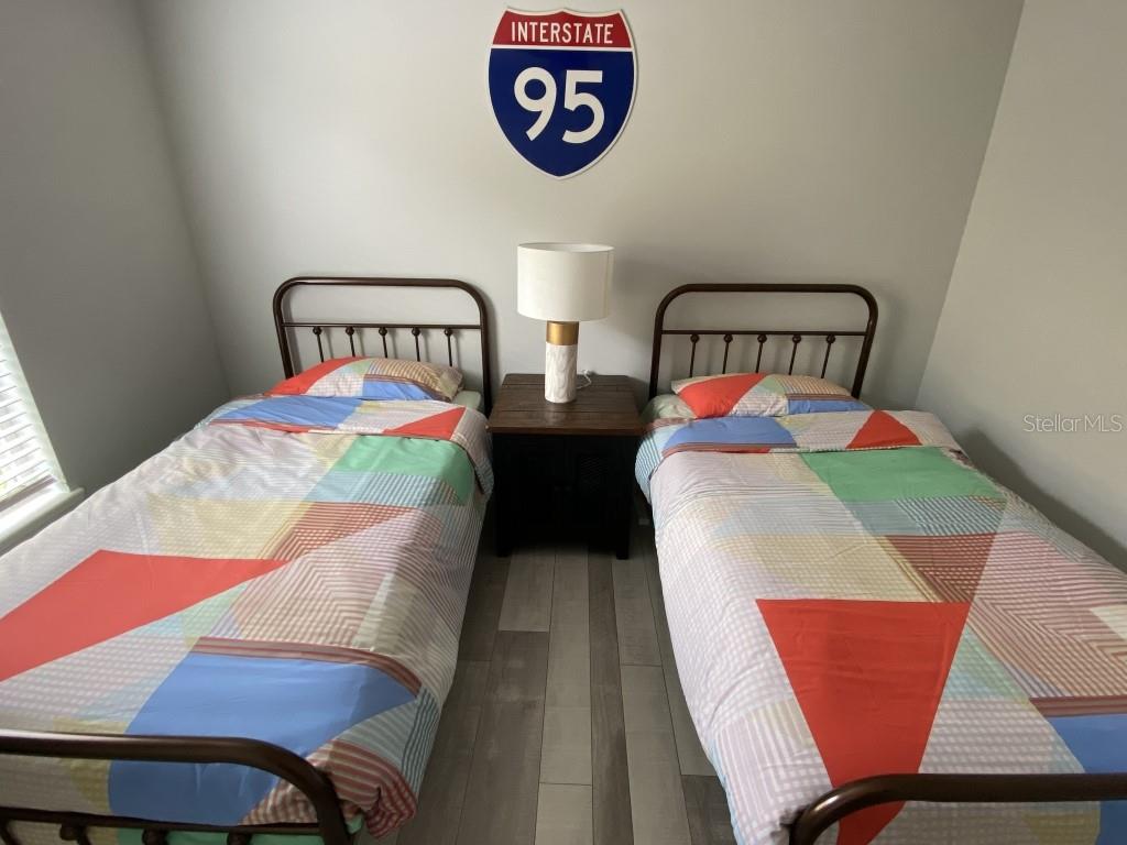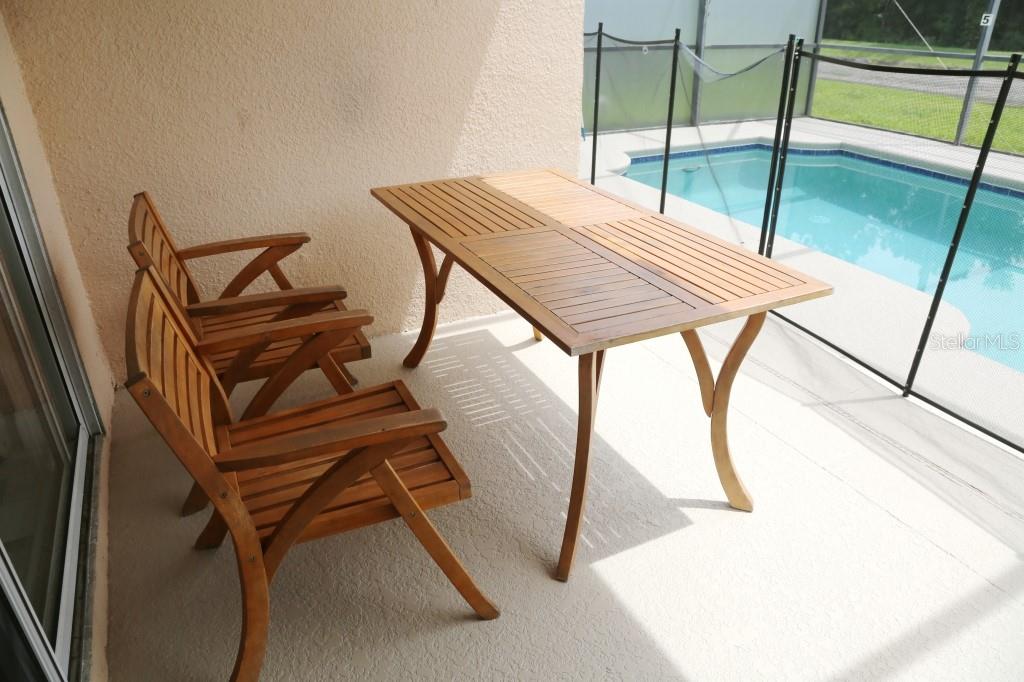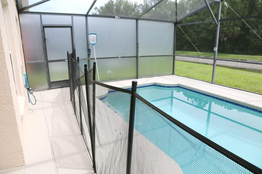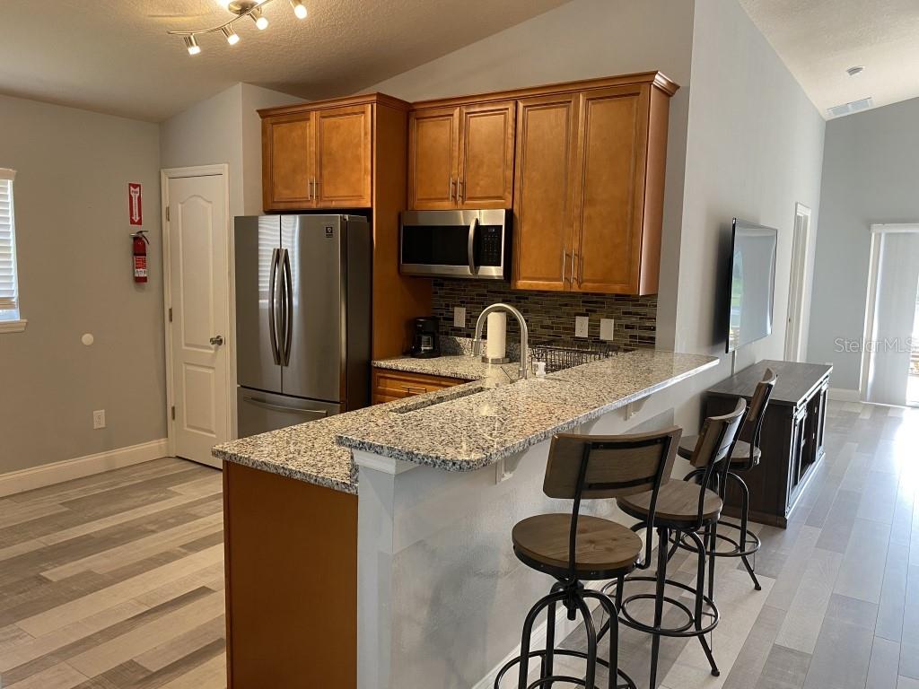 Stunning 5 bed/3 bath POOL house with game room, a truly luxurious interior and a fantastic location just 13 miles from Disney. Property sold as FULLY FURNISHED for a smooth transition to continue operating as a successful vacation rental, or just move in directly as your next full time home! This is a ONE STOREY detached single family house, with NO STEPS to climb. Property has NO REAR NEIGHBORS, backing up to a small pond, very peaceful and quiet. Some highlights: - Entire solar system is fully paid off, easily a $15k value! - Roof less than 5 years old - Pool heater around 3 years old - AC around 5~6 years old - entire pool deck just painted, looking brand new Impressive new vinyl plank floors throughout. Beautiful GRANITE countertops in kitchen and all bathrooms. Kitchen also features 42 inch soft close cabinets, Samsung stainless steel appliances, vent hood, and premium backsplash. Open concept kitchen so you can still interact with everyone in the dining area and living room while cooking. Master bedroom has a King size bed, double sink bathroom, a very large walk in closet with another lockout closet for extra storage, an office desk, and a wall mounted Samsung smart TV. 2nd Master has a Queen size bed, and it also provides an office desk, and a wall mounted Samsung smart TV. All toilets in the house are Kohler soft close toilet seats. Garage can be used as a game room with a foosball table provided. It also has a spacious closet that can store lots of tools and materials.