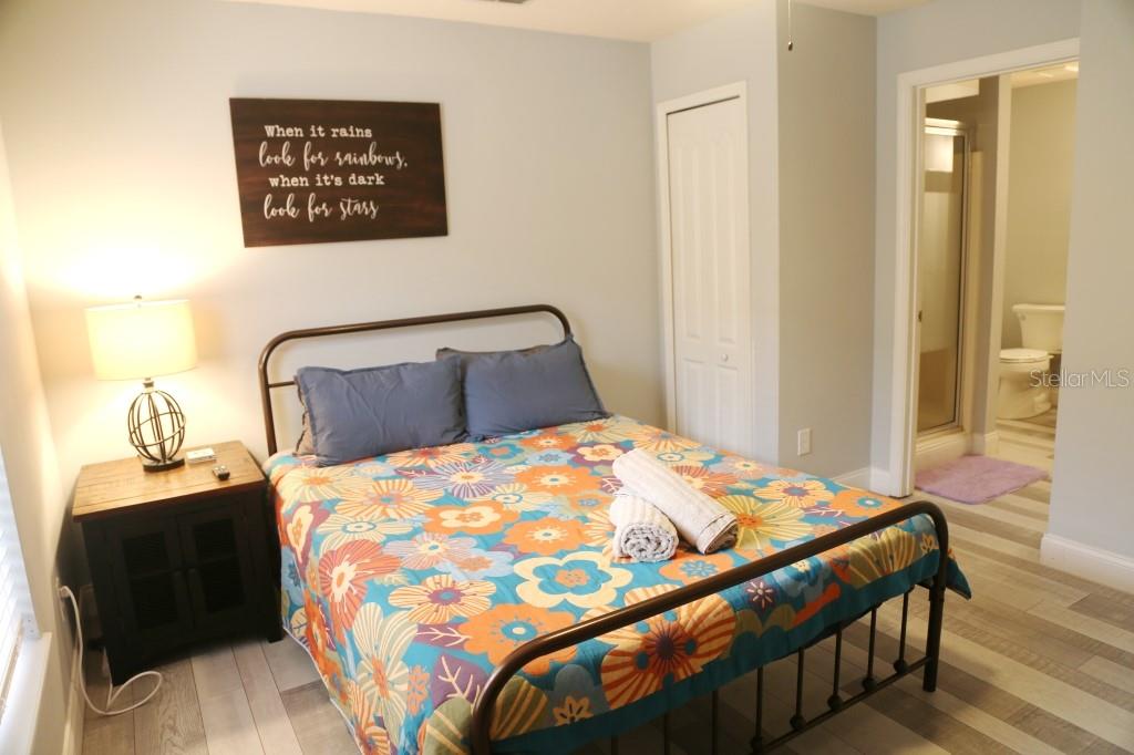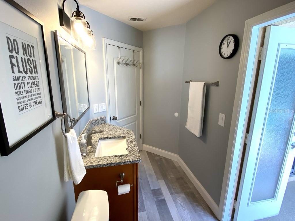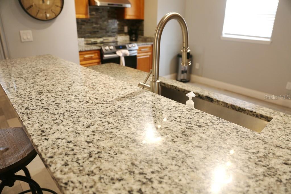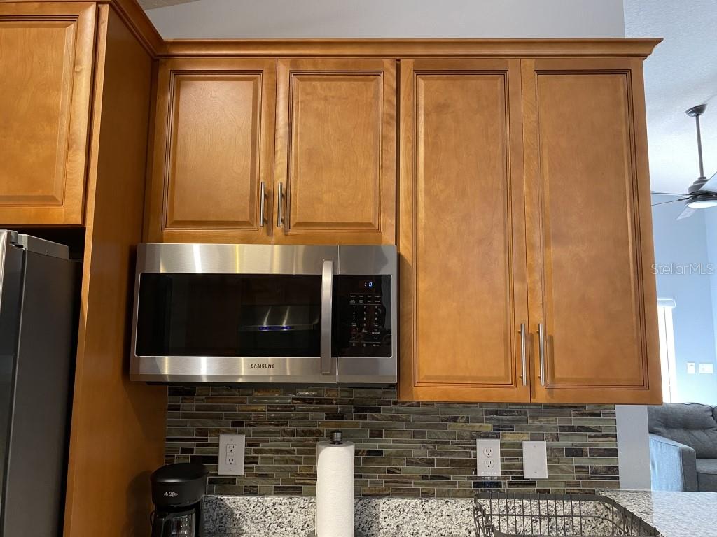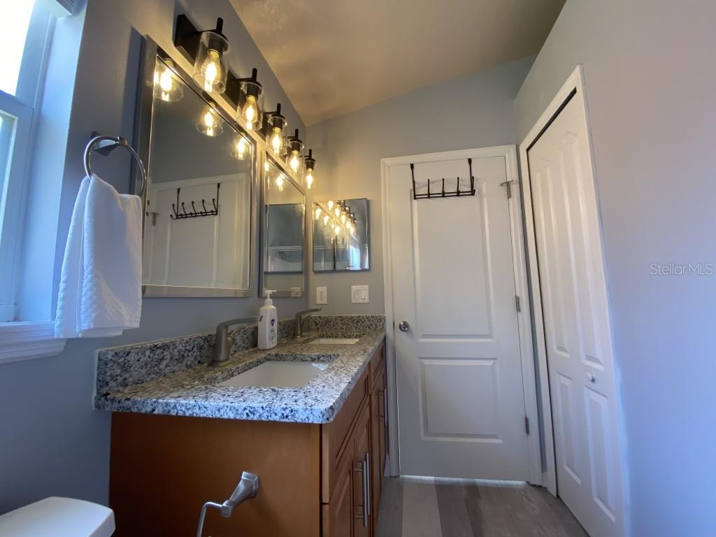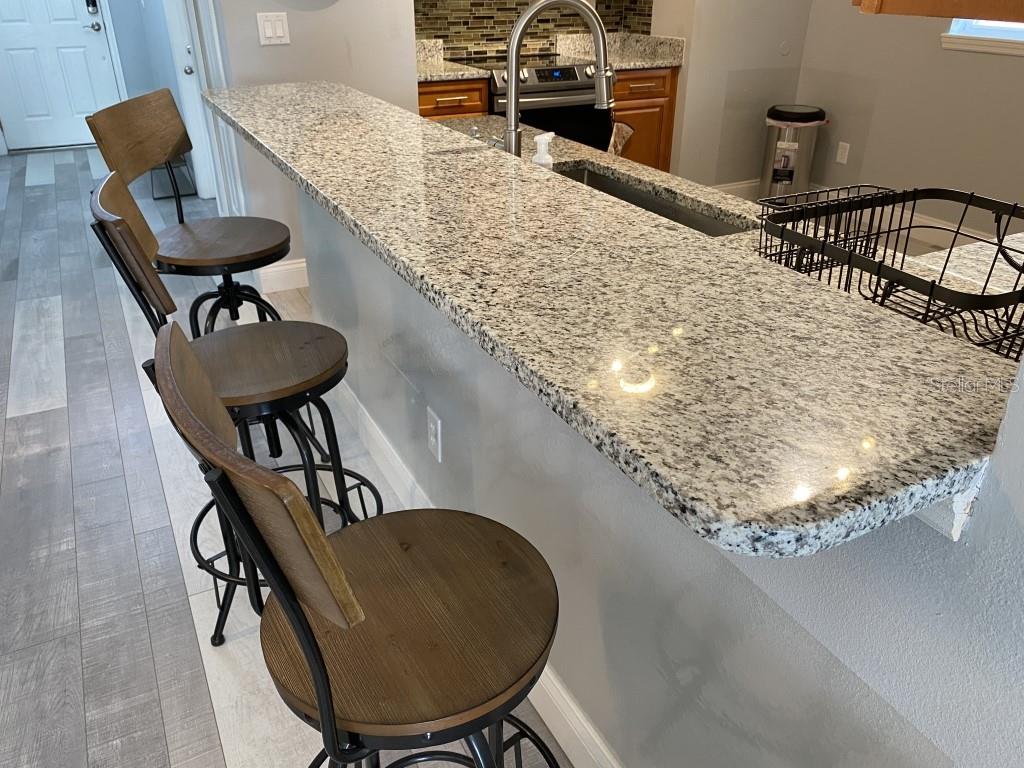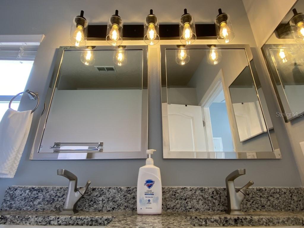 Stunning 5 bed/3 bath POOL house with game room, a truly luxurious interior and a fantastic location just 13 miles from Disney. Property sold as FULLY FURNISHED for a smooth transition to continue operating as a successful vacation rental, or just move in directly as your next full time home! This is a ONE STOREY detached single family house, with NO STEPS to climb. Property has NO REAR NEIGHBORS, backing up to a small pond, very peaceful and quiet. Some highlights: - Entire solar system is fully paid off, easily a $15k value! - Roof less than 5 years old - Pool heater around 3 years old - AC around 5~6 years old - entire pool deck just painted, looking brand new Impressive new vinyl plank floors throughout. Beautiful GRANITE countertops in kitchen and all bathrooms. Kitchen also features 42 inch soft close cabinets, Samsung stainless steel appliances, vent hood, and premium backsplash. Open concept kitchen so you can still interact with everyone in the dining area and living room while cooking. Master bedroom has a King size bed, double sink bathroom, a very large walk in closet with another lockout closet for extra storage, an office desk, and a wall mounted Samsung smart TV. 2nd Master has a Queen size bed, and it also provides an office desk, and a wall mounted Samsung smart TV. All toilets in the house are Kohler soft close toilet seats. Garage can be used as a game room with a foosball table provided. It also has a spacious closet that can store lots of tools and materials.
