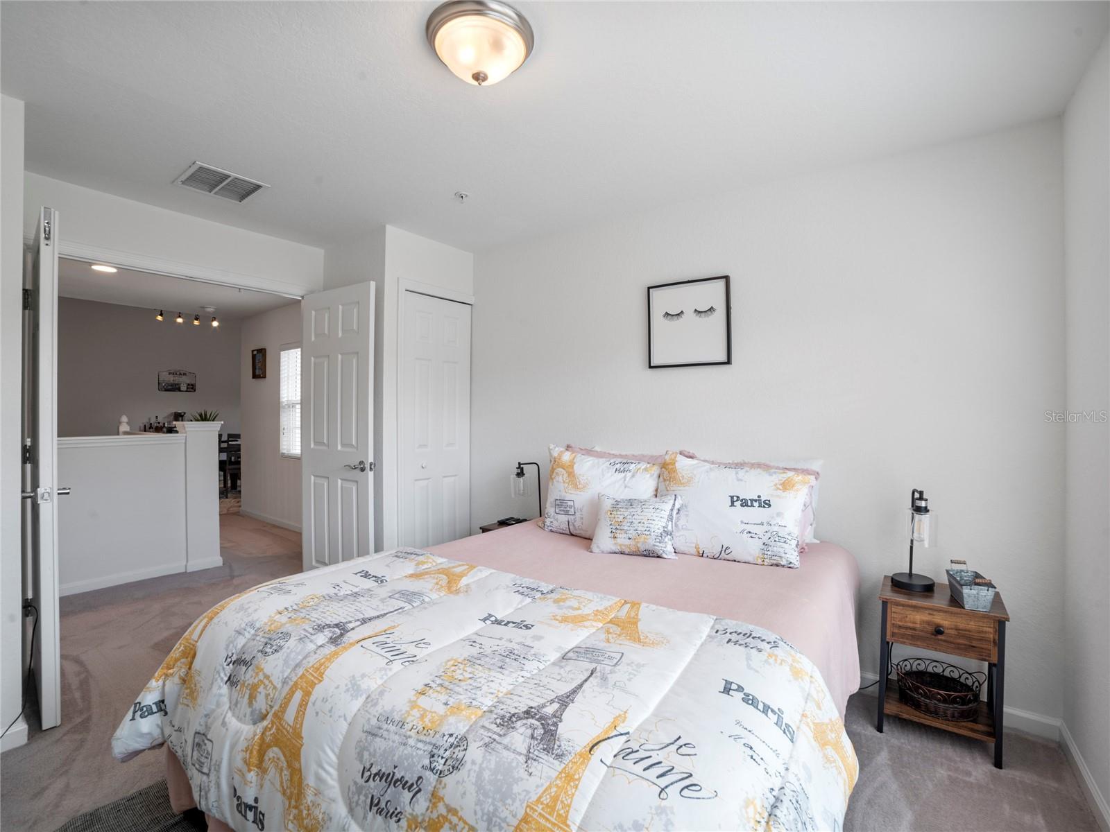 The Seller is offering a $5,000 Closing Cost Credit! A Luxurious, Elegant, Tropical Paradise for the discerning buyer. The rich timeless Mediterranean architecture at Bella Trae is conveniently located near the "Four Corners" of Orange, Polk, Osceola and Lake counties surrounded by resorts, theme parks, great shopping, business and more. This Cormorant model is a 2 story 2bd/2ba/den/1,893 sq ft Carriage home design w/vaulted ceilings throughout. The split bedroom layout offers privacy for the master bedroom w/tranquil view at the backside of this beautiful home. The second bedroom can be used as a 2nd master suite for guests. A spacious great room w/triple panel sliding doors that lead to a covered/screened lanai giving it a spacious feel. Kitchen features 42"maple upper cabinets, black appliances, Corian countertops with integrated sink. The en suite master bathroom has a large walk-in shower, white cabinet vanities with cultured marble countertop. The 3rd room is great to use as an office or den also with double doors. The second and third bedrooms share a bathroom with a tub/shower combo. Brick paver driveway and walkway lead to courtyard entrance. The community features a 24hr gated entrance, a beautiful 12,500 sq ft clubhouse, w/multi-functional rooms utilized for a myriad of activities such as billiards, cards, crafts, socializing and more. An activities director is on site for setting up clubs and activities. The resort styled heated pool is designed for both socializing as well as exercising. Then you can wind down in the spa to relax after a long day. The fitness center is stocked w/state of the art fitness equipment. A great place to enjoy as your primary residence or second vacation home. Cable, Phone and internet in HOA fees. Brand New Compressor and Air Handler May 2024, Ducts Cleaned May 2024, Hot Water Heater May 2024, Garbage Disposal 2023.