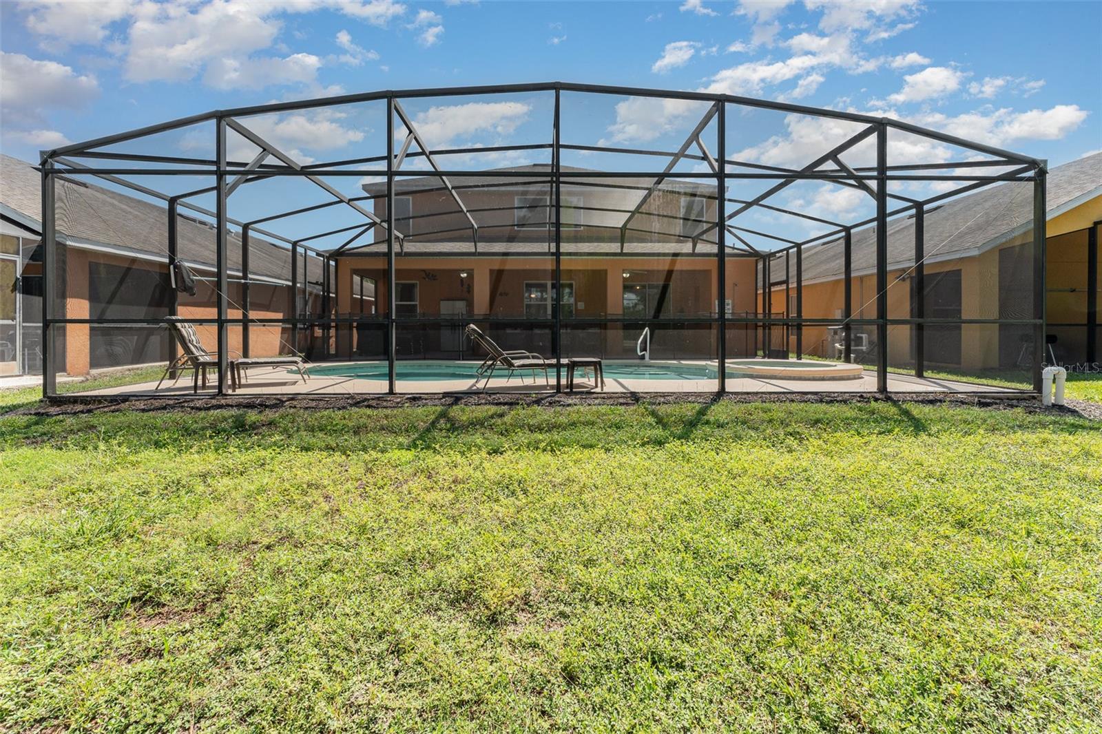 Welcome to your turnkey dream home, a beautifully furnished 5-bedroom, 2 full-bath, and 1 half-bath retreat with 2,861 sq. ft. of luxurious living space. Located on a serene preserve-view lot, this residence offers both tranquility and modern comfort in one stunning package. Step inside to an open-concept layout filled with natural light, where soaring ceilings and high-end finishes create an inviting atmosphere. The first-floor primary suite provides a private sanctuary with a spa-like ensuite featuring a soaking tub and walk-in shower. Upstairs, five additional bedrooms, including three more ensuite bedrooms, offer plenty of space for family and guests. A cozy upstairs nook offers extra room for relaxation or entertainment. The gourmet kitchen, complete with premium appliances and a central island, is perfect for hosting, while the spacious living areas flow seamlessly to the outdoor oasis. Step outside to your private screened-in pool and Spa, surrounded by an extended deck with ample seating for lounging, dining, and enjoying Florida’s year-round sunshine. A half bath on the pool deck adds to the convenience and enjoyment. Backing onto a lush conservation area, the home provides complete privacy with no rear neighbors, your personal sanctuary. For added fun, the garage has been transformed into a game room, perfect for family gatherings or rental appeal. This property is zoned for both short-term rentals and residential living, making it an ideal investment, or a family vacation home. Watersong Resort is a gated community, and the community center, which offers top-notch amenities, including a clubhouse, fitness center, resort-style pool, and volleyball court are right across the street! All of this and it’s just a short drive from world-class attractions like Disney, SeaWorld, Universal Studios, Legoland and others. Whether you're looking for a peaceful retreat, an income-producing property, or a family home, this turnkey gem has it all. Don’t miss the opportunity to own this piece of paradise, schedule your private tour now!