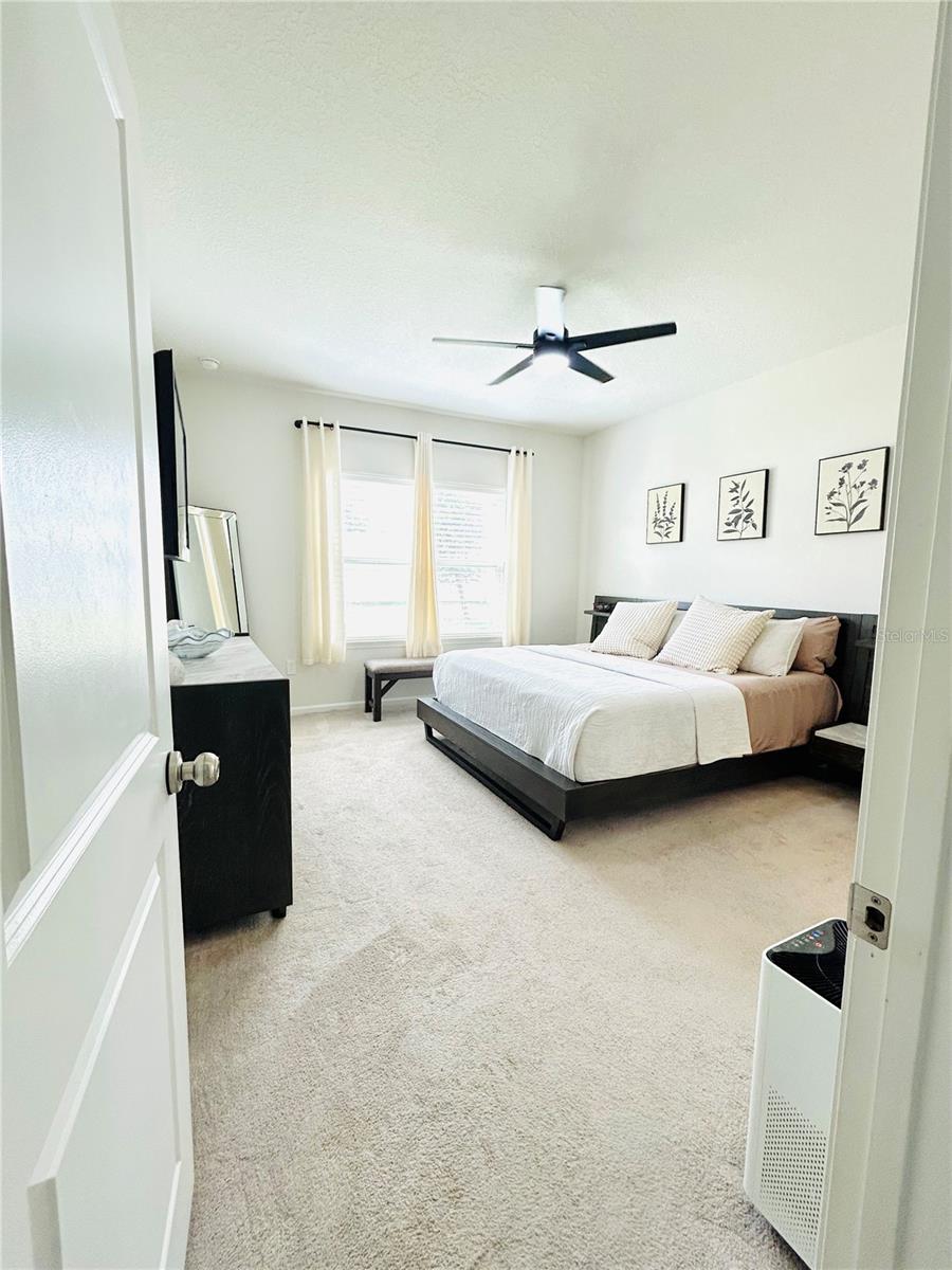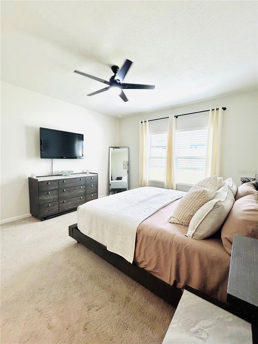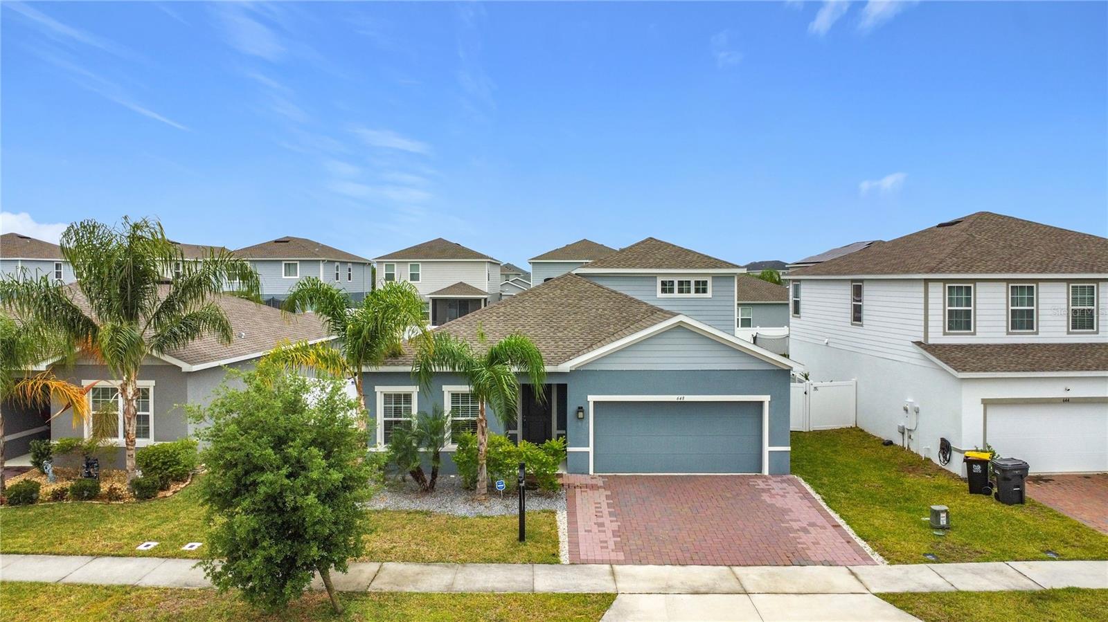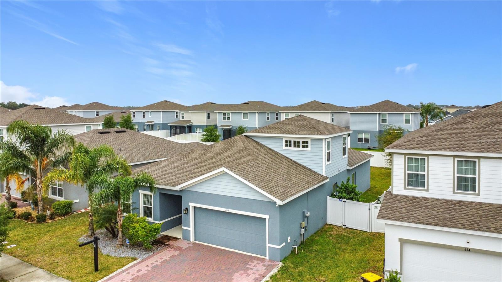 !!!PRICE IMPROVEMENT!!! Welcome to this ABSOLUTELY GORGEOUS HOME! As you pull up you will see an extended Cobblestone driveway, gravel stoned front garden with a well manicured lawn. Facing a conservation pond to enjoy a nice sunset or full moon over the water. This home is JUST A COUPLE YEARS PAST NEW! The most popular Floorplan with only 6 built in the entire neighborhood. The home has the look of a single story but with an upstairs level above half of the home to be used for entertaining, a game-room or for an older child living/visiting that need their own space. You’ll walk in to see a spacious foyer area long enough to create an Art Gallery on the walls leading into the perfect space of comfort and peace! It offers a middle lower level flex area the can be transitioned into a 4th bedroom if needed or a MOTIVATING HOME GYM. The kitchen features a double gourmet oven, decorative backsplash behind the glass top stove and custom honeycomb tile underneath the bar area. Very spacious fenced in backyard to let your imagination run free to create the perfect paradise right out back of your own home! Equipped with some of the latest technology such as Google nest A/C on both floors, Wiz light features in the bedrooms with app controls to change colors to set the mood you're in…and an alarm system with camera already in place for your safety monitoring The Primary bedroom is the perfect size for you with an En Suite bthroom to enjoy your warm soak in an upgraded garden tub, separate shower with built in bench, double sink vanity and toilet perfectly placed behind a privacy wall. Located in Astonia an ALL AGE friendly community no matter if you're an empty nester, have fur babies or real babies that will keep you on your feet at the dog park, playground or in a Resort Style swimming pool to work the heart and lungs or on those tan lines! This home is filled with loved and positive vibes and if not for a job relocation out of state it would not be up for the taking. With a short commute to Downtown Davenport, Legoland, Kissimmee and Orlando Theme Parks with UNLIMITED ENTERTAINMENT! GREAT OPPORTUNITY FOR BUYERS HAPPENING HERE. ON TOP OF IT ALL! This home will not last. Don’t miss out on such a WONDERFUL OPPORTUNITY to make it your OWN BEFORE ITS TOO LATE.