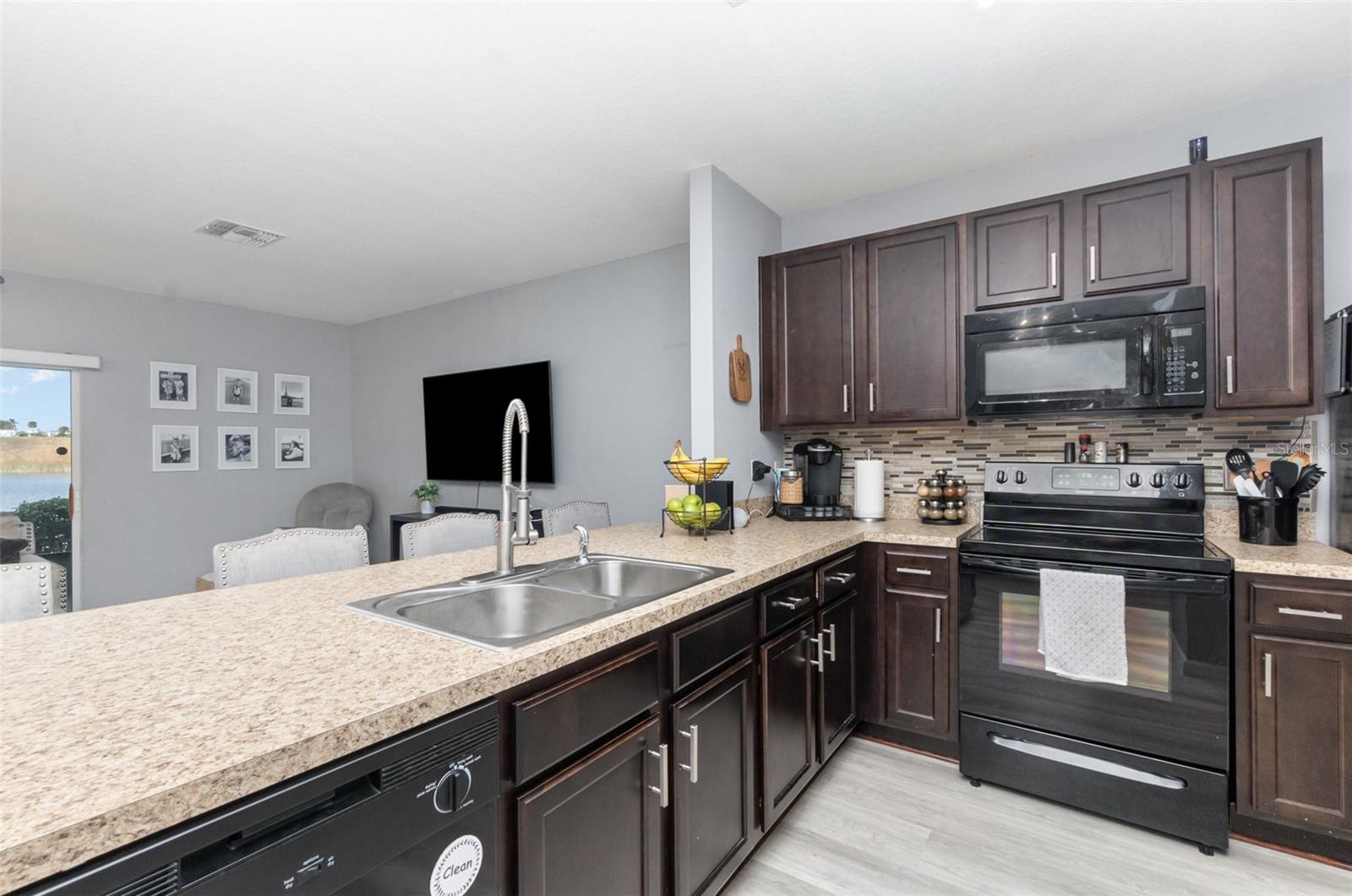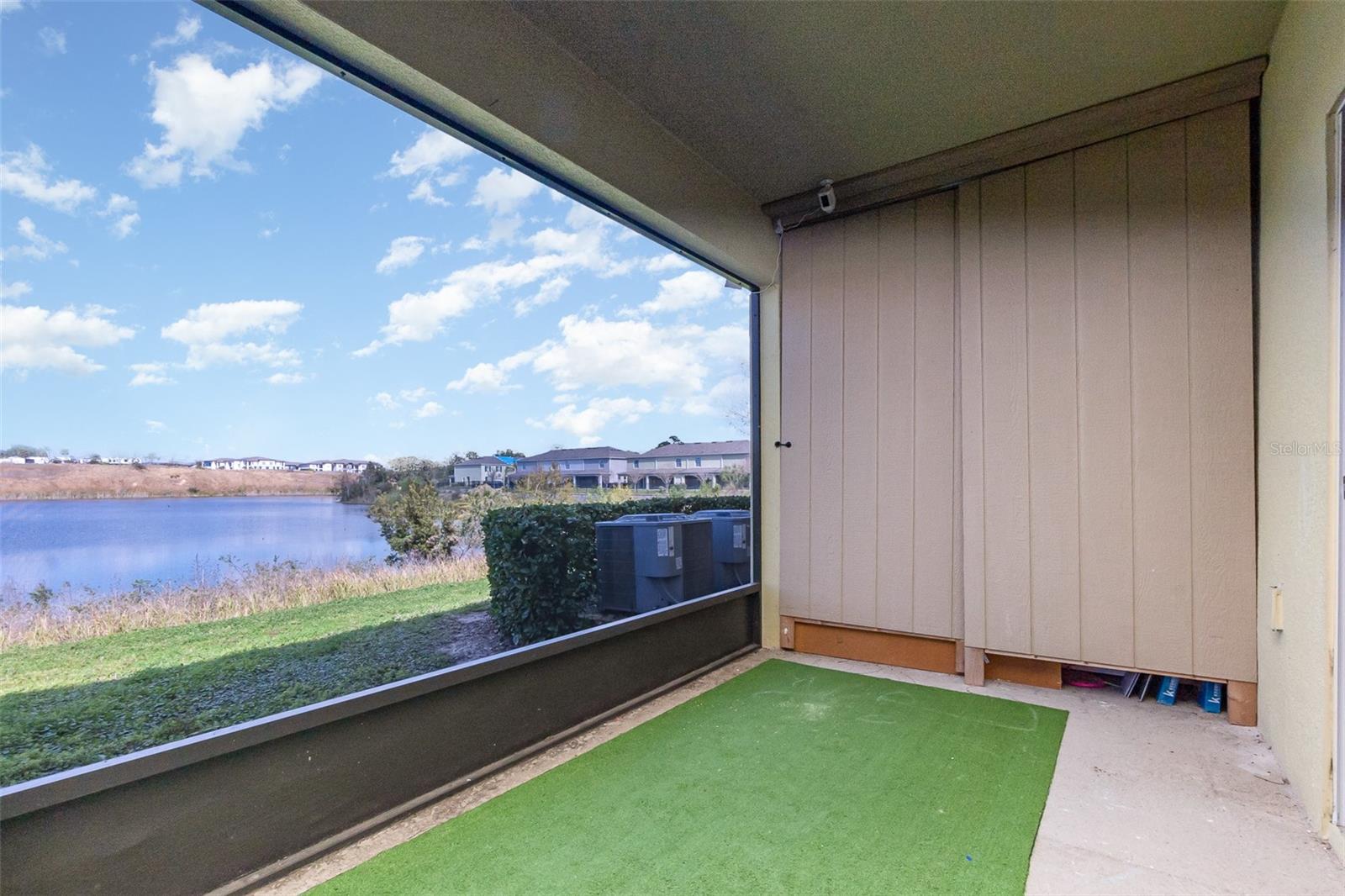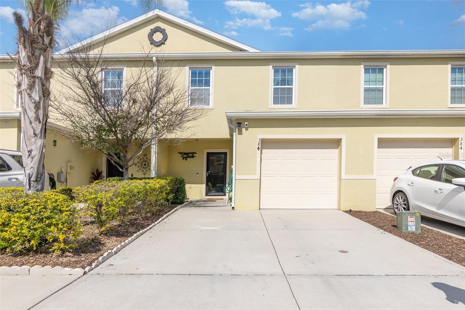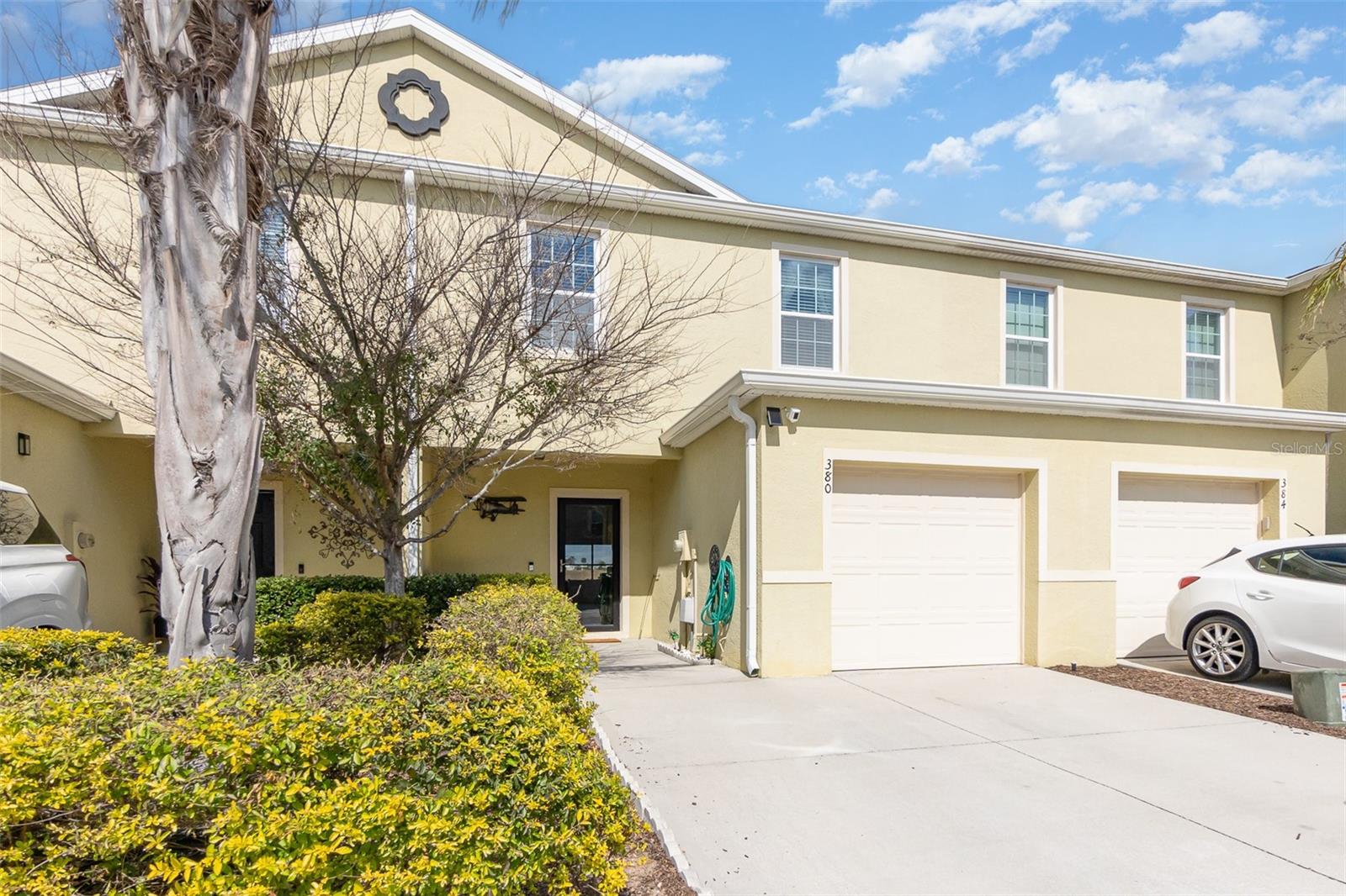 Just minutes from shopping, restaurants, and Disney Lake. Nestled right in front of the lake offering amazing views from the open concept family room and kitchen and even can open the sliding doors to the covered and screened-in lanai (8'x22'!) and soak in the sunsets. This gated townhome community offers a resort style community pool and is fully maintained. This 2 story fully concrete block townhome was just built in 2018, and the original homeowner have meticulously maintained everything and had new luxury vinyl flooring installed in 2022, and have UV filter upgrades on AC system. Fixtures updated and even the glass/or screen combo door added to front door. and new garage door opener, and plywood added to attic space for more storage!