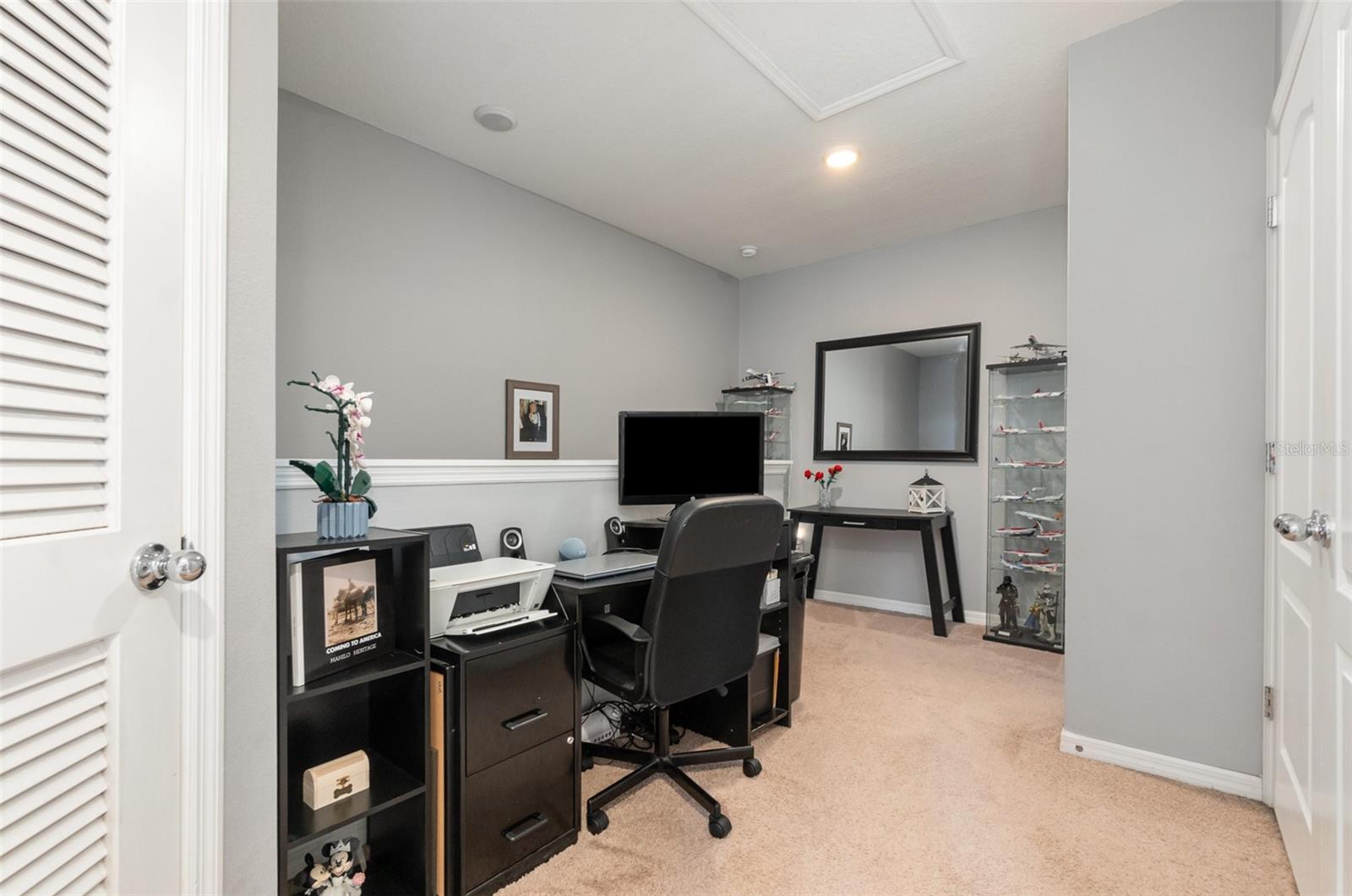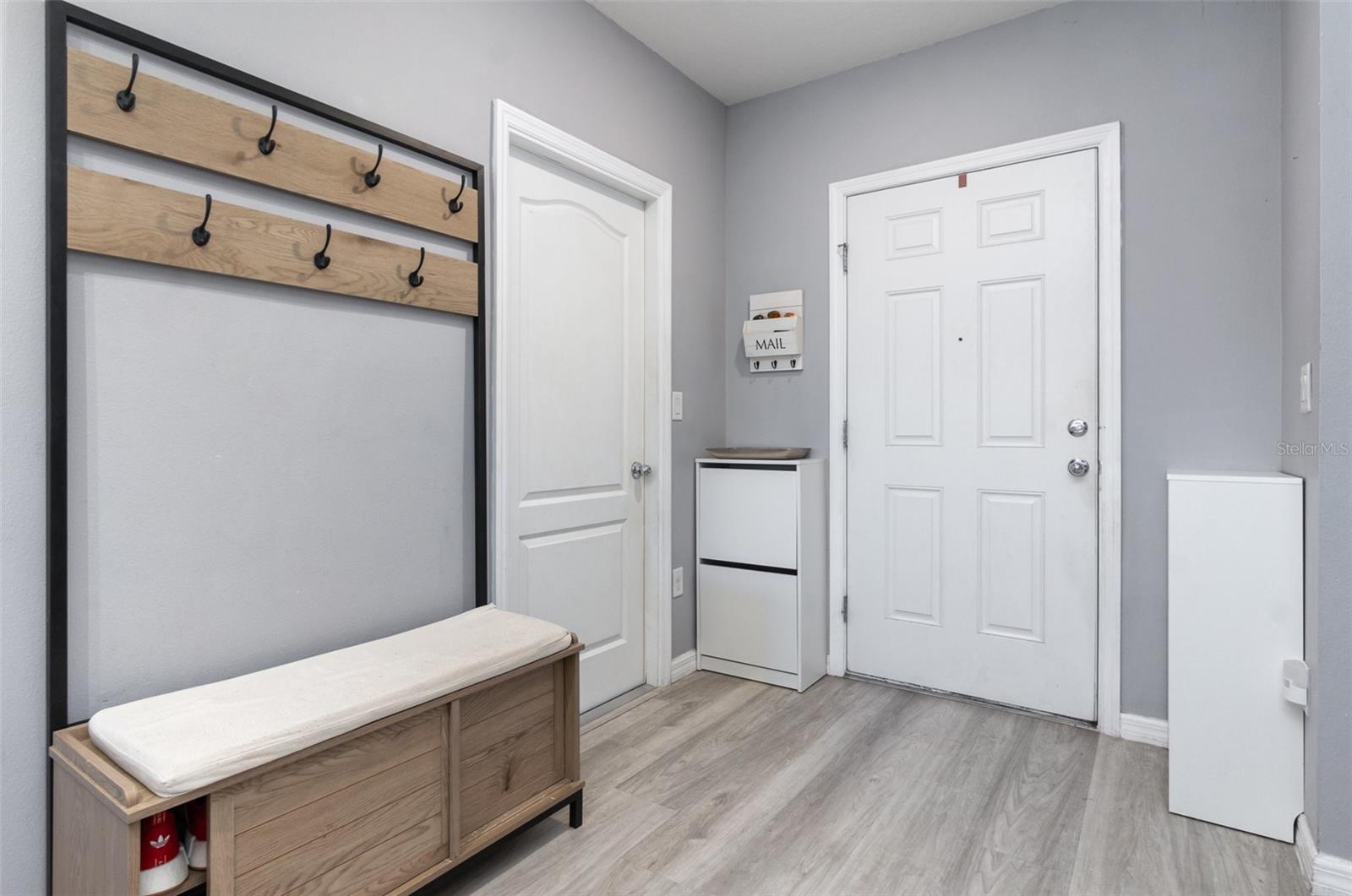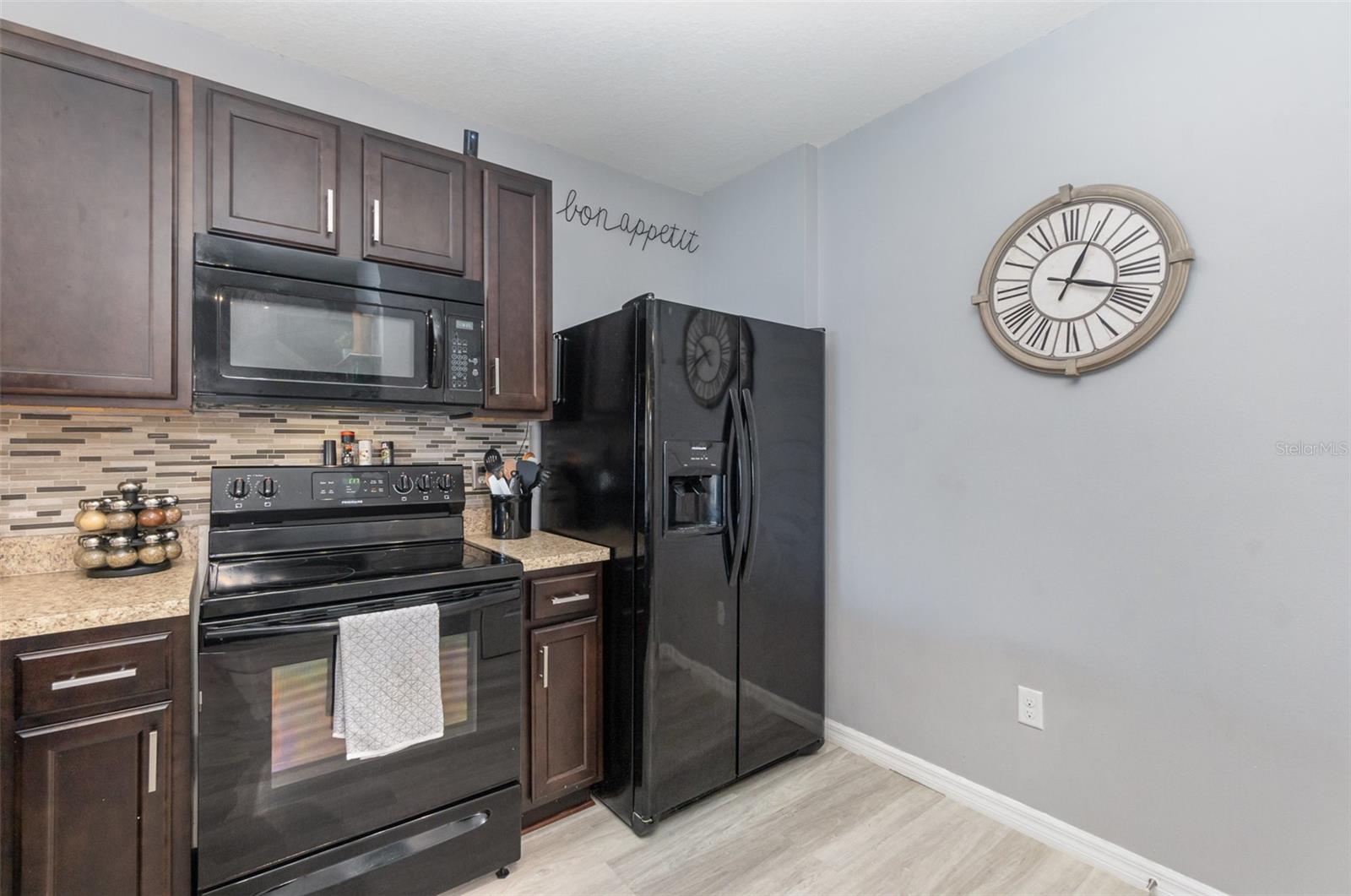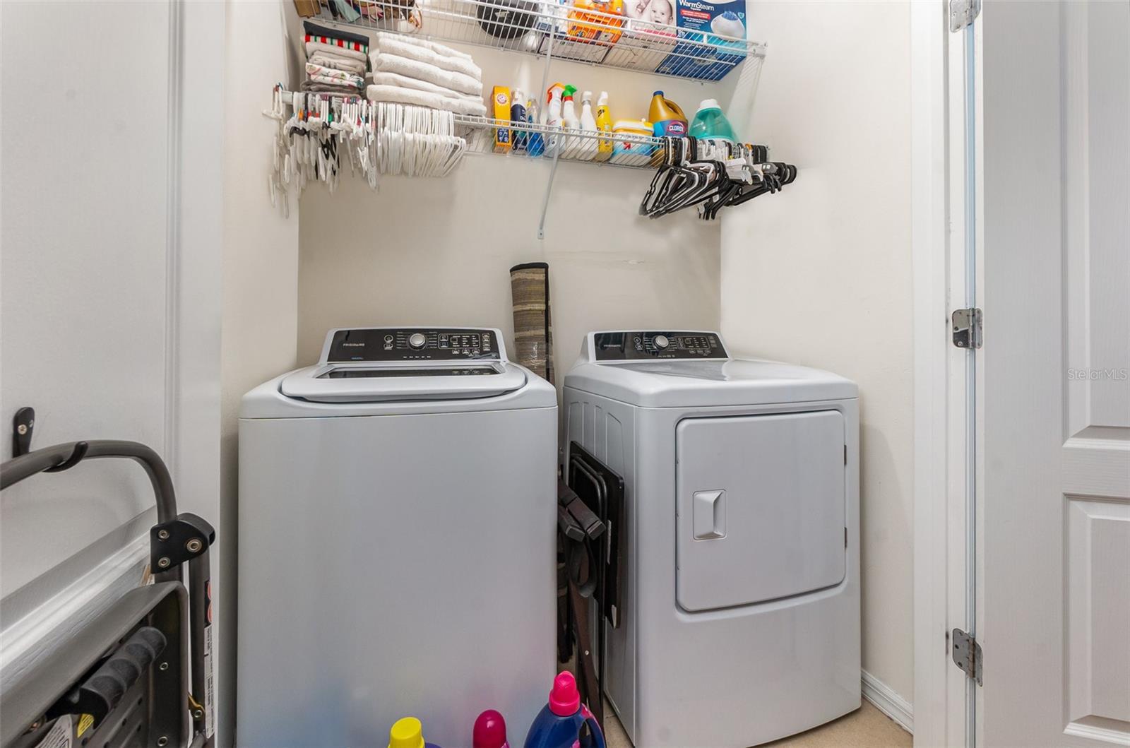 Just minutes from shopping, restaurants, and Disney Lake. Nestled right in front of the lake offering amazing views from the open concept family room and kitchen and even can open the sliding doors to the covered and screened-in lanai (8'x22'!) and soak in the sunsets. This gated townhome community offers a resort style community pool and is fully maintained. This 2 story fully concrete block townhome was just built in 2018, and the original homeowner have meticulously maintained everything and had new luxury vinyl flooring installed in 2022, and have UV filter upgrades on AC system. Fixtures updated and even the glass/or screen combo door added to front door. and new garage door opener, and plywood added to attic space for more storage!