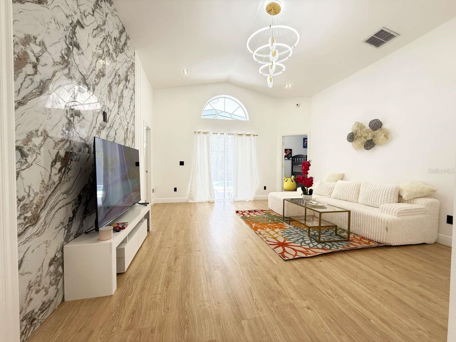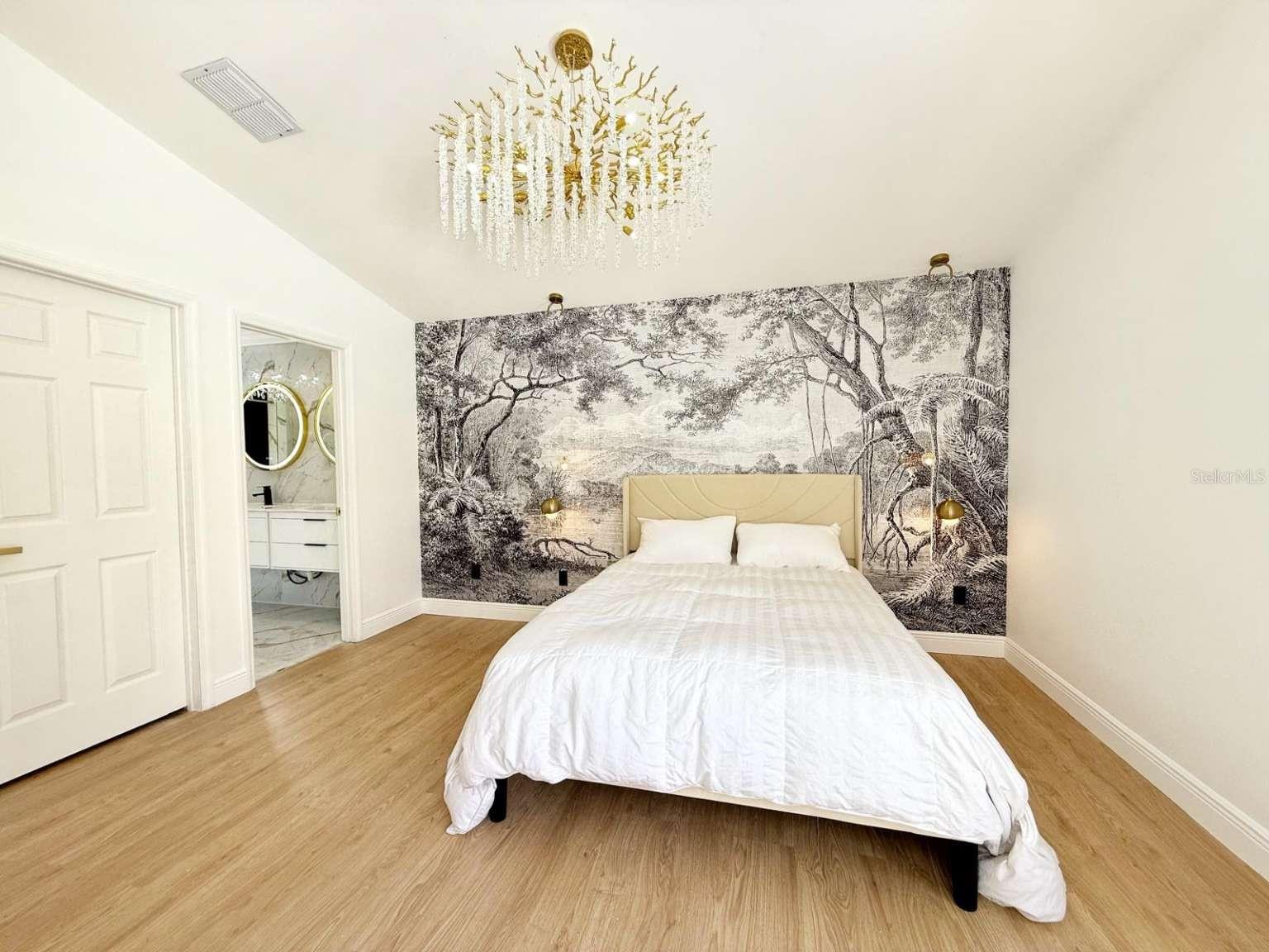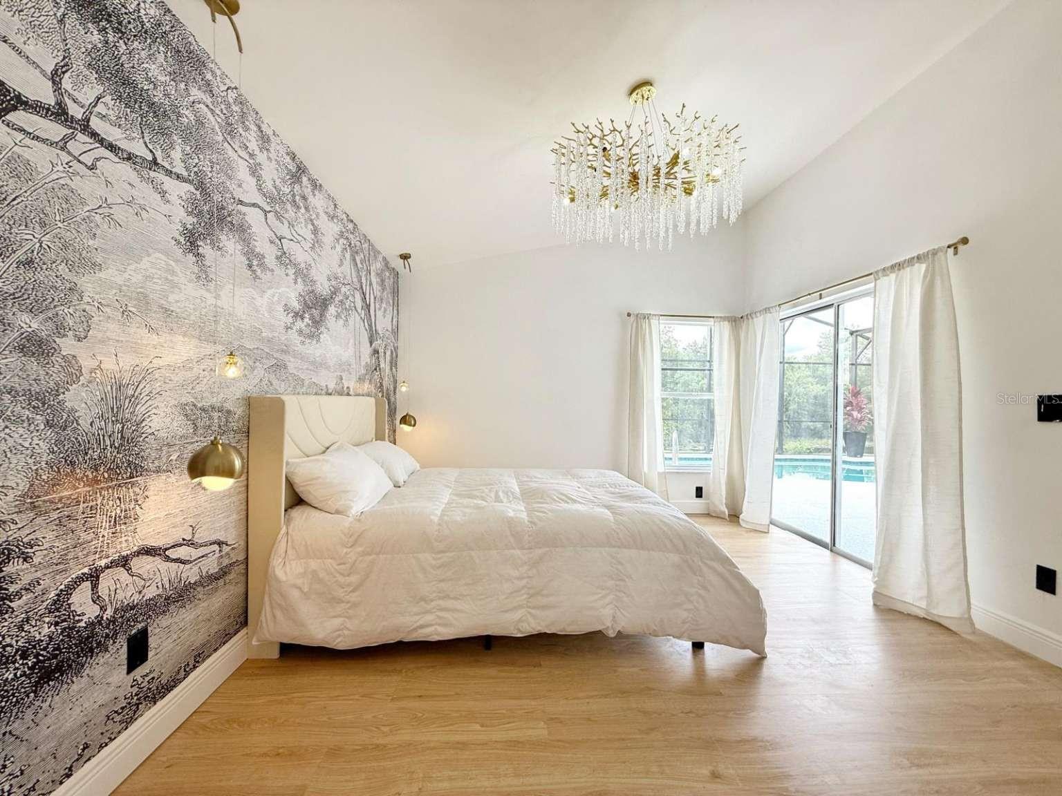 Step into luxury and timeless elegance in the gated community of Ridgewood Pointe, a prestigious neighborhood offering resort-style amenities such as a championship golf course, clubhouse, swimming pool, 24/7 security, tennis courts, and scenic walking trails. This beautifully fully renovated 4-bedroom, 2-bathroom home boasts 1,688 square feet of thoughtfully designed living space and sits on a premium lot with a large pool deck overlooking a breathtaking lake view, perfect for relaxing or entertaining guests. Over $115,000 was invested in high-end upgrades, including: • A bright and modern kitchen featuring quartz countertops, soft-close cabinets, and top-of-the-line stainless steel appliances ($20,000 investment), creating a perfect space for cooking and gathering with family and friends. • Two elegant bathrooms outfitted with designer LED backlit mirrors, luxury sinks, rainfall shower heads, custom tile work, and high-end fixtures totaling over $25,000, providing a spa-like atmosphere. • Stunning Italian chandeliers throughout the home, adding a touch of sophistication and warmth ($4,500). • Durable, high-quality tile and luxury laminate flooring throughout the entire house that balances style with practicality. • A two-car garage fully refinished with an epoxy-coated floor and fresh paint. The home’s open floor plan creates a spacious and inviting atmosphere, flooded with natural light that highlights the seamless flow between living, dining, and kitchen areas. The primary suite is generously sized, offering dual closets and a luxurious private bathroom with double vanities and a walk-in shower, ensuring a peaceful retreat at the end of the day. Step outside to a large, beautifully maintained pool deck overlooking the serene lake — an ideal setting for morning coffee, evening cocktails, or weekend barbecues. Additional highlights include: • New roof installed in December 2022, ensuring durability and peace of mind. • HVAC system replaced in 2019 for optimal climate control and energy efficiency. • Full interior and exterior repaint completed recently, including the garage and pool deck, giving the home a fresh and modern look. • Professionally landscaped yard with new sod, plants, and an automatic sprinkler system covering all areas, enhancing curb appeal and outdoor living comfort. The home’s location offers exceptional convenience: • Only 3 minutes to the I-4 highway, providing easy access to the entire Central Florida region. • 20 minutes to the world-famous Disney theme parks. • 25 minutes to Legoland Florida, perfect for family fun. • Approximately 30 minutes to downtown Orlando, with its dining, shopping, and entertainment options. • Around 1 hour to Tampa and beautiful Gulf Coast beaches. Whether you are searching for a primary family residence, a vacation retreat, or a lucrative Airbnb rental investment, this home combines style, comfort, and location in one of the area’s most desirable gated communities. Built with love by a family of four, this residence offers a warm and welcoming atmosphere that will immediately make you feel at home. The owners are relocating to Europe, presenting a rare opportunity for you to own this turnkey, elegant lakefront property. Don’t miss your chance to live in Ridgewood Pointe — a community that truly embodies luxury living and exceptional amenities. Schedule your private tour today and experience everything this remarkable home and neighborhood have to offer.