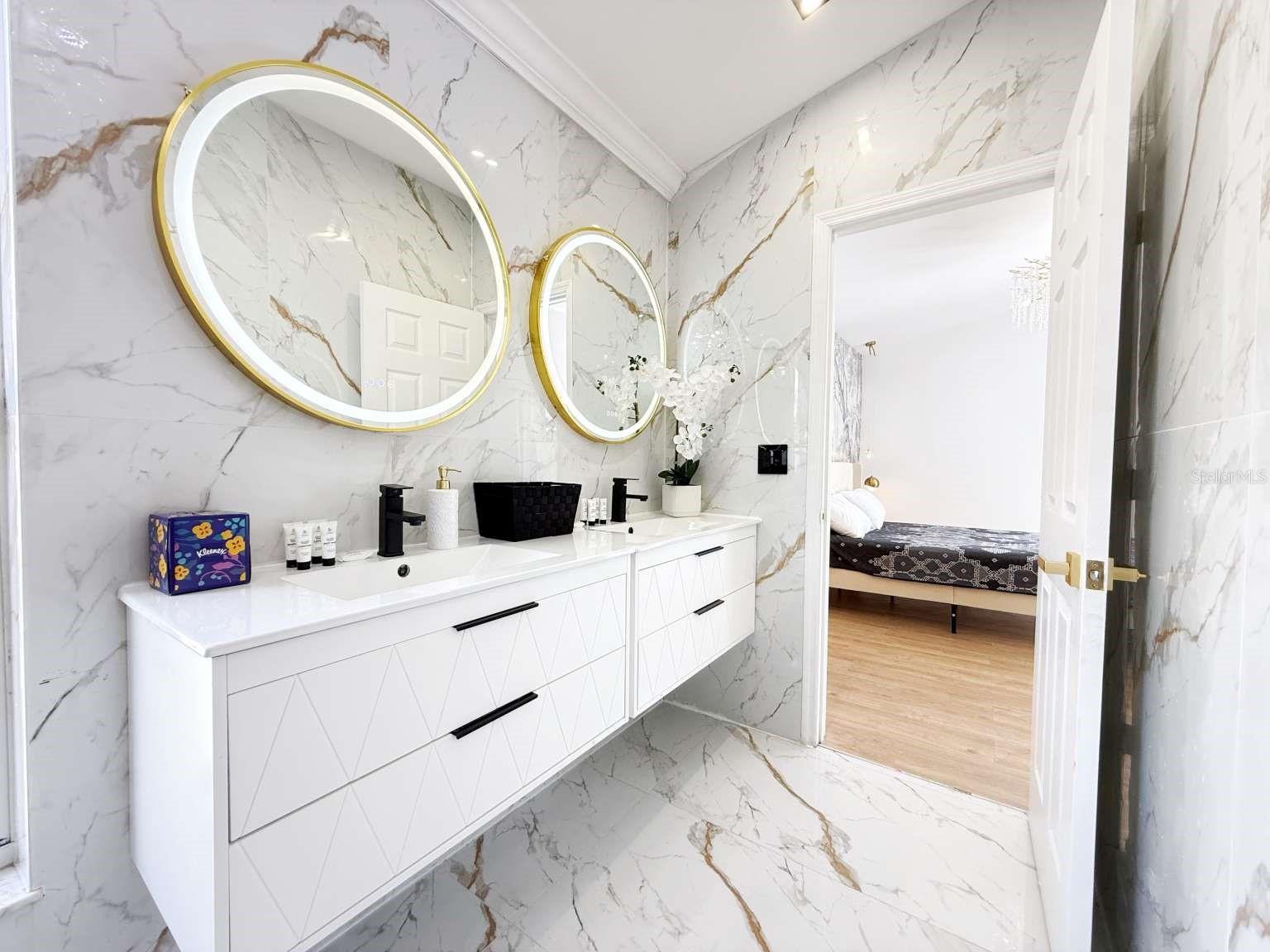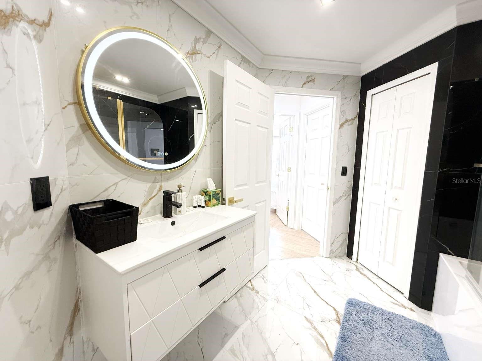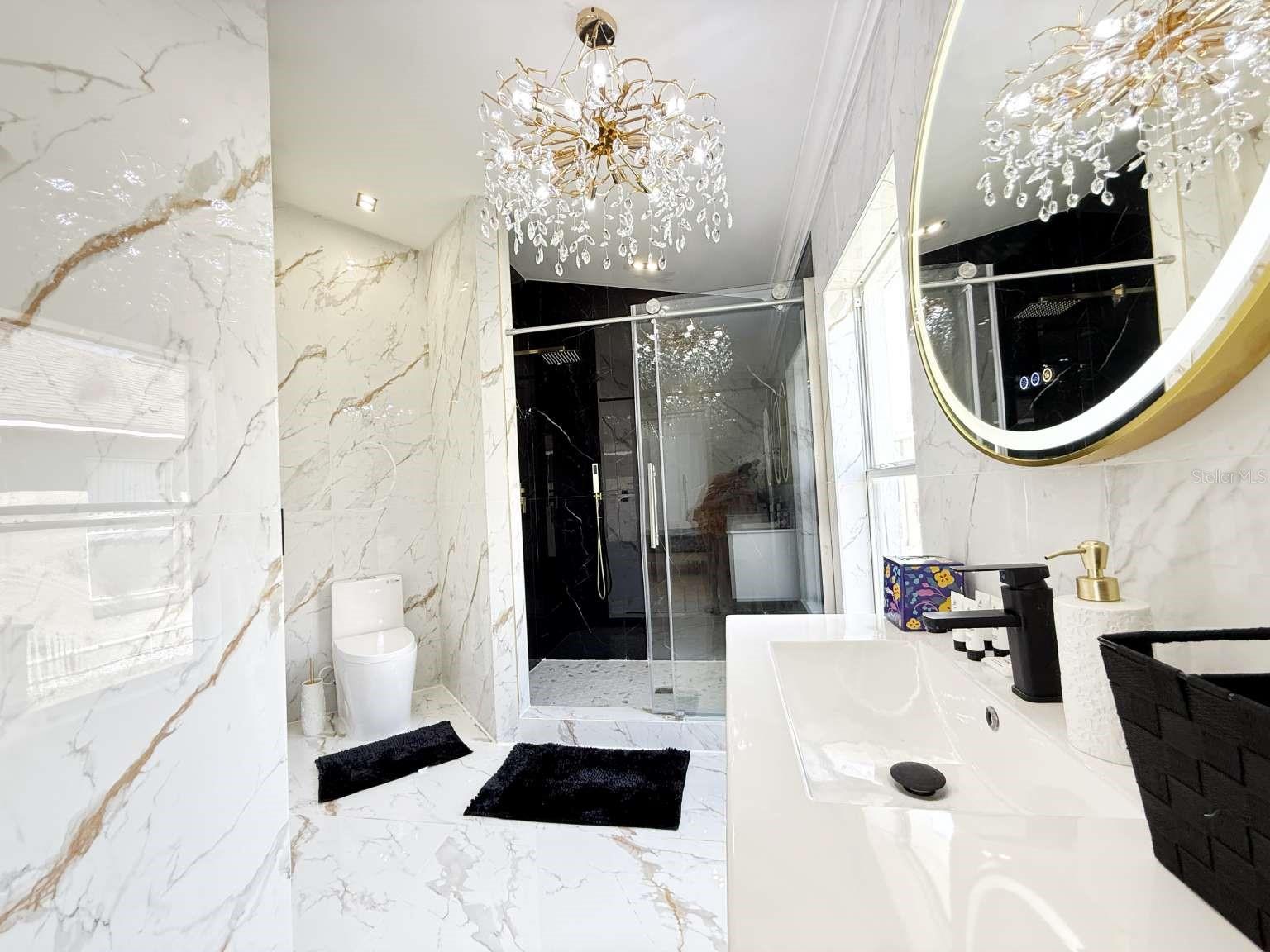 Step into luxury and timeless elegance in the gated community of Ridgewood Pointe, a prestigious neighborhood offering resort-style amenities such as a championship golf course, clubhouse, swimming pool, 24/7 security, tennis courts, and scenic walking trails. This beautifully fully renovated 4-bedroom, 2-bathroom home boasts 1,688 square feet of thoughtfully designed living space and sits on a premium lot with a large pool deck overlooking a breathtaking lake view, perfect for relaxing or entertaining guests. Over $115,000 was invested in high-end upgrades, including: • A bright and modern kitchen featuring quartz countertops, soft-close cabinets, and top-of-the-line stainless steel appliances ($20,000 investment), creating a perfect space for cooking and gathering with family and friends. • Two elegant bathrooms outfitted with designer LED backlit mirrors, luxury sinks, rainfall shower heads, custom tile work, and high-end fixtures totaling over $25,000, providing a spa-like atmosphere. • Stunning Italian chandeliers throughout the home, adding a touch of sophistication and warmth ($4,500). • Durable, high-quality tile and luxury laminate flooring throughout the entire house that balances style with practicality. • A two-car garage fully refinished with an epoxy-coated floor and fresh paint. The home’s open floor plan creates a spacious and inviting atmosphere, flooded with natural light that highlights the seamless flow between living, dining, and kitchen areas. The primary suite is generously sized, offering dual closets and a luxurious private bathroom with double vanities and a walk-in shower, ensuring a peaceful retreat at the end of the day. Step outside to a large, beautifully maintained pool deck overlooking the serene lake — an ideal setting for morning coffee, evening cocktails, or weekend barbecues. Additional highlights include: • New roof installed in December 2022, ensuring durability and peace of mind. • HVAC system replaced in 2019 for optimal climate control and energy efficiency. • Full interior and exterior repaint completed recently, including the garage and pool deck, giving the home a fresh and modern look. • Professionally landscaped yard with new sod, plants, and an automatic sprinkler system covering all areas, enhancing curb appeal and outdoor living comfort. The home’s location offers exceptional convenience: • Only 3 minutes to the I-4 highway, providing easy access to the entire Central Florida region. • 20 minutes to the world-famous Disney theme parks. • 25 minutes to Legoland Florida, perfect for family fun. • Approximately 30 minutes to downtown Orlando, with its dining, shopping, and entertainment options. • Around 1 hour to Tampa and beautiful Gulf Coast beaches. Whether you are searching for a primary family residence, a vacation retreat, or a lucrative Airbnb rental investment, this home combines style, comfort, and location in one of the area’s most desirable gated communities. Built with love by a family of four, this residence offers a warm and welcoming atmosphere that will immediately make you feel at home. The owners are relocating to Europe, presenting a rare opportunity for you to own this turnkey, elegant lakefront property. Don’t miss your chance to live in Ridgewood Pointe — a community that truly embodies luxury living and exceptional amenities. Schedule your private tour today and experience everything this remarkable home and neighborhood have to offer.