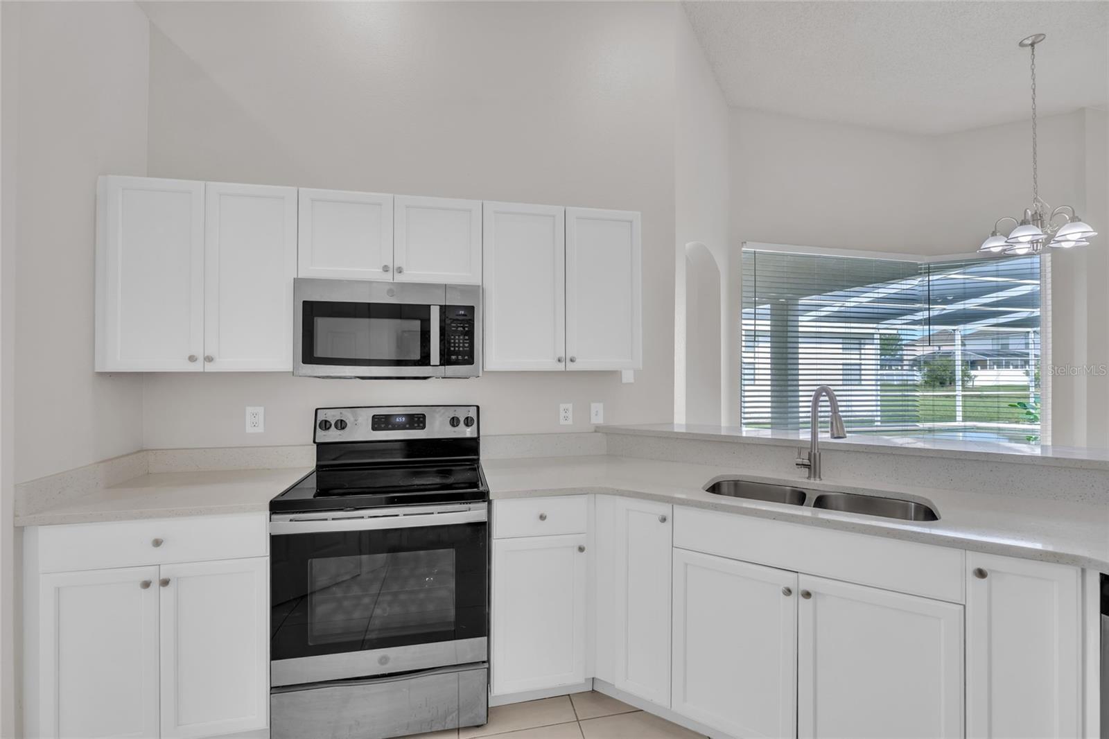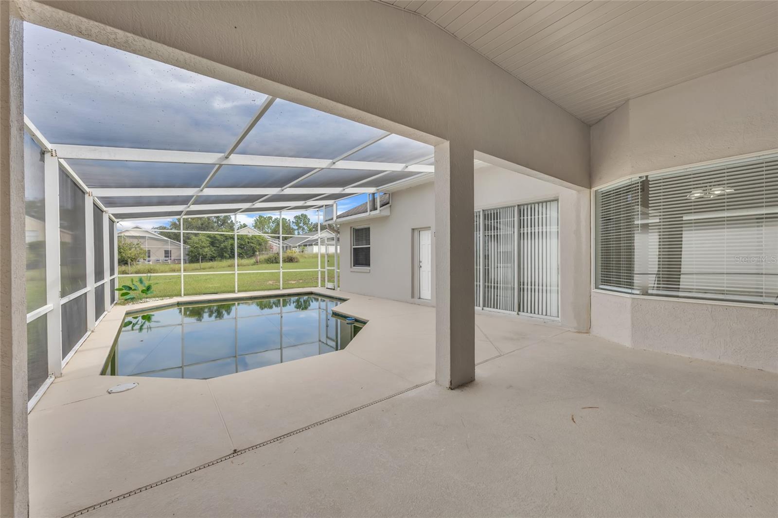 One or more photo(s) has been virtually staged. Welcome to your dream home in the heart of Davenport! This spacious 5-bedroom, 3-bathroom pool home offers the perfect blend of comfort, functionality, and Florida lifestyle. Located in a serene community with golf course views, this property features an open floor plan with high ceilings, tile flooring throughout the main living areas, and plenty of natural light. The updated kitchen features ample cabinetry, quartz countertops, and stainless steel appliances, overlooking a large living and dining area that’s perfect for entertaining. The split-bedroom layout includes a spacious primary suite with pool access, dual vanities, a soaking tub, and walk-in shower. Step outside to your private screen-enclosed pool and covered patio, perfect for relaxing or hosting family and friends. The home also includes a 2-car garage, indoor laundry room, and fresh neutral paint throughout. Enjoy peaceful views, a generous backyard, and proximity to shopping, dining, and major attractions. Whether you’re looking for a primary residence, vacation home, or investment property—this one checks all the boxes!