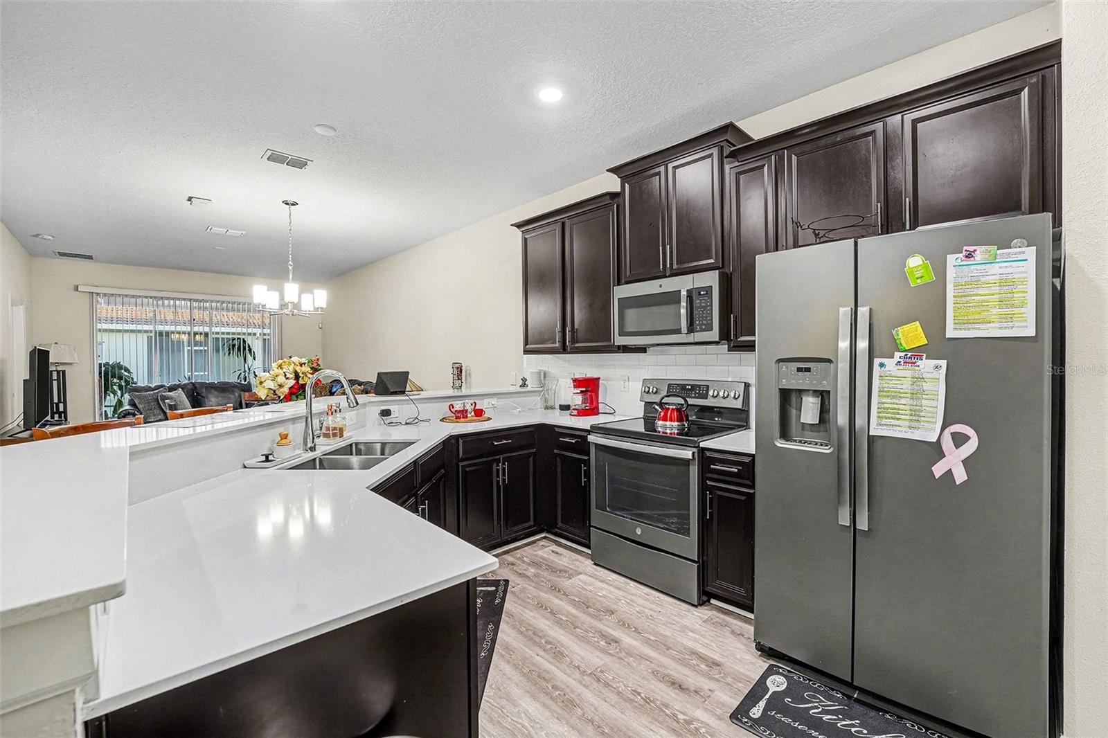 Welcome to 1183 Trappers Trail Loop, a beautifully updated home located in a sought-after gated Davenport community, just off I-4 and only minutes from Walt Disney World Resort. This light-filled residence features an open floor plan designed for both everyday comfort and effortless entertaining, enhanced by newly installed flooring throughout. The updated kitchen is a standout, showcasing quartz countertops, stainless steel appliances, and plenty of prep and storage space—perfect for hosting or casual family meals. Large bedrooms offer generous closet space, providing comfort and flexibility for families, guests, or work-from-home needs. Step outside to the screened-in lanai, an ideal spot to relax and enjoy Florida living year-round. Beyond the home, the community delivers a true resort-style lifestyle. Residents enjoy a Casa Club–style clubhouse, an exclusive on-site restaurant, movie theater, game room, sauna, jacuzzi, and multiple recreation options including a splash park, volleyball court, tennis courts, and access to nearby golf courses and golf camps. HOA fees conveniently include cable and internet, adding extra value and ease. Ideally located near Four Corners Charter School (9–12) and Westside K-8, this home is also just minutes from top dining, shopping centers, and major highways—making it perfect as a primary residence, vacation home, or investment opportunity.