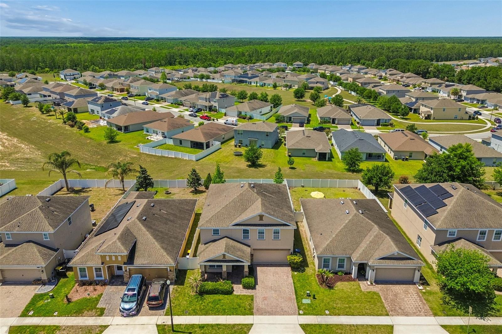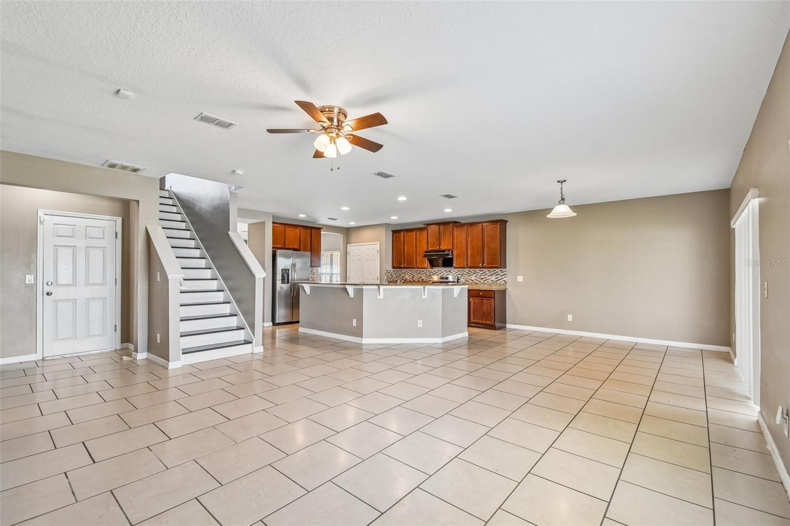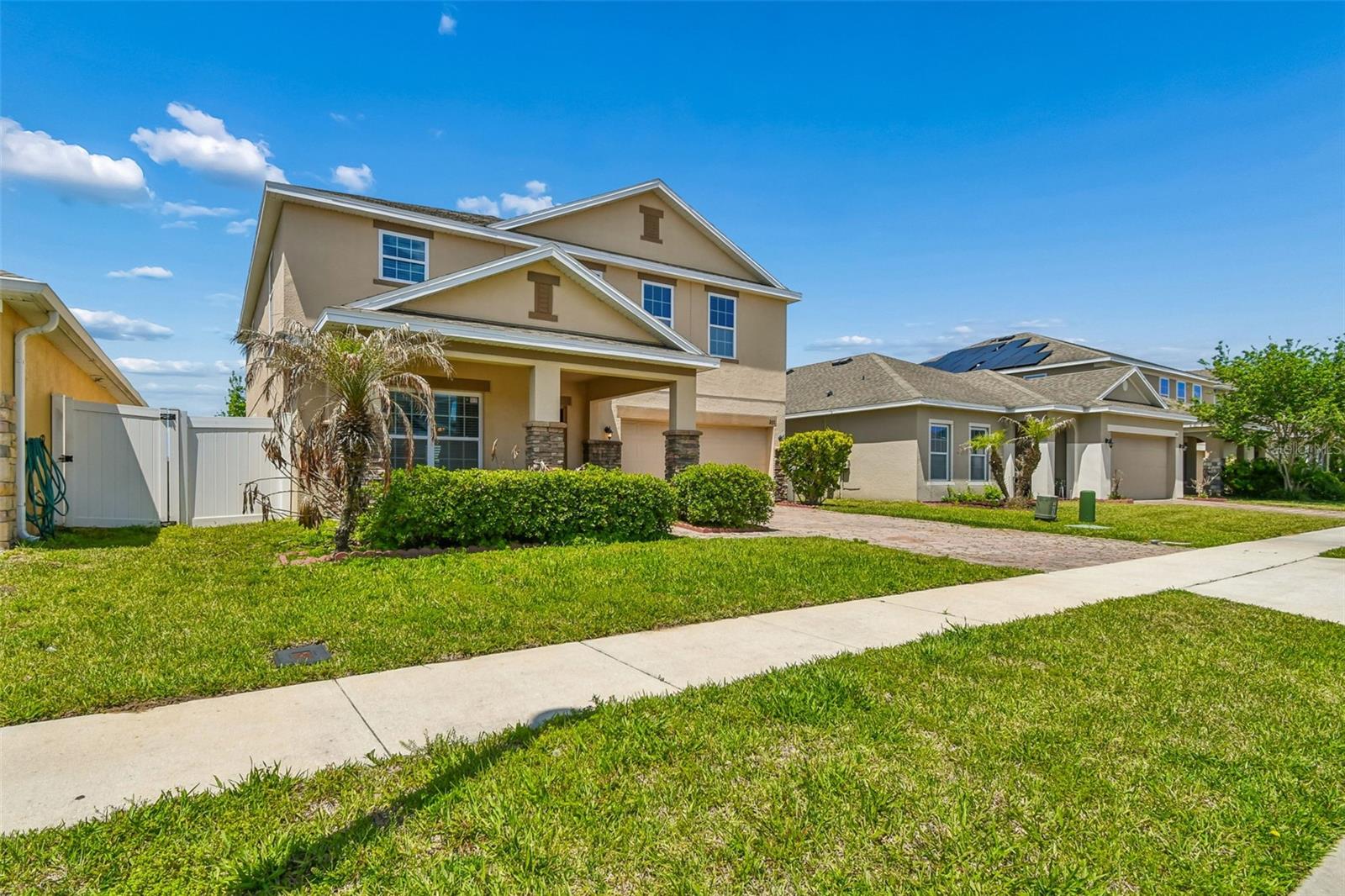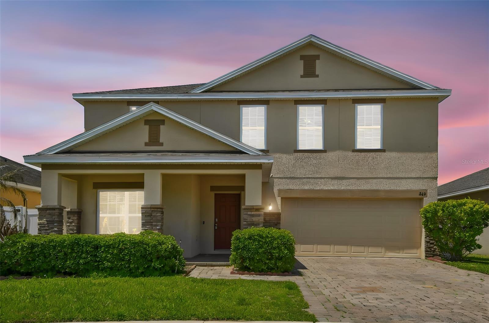 WOW! Check out this desirable large FENCED BACKYARD and FANTASTIC LAYOUT ideally designed for comfortable and relaxing living. Come inside to appreciate contemporary open floor plan with spacious formal living & dinning rooms featuring upgraded offset tile floor. A fully equipped stainless steel appliances kitchen is featuring granite countertops with ample work space, convenient breakfast bar, 42" upper cabinets with crown molding & tons of storage, mosaic tile backsplash, recessed lighting and closet pantry with double doors. Breakfast nook is overlooking lush outdoors. This spacious home also offers a convenient downstairs bedroom and a full bathroom with a walk-in shower—perfect for guests or multi-generational living. Upstairs, you’ll find five additional bedrooms, including a large primary suite with extra space ideal for a home office or sitting area. The primary bedroom features two walk-in closets (one with custom built-ins) and a private bathroom with dual sinks, a walk-in shower, and a relaxing garden tub. A large open loft upstairs provides flexible space and a extra room can be for the office or six bedroom The upstairs also includes a guest bathroom with dual sinks and a shower/tub combo, plus a convenient second-floor laundry room. Additional highlights include plenty of storage, a drop zone near the garage with granite countertops, and smart home features like a Nest thermostat and Lutron dimmers. Outside, enjoy a covered front porch, stone exterior accents, and a screened-in patio—perfect for relaxing. The backyard offers plenty of room to add a pool. This property allows both long-term and short-term rentals, making it a great investment opportunity. With low HOA fees and no CDD, plus community amenities like a swimming pool and playground nearby, this home is ideally located close to major highways, shopping, dining, golf courses, and popular theme parks.