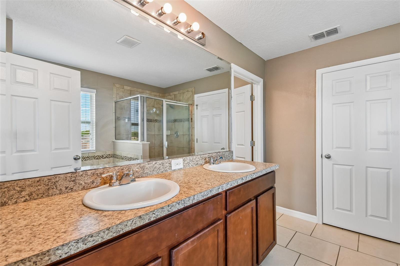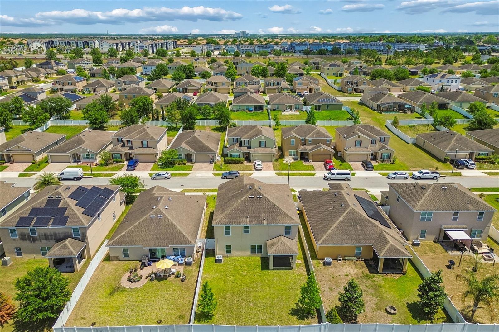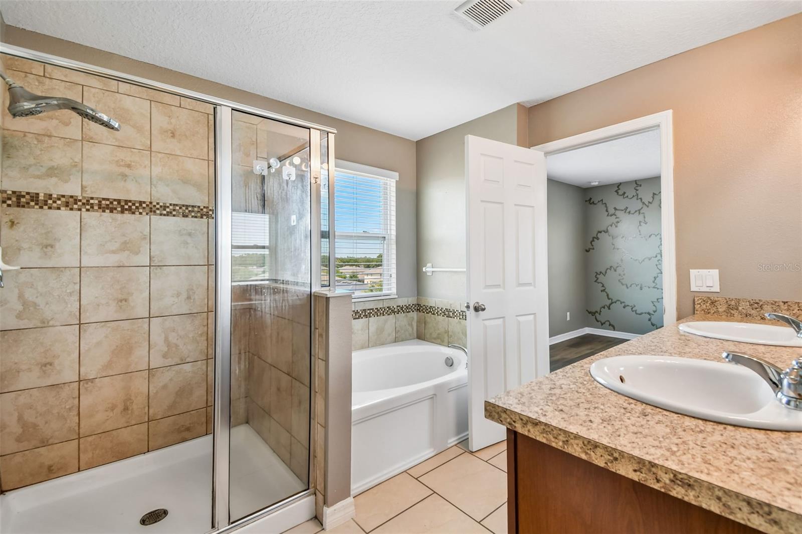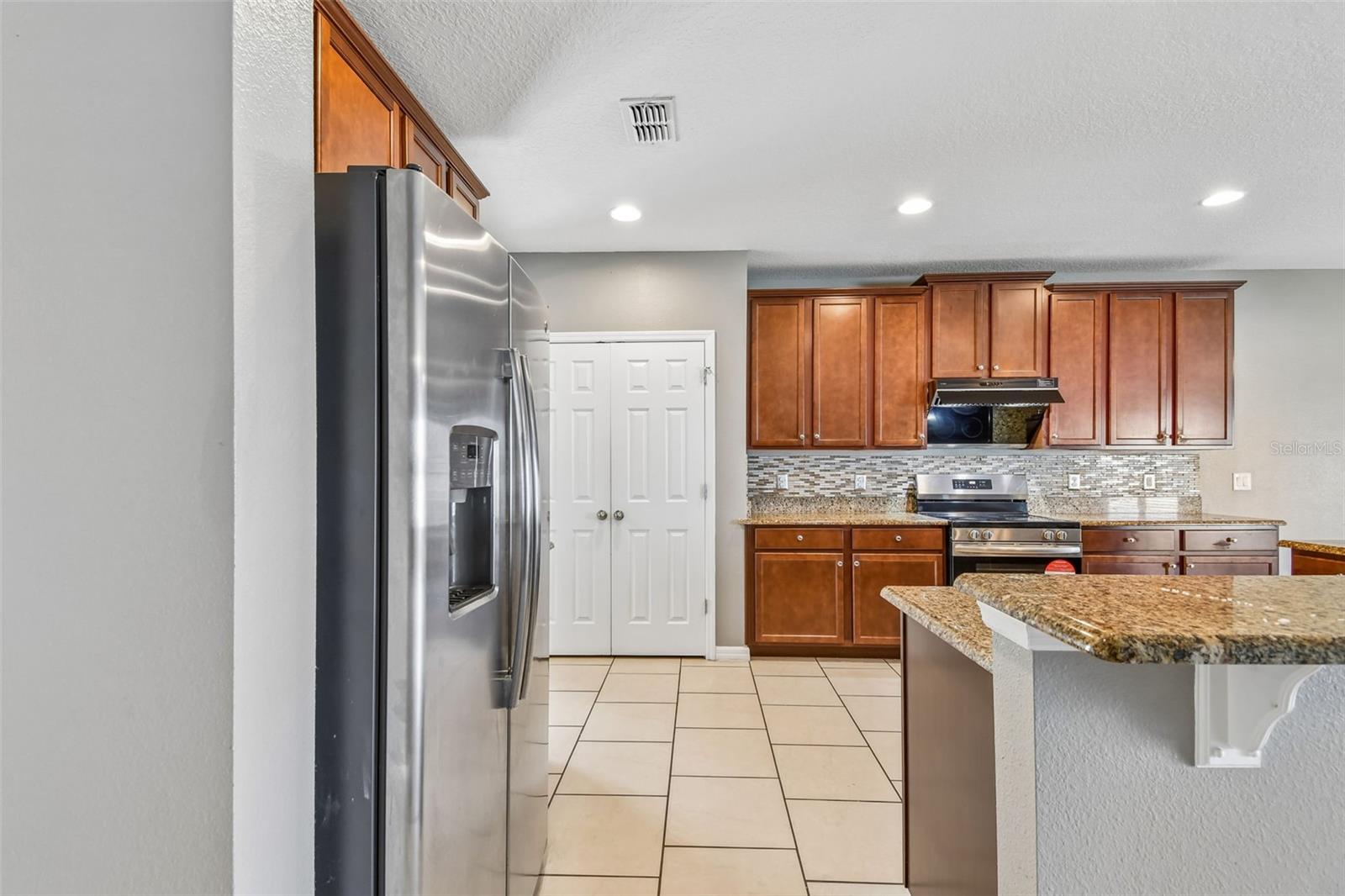 WOW! Check out this desirable large FENCED BACKYARD and FANTASTIC LAYOUT ideally designed for comfortable and relaxing living. Come inside to appreciate contemporary open floor plan with spacious formal living & dinning rooms featuring upgraded offset tile floor. A fully equipped stainless steel appliances kitchen is featuring granite countertops with ample work space, convenient breakfast bar, 42" upper cabinets with crown molding & tons of storage, mosaic tile backsplash, recessed lighting and closet pantry with double doors. Breakfast nook is overlooking lush outdoors. This spacious home also offers a convenient downstairs bedroom and a full bathroom with a walk-in shower—perfect for guests or multi-generational living. Upstairs, you’ll find five additional bedrooms, including a large primary suite with extra space ideal for a home office or sitting area. The primary bedroom features two walk-in closets (one with custom built-ins) and a private bathroom with dual sinks, a walk-in shower, and a relaxing garden tub. A large open loft upstairs provides flexible space and a extra room can be for the office or six bedroom The upstairs also includes a guest bathroom with dual sinks and a shower/tub combo, plus a convenient second-floor laundry room. Additional highlights include plenty of storage, a drop zone near the garage with granite countertops, and smart home features like a Nest thermostat and Lutron dimmers. Outside, enjoy a covered front porch, stone exterior accents, and a screened-in patio—perfect for relaxing. The backyard offers plenty of room to add a pool. This property allows both long-term and short-term rentals, making it a great investment opportunity. With low HOA fees and no CDD, plus community amenities like a swimming pool and playground nearby, this home is ideally located close to major highways, shopping, dining, golf courses, and popular theme parks.