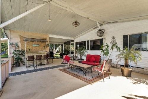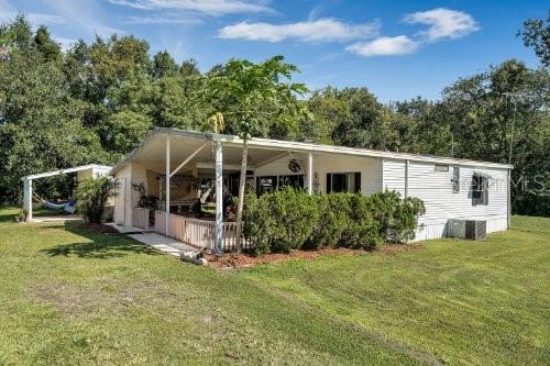 Gorgeous homestead features 1.01 acres, NO HOA....Close to Disney World, 40 minutes from the Orlando International Airport. Luxury landscaping adorned with Caribbean palms and mature fruit trees. Bring your RV, trucks, jet skis, boat. motor home..no restrictions! One storage shed and one unfinished Utility shed. Elegant Vinyl fenced for privacy. Proximity to Champions Gate and Reunion area; restaurants and shopping. This is a 2 bedrooms, 2 bath well maintained double-wide manufactured home. New roof (2023). Laminated flooring throughout the house and ceramic tile in both bathrooms and kitchen. NO carpet.This is a must-see property and a rare opportunity. Call for an appointment. Owner is willing to finance some of the price as private lender % on a 10 years balloon.