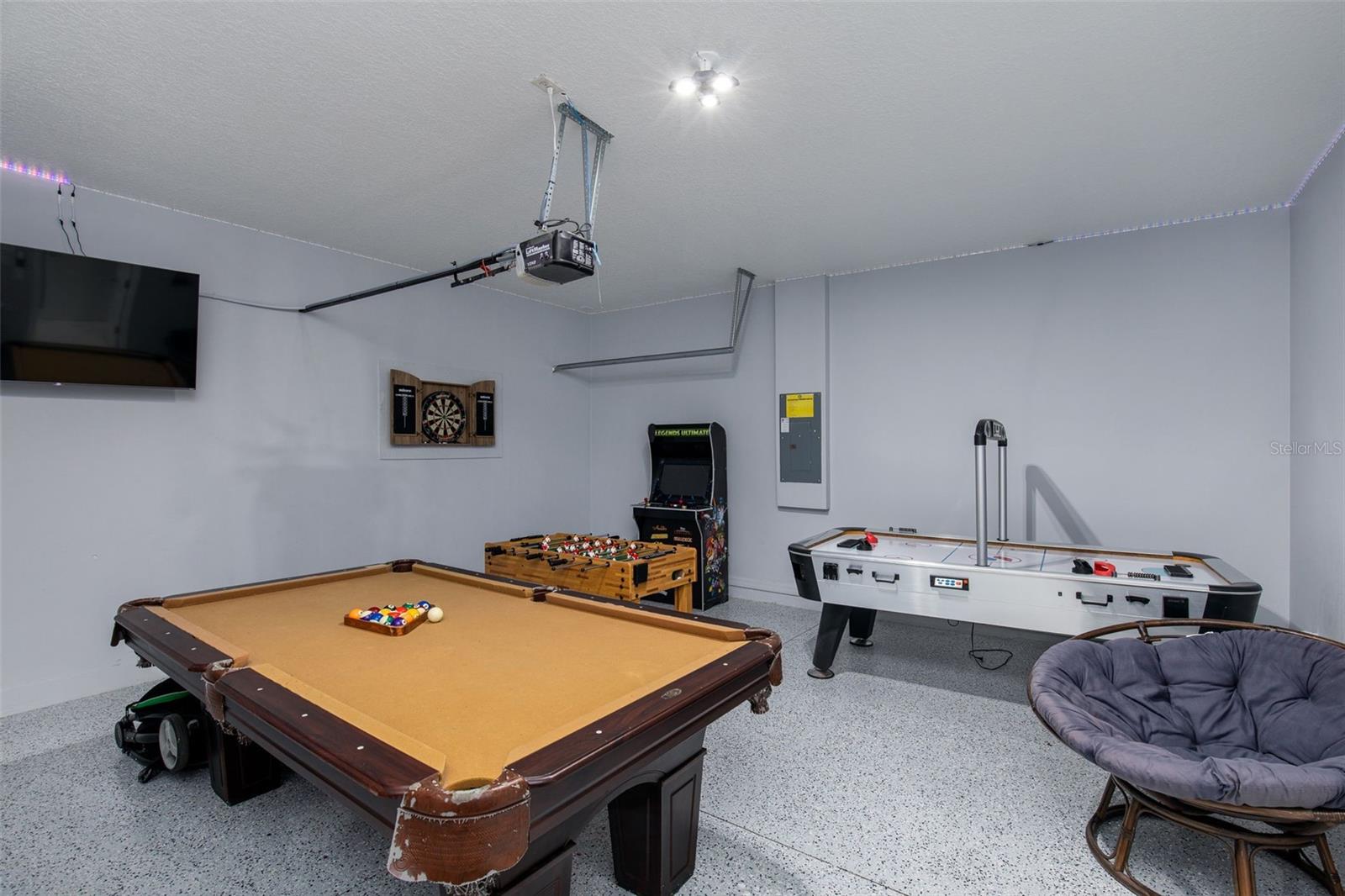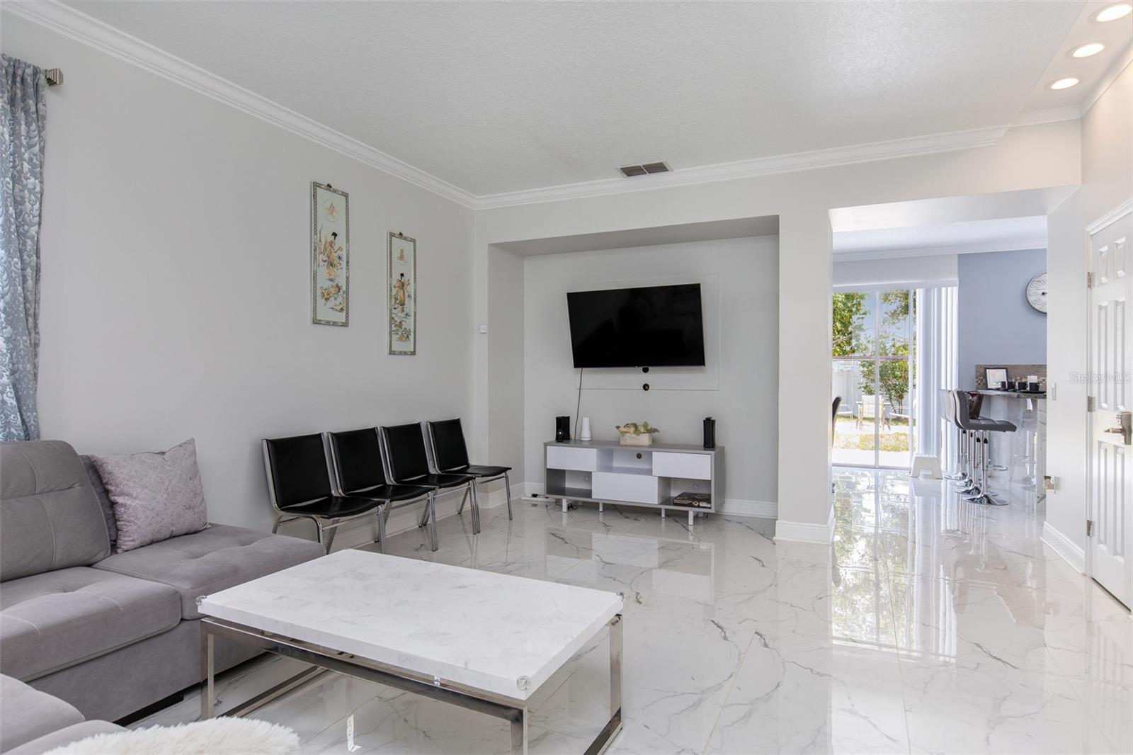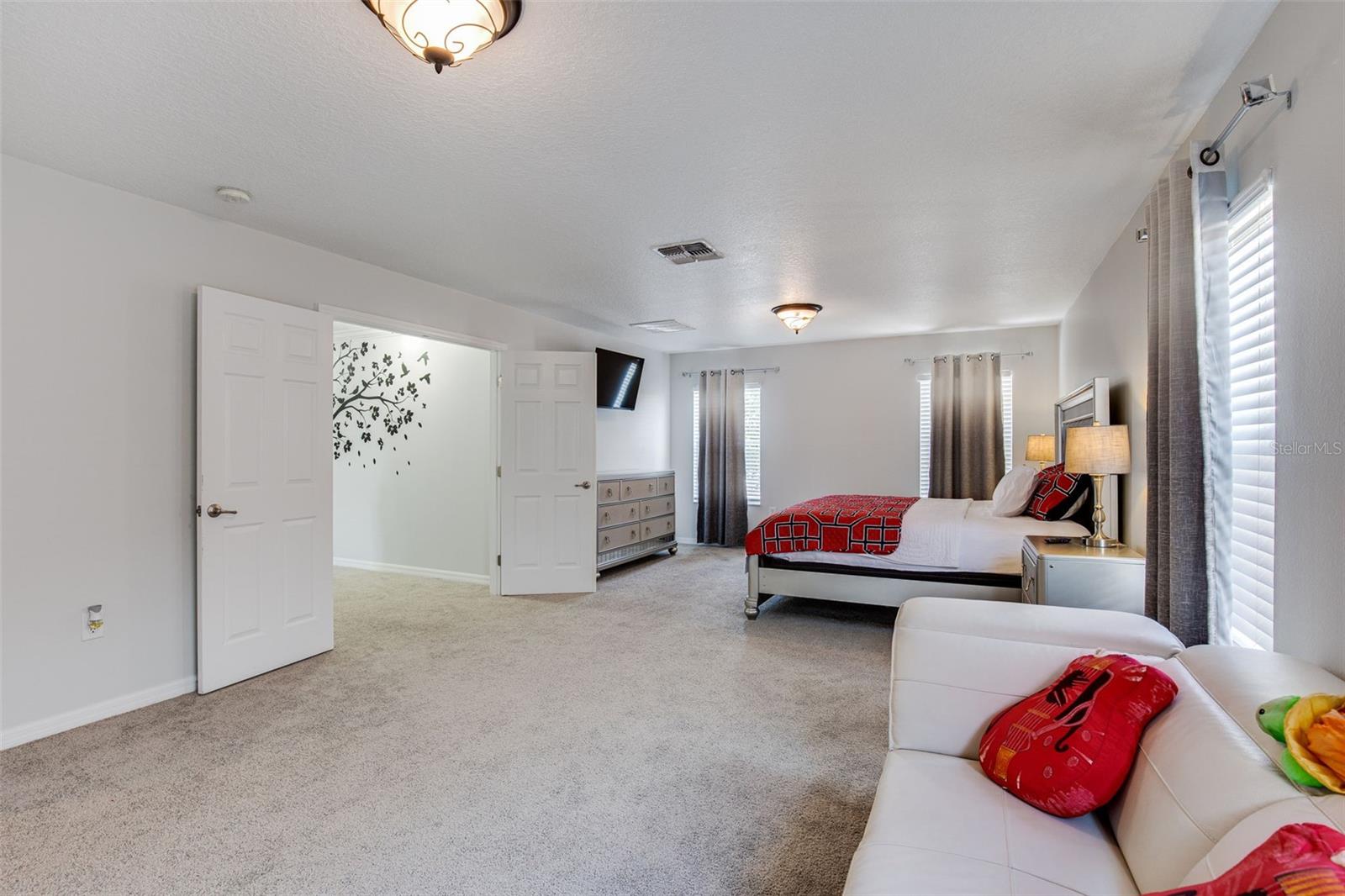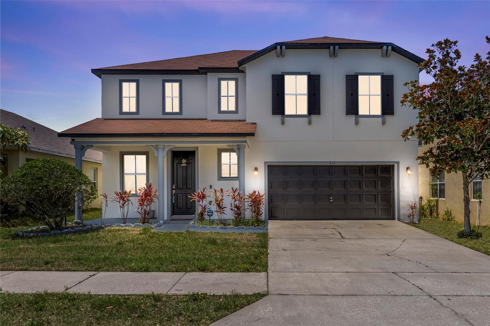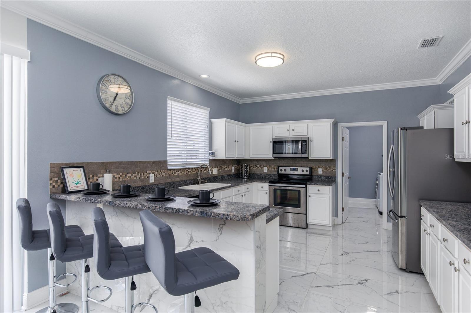 Welcome to Your Dream Home! Nestled in the beautiful Bella Toscana community, this stunning fully furnished 5-bedroom, 2.5-bath home with an office space offers contemporary elegance and endless possibilities. Whether you're seeking a perfect family haven or a prime investment opportunity, this two-story masterpiece with elegant upgrades is sure to impress. Step inside and be welcomed by gleaming tile floors, soaring high ceilings adorned with crown molding, and abundant natural light. The chef’s dream kitchen boasts stainless steel appliances, ample cabinet and counter space, and a breakfast bar for casual dining. A formal dining area adjacent to the kitchen is perfect for hosting gatherings and creating cherished memories. Slide open the doors to a fully fenced backyard, where you'll find the ideal setting for outdoor entertaining—play table tennis, grill up a barbeque, or simply relax under the Florida sky. Enjoy fresh avocados and lemons from your own fruit trees! Downstairs, there's a versatile office/bonus room and a laundry area conveniently located off the kitchen. The garage, currently transformed into a game room, is packed with entertainment options but can easily revert to its original use. Upstairs, all bedrooms are thoughtfully arranged for comfort. The Master Retreat beckons with a spacious layout, en-suite bath, and an adjacent bonus bedroom, perfect for a nursery or private study. The additional three large bedrooms are located separately for privacy and comfort. This one-of-a-kind home is ideally located just minutes from world-famous theme parks like Disney and Universal, as well as premier shopping, dining, and entertainment venues. Sold fully furnished with TV sets in nearly every room and equipped with Ring service for added security, this property is move-in ready! Don't miss out—schedule your showing today and start living your Florida dream!