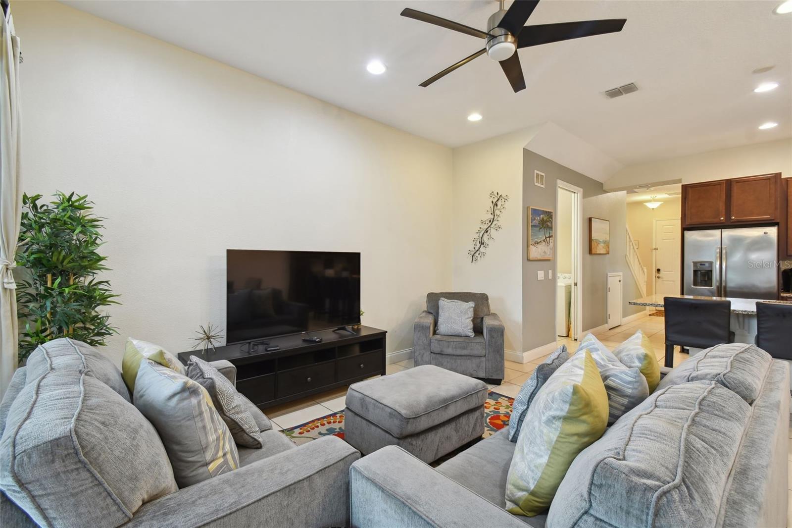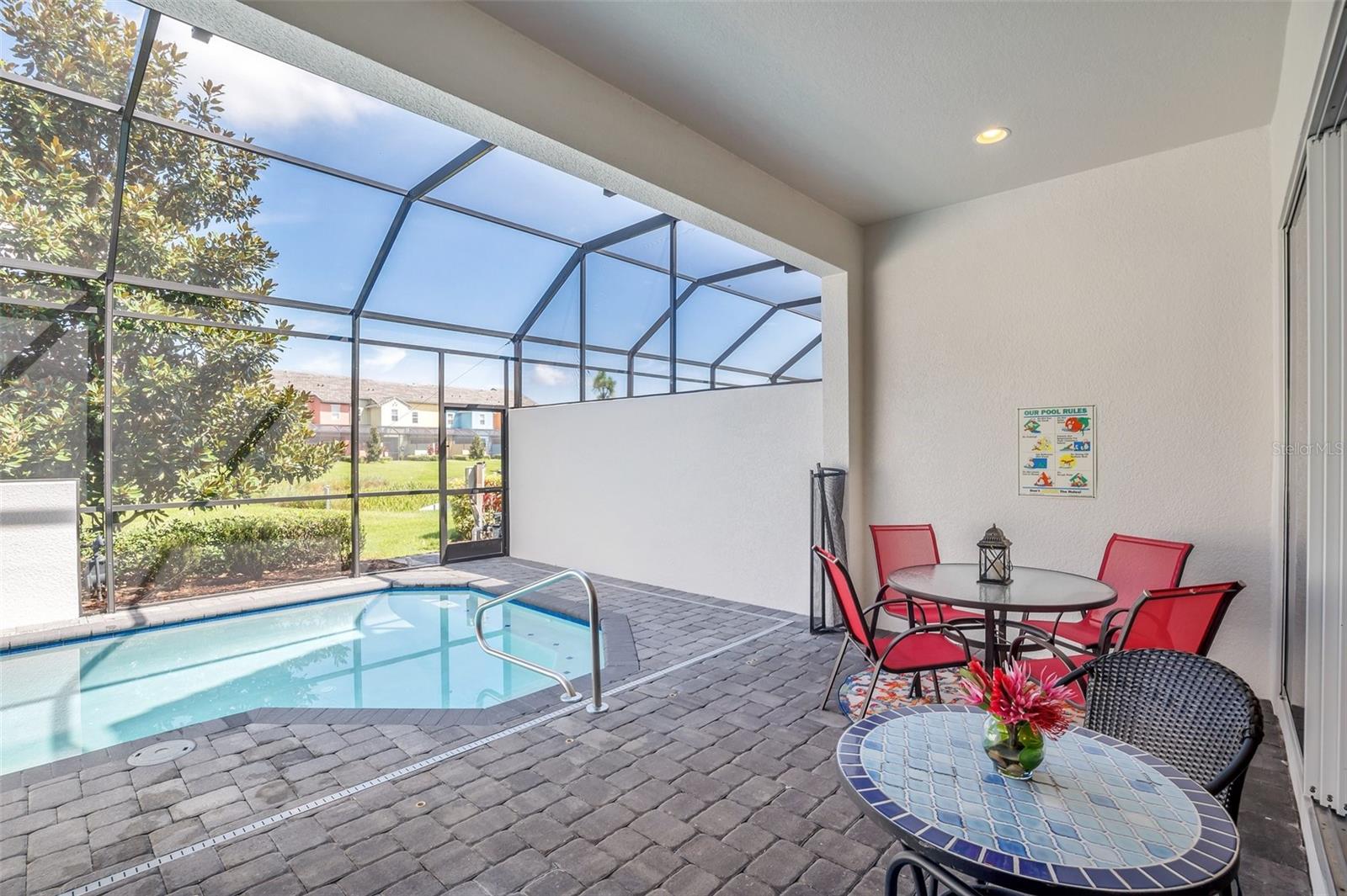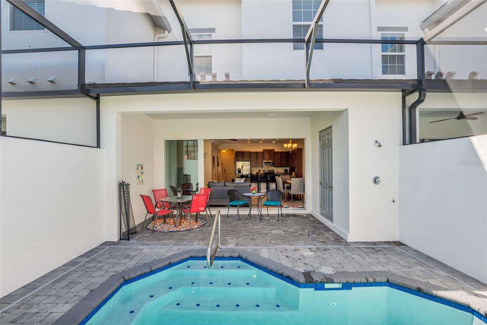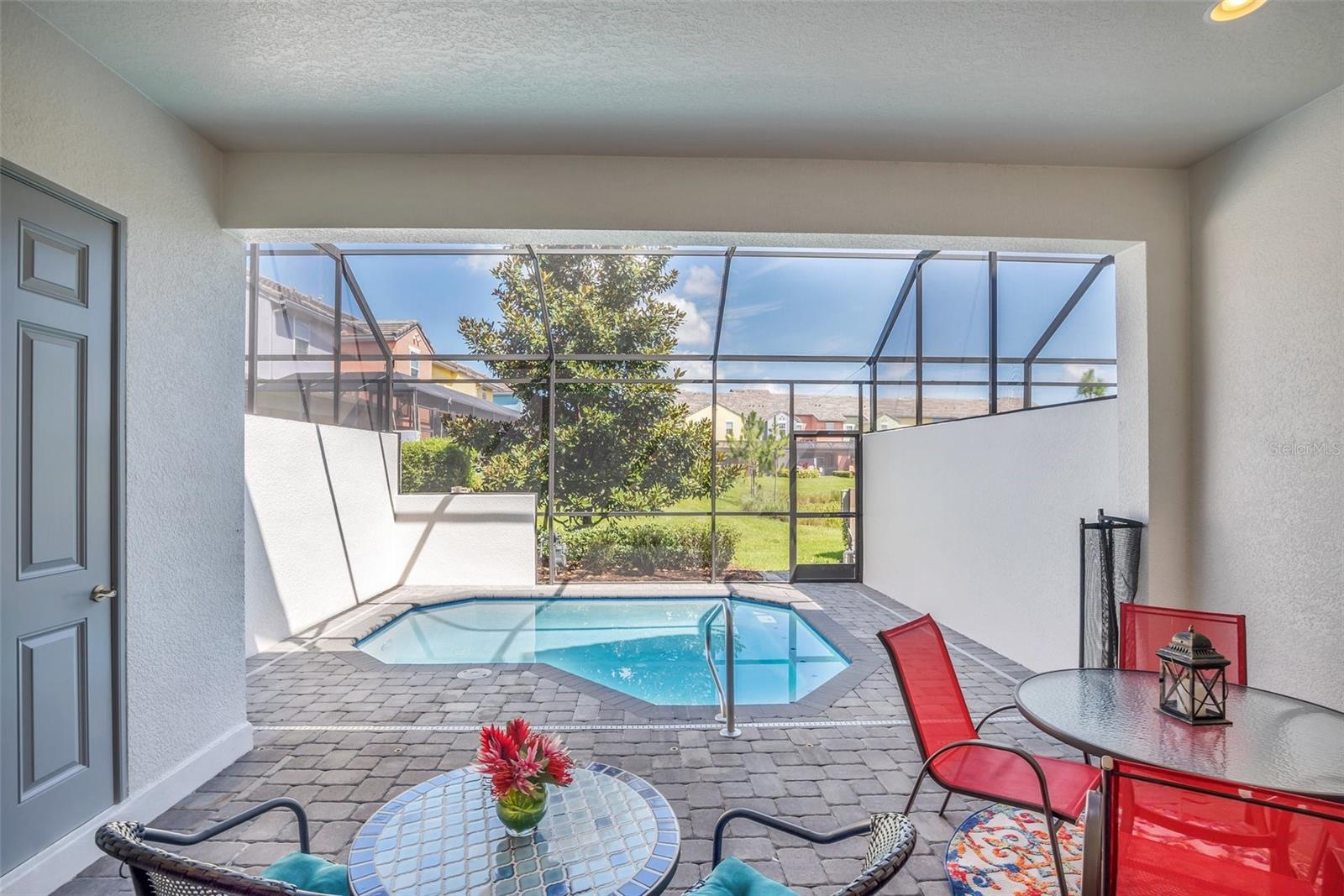 Welcome to this Luxurious Fully Furnished 4-Bedroom 4 1/2 bathroom Townhome with Private Pool in The Enclaves at Festival. Discover the perfect combination of luxury and convenience with this stunning townhome which is ideal for those seeking a primary residence, vacation home, or Turnkey short-term rental investment property.**Fully Furnished** The community is Airbnb approved! Entering the home you will find soaring volume ceilings, tile throughout all walking areas, kitchen and bathrooms, recessed lighting throughout and more! To the left is the first bedroom with ensuite bathroom with dual vanities and a shower going into the guest 1/2 bathroom. Continuing into the home is you find the gourmet kitchen which comes complete with stainless steel appliances, granite countertops, a large island, and ample cabinet space, offering both style and functionality. The kitchen is open to a large family room and dining area. Perfect for guest and entertaining. Step outside to your very own private pool, on a large paver lanai where you can relax and bask in the Florida sunshine. There is additional storage room out here for pool supplies and toys. The first floor is complete with a laundry room next to the kitchen.The upstairs contains 3 additional bedrooms and 2 bathrooms. Located just minutes from world-class attractions, shopping, dining, and entertainment, this townhome offers unparalleled convenience. Enjoy access to exclusive community amenities, including a clubhouse, fitness center, 2 restaurants, arcade room, onsite HOA staff and Beach style sand volleyball court, heated swimming pool with Cabanas, Motion Sensor Water Park for the little ones, an 18 Hole Putt-Putt Golf Course. All of this is located within 30 minutes to Disney!