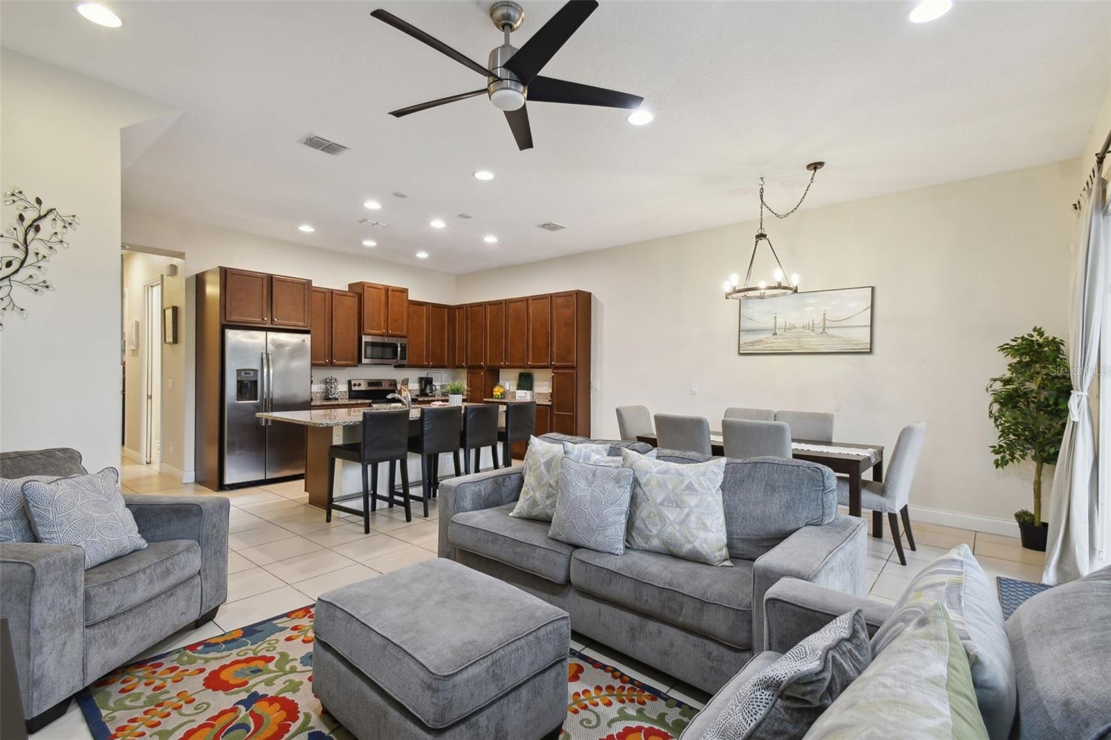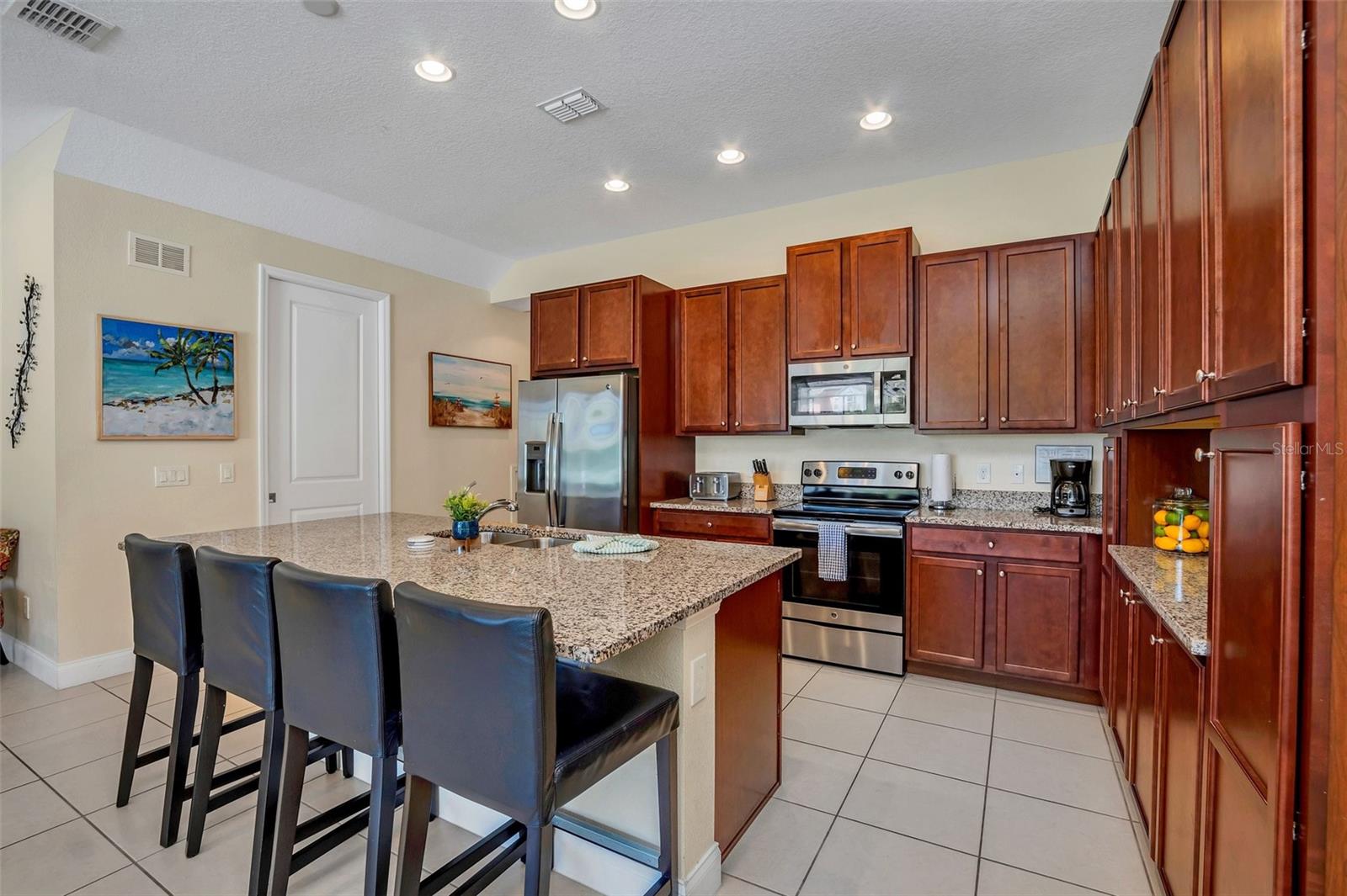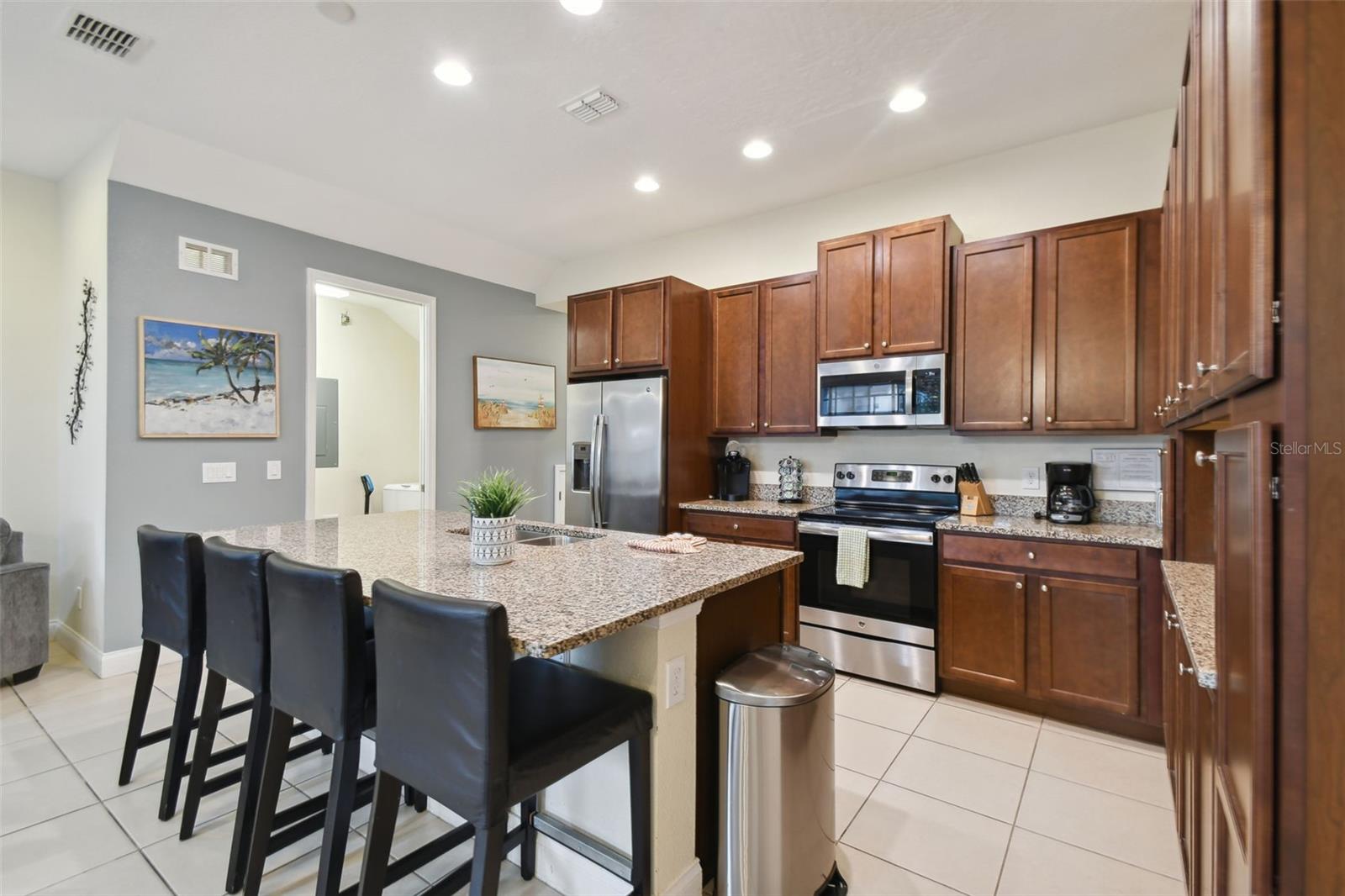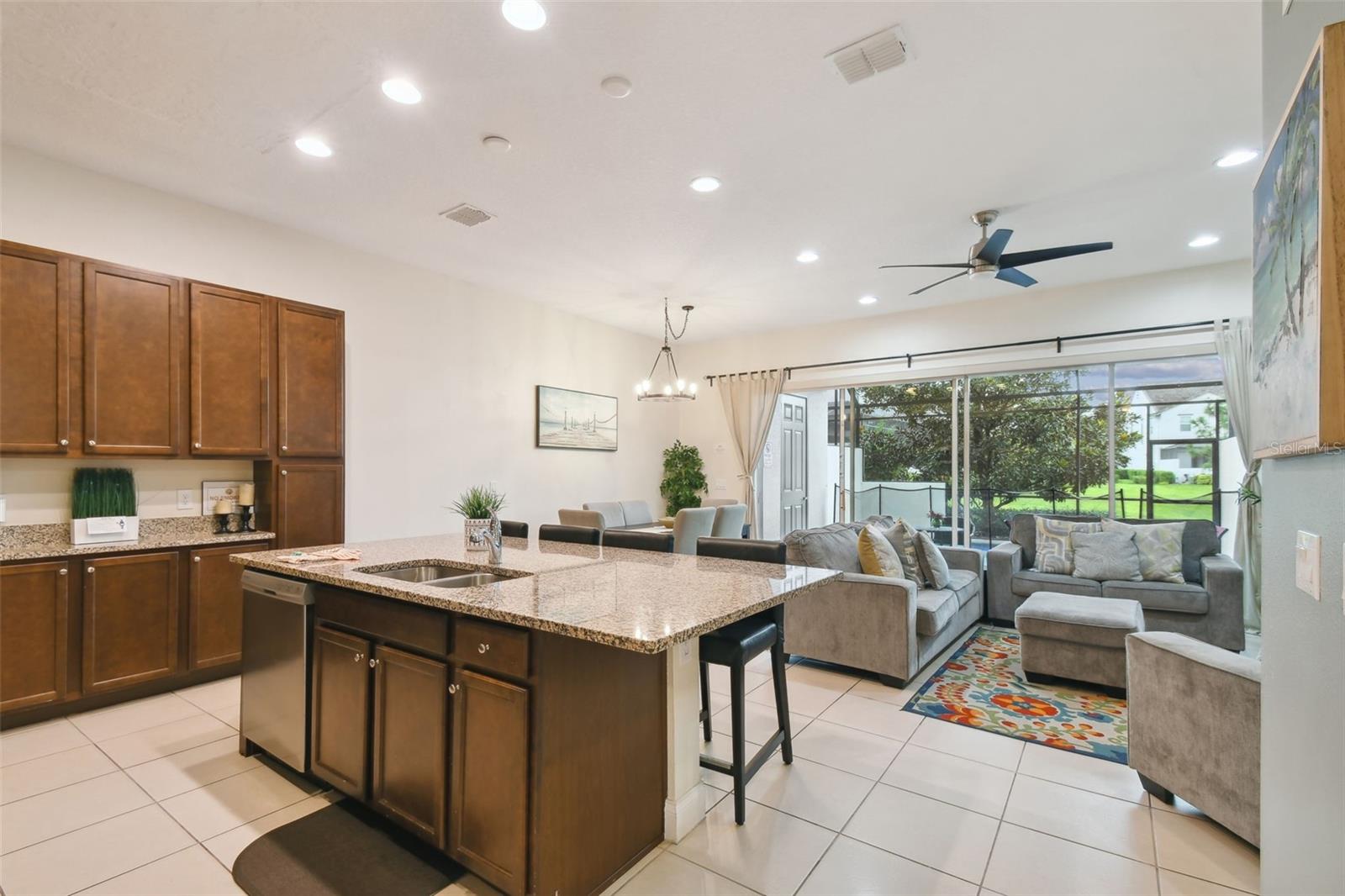 Welcome to this Luxurious Fully Furnished 4-Bedroom 4 1/2 bathroom Townhome with Private Pool in The Enclaves at Festival. Discover the perfect combination of luxury and convenience with this stunning townhome which is ideal for those seeking a primary residence, vacation home, or Turnkey short-term rental investment property.**Fully Furnished** The community is Airbnb approved! Entering the home you will find soaring volume ceilings, tile throughout all walking areas, kitchen and bathrooms, recessed lighting throughout and more! To the left is the first bedroom with ensuite bathroom with dual vanities and a shower going into the guest 1/2 bathroom. Continuing into the home is you find the gourmet kitchen which comes complete with stainless steel appliances, granite countertops, a large island, and ample cabinet space, offering both style and functionality. The kitchen is open to a large family room and dining area. Perfect for guest and entertaining. Step outside to your very own private pool, on a large paver lanai where you can relax and bask in the Florida sunshine. There is additional storage room out here for pool supplies and toys. The first floor is complete with a laundry room next to the kitchen.The upstairs contains 3 additional bedrooms and 2 bathrooms. Located just minutes from world-class attractions, shopping, dining, and entertainment, this townhome offers unparalleled convenience. Enjoy access to exclusive community amenities, including a clubhouse, fitness center, 2 restaurants, arcade room, onsite HOA staff and Beach style sand volleyball court, heated swimming pool with Cabanas, Motion Sensor Water Park for the little ones, an 18 Hole Putt-Putt Golf Course. All of this is located within 30 minutes to Disney!