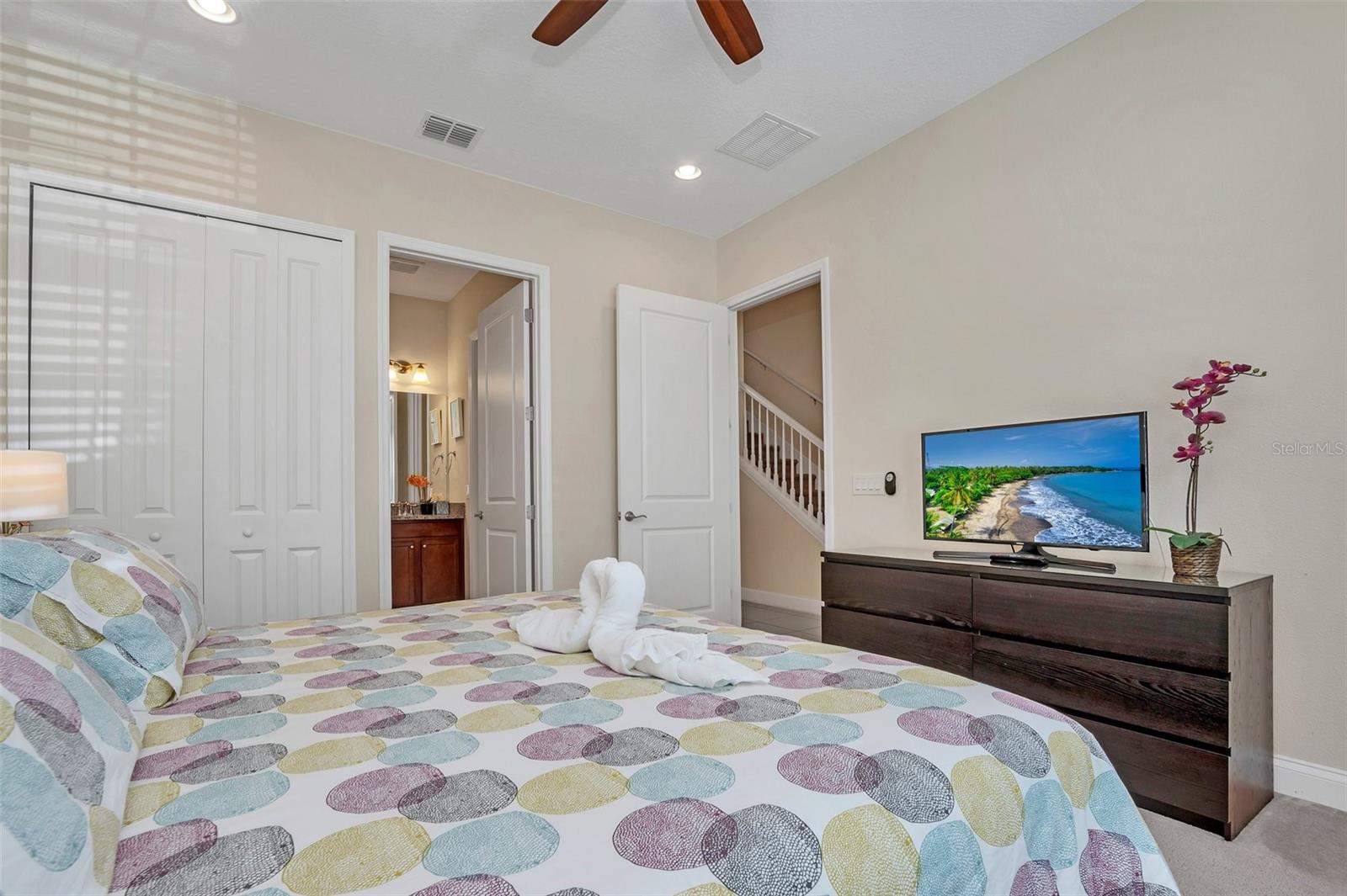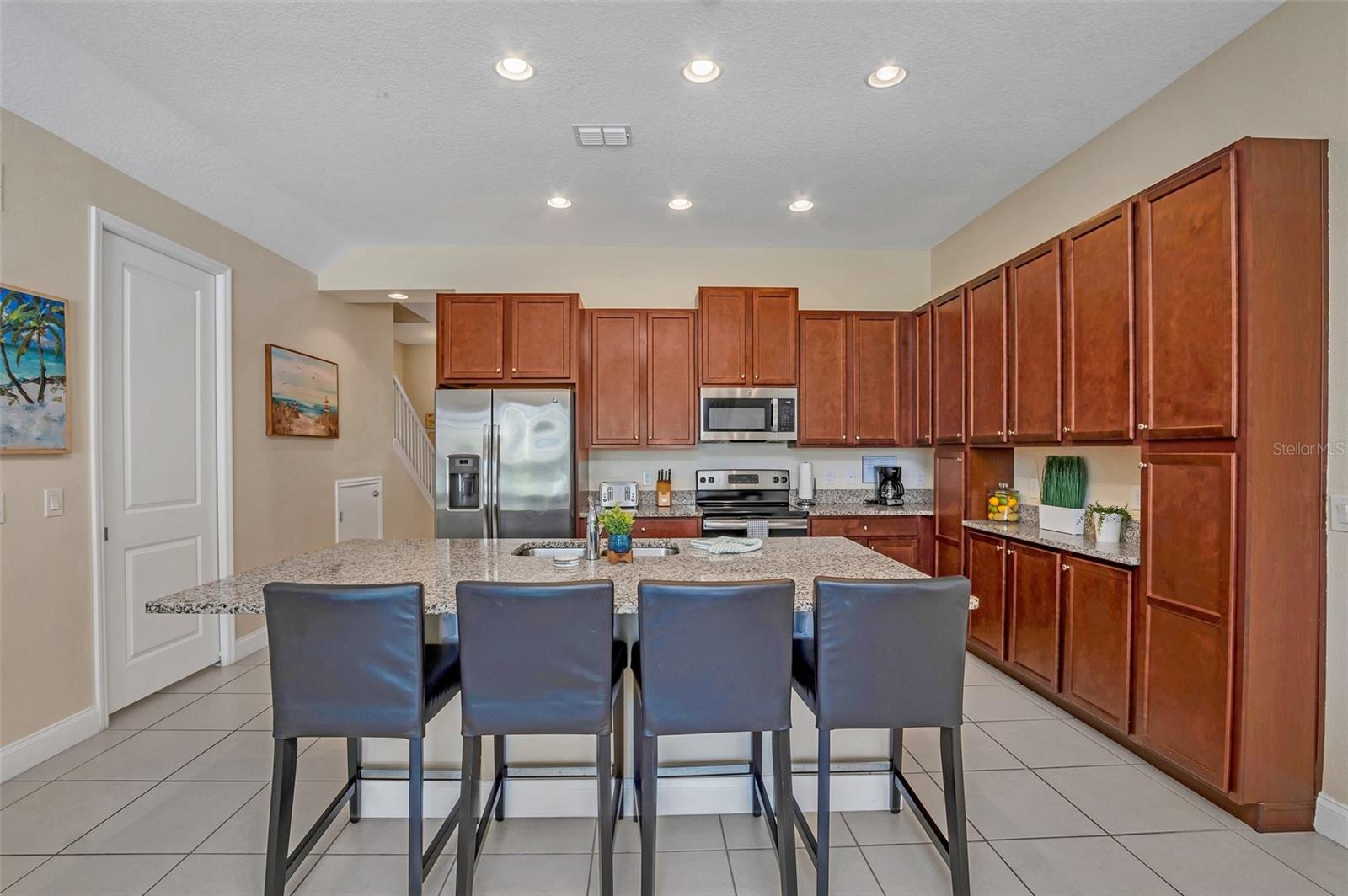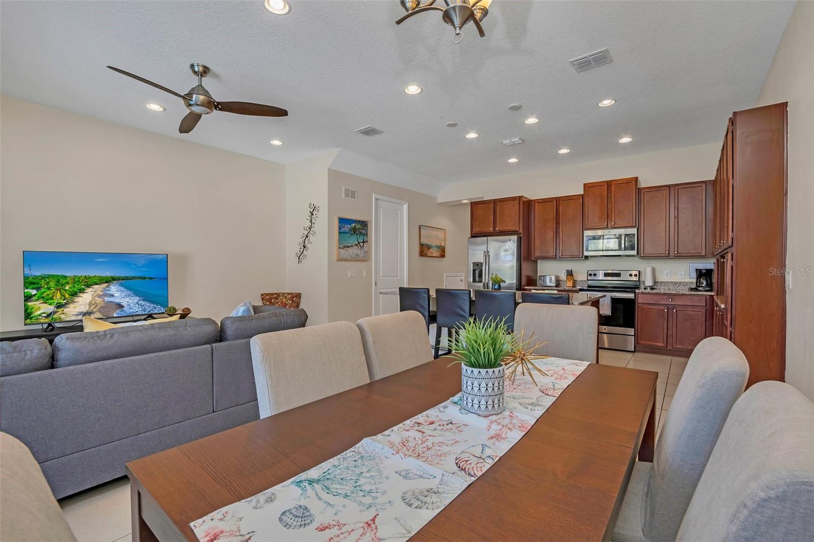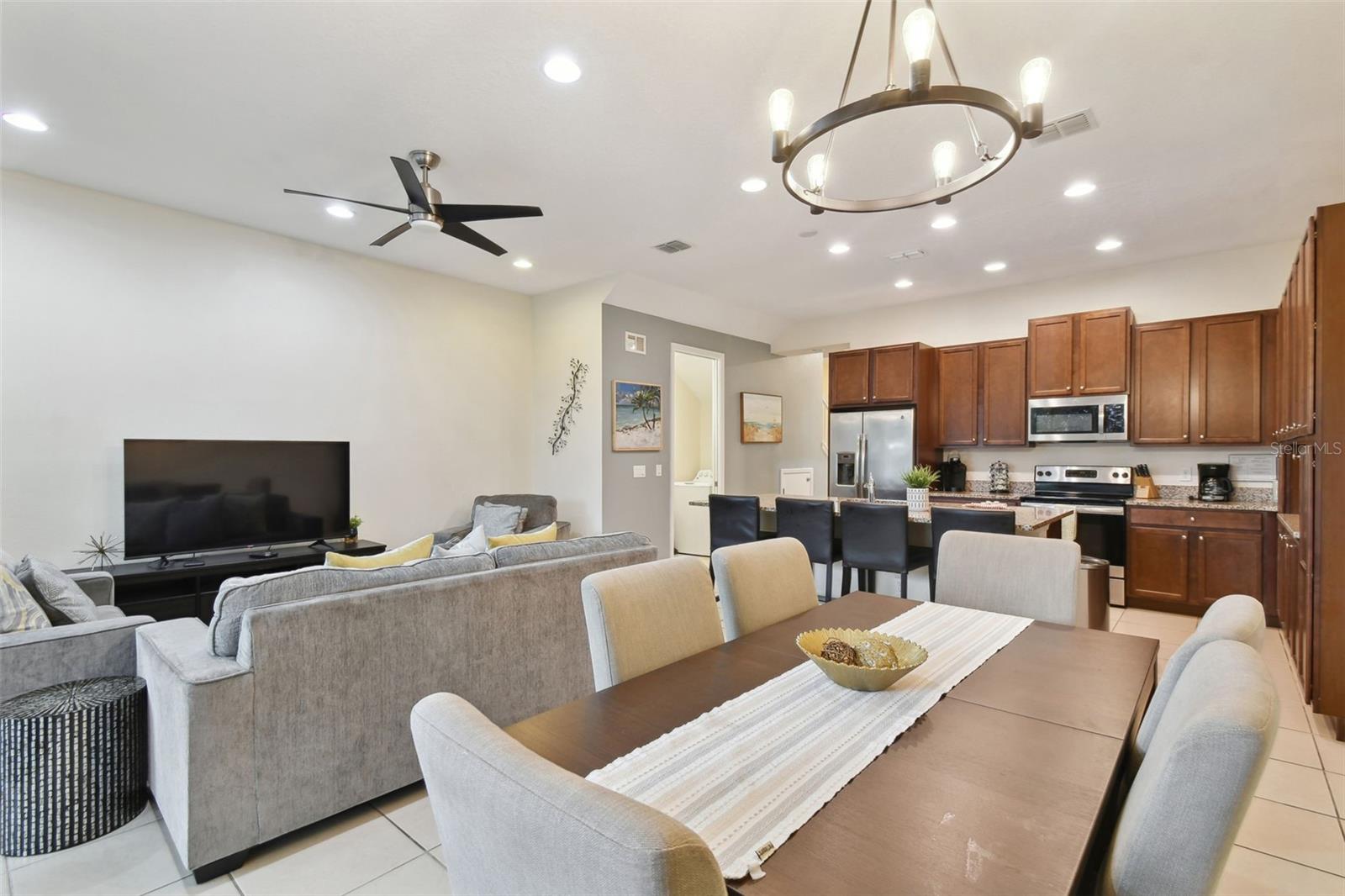 Welcome to this Luxurious Fully Furnished 4-Bedroom 4 1/2 bathroom Townhome with Private Pool in The Enclaves at Festival. Discover the perfect combination of luxury and convenience with this stunning townhome which is ideal for those seeking a primary residence, vacation home, or Turnkey short-term rental investment property.**Fully Furnished** The community is Airbnb approved! Entering the home you will find soaring volume ceilings, tile throughout all walking areas, kitchen and bathrooms, recessed lighting throughout and more! To the left is the first bedroom with ensuite bathroom with dual vanities and a shower going into the guest 1/2 bathroom. Continuing into the home is you find the gourmet kitchen which comes complete with stainless steel appliances, granite countertops, a large island, and ample cabinet space, offering both style and functionality. The kitchen is open to a large family room and dining area. Perfect for guest and entertaining. Step outside to your very own private pool, on a large paver lanai where you can relax and bask in the Florida sunshine. There is additional storage room out here for pool supplies and toys. The first floor is complete with a laundry room next to the kitchen.The upstairs contains 3 additional bedrooms and 2 bathrooms. Located just minutes from world-class attractions, shopping, dining, and entertainment, this townhome offers unparalleled convenience. Enjoy access to exclusive community amenities, including a clubhouse, fitness center, 2 restaurants, arcade room, onsite HOA staff and Beach style sand volleyball court, heated swimming pool with Cabanas, Motion Sensor Water Park for the little ones, an 18 Hole Putt-Putt Golf Course. All of this is located within 30 minutes to Disney!