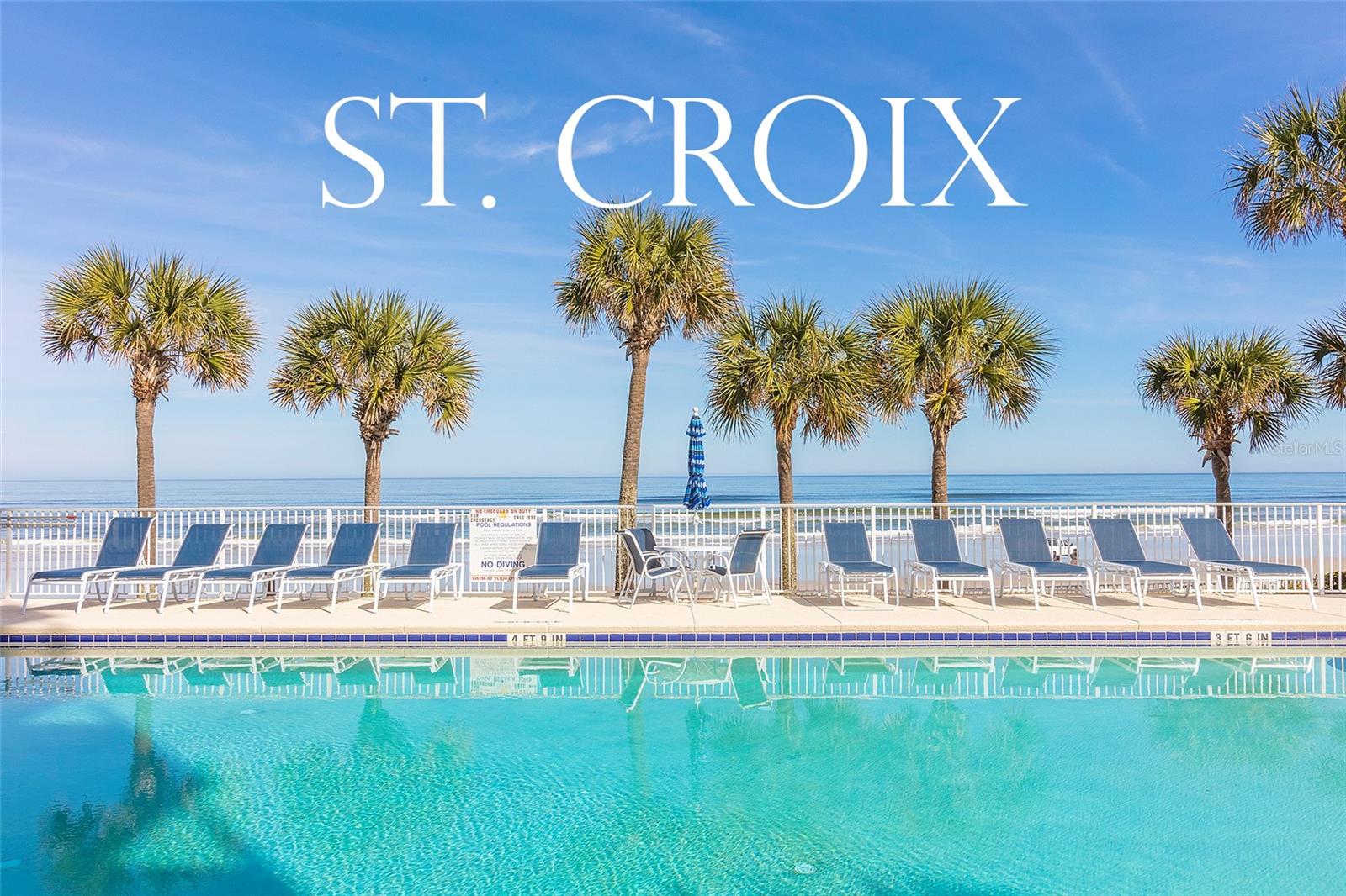 Picture yourself in the private, oceanfront oasis you've always dreamed of. Now come live it from the southeast corner of one the most beautiful beachfront condos along our Atlantic coast. Two spacious oceanfront suites and the large living room open to direct ocean views where you will enjoy birds in flight and dolphins dancing along the water. This move-in-ready condo features tile and flooring in the living areas and an open kitchen featuring ample wood cabinetry and granite counters. Both primary suites also provide balcony access while the large primary bathroom boasts a dual sink vanity, walk-in shower and a soaking tub. This condo features an abundance of storage with large closets and a large utility room for your convenience. The A/C is new in 2022 and here is a reverse osmosis water filtration system installed under the kitchen sink. At St. Croix residents enjoy a laidback yet luxurious lifestyle bolstered by a 55-foot heated oceanfront pool, a spa, secured, underground a game room, a club room & lounge, and more. Don't miss out on this exceptional oceanfront offering! New roof on building being completed, the pool has been resurfaced in 2024, the building is fully funded, and SIRS study is completed per seller.