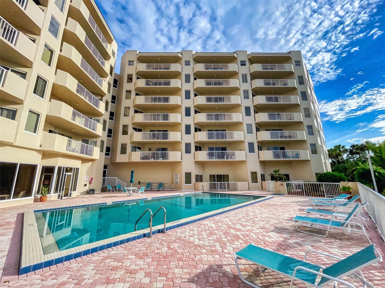Super Cute Condo located in the heart of Daytona Beach Shores. This spacious unit has a huge kitchen with lots of cabinet space and counter tops plus two bedrooms two baths. There is a large private balcony with great views. Complex amenities include 3 pools, one of which is indoor, sauna, fitness room and a 13 hole golf course. Walk to the Daytona Beach Shores Community center.