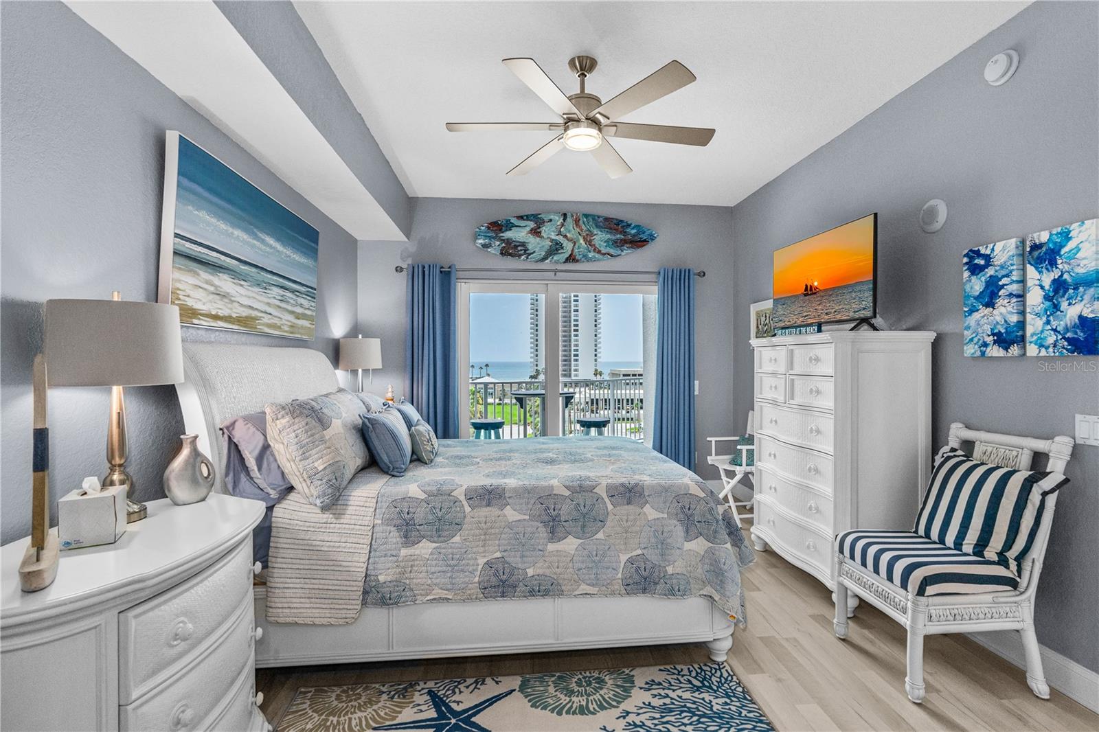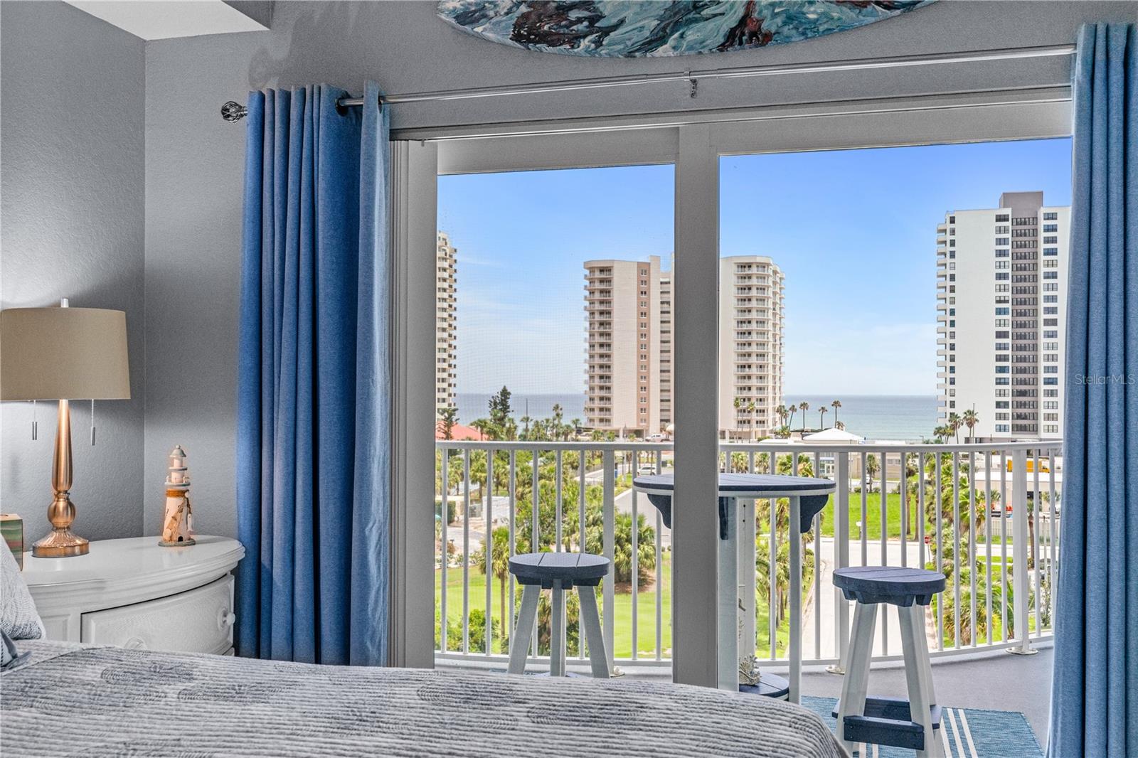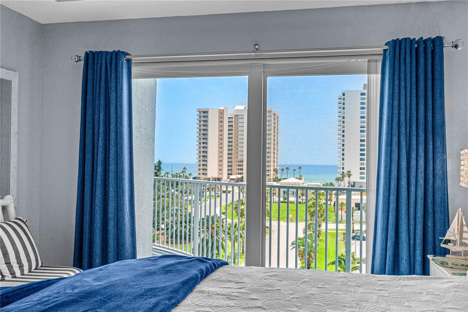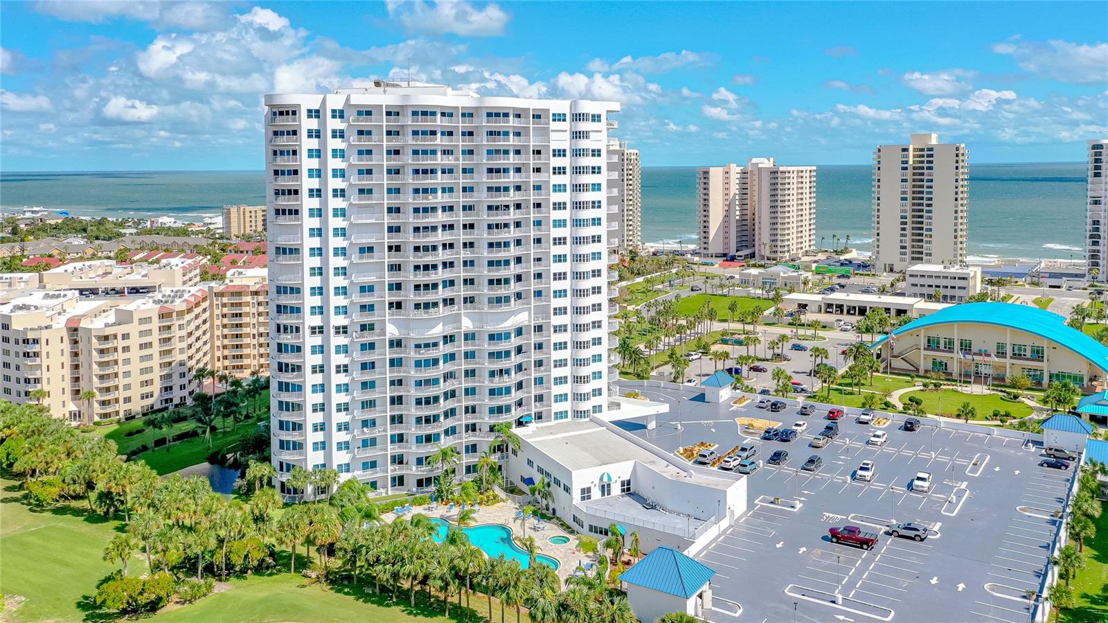 DIRECT OCEAN VIEWS!! The Oceans Grand Condominiums is highly sought after, and is the premier condo for the beachside with their breathtaking views, and vast amenities. This large 2 bedroom condo is a ''center stack'', which means that it faces directly to the ocean... these units do not come available very often! Both bedroom suites have their own balcony with ocean views. So, you can wake up to the sound of waves and watch the sunrise from your own private balcony. This unit is completely ''turn key'' with amazing upgrades throughout. The bonus room/office can very easily be converted into a third bedroom. It comes fully furnished with all high-end, quality furnishings. LVP flooring throughout. Hurricane rated windows and doors. Master bathroom has granite tops, his & her sinks, stand-up shower and jacuzzi tub. Kitchen has granite tops and soft close cabinets. Freshly painted interior. Nine foot ceilings. AC 2024. WH 2019. (2) storage cages. Assigned parking space in garage. This newer complex is structurally and financially strong! It has recently completed a Structural Integrity Reserve Study (SIRS), and it is fully funded, which gives you comfort and peace of mind knowing that it is fiscally responsible.