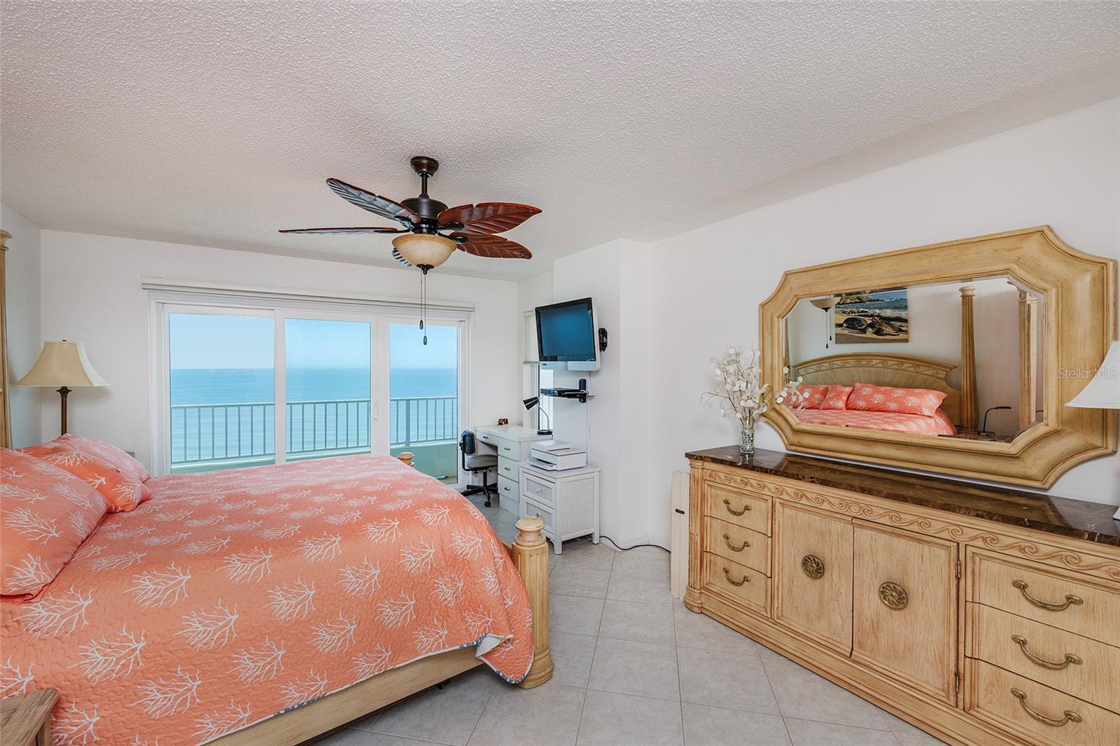Postcard-worthy panoramas of the World's Most Famous Beach set your daily scene from the 16th floor perch at opulent Oceans Eight. Here you will enjoy direct oceanfront scenes from the living room, primary suite and sprawling balcony. Convenient tile flooring runs throughout the living areas and primary bedroom, with upgraded ceiling fans and thoughtful storage throughout. The open kitchen is well-equipped for meal prep with ample cabinetry and counterspace, quality appliances and a beautiful beach view from the kitchen sink. The primary suite boasts oceanfront balcony access and a relaxing soaking tub in the primary bath. Amenities at Oceans Eight include both indoor and outdoor swimming pools, a fitness room, a jacuzzi, sauna and a clubroom. Also enjoy the ultimate convenience of golf, tennis, shopping & dining options just across the street. Begin the beautiful beachside lifestyle you've been dreaming of today!