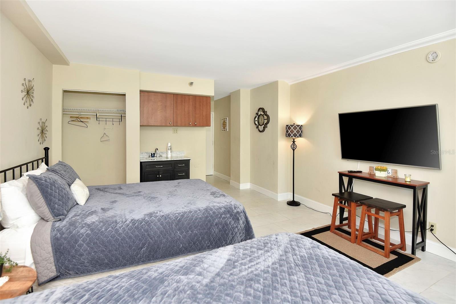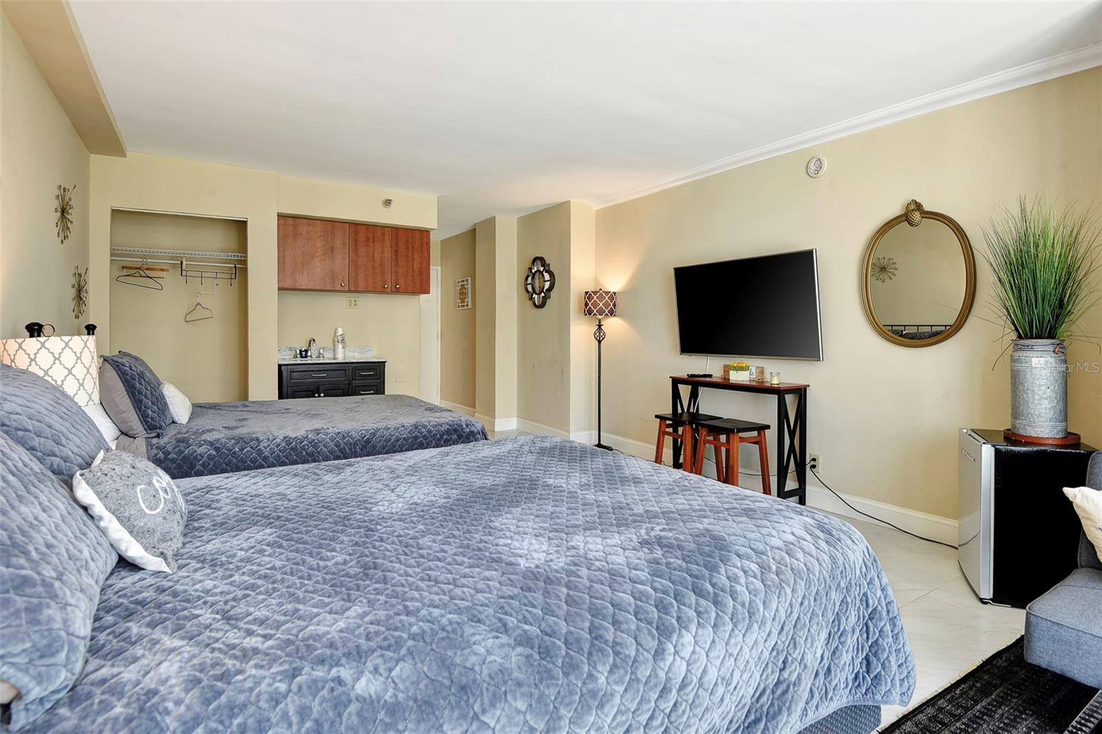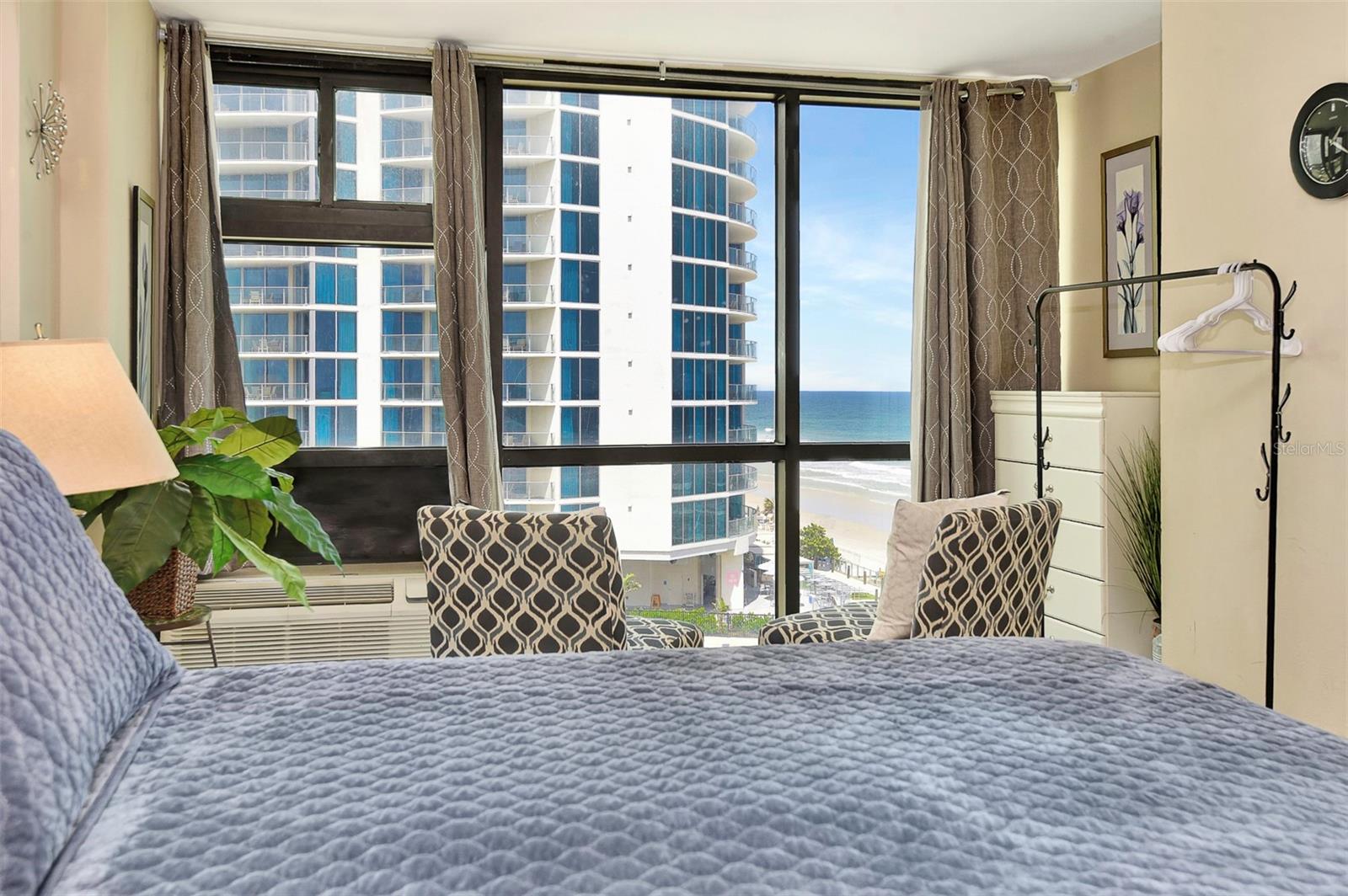 Experience the ultimate beach lifestyle in this stunning condo set. With a modern and stylish remodeling, this luxurious 2-unit condo is complete with floor-to-ceiling windows and offers breathtaking views of the Atlantic Ocean. The two units, 620 & 621, combine for 793 square feet of beauty, ensuring ample space for everyone to relax and unwind in comfort. 621 features a brand new stylish king-sized bed, two new sofa chairs, a beautiful bathroom, and porcelain tile floors throughout. The second unit, 620, features two queen sized beds, new stylish futon sofa, a kitchenette, a standing showing in bathroom, porcelain tiles throughout, and this unit can comfortable accommodate up to five guests. Relax and indulge in a range of incredible amenities, including a fully remodeled lobby area, updated hallways with new carpet installed in 2024, a spectacular pool, and a tiki bar. All this comes with an opportunity to join the daily rental program run by the on site management team. You can enjoy extra income with hassle-free for you, with 80/20 profit split. These two units stand out against the competition because these two units have been fully remodeled and have incredible views. A proved track record of rentals as well as any future rentals will transfer with new ownership. The best feature of this condo is the location! Just steps from the sandy beaches of Daytona, you’ll have your own piece of paradise right at your fingertips. Whether you’re looking for a quiet escape or a vibrant beach scene, you’ll find everything you need to unwind as well as recharge in this gorgeous and luxurious condo. Note: Unit 620 comes with a long term renter and lease will transfer to new owners. HOA of $809 monthly fee that covers all amenities is completely covered by this renter. As of November 2024 the assessment fee has ended. There will be additional income coming from all rentals of the 2nd condo 621 with the 80/20 split. If interested the new owners have the option to keep 621 off the rental program, just for personal use.