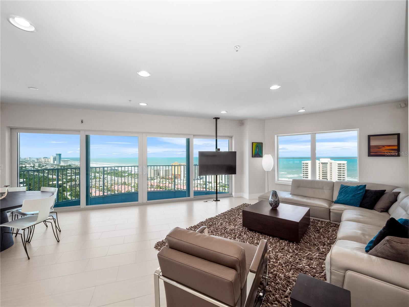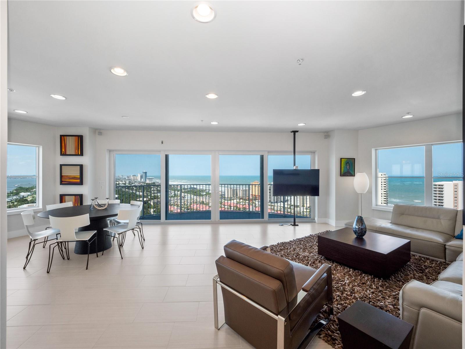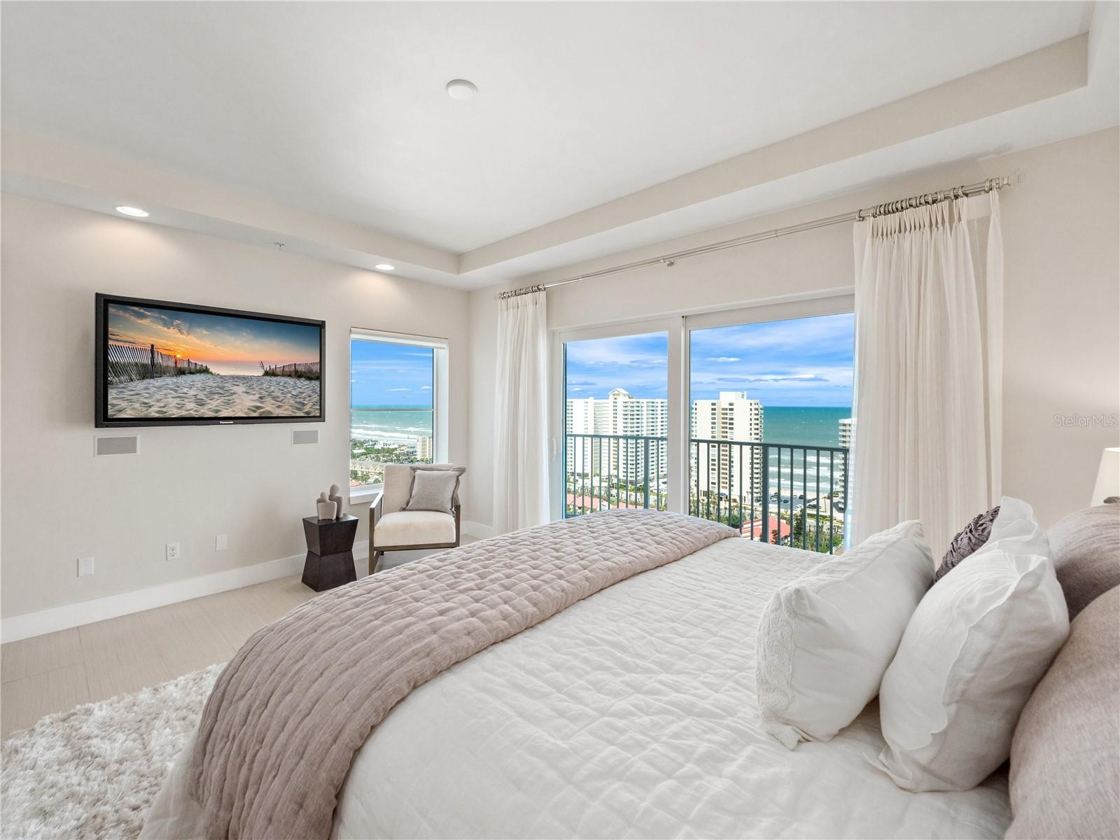 LUXURY LIVING AT ITS FINEST! Perched high on the 20th floor, this spectacular corner unit offers an unmatched combination of elegance, comfort, and breathtaking panoramic views of the Atlantic Ocean and Intracoastal Waterway. Spanning 2,480 sq. ft. of living space, this sky-high masterpiece is flooded with natural light and designed for the most discerning buyer. Although the Oceans Grand building was built in 2006, this unit is one-of-a-kind and completely different than other units in the building, as it was expertly designed and finished by the Award Winning & World Renowned Architect, Phil Kean in 2014! Every inch of this residence reflects Phil Kean’s signature style, blending luxury with functionality. Located on the Northeast corner, the most desirable exposure in the building, this residence welcomes you through double doors into a light-filled, open-concept layout, where floor-to-ceiling windows frame endless water views and sleek designer finishes shine throughout. The gourmet kitchen is a showstopper, featuring custom cabinetry, granite countertops, high-end appliances, and an oversized island—perfect for hosting and everyday luxury. The one-of-a-kind dining nook showcases wrap-around built-in seating and is perfectly positioned to enjoy your daily sunrise and sunset. The primary suite is your private sanctuary, complete with its own balcony, spa-inspired ensuite featuring a soaking tub, frameless glass shower, dual vanities, granite countertops and dual closets with one being a walk-in closet. Two additional spacious bedrooms, one with its own balcony, each offer incredible views, ample storage, and access to their own luxurious bathrooms. New Motorized hurricane shutters on all balconies—conveniently operated at the touch of a button. Every detail of this skyhome has been curated with intention—premium flooring, modern lighting, custom finishes, and the refined elegance that defines a Phil Kean masterpiece. Residents of Oceans Grand enjoy resort-style amenities, including an elegant pool with a hot tub, spacious fitness center, mens and ladies sauna and steam rooms, club/social room, and game room. Oceans Grand welcomes pets and this unit has its own climate controlled storage unit and a secured parking spot. Ideally located just steps from the local shops, Publix supermarket, banks, a pharmacy, community center, golf, tennis, pickleball - and of course, the serenity of the ocean. Schedule your private tour today and experience elevated coastal living!