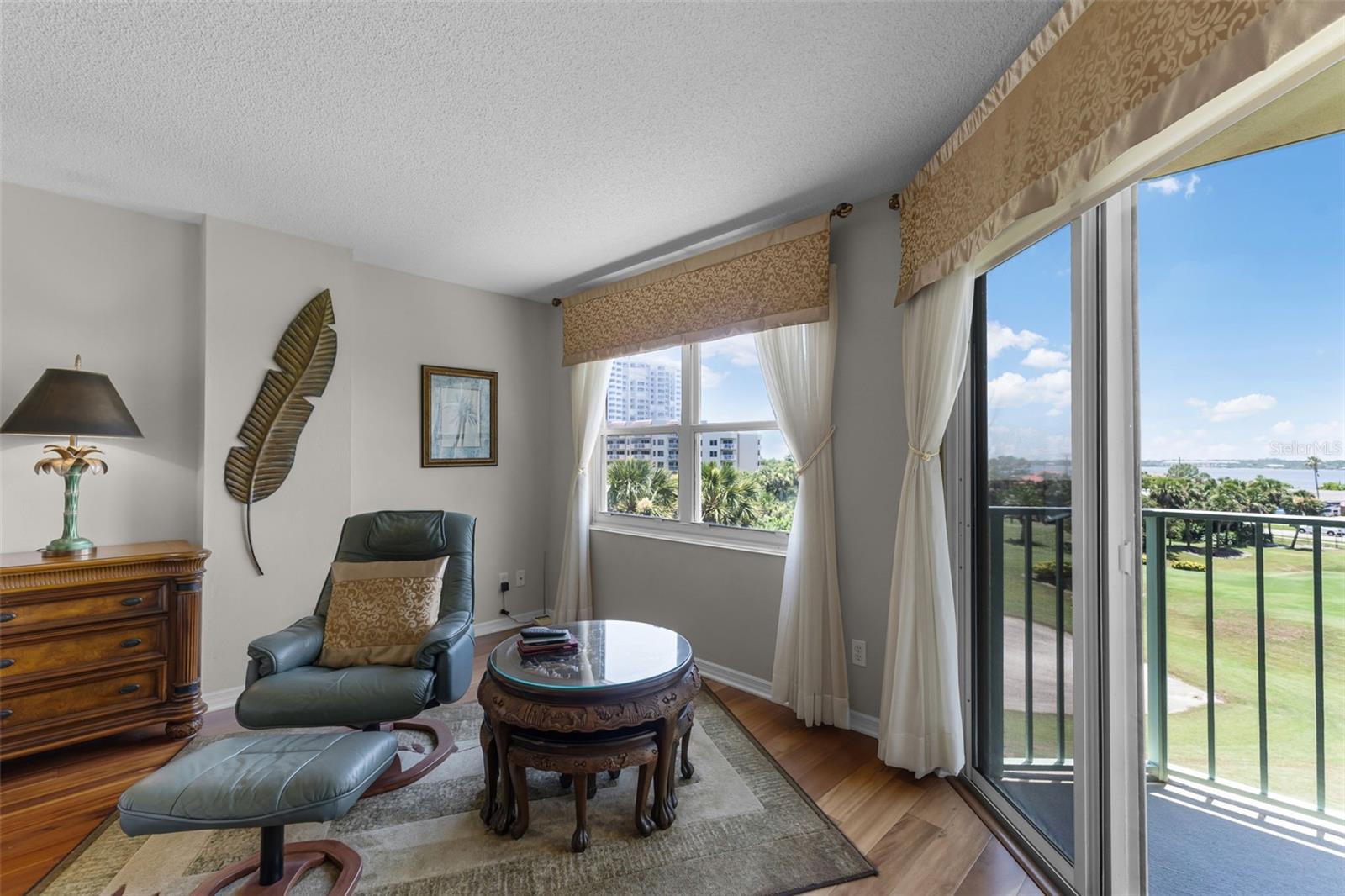 Welcome to coastal living at its best in Daytona Beach Shores at Unit 502D at Oceans Cloverleaf North! This SPACIOUS 3-bedroom, 2-bath furnished condo offers over 2,100 square feet of open, NATURAL LIGHT sunlit living space with UNOBSTRUCTED INTRACOASTAL VIEWS from the great room, dining area, and owner’s suite. Located just STEPS FROM THE BEACH, this beautifully maintained home is ideal as a peaceful retreat, full-time residence, or income-generating investment. Enjoy stunning sunsets from your PRIVATE BALCONY or entertain in the large, open-concept living area. The KITCHEN IS FULLY EQUIPPED with stone countertops, stainless steel appliances, walk-in pantry, ample cabinet storage with pull-out drawers, and a sleek tile backsplash. The OWNER’S SUITE is generously sized, featuring balcony access, and a spa-like en suite bath with double vanities, a detached soaking tub, and walk-in shower. Additional highlights include BRAZILIAN KOA ENGINEERED HARDWOOD FLOORING, IN-UNIT LAUNDRY, and a DEDICATED PARKING SPACE LOCATED DIRECTLY ON YOUR FLOOR – skip the elevator and enjoy true convenience! The community boasts RESORT-STYLE AMENITIES includes secure entry, plenty of guests parking, indoor & outdoor pools, sauna, full fitness center, private golf course, clubhouse, library, and more – all in one of the most walkable area in Daytona Beach Shores. Within a 3-MINUTE WALK TO THE BEACH, your private beach access awaits. Publix, dining, and essentials nearby. This is a RARE OPPORTUNITY to own a spacious, turnkey condo with breathtaking views in one of the area’s most desirable buildings. Don’t wait – SCHEDULE YOUR PRIVATE TOUR TODAY!