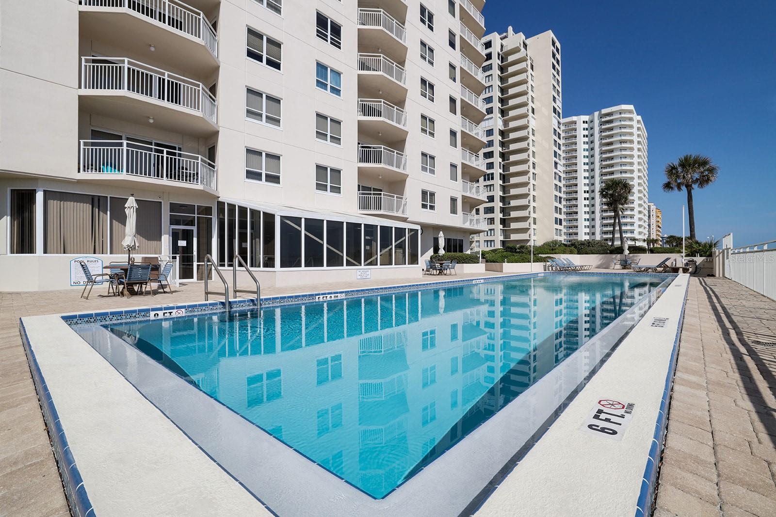 Under contract-accepting backup offers. Direct oceanfront, 1776 sq ft corner unit with wrap around balcony in the well maintained Oceans Six Condominium. This 3 bedroom 2 bath split plan unit has ocean views from all rooms, including the kitchen. Hurricane shutters at the four sets of sliding glass doors to balcony access. This unit comes partially furnished and features built-in shelving/cabinets and a laundry room with washer/dryer hookup. New water heater, newer AC. Enjoy the coastal lifestyle with this well maintained property. Amenities include an onsite manager, indoor heated pool, outdoor pool, sauna, hot tub, fitness center, social room with a catering kitchen, bike room, extra storage area, underground secured parking and a hobby room. An added bonus for convenience, just across the street you'll find Publix, Walgreens, the Shores Community Center, tennis courts, pickleball and a golf course. All information from Tax Record intended to be acccurate, cannot be guaranteed. Buyer to verify.