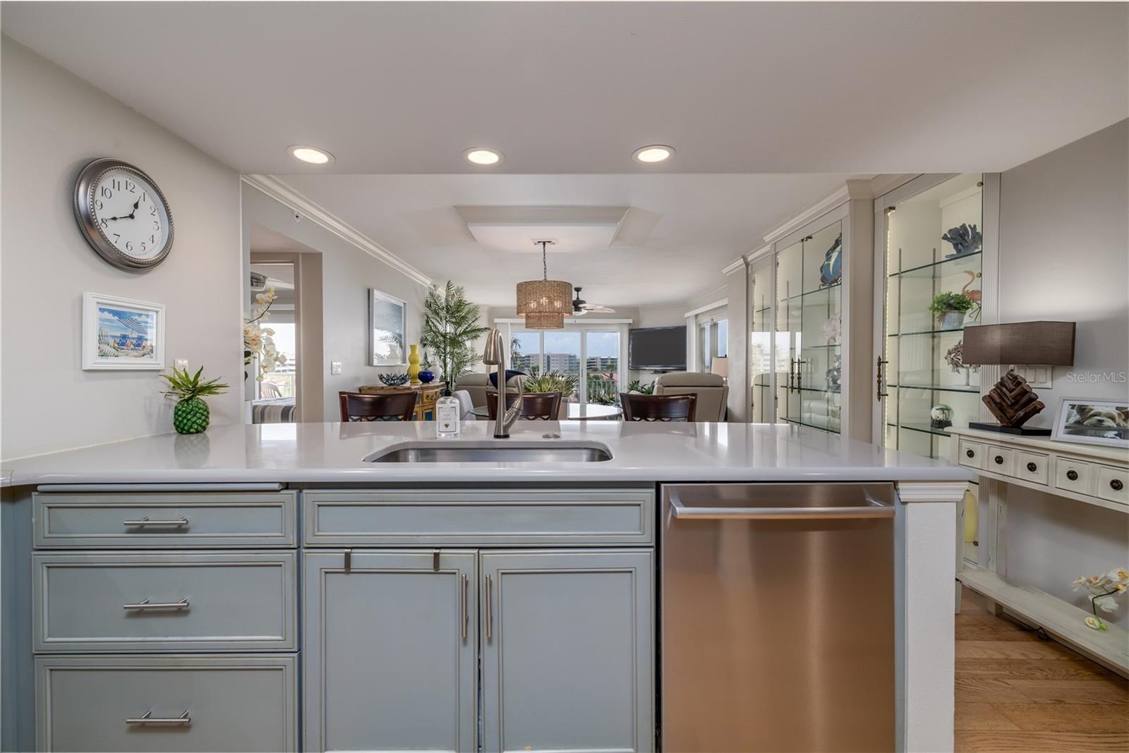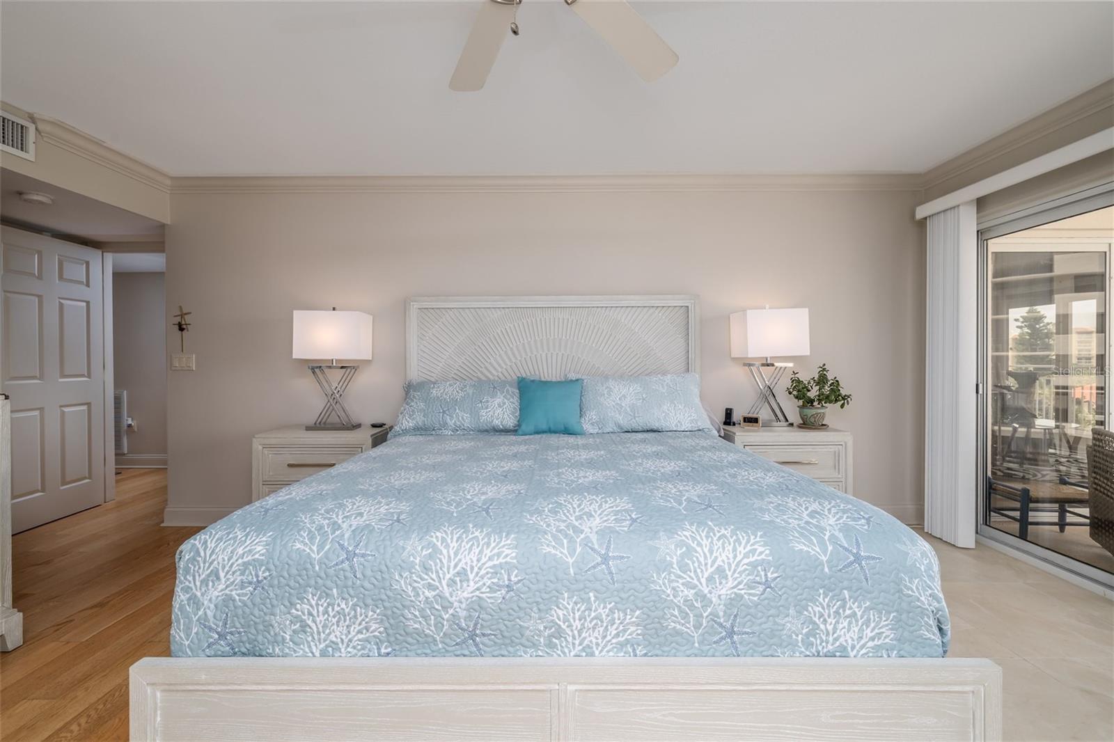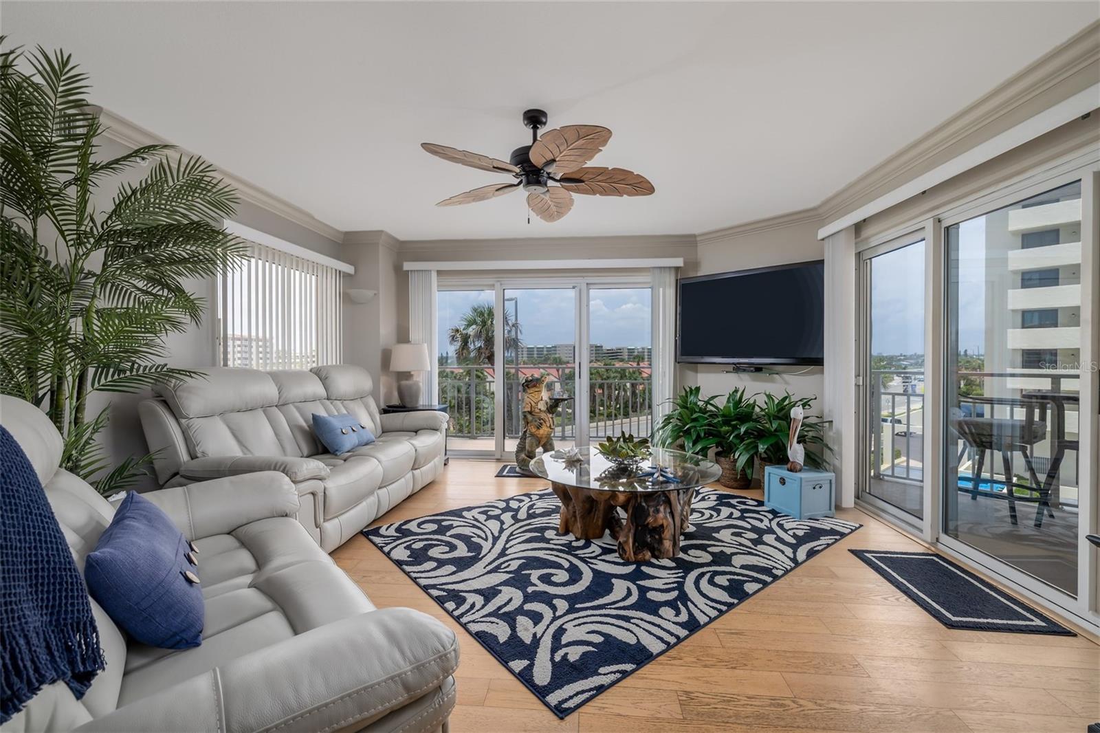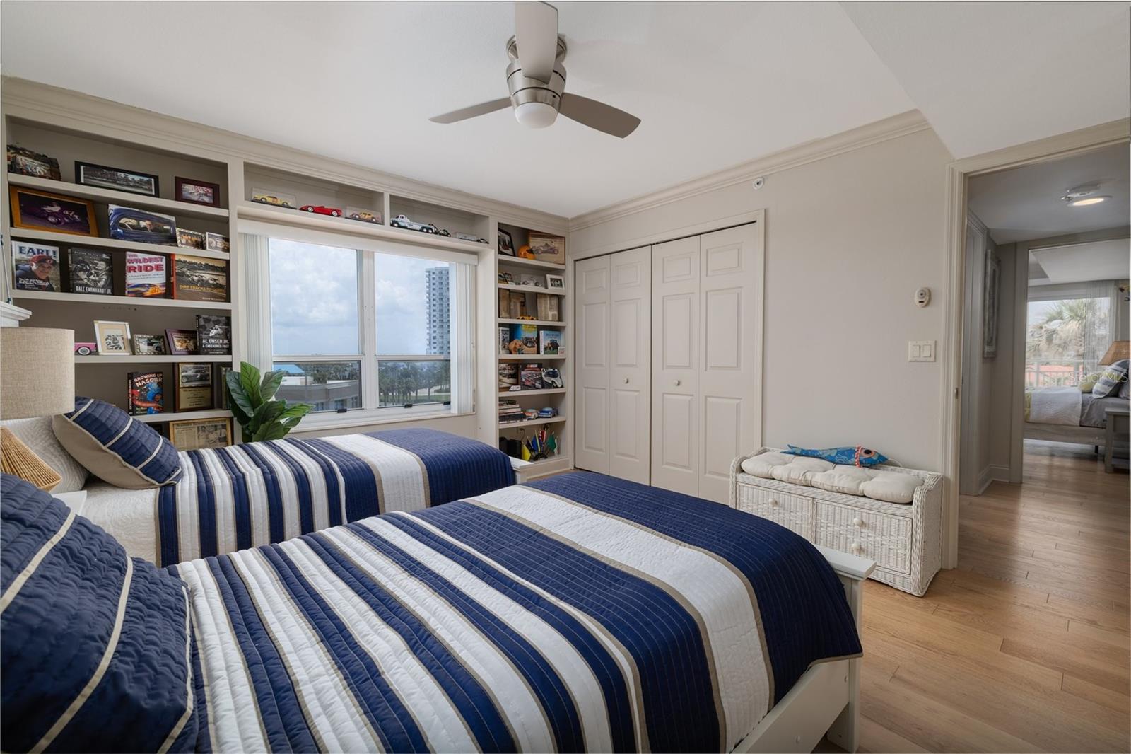 Discover coastal luxury living at its finest in this stunning 3-bedroom, 2-bathroom oasis. Embrace the tranquility of beachside living with breathtaking ocean views and sunsets from an expansive wrap-around balcony. This end unit boasts a wealth of modern upgrades and elegant features, providing an unparalleled living experience in the heart of Daytona Beach Shores. Every detail has been meticulously crafted, from the beautiful hardwood floors that stretch throughout the residence to the crown molding that accents each room. Natural light cascades in through new blinds, while upgraded lighting fixtures and ceiling fans add a touch of sophistication. Custom built-ins are thoughtfully placed around the unit, offering lighted display cabinets, hidden storage, and custom shelving to showcase your treasures. The heart of this home is the beautifully designed kitchen, complete with recessed lighting, rich wood cabinetry highlighted by a lighted display, stainless steel appliances, a tiled backsplash, and open counter seating. Retreat to the spacious primary bedroom, where you can indulge in ocean vistas, direct balcony access, a generous walk-in closet, and an updated en suite with a frameless shower door and custom dual sink vanity. The guest bedrooms are equally impressive, one featuring private balcony access. They share a remodeled bathroom with a thoughtfully tiled design on the floor and shower walls, and a spa-like vanity, complete with unique blue trimmed light-up mirrors that add an air of luxury. An in-unit laundry room with newer washer/dryer provides convenience and practicality to this opulent space. Set in the well-maintained Oceanfront Oceans Six Condominium complex, this unit delivers both the privacy and amenities that discerning buyers desire with 2 pools, spa, saunas, oceanfront fitness center, clubroom, library, workshop in the garage, extra storage, bike room, and 1 assigned secured parking. Furnishings negotiable. AC 2017, Water Heater 2022. This prime location offers easy access just across the street to Publix, Walgreens, banking, pickleball, tennis, a public golf course and dog park. The reserves are fully funded and the SIRS inspection is completed for this building! All information recorded in the MLS intended to be accurate but cannot be guaranteed.