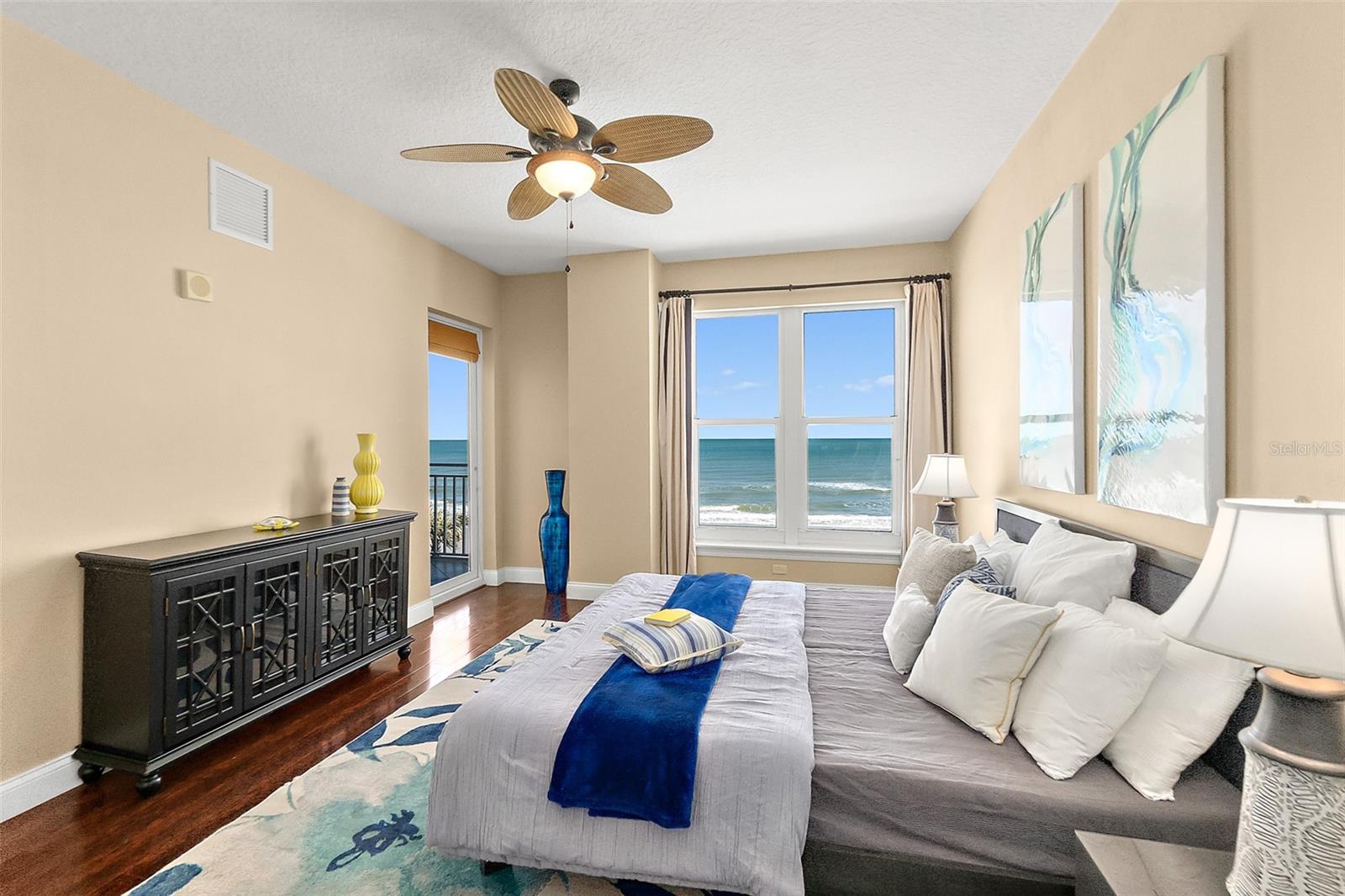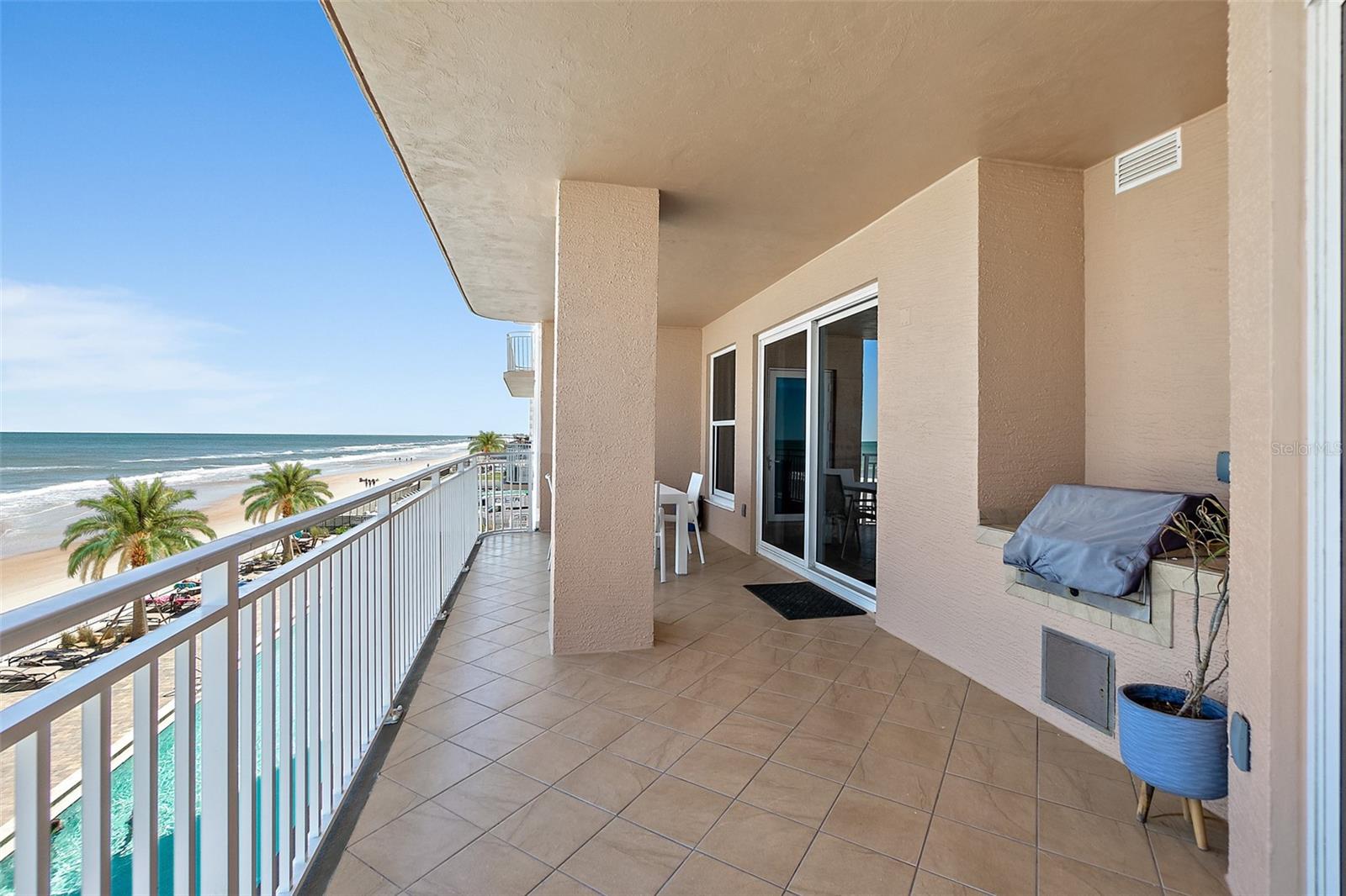 WELCOME TO THIS LUXURIOUS CONDOMINIUM ESTATE ENCOMPASSING MORE THAN 2500 SQ FT OF LIVING AREA. THIS DIRECT OCEANFRONT HOME OFFERS SEMI PRIVATE ELEVATORS, HIGH CEILINGS, FLOOR TO CEILING IMPACT WINDOWS WHICH REFLECT BEAUTIFUL VIEWS. THE MAIN LIVING AREAS FEATURE PORCELAIN TILE FLOORING, WHILE THE BEDROOMS BOAST WARM, INVITING WOOD FLOORING. THE HUGE CHEF'S KITCHEN IS A CULINARY DREAM, COMPLETE WITH BEECHWOOD CABINETRY, STAINLESS APPLIANCES, A WINE REFRIGERATOR AND BAR, MAKING ENTERTAINING EFFORTLESS. THE SPACIOUS PRIMARY SUITE INCLUDES HIS AND HERS OVERSIZED WARDROBES, A SPA STYLE BATH AND BALCONY ACCESS. THE SECOND PRIMARY SUITE IS ALSO OCEANFRONT WITH BALCONY ACCESS AND ALLOWS FOR A COLLECTIVE 50 LINEAL FEET OF OCEANFRONTAGE. THE EXPANSIVE ATMOSPHERE INCLUDES OCEANFRONT DINING AND LIVING AREAS, A LARGE LAUNDRY ROOM AND DECORATOR LIGHTING. THE DEEDED GARAGE PARKING SPACE HAS A CONNECTING, PRIVATE STORAGE ROOM. PALMA BELLA OFFERS ELEGANCE TO OCEANFRONT LIVING! AN OCEANFRONT SWIMMING POOL & SPA, A COVERED LANAI, A FITNESS CENTER AND SOCIAL ROOM ALL ENJOY OCEAN VIEWS! THIS EXTRAORINARY PROPERTY OFFERS UNPARALLELED EXCLUSIVITY, MAKING IT THE ULTIMATE RETREAT FOR THOSE SEEKING BOTH PRIVACY AND GRANDEUR.