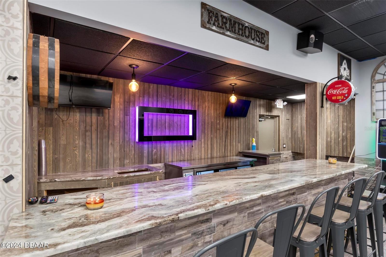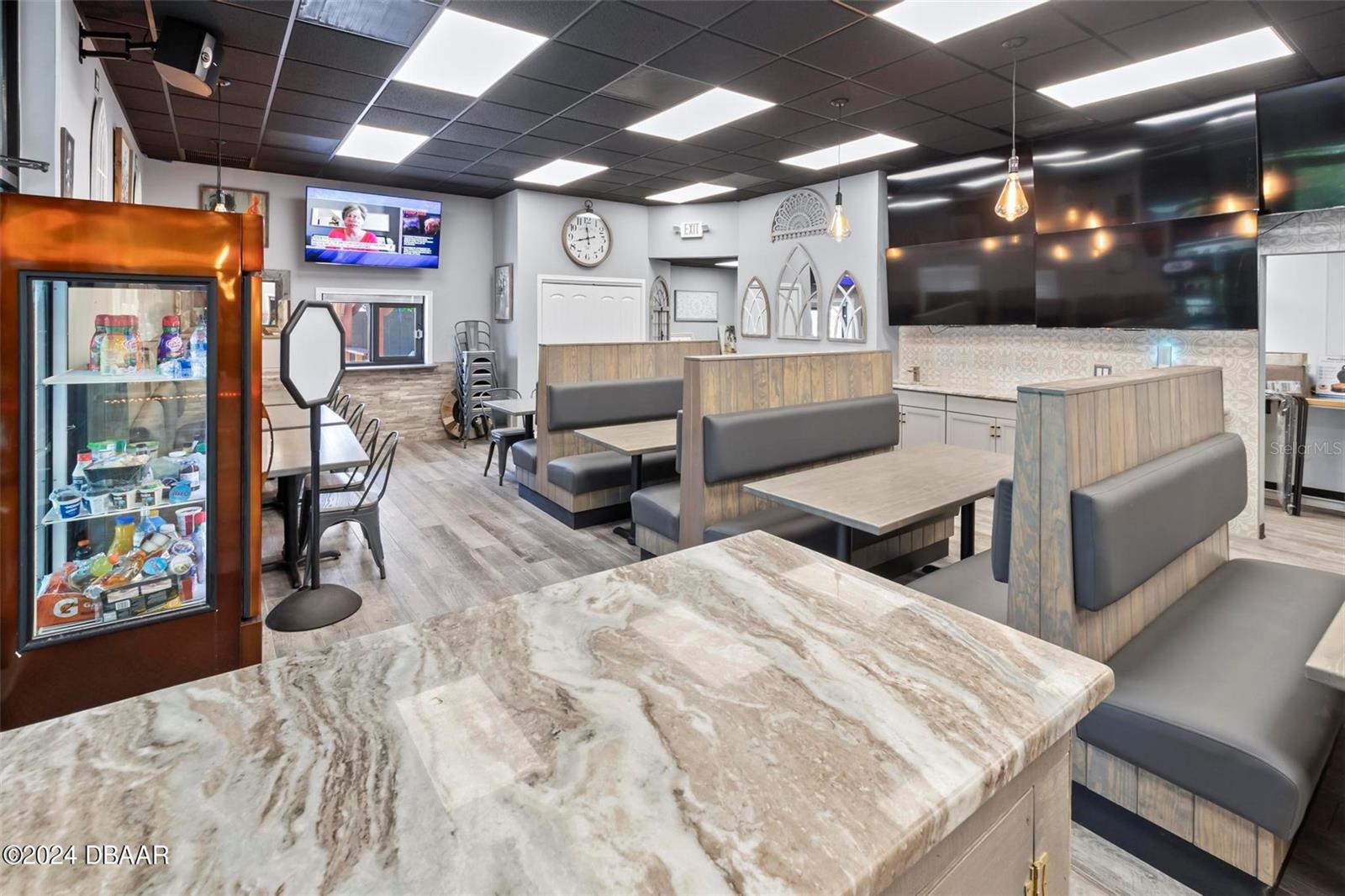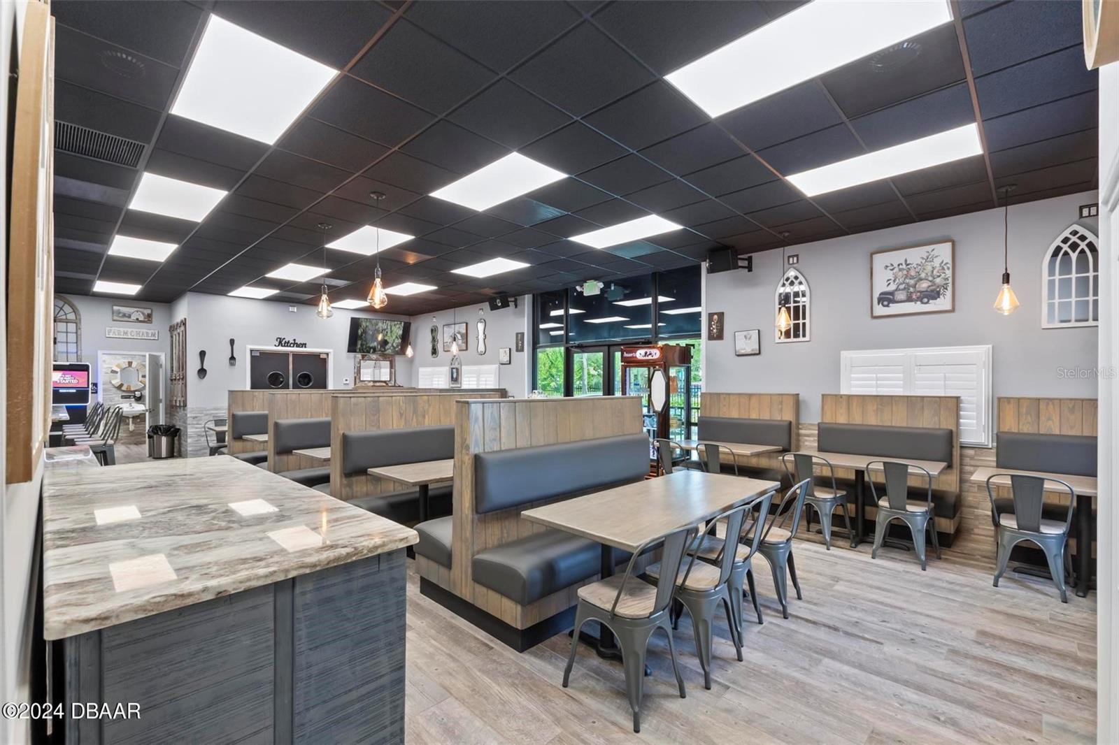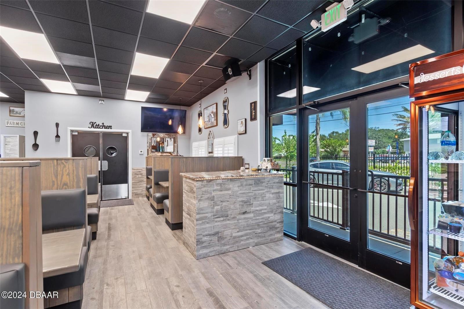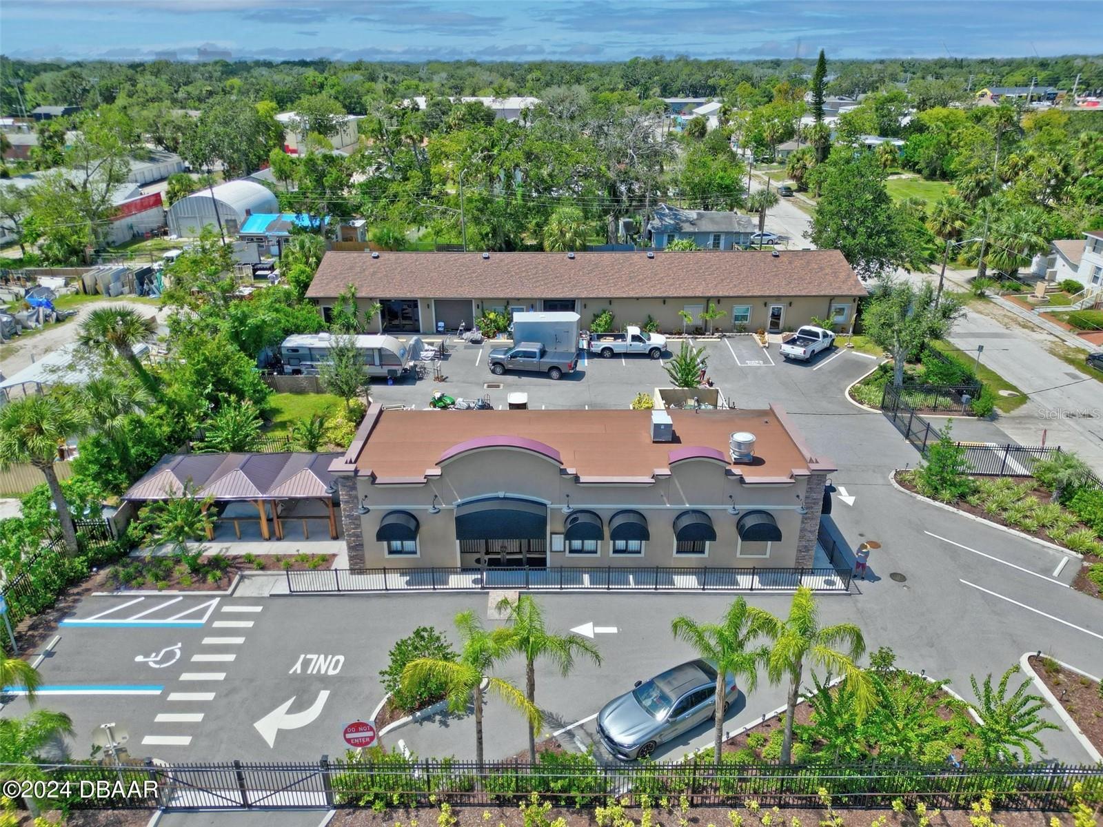 740 N Ridgewood Ave, Daytona Beach, FL: Investment property opportunity this parcel includes 4 storages/retail/offices spaces and fully equipped turnkey modern restaurant. Also available, 0 N Ridgewood Ave, Daytona Beach, FL (Land Lot - Acres: 0.2975) at additional cost, this land lot will be an ideal addition for extra parking or to build. (Vacant Lot MLS: 1201333). Call for land pricing. Prime Investment Opportunity in the Heart of the City! This exceptional investment opportunity is truly a once-in-a-lifetime find! Situated on a full acre of income-producing property, this site boasts 300 feet of frontage on US-1, offering maximum exposure with approximately 60,000+ vehicles passing by daily. At the heart of this property is a brand-new, turn-key restaurant/bar, meticulously designed with top-of-the-line furnishings and appliances. Upon entry, guests are welcomed by an awe-inspiring ambiance that seamlessly blends contemporary elegance with rustic charm. The 1,925 sq. ft. restaurant features a modern open-concept layout with four drive-thru windows, stylish décor, and high-end finishes, including a harmonious mix of wood, metal, and marble accents. Additionally, there is 600+ sq. ft. of outdoor dining space, providing an inviting atmosphere for patrons. The restaurant is equipped with a 1,250-gallon grease trap and is fully furnished, making it a true turn-key operation. The landscaped parking lot is beautifully designed with lush greenery and lighting, enhancing the property's curb appeal. Beyond the restaurant, the property includes a 6,300 sq. ft. commercial building, originally built in 1986 and thoughtfully updated with modern enhancements, including a new roof (2021), gutters, soffits, LED lighting, and bathroom renovations. This versatile building features four units, each with its own bathroom, and is currently utilized as office space and storage. The three smaller units are 1,400 sq. ft. each, while the largest is 2,000 sq. ft., offering ample flexibility for various business needs. This property is being sold AS-IS and by appointment only. Don't miss your chance to invest in what could be the next big thing! All information is sourced from tax records and, while deemed reliable, is not guaranteed.