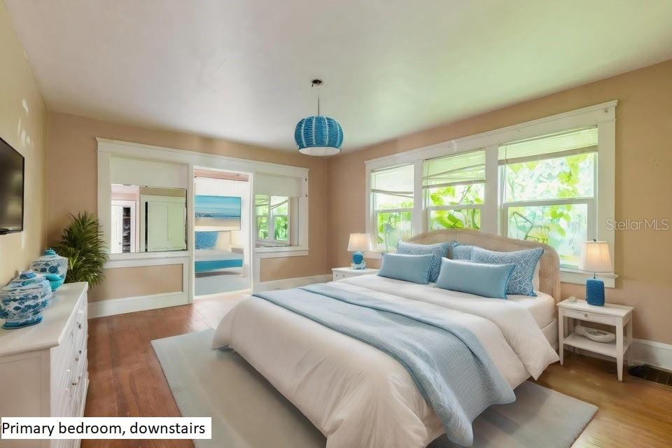 LIVE IN MAIN HOUSE AND RENT THE GUEST HOUSE. Charming home in the Historic Seabreeze District. Fantastic home for blended family or rental. Main house is 2 stories. 4 Bedrooms and 3.5 bath. Every room is huge. Kitchen has Mexican tile and was updated a few years ago. Primary bedroom is downstairs. 3 bedrooms and 2 baths are upstairs. Most floors are hardwood except for family room. Pass thru the Porte-cochère to the attached Back house which has 2 bedrooms and 1 bath. Modern interior with tile floors. There is a separate washer & dryer hookup in garage for the back house.