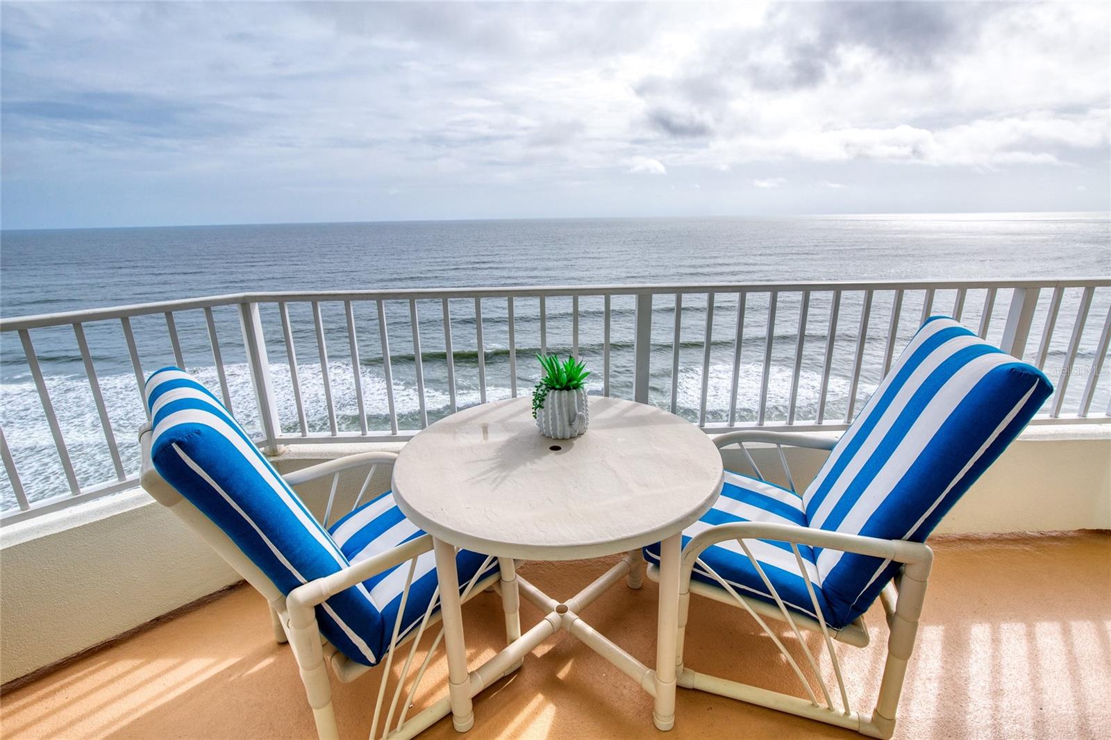 Experience unparalleled oceanfront living in this beautifully remodeled 2-bedroom, 2-bath condo on the 15th floor of the prestigious Oceans Eight Condominium., where the HOA rate was just lowered in the 2025 Board Approved Budget. This direct oceanfront unit boasts breathtaking panoramic views, offering a lifestyle defined by luxury and coastal charm. Every inch of this residence has been thoughtfully updated to exude elegance and functionality. The kitchen features top-of-the-line Samsung appliances, including a WiFi-enabled, fingerprint-resistant refrigerator, dishwasher, microwave, and stove. Illuminated by LED over and under-cabinet lighting and daylight-bright overhead panels, the kitchen is both modern and inviting. The entire unit is freshly painted in a soothing two-tone palette of soft blue and white, complemented by chair rail accents and knockdown-textured ceilings and walls. The living spaces are enhanced by remote-controlled ceiling fans, and the convenience of updated high-end LG washer/dryer stack. Modern updates throughout include new electrical outlets, some with WiFi-enabled in-wall switches, a stylish dining room chandelier, high-intensity LED spotlights in the bathrooms, and a soundproofed A/C room for added peace and quiet. The master bathroom, remodeled in late 2021, features a dual shower with a bench and a spacious layout. Additional practical upgrades include new 5 1/2-inch floor molding, updated A/C registers, storm shutters for sliding doors, and high-impact doors installed in 2021 for enhanced security. The balcony, repainted in 2023, is perfect for relaxing while enjoying stunning sunrises, rocket launches from Cape Canaveral, or fireworks from the Daytona Bandshell. The unit also features dual hallway closets with lighting, additional shelving in the master and guest bedroom closets, and a pantry in the kitchen’s laundry closet. Reflective glass doors and windows provide privacy and energy efficiency, while custom HOA-provided WiFi and cable service ensure convenience. The condo includes vertical blinds for the sliding doors and master bedroom window, and high-impact doors installed in 2021 for added security. Oceans Eight offers a luxurious array of amenities, including an outdoor pool and deck, a heated indoor lap pool, a spa, a sauna, and a fully equipped fitness center. Located in the heart of Daytona Beach Shores, residents enjoy easy access to local attractions such as pickleball and tennis courts, monthly outdoor concerts at the pavilion, and the nearby Par 3 Golf Course. This pet-friendly community allows for two domestic pets (up to 20 pounds total). Additional features include underground parking, extra parking spaces above ground, a car wash area, personal storage cages, and a bike storage area. Don’t miss your chance to own this exceptional beachfront condo in Oceans Eight, where luxury, convenience, and captivating views come together to create the ultimate coastal living experience. All information recorded in the MLS intended to be accurate but cannot be guaranteed.