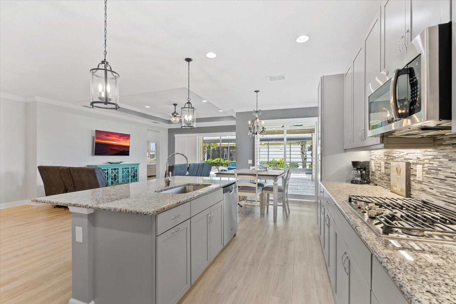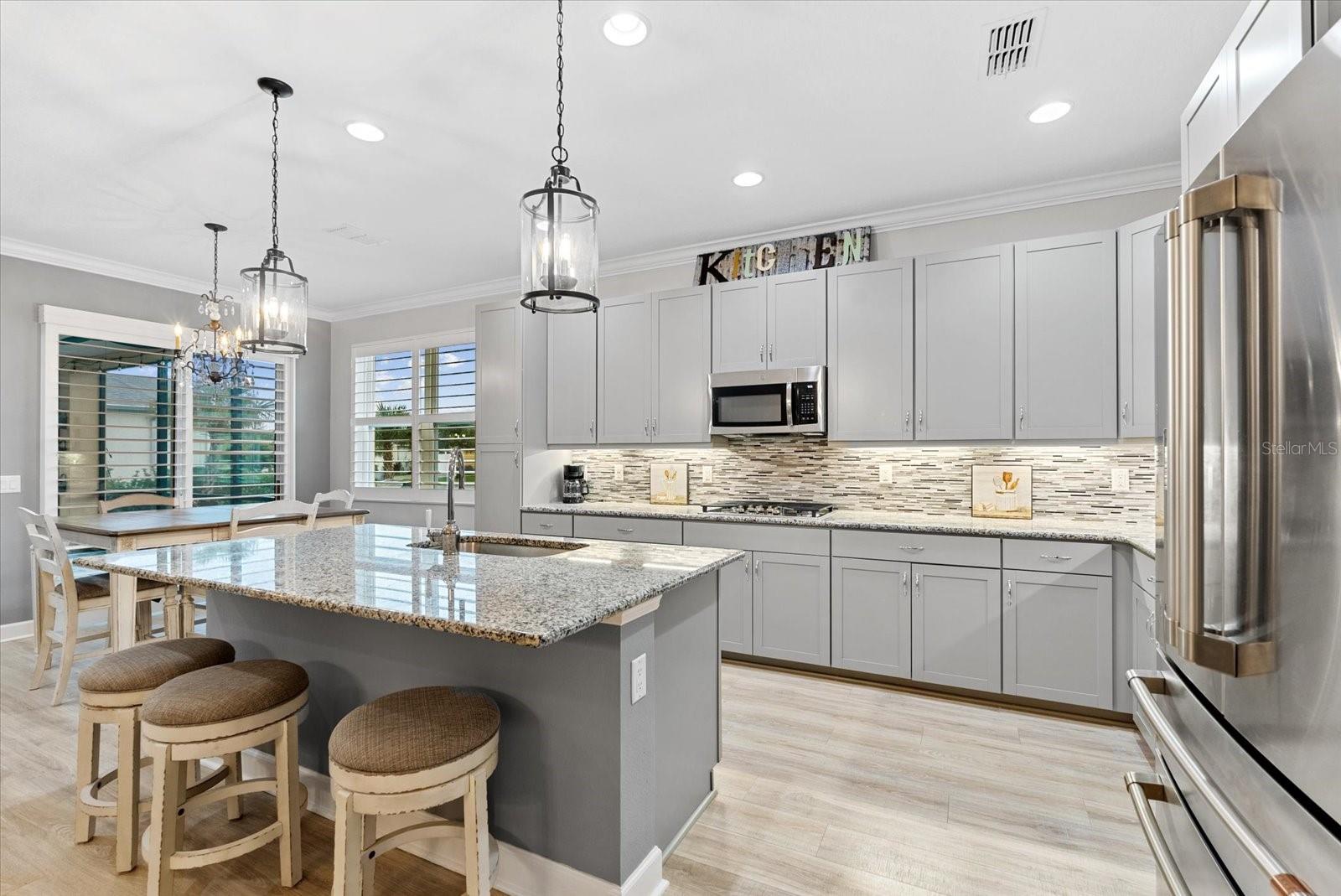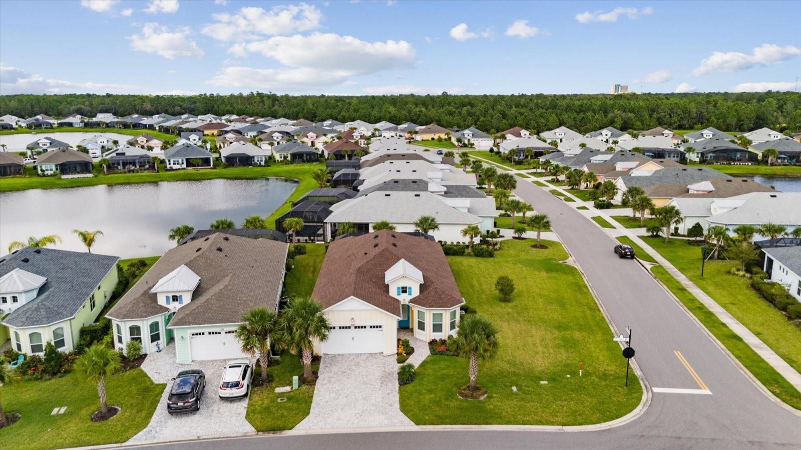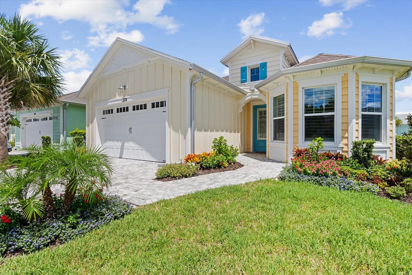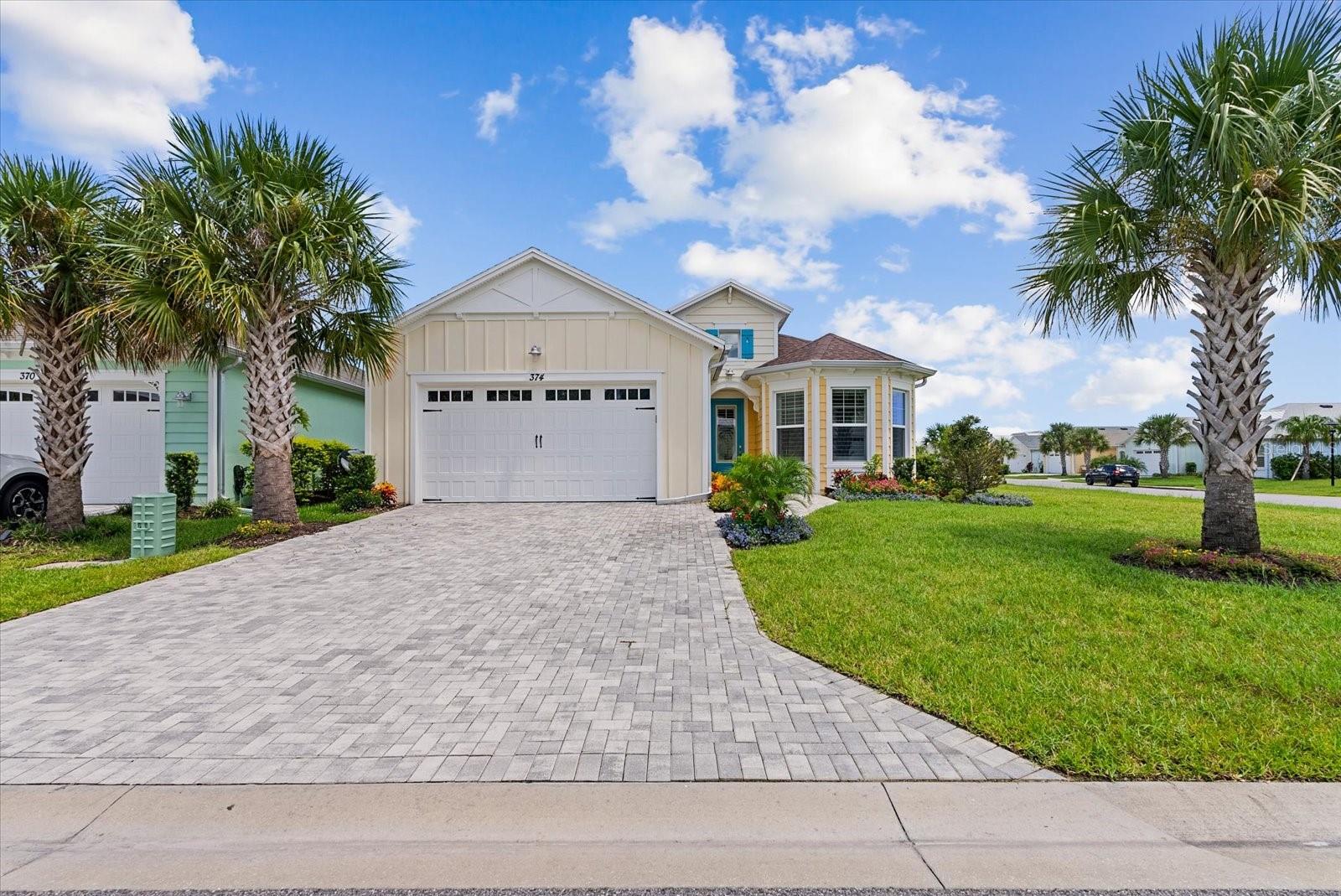 Embrace the Ultimate in Resort-Style Living! Welcome to this exquisite, two-bedroom, 2.5-bath home in the exclusive Latitude at Margaritaville. With an additional den that easily transforms into a guest space, this 2020-built home sits on a premium corner lot offering privacy and expansive water views. Step inside to discover a chef’s dream kitchen featuring a gas cooktop, wall oven, granite countertops, custom cabinetry with pullouts, recessed lighting, and a large island that doubles as a breakfast bar. The open layout flows into the massive, screened paver lanai, complete with an extended elite roof, perfect for enjoying the tranquil water views year-round. High-end finishes adorn every inch of this home—from modern luxury vinyl plank flooring to freshly renovated baths with new commodes and whole-house plantation shutters. The newly epoxy-coated garage floor has only seen a golf cart, which is negotiable with the home. Meticulously maintained with contracted landscaping and cleaning services, this home also prioritizes safety with an interior alert button that activates an emergency light above the garage, offering peace of mind. Latitude at Margaritaville offers resort-level amenities, including a security-gated entrance, pool, spa, pickleball and bocce ball courts, tennis, a “Bar & Chill”restaurant, fitness center with live classes, pottery and woodworking shops, arts and crafts centers, and an exclusive beach club with shuttle service. Located close to shopping, dining, medical facilities, schools, and major roadways, this home is your gateway to Florida’s top attractions, beaches, and more! All information obtained from the seller and property appraiser is deemed reliable but cannot be guaranteed. Live the Margaritaville lifestyle in this one-of-a-kind home!