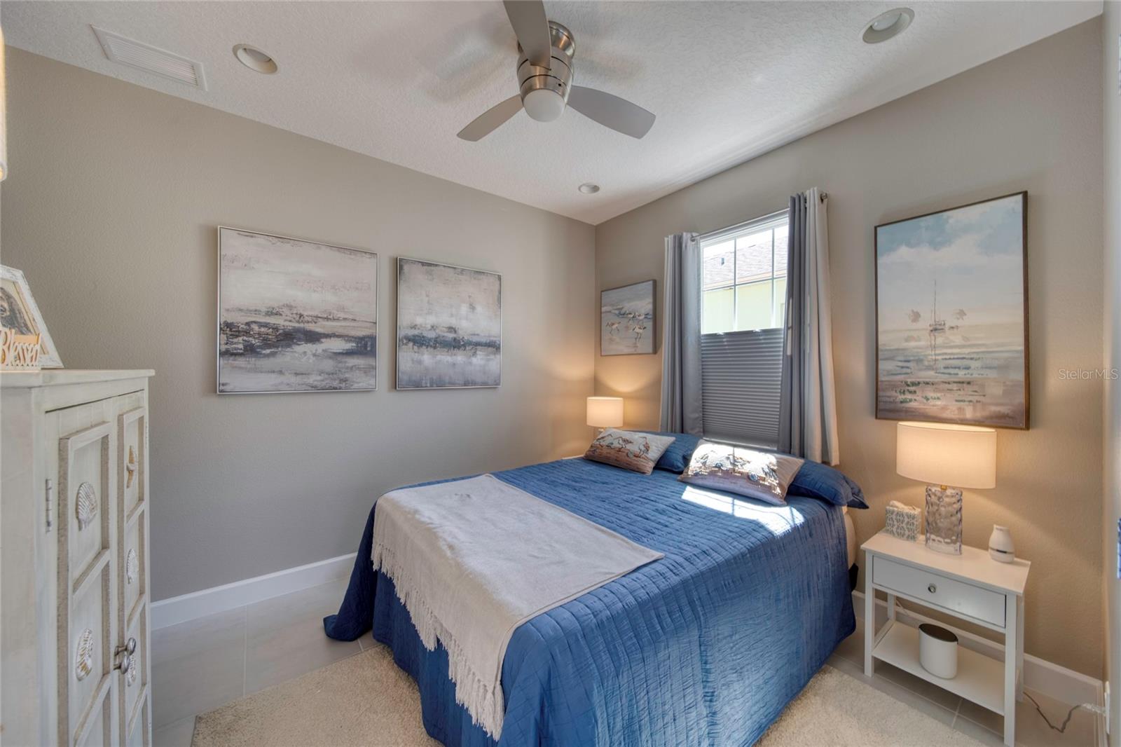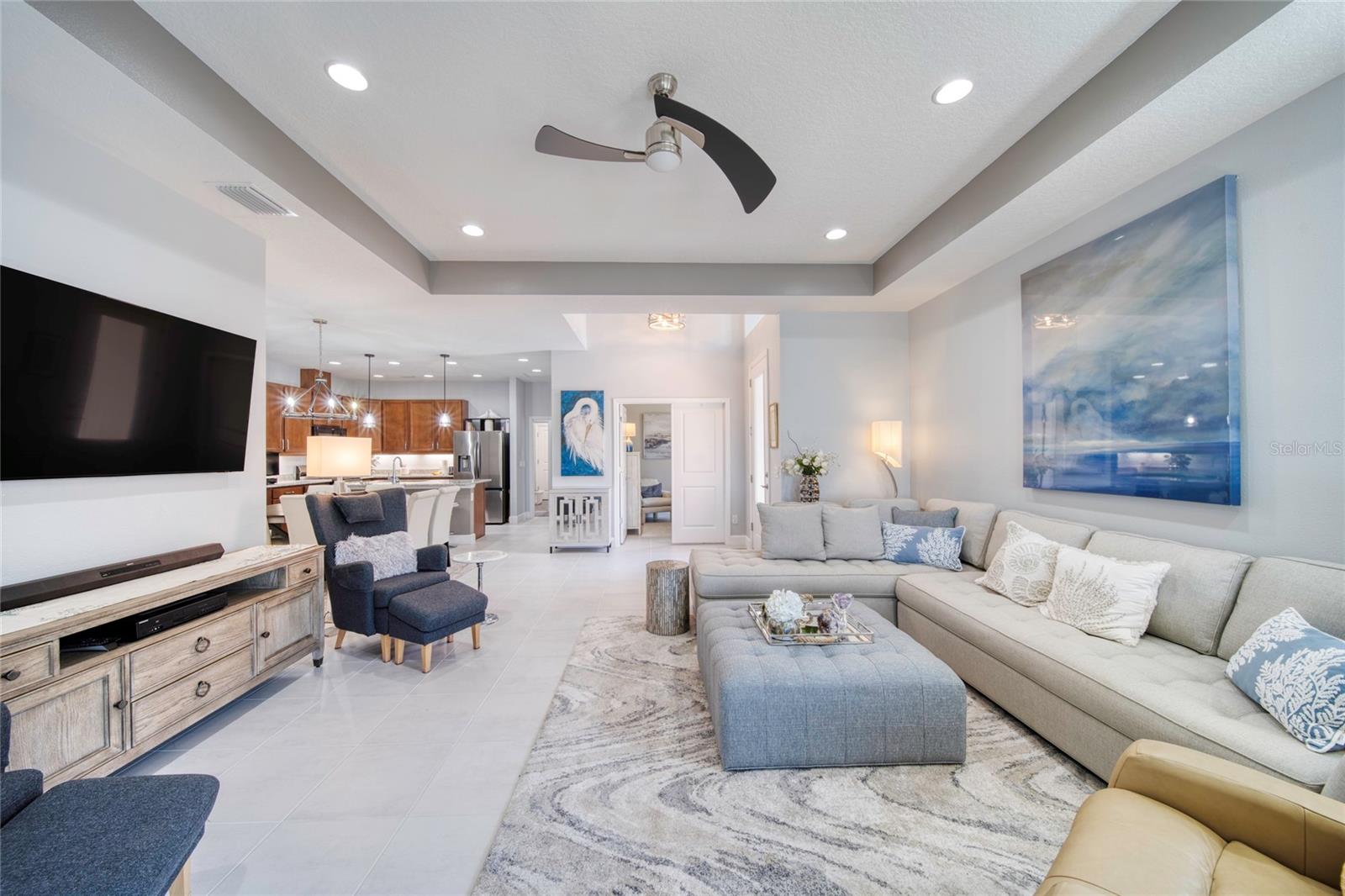 Location, Location, Location! Welcome to your personal oasis in the highly sought-after Latitude at Daytona Beach, a 55+ community inspired by the carefree Key West lifestyle. This Antigua model home offers breathtaking lakefront views and a bright, open floor plan with designer touches throughout. Step inside to discover large, easy-to-maintain light tile floors that flow through the entire home, complemented by recessed lighting, tray ceilings in the living room and primary bedroom, ceiling fans and custom paint. The gourmet kitchen features granite countertops, soft-close cabinetry with pullouts, and a gas range. Stylish window treatments throughout, making it as functional as it is beautiful. The luxurious primary suite boasts a spa-like bathroom with tiled shower to the ceiling, undermount oval sinks, and upgraded linen cabinetry. A pocket door separates the main living area from the guest suite, offering added privacy for visitors. Step out to the oversized screened lanai, complete with an outdoor ceiling fan, perfect for relaxation or entertaining while enjoying serene pond views. The 2-car garage includes built-in shelving, an epoxy-coated floor, and a laundry tub for added convenience. This home is packed with thoughtful upgrades, including 5.25-inch baseboards, custom fixtures, a furnace with air purifier and blue light protection, gutter leaf guards, sealed pavers, and much more. Latitude at Daytona Beach is more than a neighborhood, it's a lifestyle. Experience resort-style living with a vibrant town center, where live music, events, and spontaneous entertainment are part of everyday life. Choose from three heated pools, including a tropical lagoon pool, a sports pool, and an indoor lap pool, or enjoy the private oceanfront beach club complete with pre-set loungers and umbrellas. Sports enthusiasts can stay active with tennis, pickleball, bocce ball, and pool volleyball, while furry friends can enjoy the golf cart-friendly dog park. Explore your creative side in the pottery or woodworking workshops, catch a live performance at the theater, or relax at the Bar & Chill restaurant. Conveniently located near shopping, pharmacies, and healthcare, Latitude at Daytona Beach combines ease, elegance, and excitement. With lawn care, landscaping, exterior painting and roof included, you'll have more time to enjoy everything this masterfully designed community has to offer. Don't miss your chance at this resort style living, schedule your private tour today! All information recorded in the MLS intended to be accurate but cannot be guaranteed.