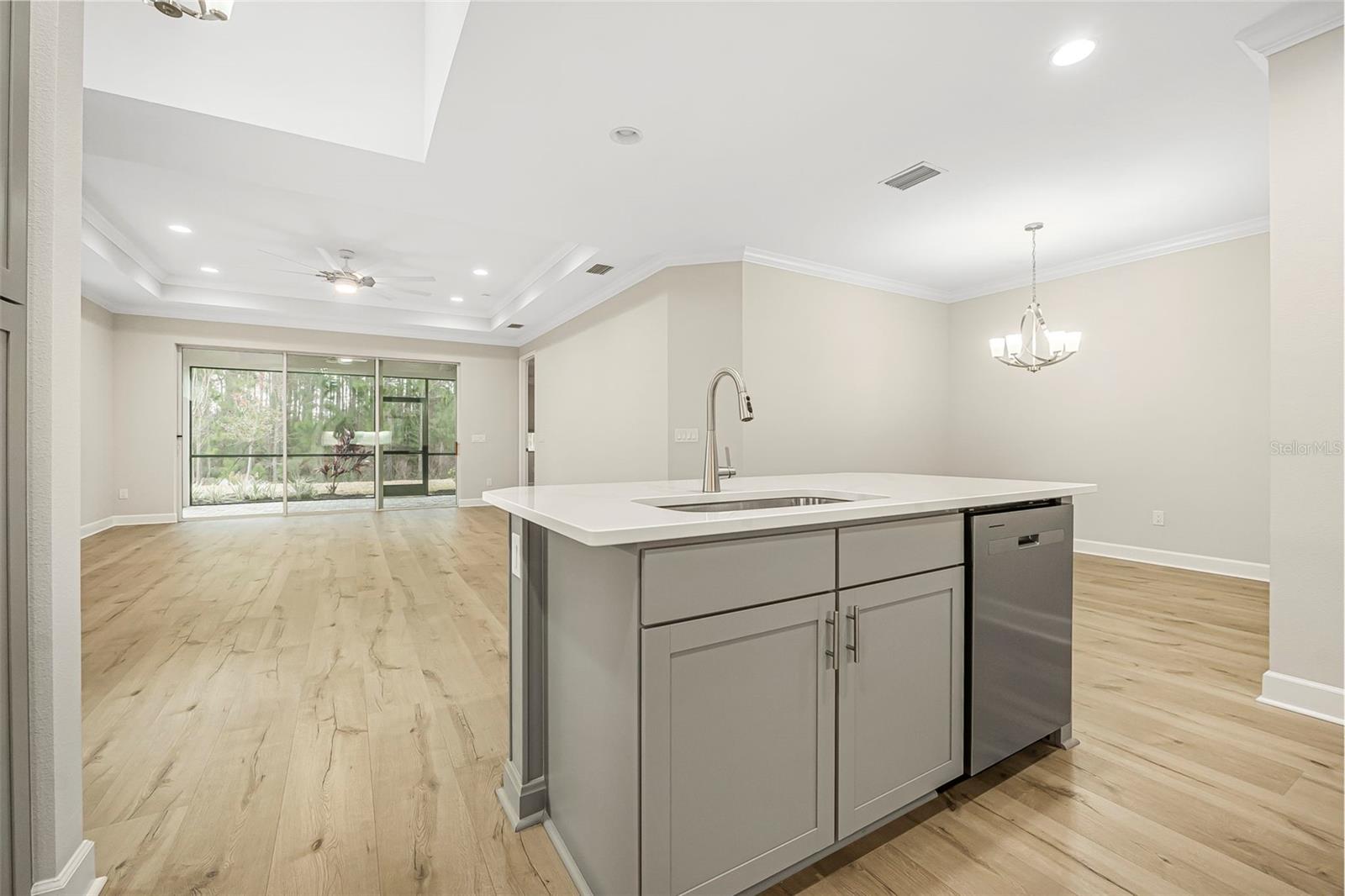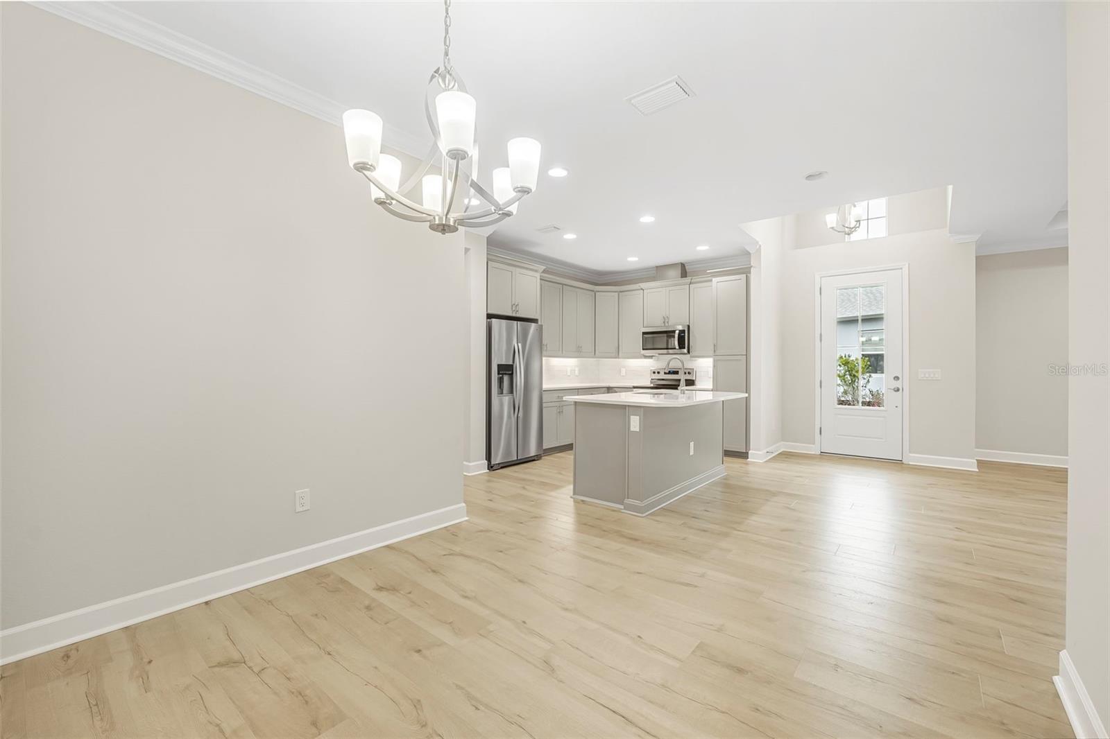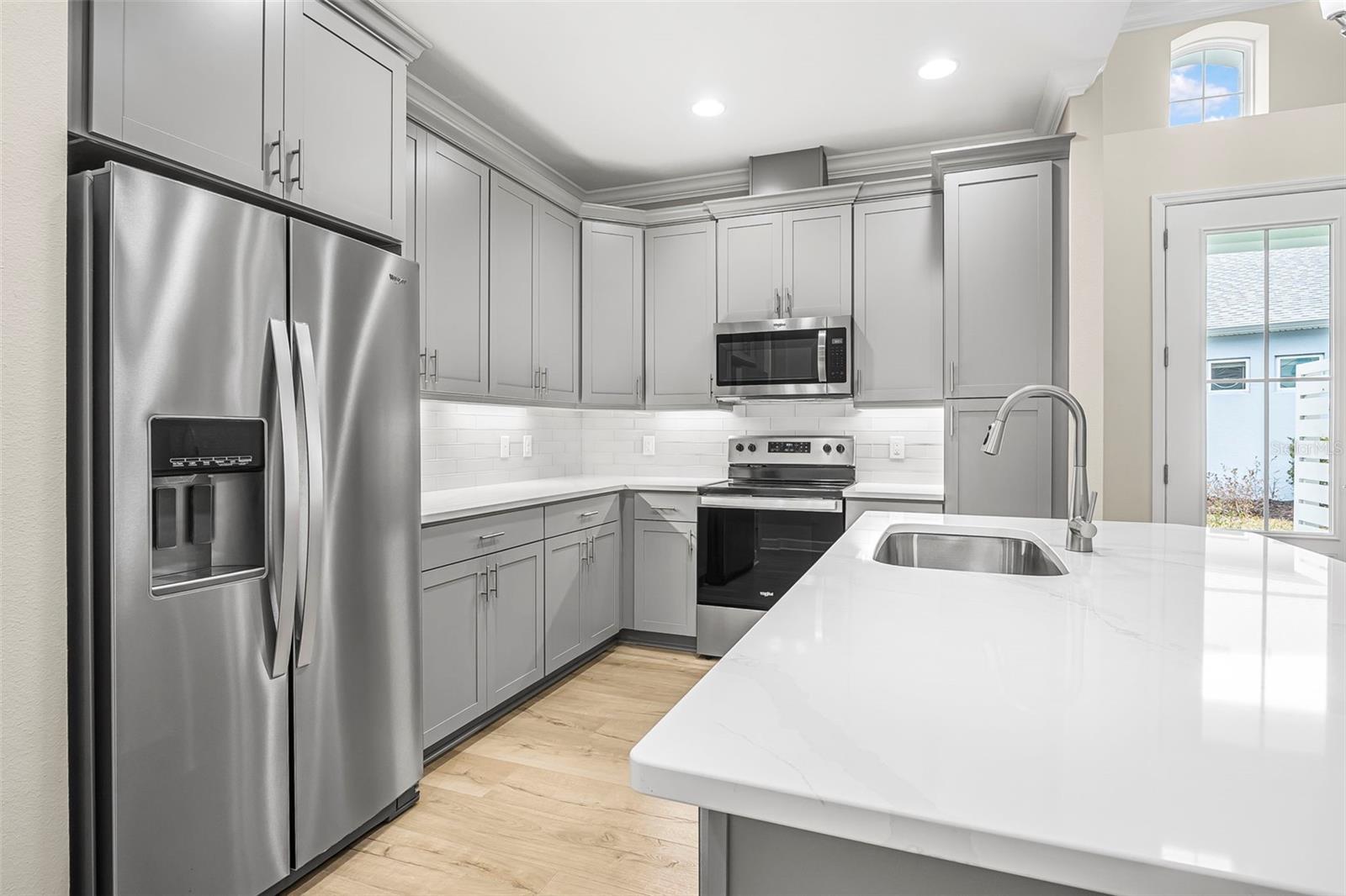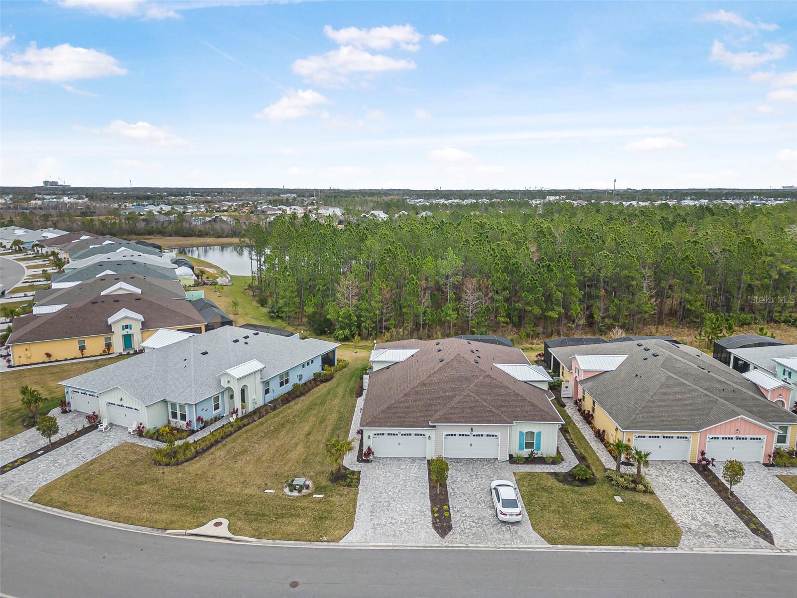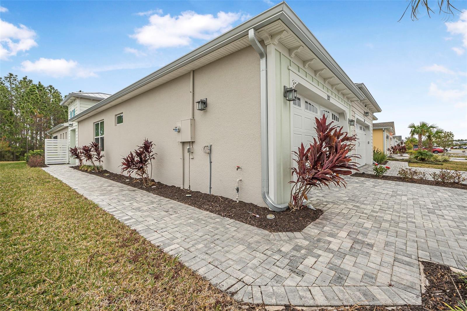 Discover this stunning villa in Latitude Margaritaville, a 55+ community known for its active lifestyle and charm. With 2 ensuite bedrooms, a versatile flex room, and a 2-car garage, this home offers both style and functionality. The kitchen is a standout, featuring modern finishes, including quartz countertops, sleek stainless steel appliances, and elegant lighting details. High ceilings, crown molding, and upgraded flooring create a bright and inviting living space. The luxurious primary suite boasts a spa-like shower and dual vanities, while the guest suite offers comfort and privacy. Enjoy extra outdoor space with a widened driveway and an expansive side yard. This home is ready for you to start living the Latitude Margaritaville lifestyle!