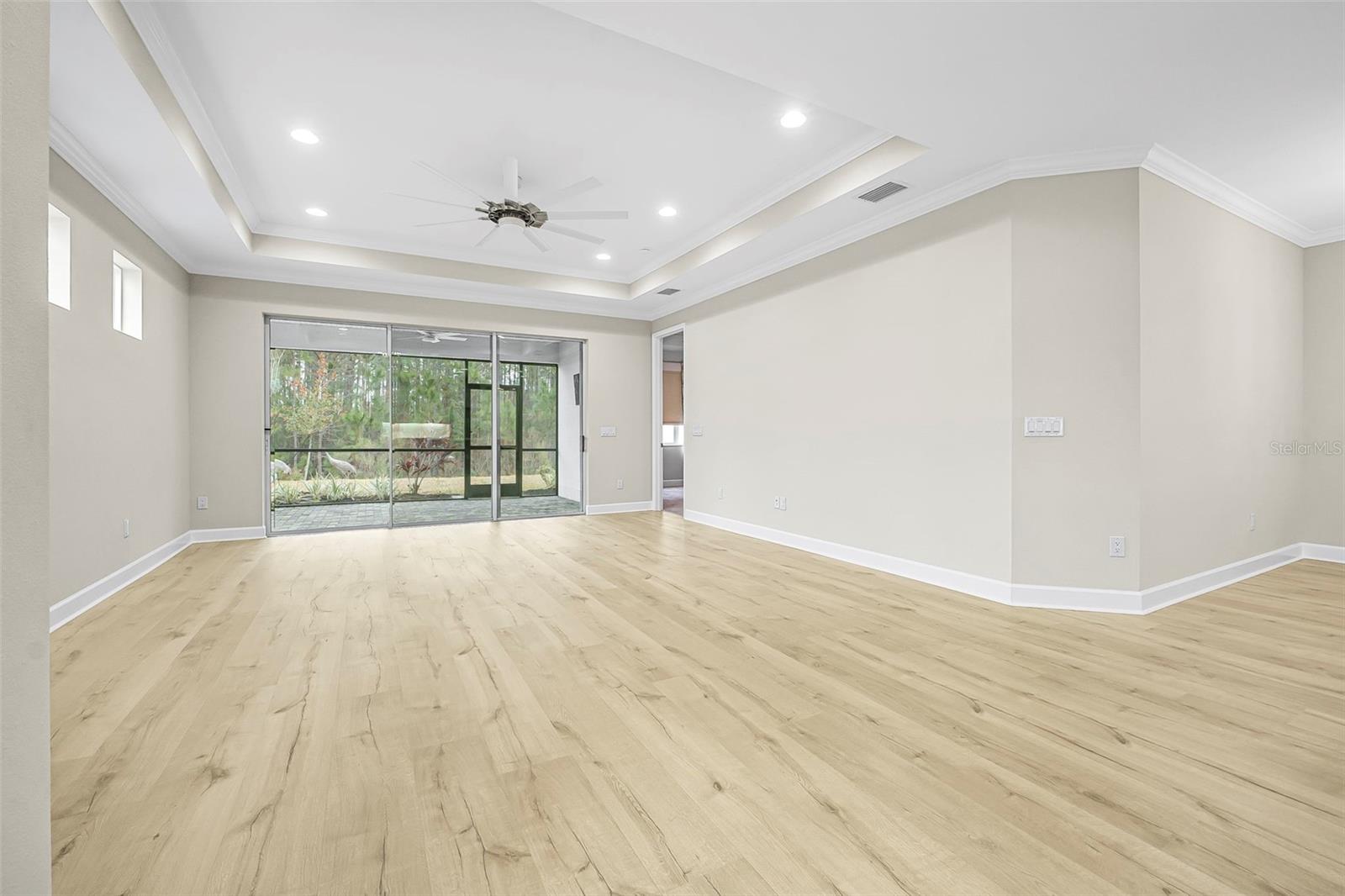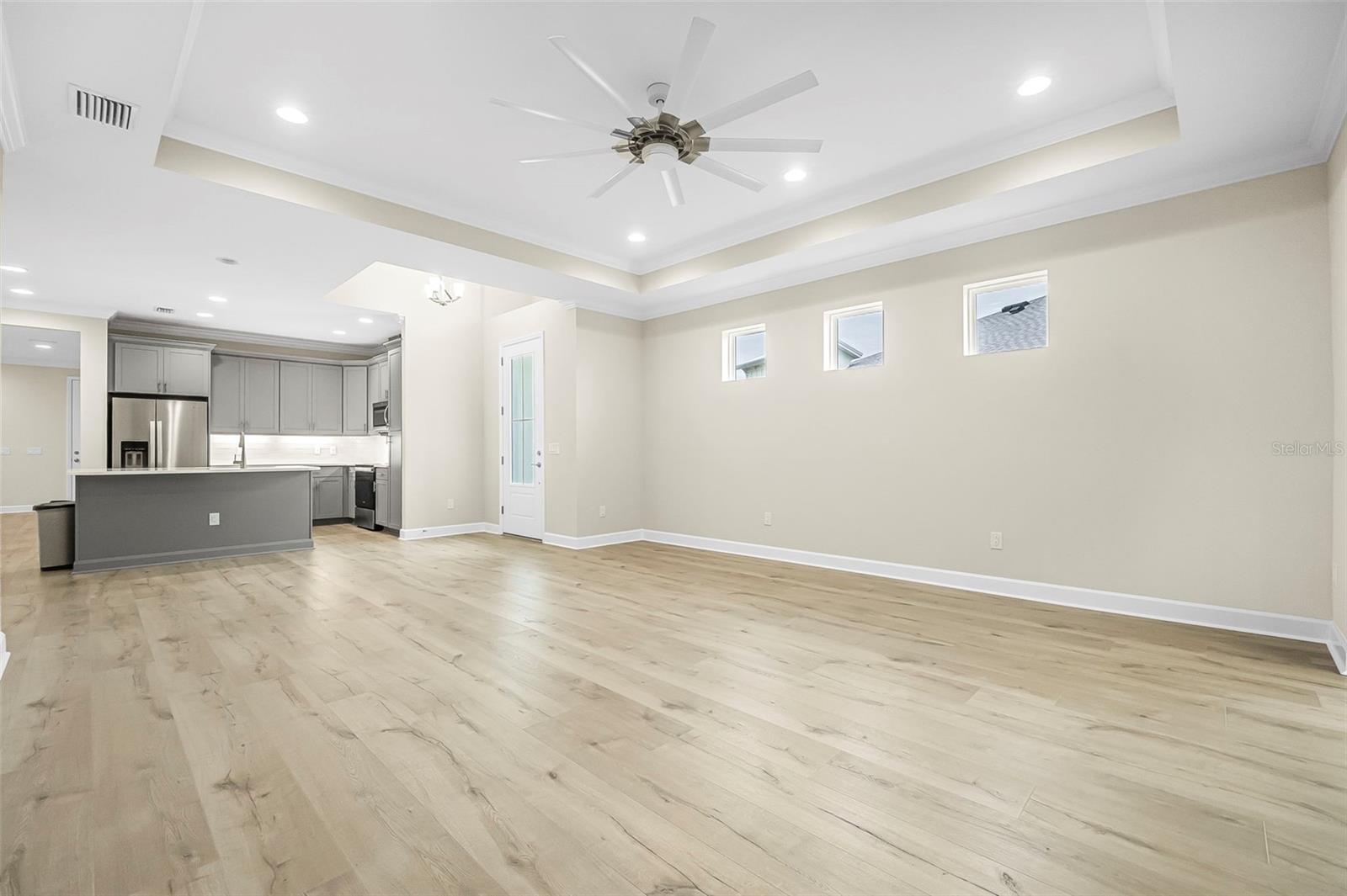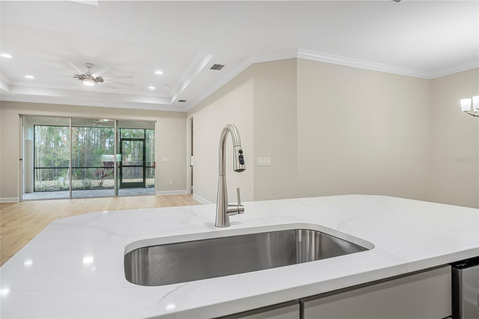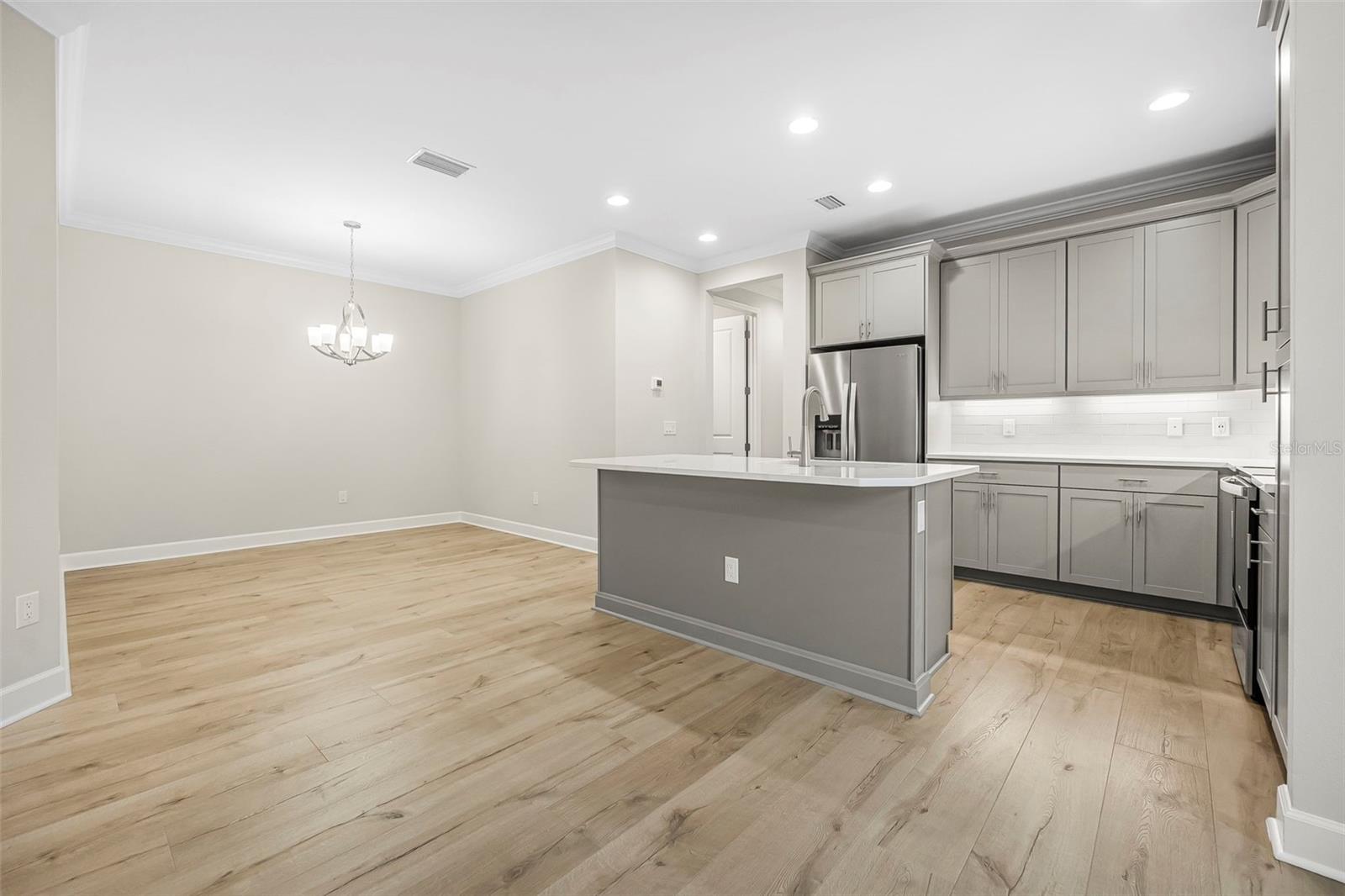 Discover this stunning villa in Latitude Margaritaville, a 55+ community known for its active lifestyle and charm. With 2 ensuite bedrooms, a versatile flex room, and a 2-car garage, this home offers both style and functionality. The kitchen is a standout, featuring modern finishes, including quartz countertops, sleek stainless steel appliances, and elegant lighting details. High ceilings, crown molding, and upgraded flooring create a bright and inviting living space. The luxurious primary suite boasts a spa-like shower and dual vanities, while the guest suite offers comfort and privacy. Enjoy extra outdoor space with a widened driveway and an expansive side yard. This home is ready for you to start living the Latitude Margaritaville lifestyle!