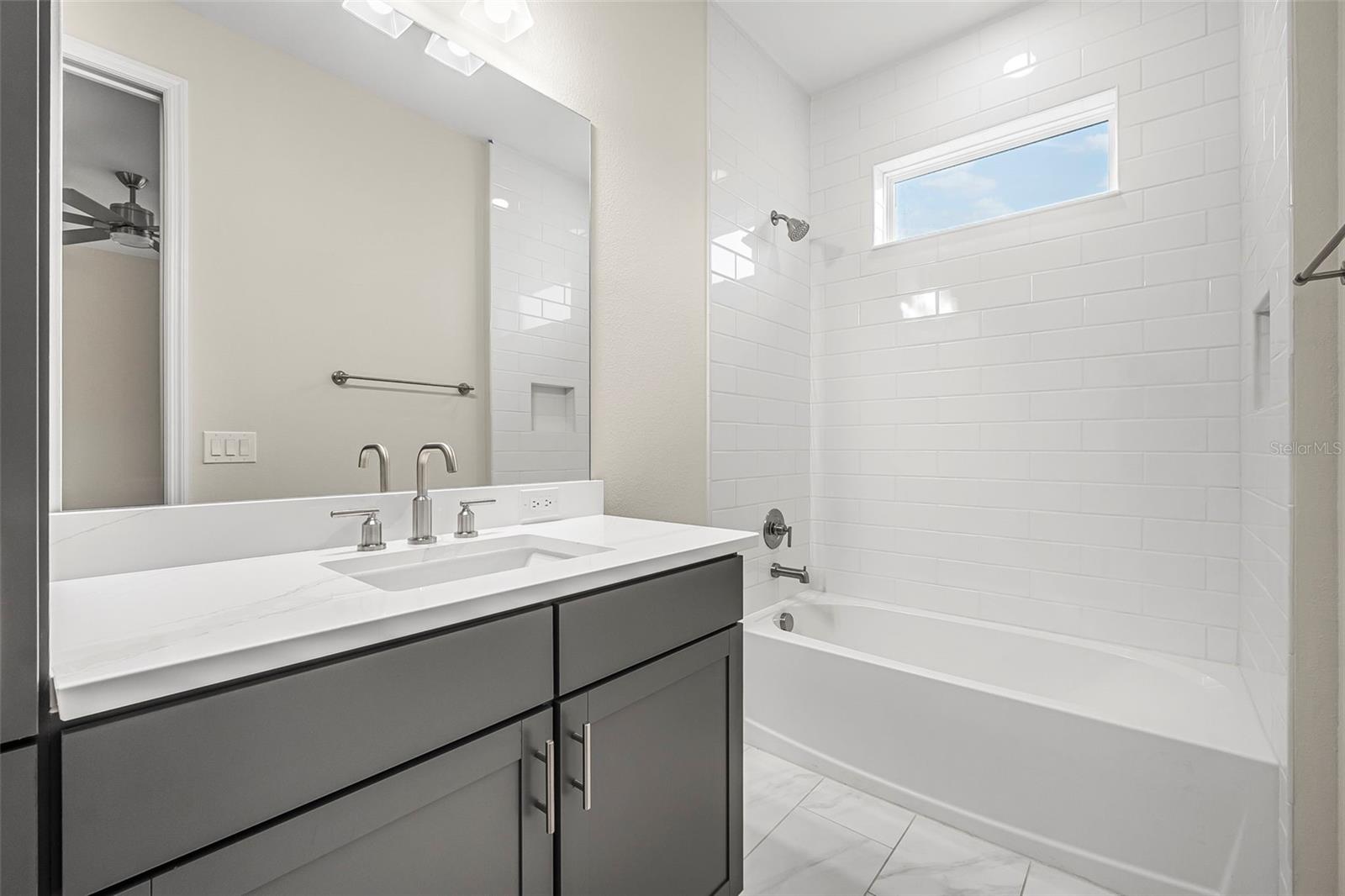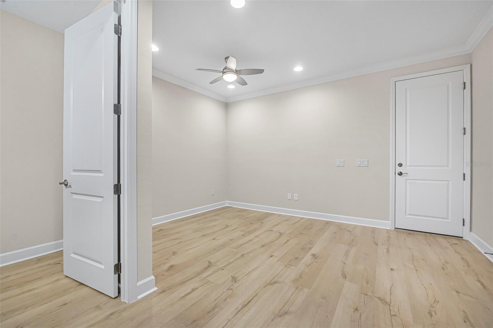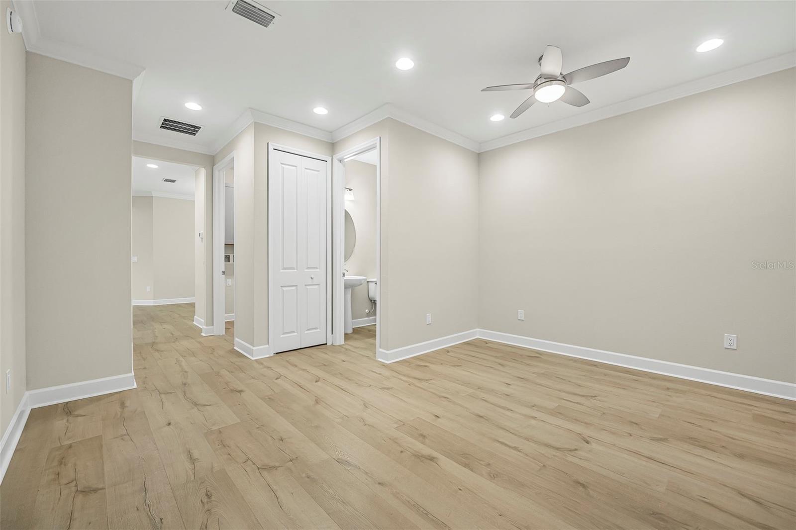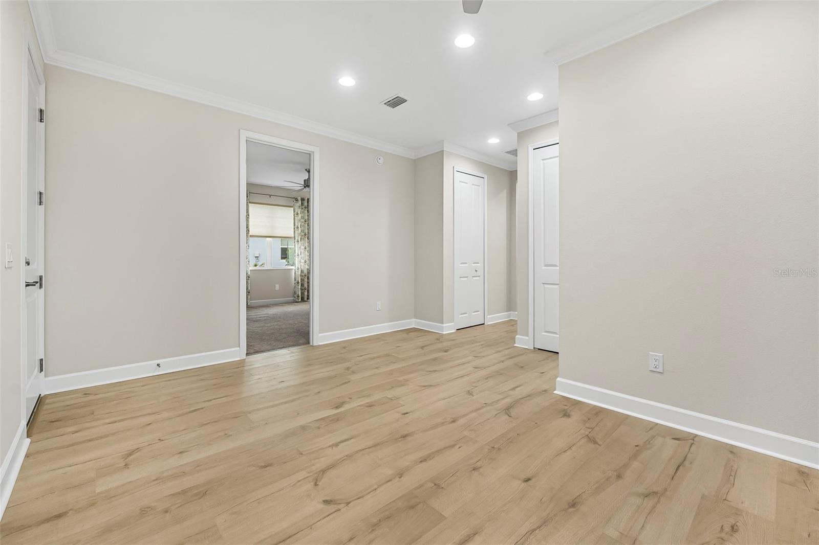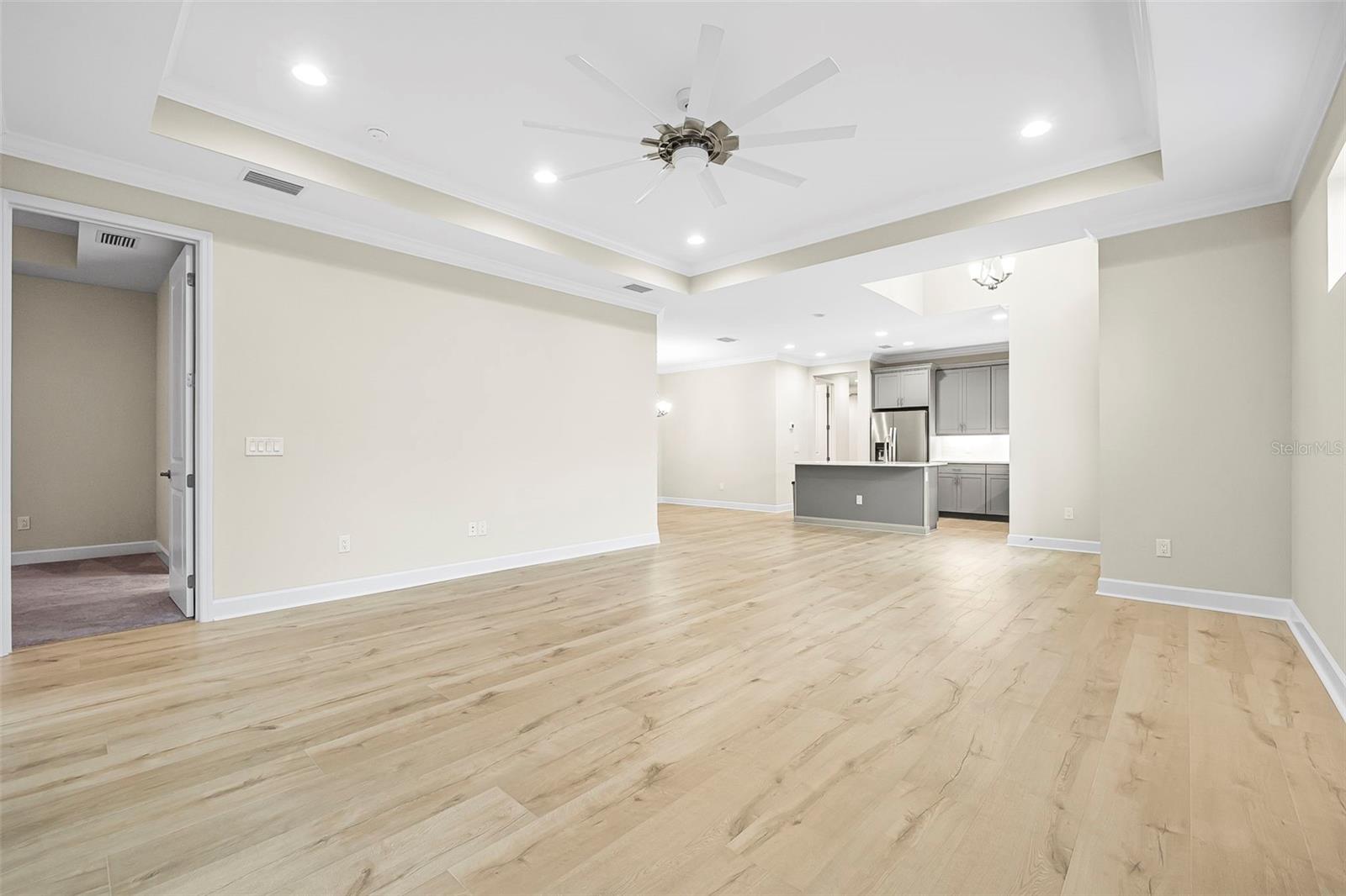 Discover this stunning villa in Latitude Margaritaville, a 55+ community known for its active lifestyle and charm. With 2 ensuite bedrooms, a versatile flex room, and a 2-car garage, this home offers both style and functionality. The kitchen is a standout, featuring modern finishes, including quartz countertops, sleek stainless steel appliances, and elegant lighting details. High ceilings, crown molding, and upgraded flooring create a bright and inviting living space. The luxurious primary suite boasts a spa-like shower and dual vanities, while the guest suite offers comfort and privacy. Enjoy extra outdoor space with a widened driveway and an expansive side yard. This home is ready for you to start living the Latitude Margaritaville lifestyle!