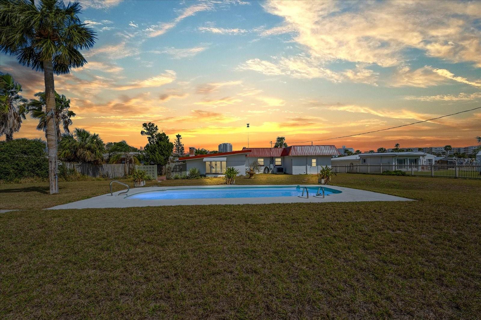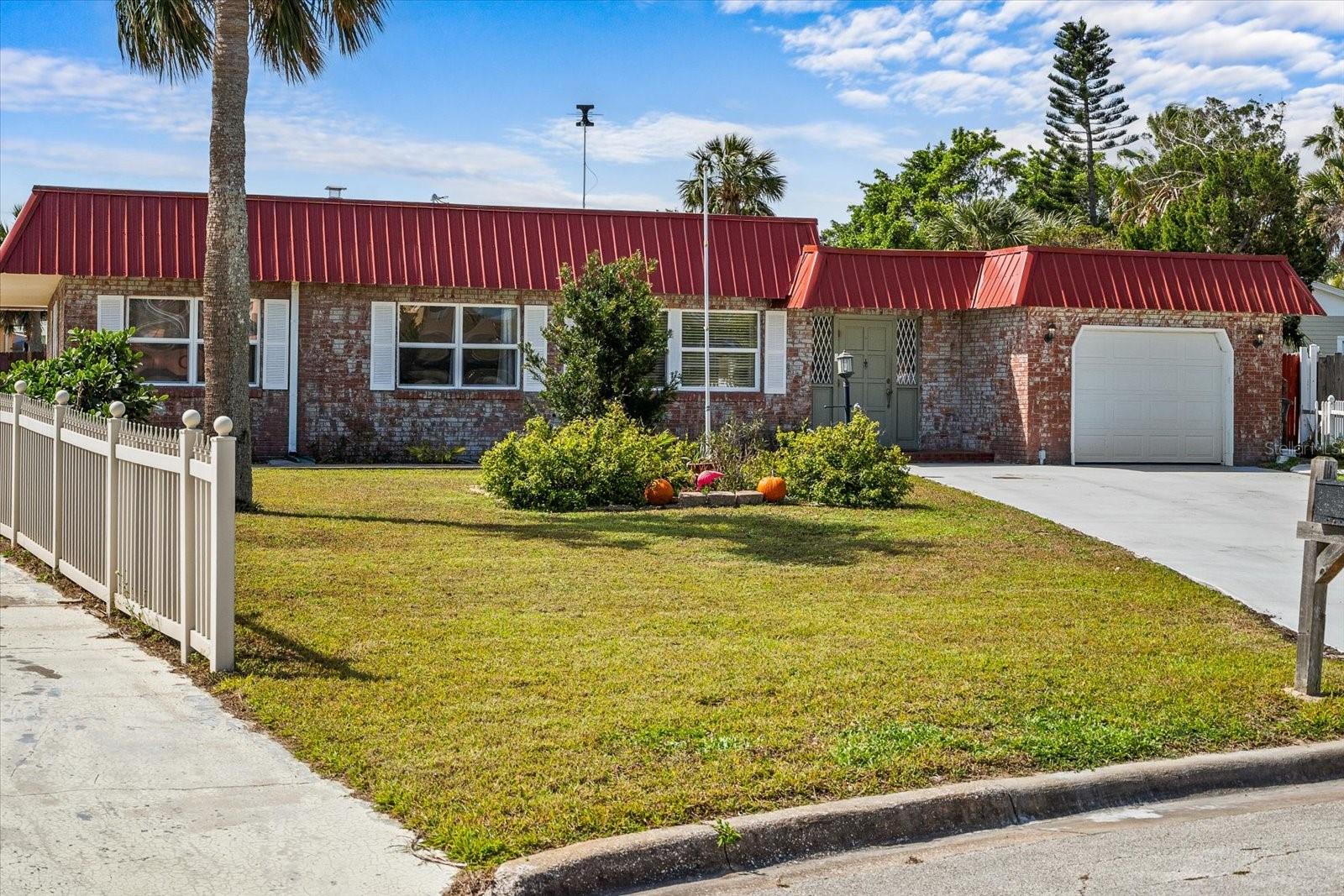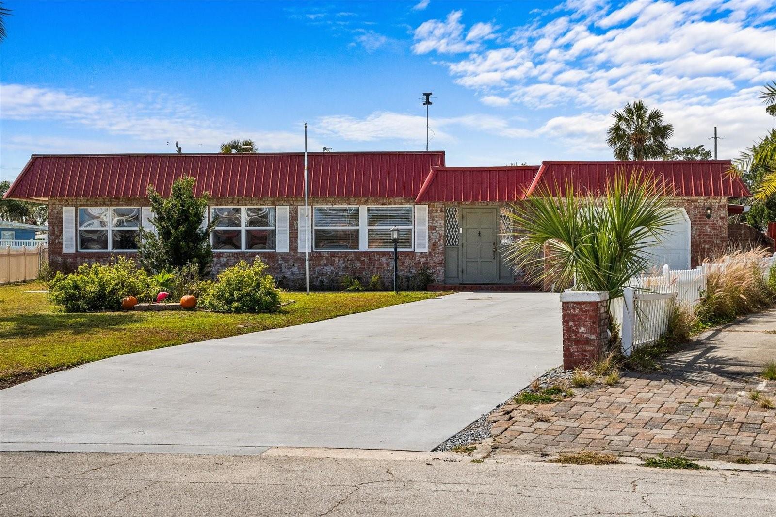 Have you been dreaming of living so close to the beach that you can hear the waves crash, smell the ocean air, and feel the Atlantic breeze? Welcome to Belaire Estates located beachside Daytona. This property is minutes from the beach and the Halifax River. Enjoy the sunrise and sunset from this beautiful 4-bedroom 2 bath brick home with a pool sitting on a stunning .49 acres, one of the largest lots on beachside. As you drive up you will notice the red brick and matching red 40 year rated metal roof installed in 2024. The freshly poured 2025 double wide driveway allowing for plenty of space when your loved ones come to visit. As you enter the home you walk into the well lit dinning and newly renovated kitchen. There is plenty of space here with a sitting room and guest bedroom off to the side you will see the expansive and newly remodeled tongue and grove Knotty Pine ceiling with a scenic view of the pool from every seat in the living room. You can enjoy the warmth of your very own fireplace for those cold winter days we get. And for the rest of the year, you can step outside and enjoy the expansive backyard. Perfect for pool parties, backyard BBQ's and there is plenty of room for you to add the finishing touches of your own. All the major items have been updated HVAC 2023, Pella Windows, new kitchen upgrades, including cabinets and South American Granite countertops. The primary bedroom has a walk-in closet and bathroom with access to the laundry as well. This neighborhood has it's own beach access and is located blocks away from the Schnebely Community Center with a park, basketball courts, and Pickleball and volleyball sand courts. Whether you are looking for your snowbird/ vacation home to stay during some of the largest events in Daytona or you've always dreamed of living near the beach full time, this home has everything you need. It has a great layout and is ready for the next owner to put the final touches on it. Call to schedule your private virtual/in-person tour today!