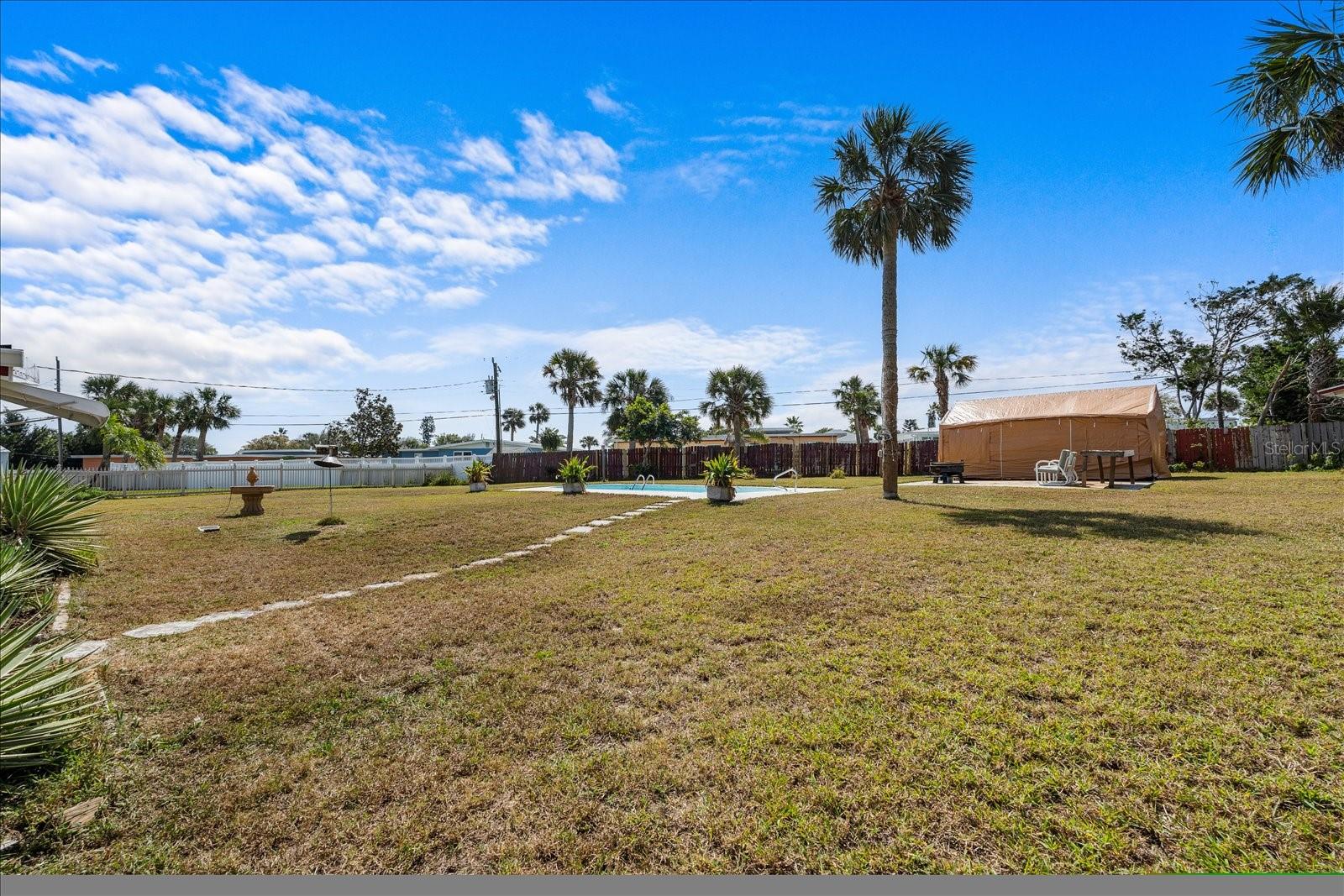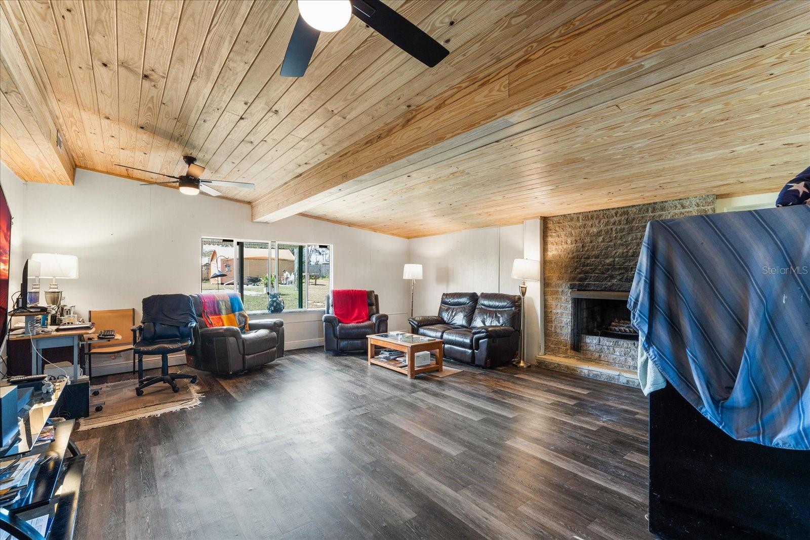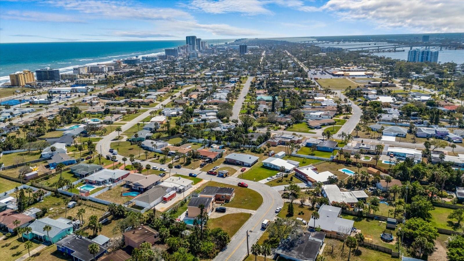 Have you been dreaming of living so close to the beach that you can hear the waves crash, smell the ocean air, and feel the Atlantic breeze? Welcome to Belaire Estates located beachside Daytona. This property is minutes from the beach and the Halifax River. Enjoy the sunrise and sunset from this beautiful 4-bedroom 2 bath brick home with a pool sitting on a stunning .49 acres, one of the largest lots on beachside. As you drive up you will notice the red brick and matching red 40 year rated metal roof installed in 2024. The freshly poured 2025 double wide driveway allowing for plenty of space when your loved ones come to visit. As you enter the home you walk into the well lit dinning and newly renovated kitchen. There is plenty of space here with a sitting room and guest bedroom off to the side you will see the expansive and newly remodeled tongue and grove Knotty Pine ceiling with a scenic view of the pool from every seat in the living room. You can enjoy the warmth of your very own fireplace for those cold winter days we get. And for the rest of the year, you can step outside and enjoy the expansive backyard. Perfect for pool parties, backyard BBQ's and there is plenty of room for you to add the finishing touches of your own. All the major items have been updated HVAC 2023, Pella Windows, new kitchen upgrades, including cabinets and South American Granite countertops. The primary bedroom has a walk-in closet and bathroom with access to the laundry as well. This neighborhood has it's own beach access and is located blocks away from the Schnebely Community Center with a park, basketball courts, and Pickleball and volleyball sand courts. Whether you are looking for your snowbird/ vacation home to stay during some of the largest events in Daytona or you've always dreamed of living near the beach full time, this home has everything you need. It has a great layout and is ready for the next owner to put the final touches on it. Call to schedule your private virtual/in-person tour today!