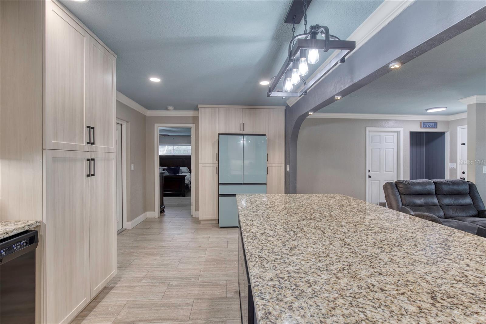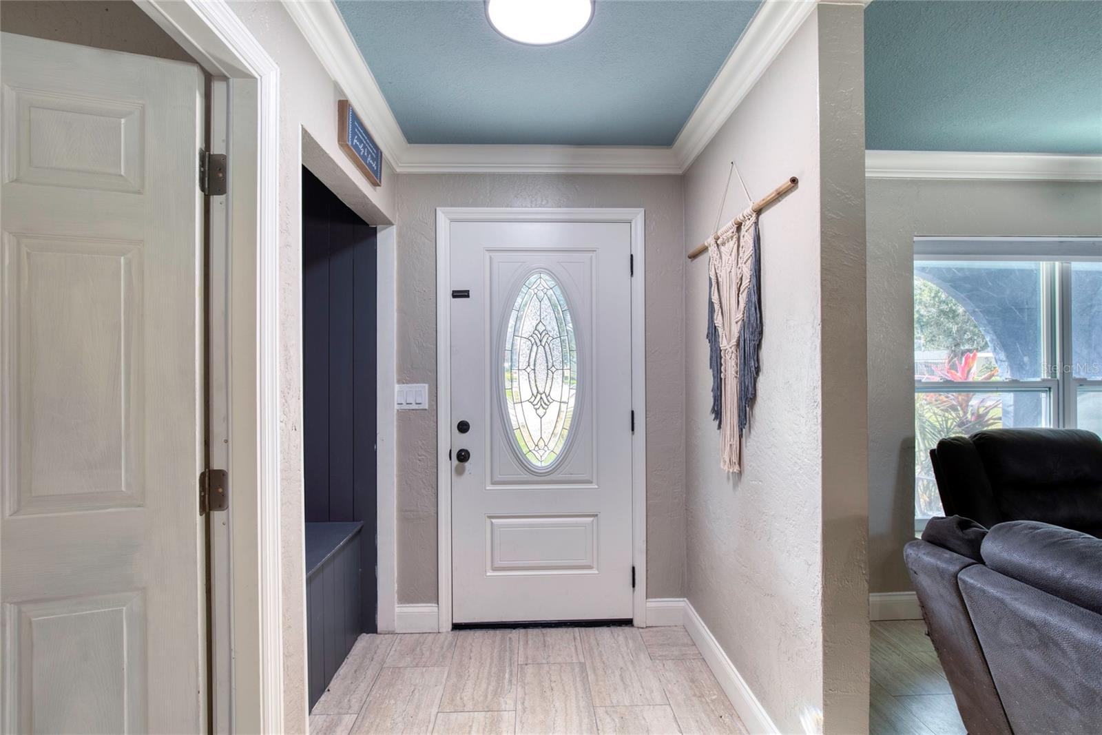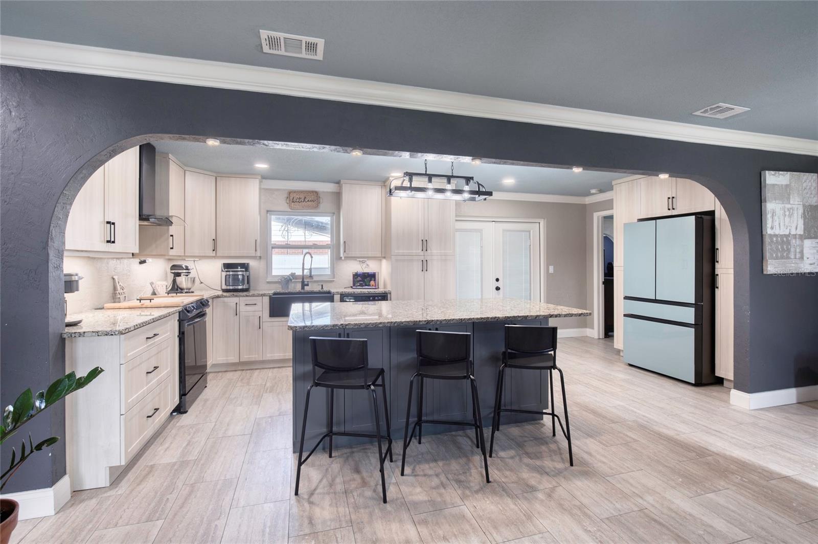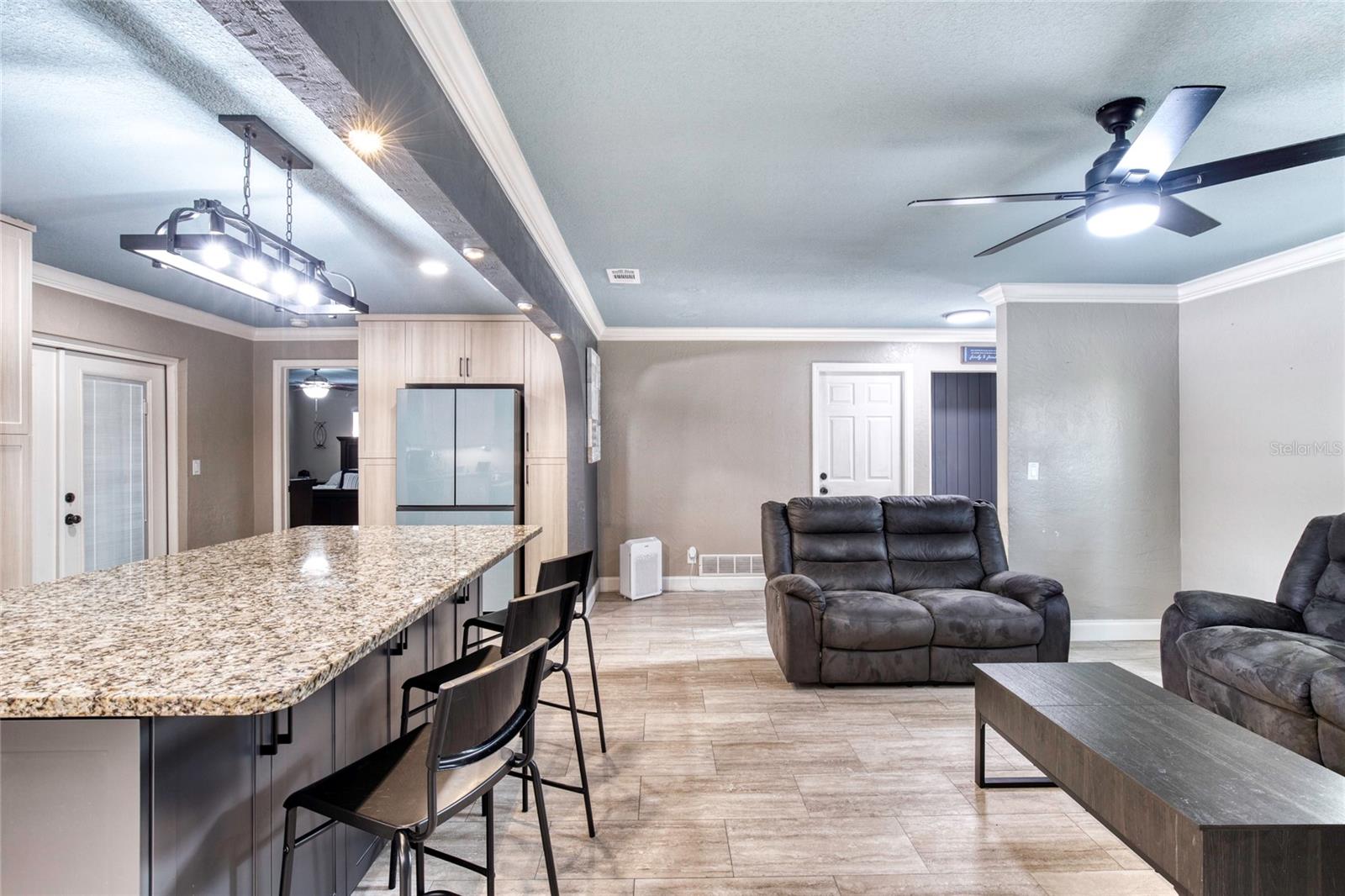 Assumable Mortgage. Step into this beautifully renovated 3-bedroom, 2-bath gem on a spacious corner lot. Enjoy the freedom of no homeowners association (HOA) fees! Inviting open floor plan with modern updates. The interior boasts elegant tile flooring that extends throughout the home, complemented by crown molding and a cozy electric fireplace in the living room, enhanced by new windows that bring in natural light. The remodeled kitchen is a chef's delight, featuring stunning granite countertops and a large island for meal prep and casual dining. Outfitted with under cabinet storage, a wine cooler, stainless steel appliances, a farmhouse sink, and a convenient pot filler by the stove, this space is both functional and stylish. French doors open to a private fenced in backyard, complete with a screened-in patio—perfect for outdoor gatherings or peaceful evenings under the stars. Whether you're starting out, retiring, or looking for an investment, this is the perfect fit! Location? Just moments from the beach, schools, shopping, and dining! Call me for a private showing.