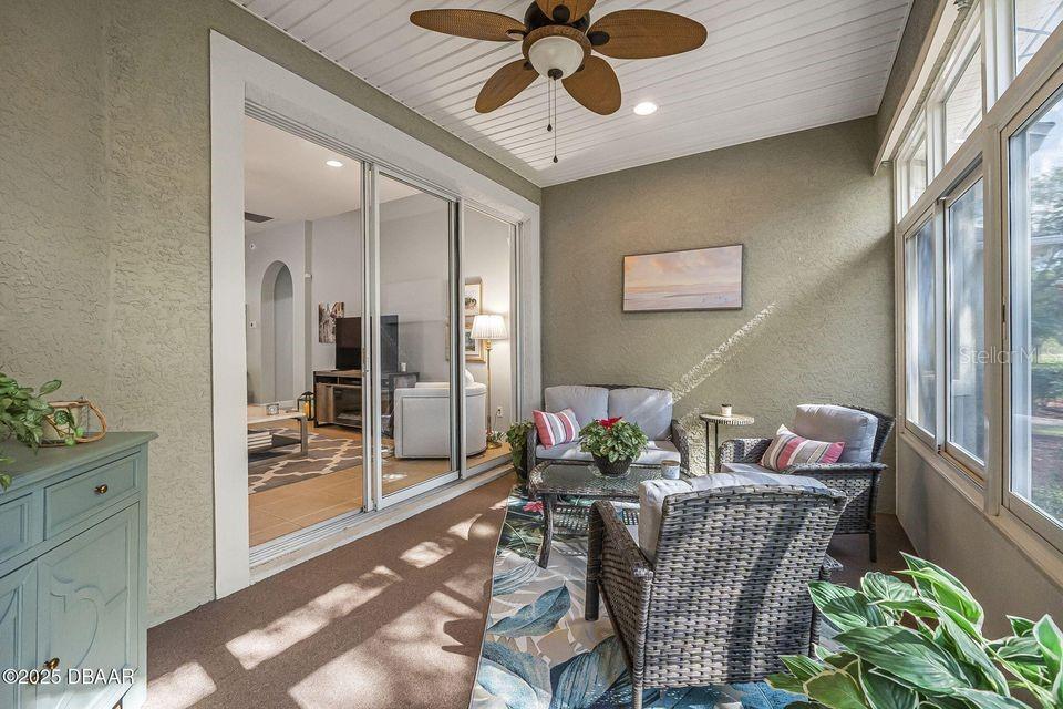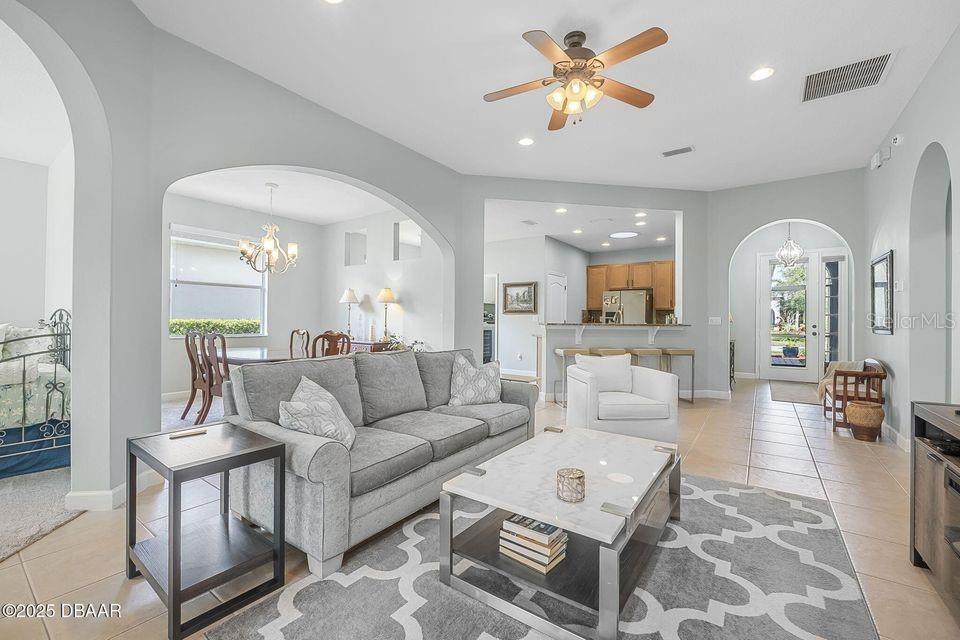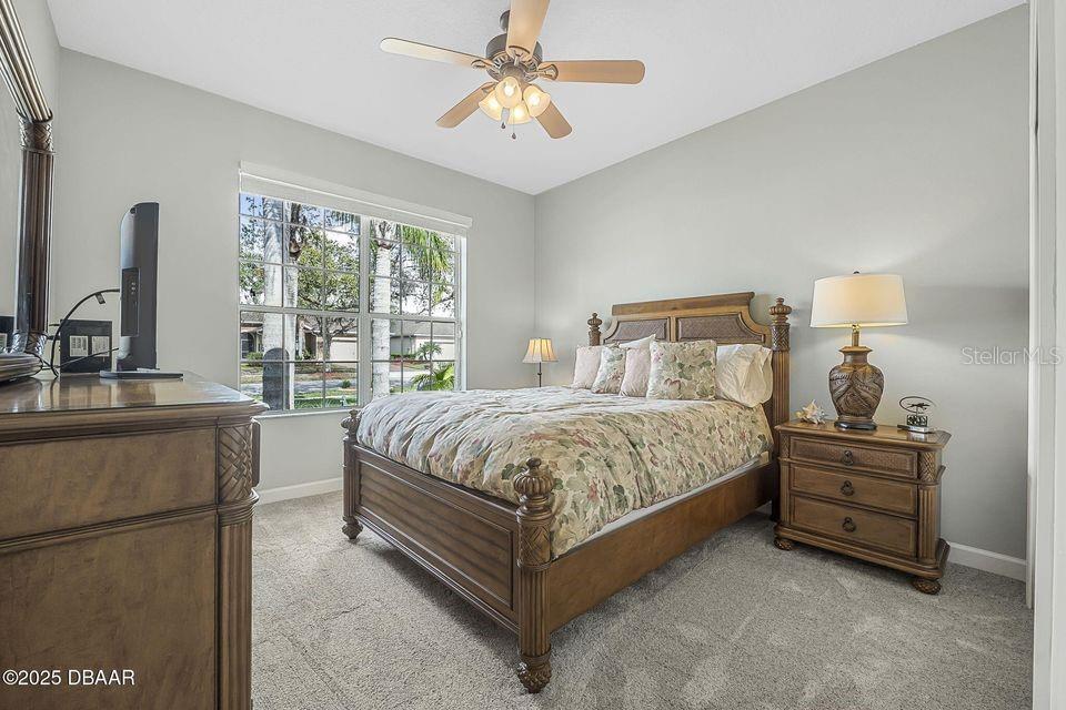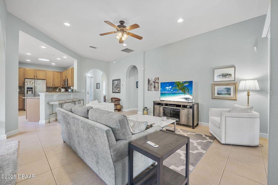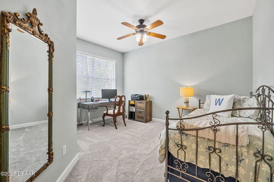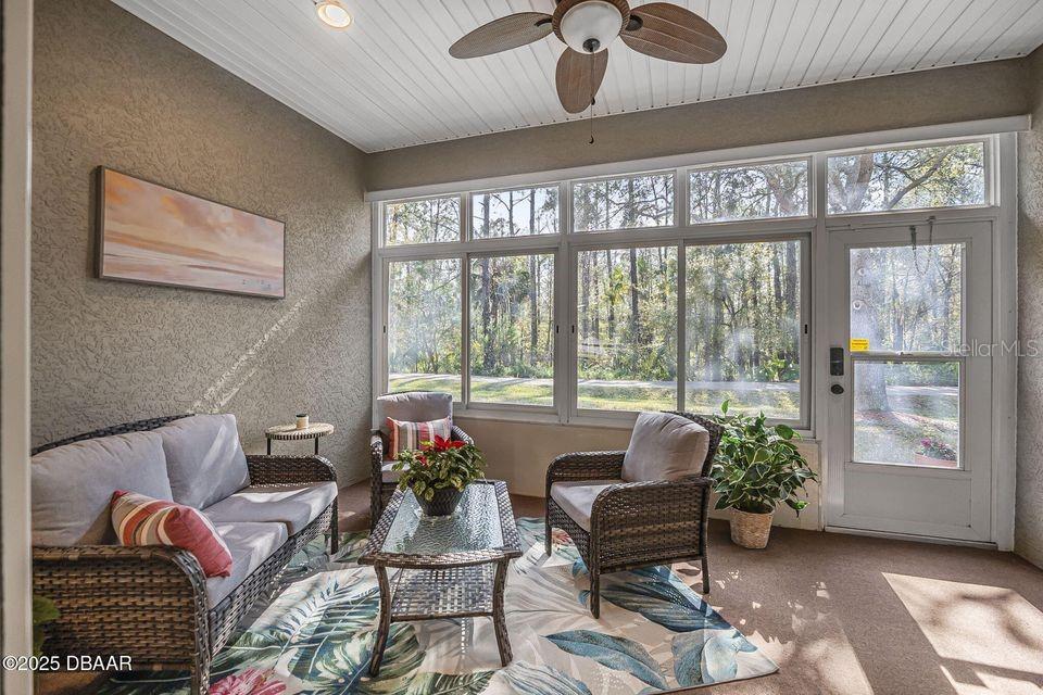 Immaculate Home with Modern Upgrades & Maintenance-Free Living! Welcome to 1143 Champions Drive, a beautifully maintained home offering both comfort and convenience in LPGA! This spacious residence boasts 12' ceilings throughout the main living areas, creating an open and airy feel. The current office space could easily be converted into a third bedroom, adding flexibility to the floor plan. The kitchen features elegant maple-finished cabinets and a custom pantry by Closets by Design, ensuring optimal organization. The bedroom closets have also been upgraded for maximum storage efficiency. Enjoy peace of mind with a monitored security system, complete with motion and glass break sensors. Major updates include a new HVAC system and roof in 2019, as well as new carpet and a 50-gallon hot water heater in 2022. The interior was repainted in 2022 with a beautiful neutral color, providing a fresh and modern feel. Situated in a community where the association takes care of lawn maintenance, this home allows for a truly low-maintenance lifestyle. The golf cart path behind the screened porch leads to the state of the art practice facility! Don't miss this opportunity! Schedule your private showing today!
