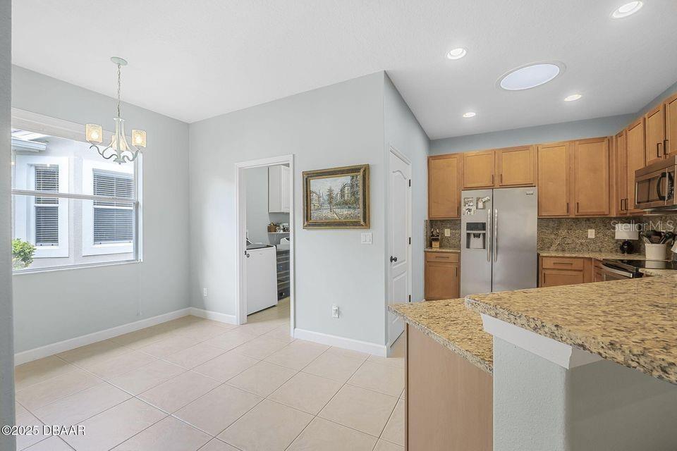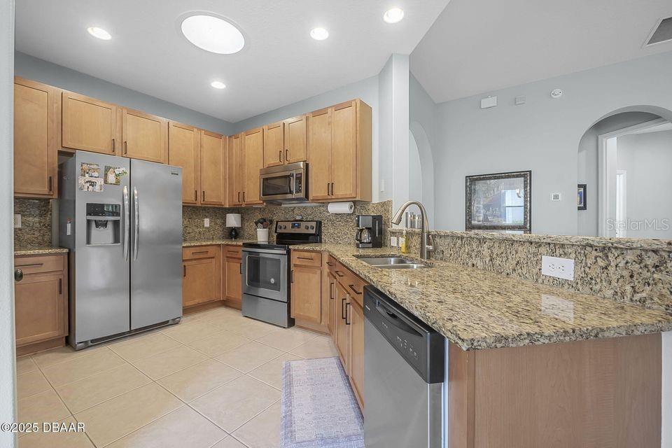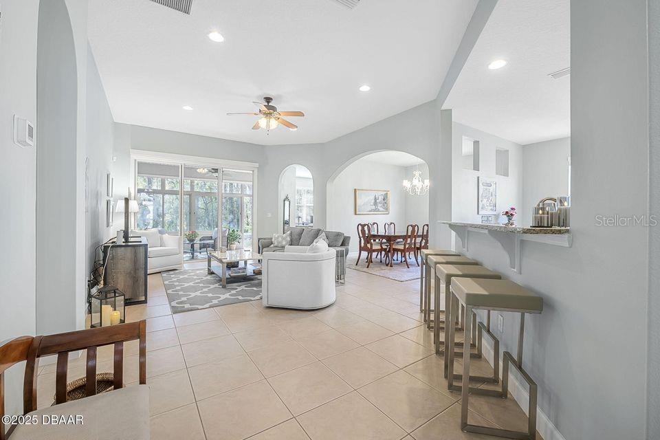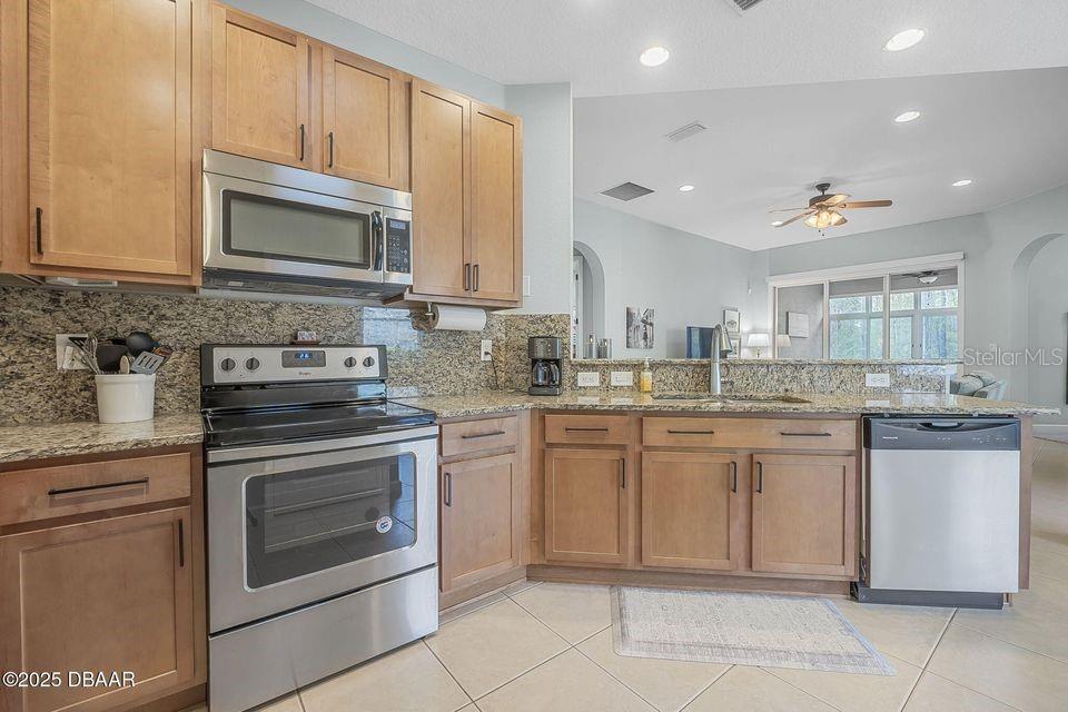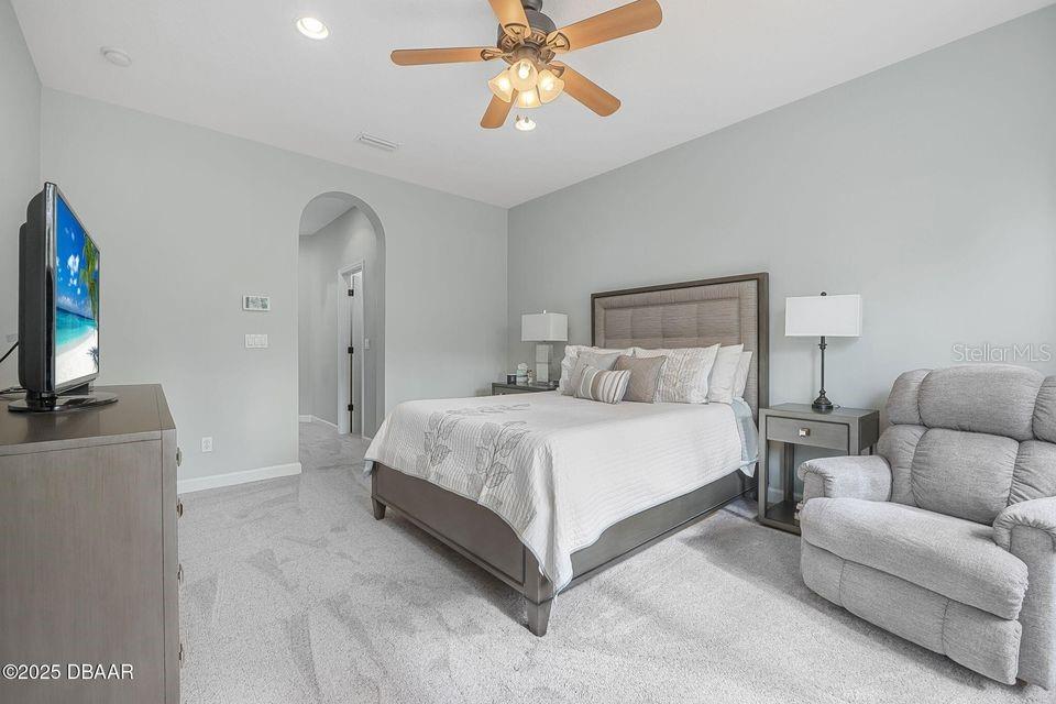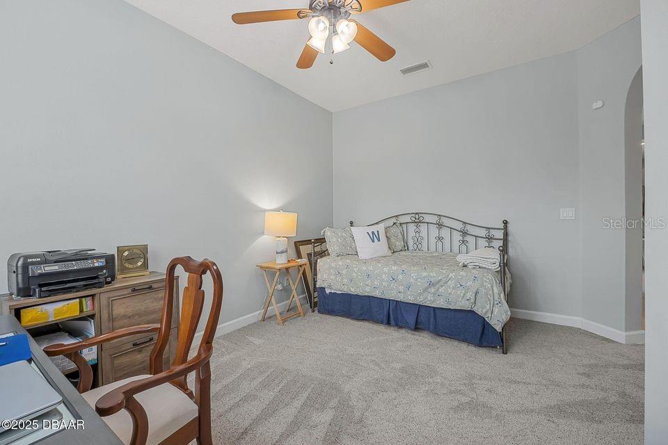 Immaculate Home with Modern Upgrades & Maintenance-Free Living! Welcome to 1143 Champions Drive, a beautifully maintained home offering both comfort and convenience in LPGA! This spacious residence boasts 12' ceilings throughout the main living areas, creating an open and airy feel. The current office space could easily be converted into a third bedroom, adding flexibility to the floor plan. The kitchen features elegant maple-finished cabinets and a custom pantry by Closets by Design, ensuring optimal organization. The bedroom closets have also been upgraded for maximum storage efficiency. Enjoy peace of mind with a monitored security system, complete with motion and glass break sensors. Major updates include a new HVAC system and roof in 2019, as well as new carpet and a 50-gallon hot water heater in 2022. The interior was repainted in 2022 with a beautiful neutral color, providing a fresh and modern feel. Situated in a community where the association takes care of lawn maintenance, this home allows for a truly low-maintenance lifestyle. The golf cart path behind the screened porch leads to the state of the art practice facility! Don't miss this opportunity! Schedule your private showing today!