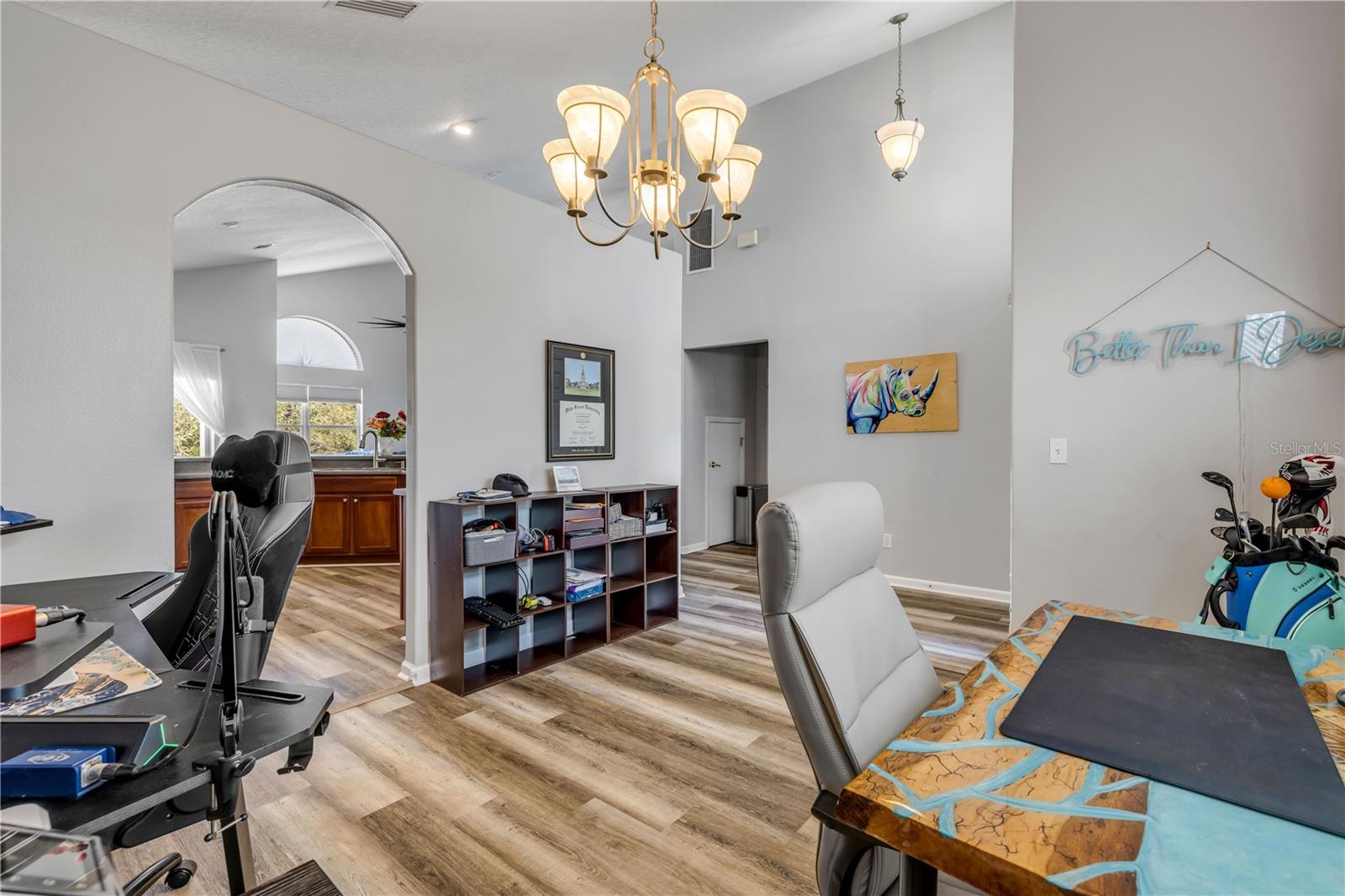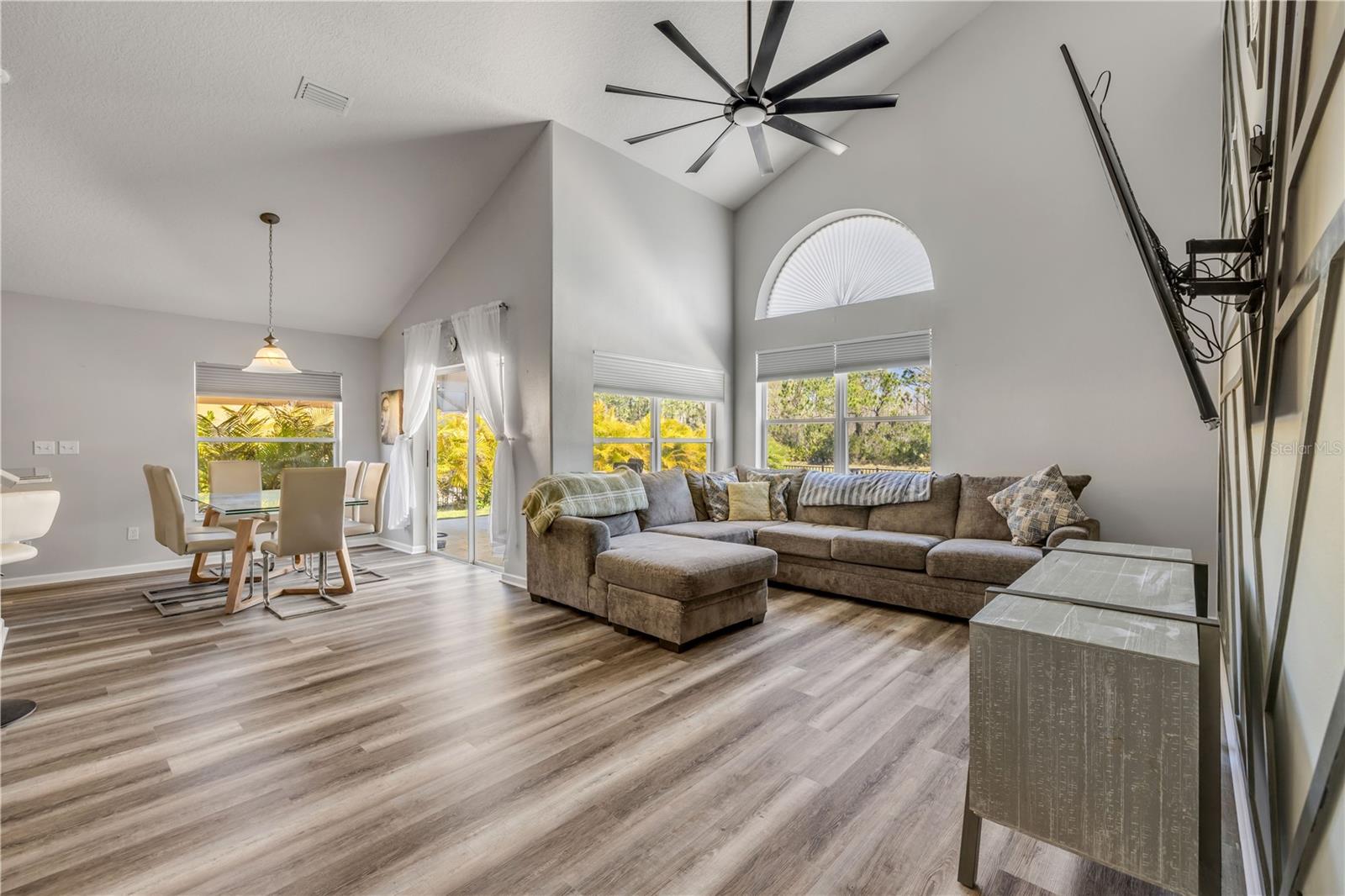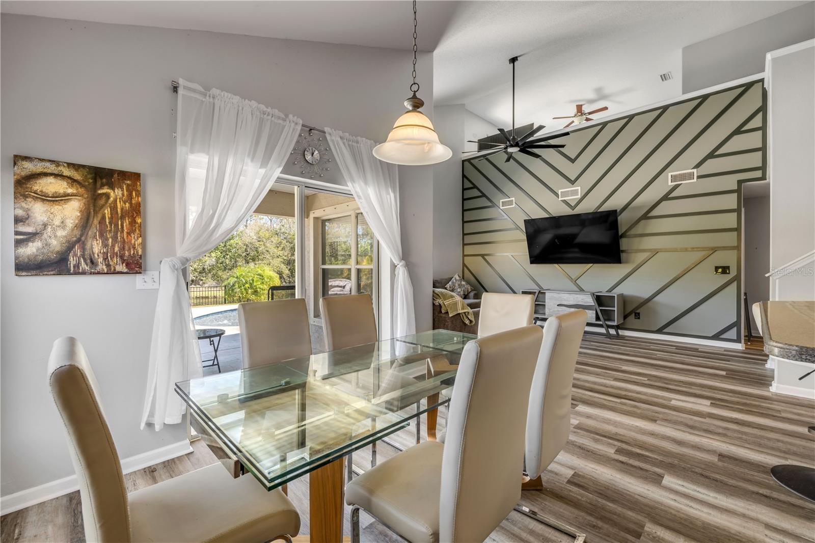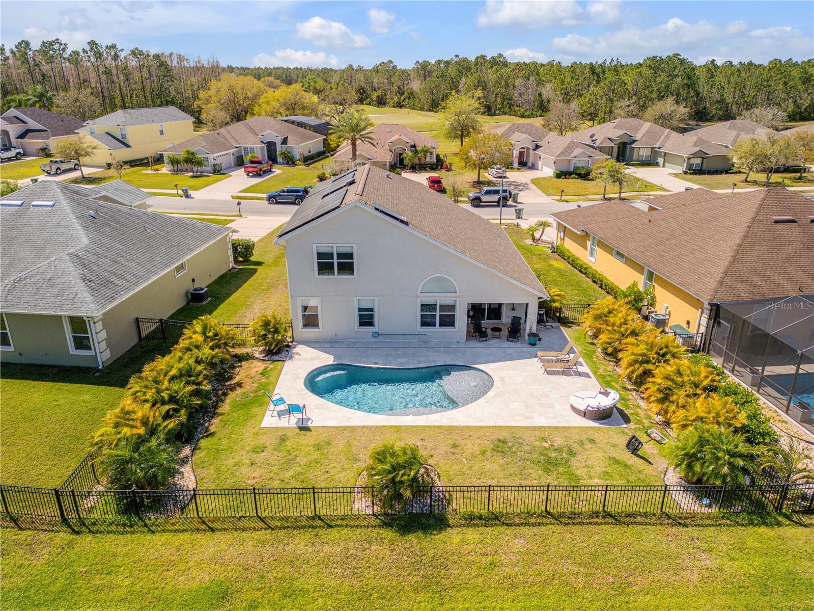 Welcome to 225 Perfect! This beautifully updated pool home is located in the heart of the desirable LPGA community. This floor plan is functionality at its finest, offering incredible communal living areas as well as privacy of bedroom locations. Your heated salt water pool with was constructed in 2022, completely enhancing your outdoor living experience. Entertain or unwind on your spacious patio and fully fenced yard overlooking the 3rd & 4th hole of the Jones course. This home has UPDATES throughout including brand-new LVP flooring (2025), accent walls (2025), new ceiling fans (2025) and stainless steel appliances. Roof and HVAC were replaced in 2020, solar panels added in 2022.