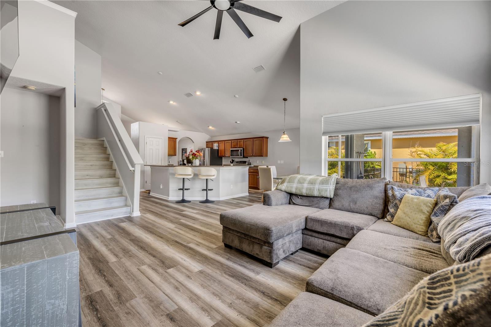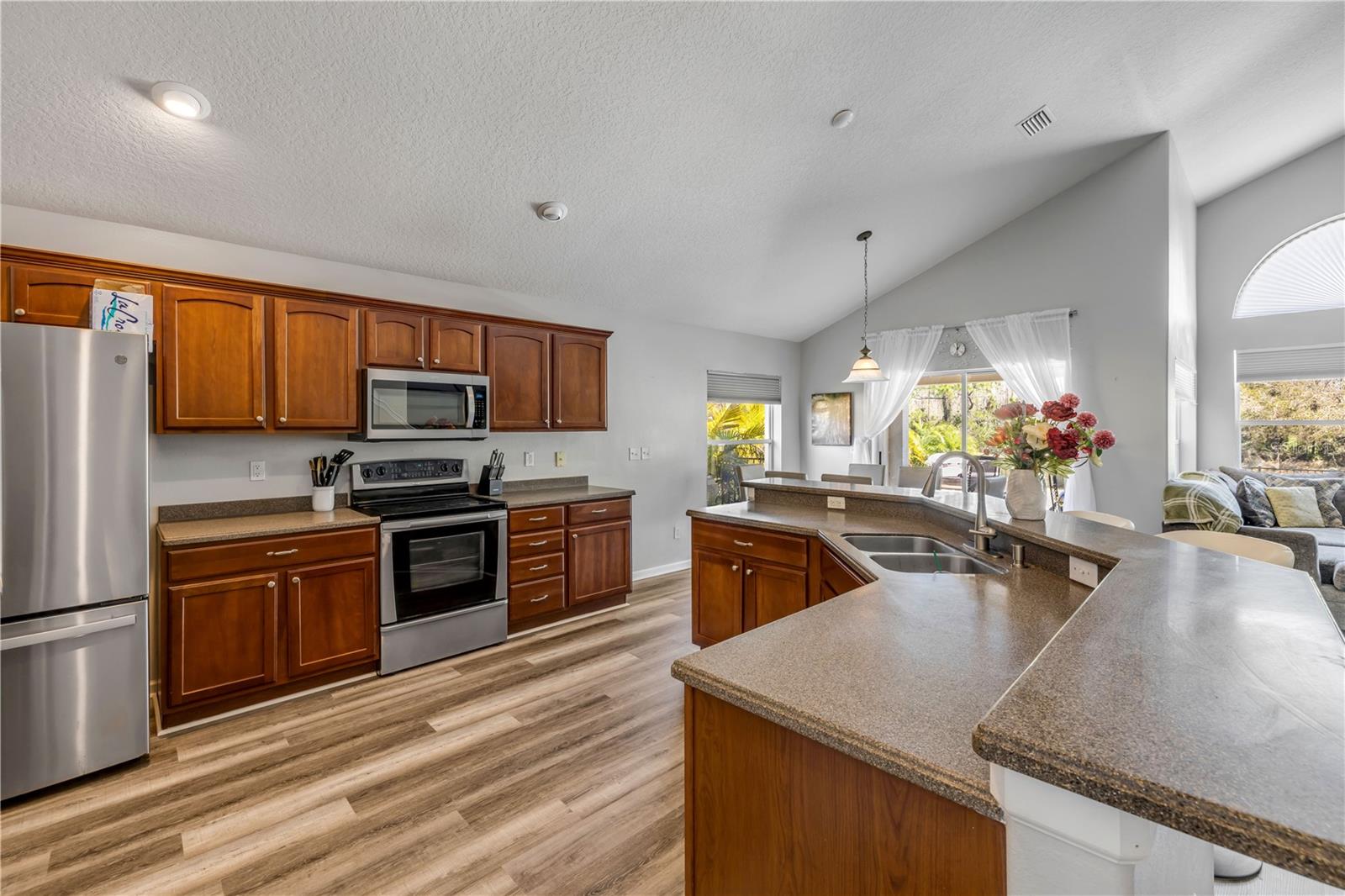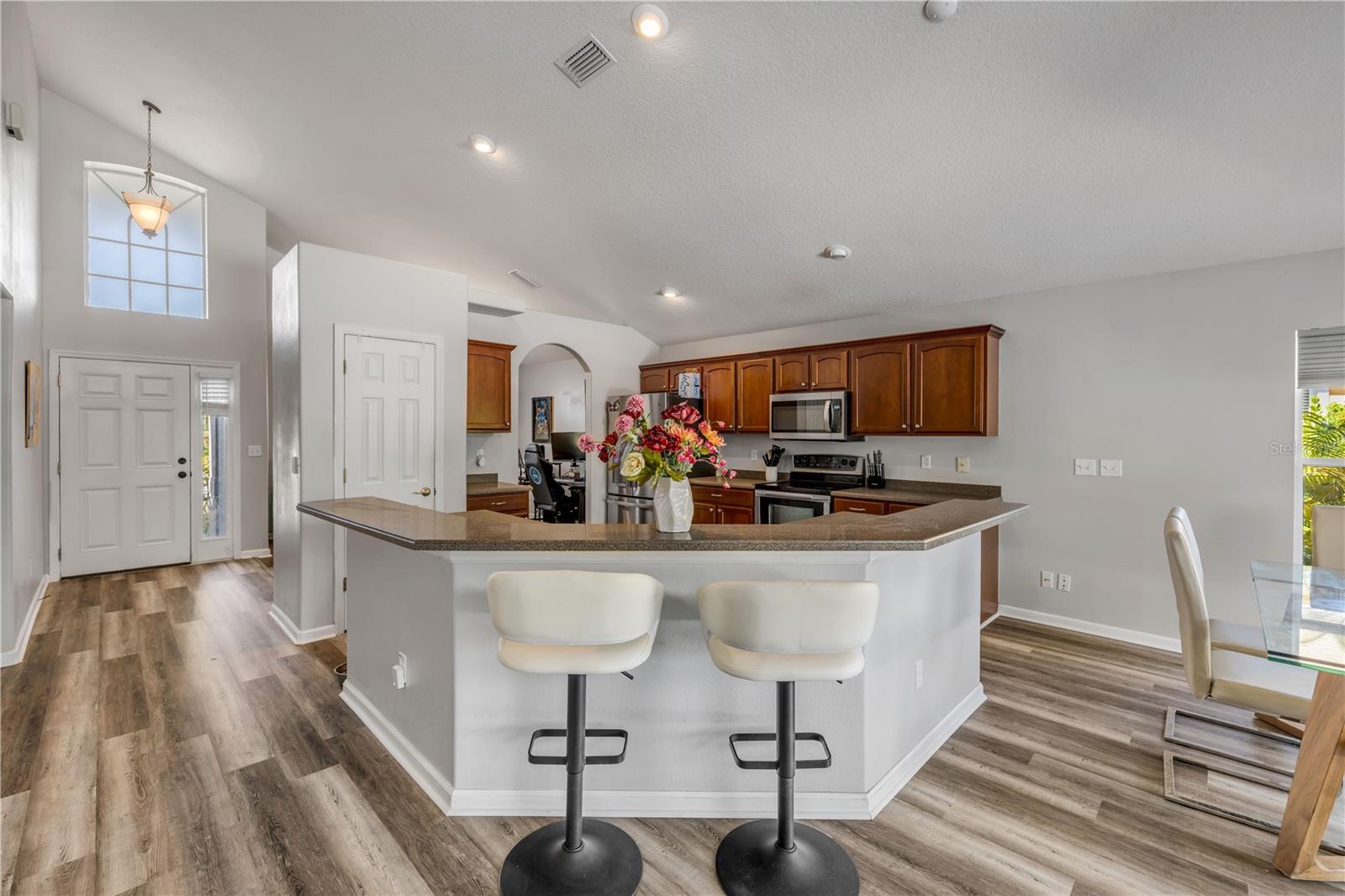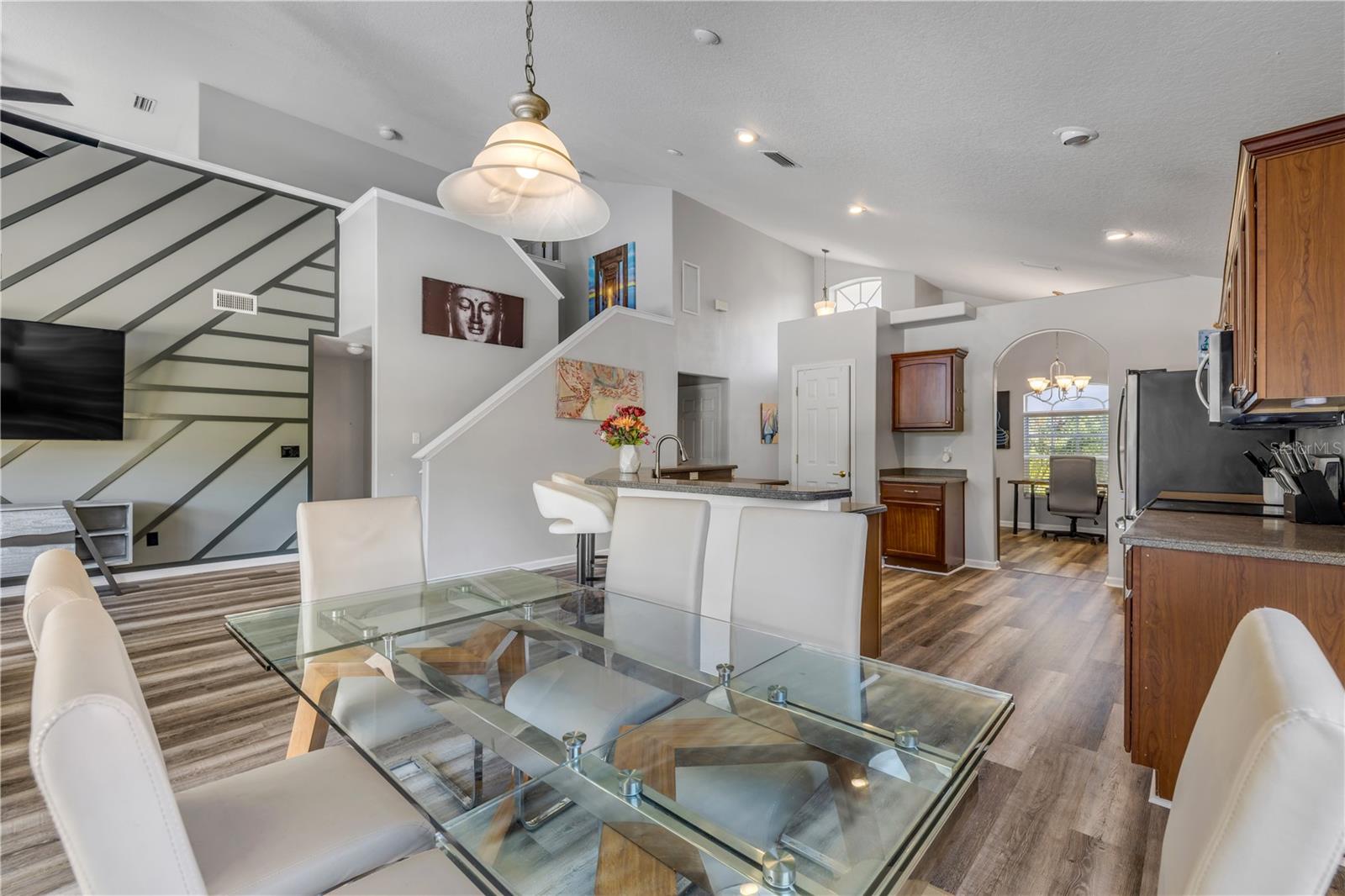 Welcome to 225 Perfect! This beautifully updated pool home is located in the heart of the desirable LPGA community. This floor plan is functionality at its finest, offering incredible communal living areas as well as privacy of bedroom locations. Your heated salt water pool with was constructed in 2022, completely enhancing your outdoor living experience. Entertain or unwind on your spacious patio and fully fenced yard overlooking the 3rd & 4th hole of the Jones course. This home has UPDATES throughout including brand-new LVP flooring (2025), accent walls (2025), new ceiling fans (2025) and stainless steel appliances. Roof and HVAC were replaced in 2020, solar panels added in 2022.